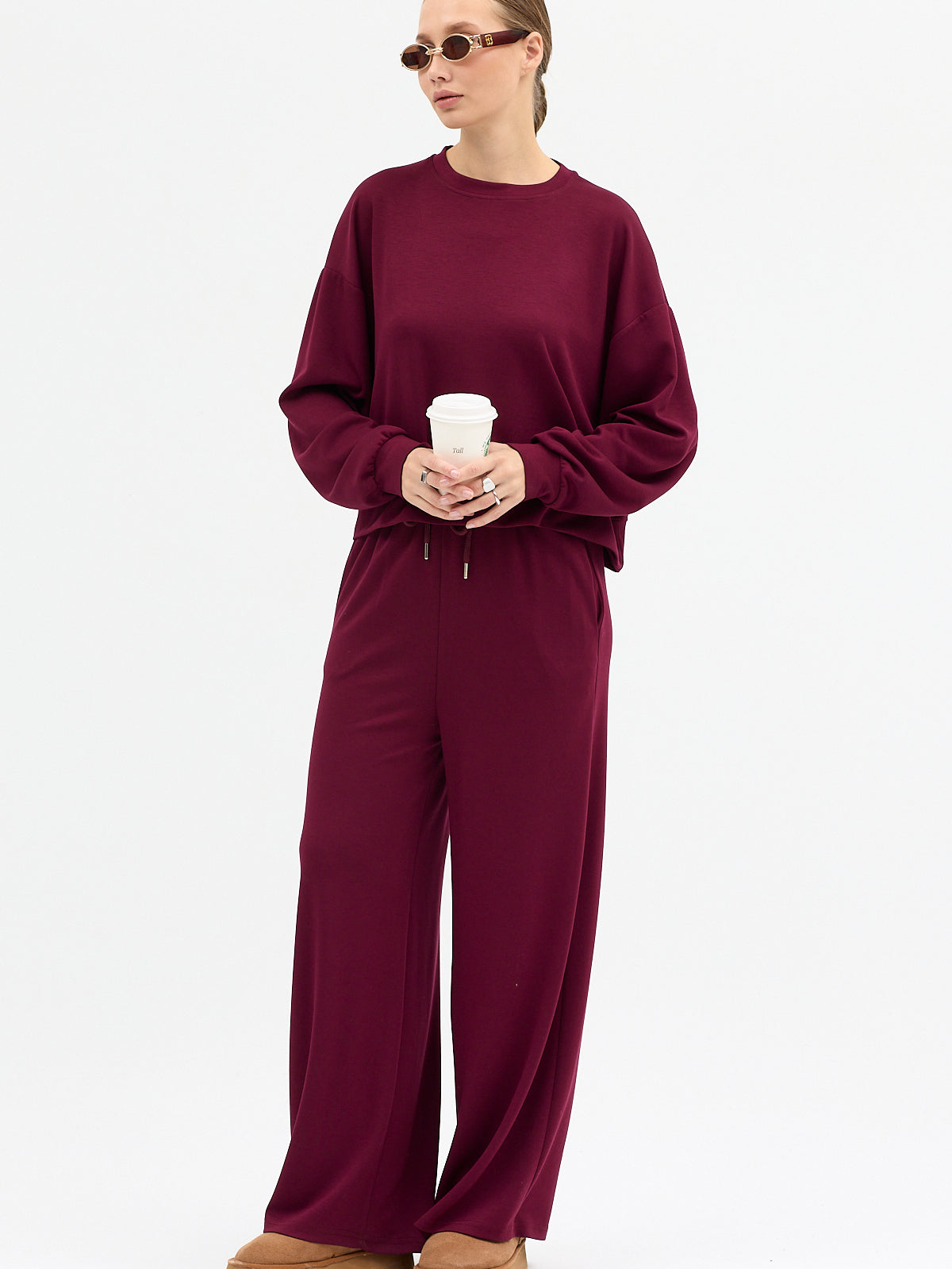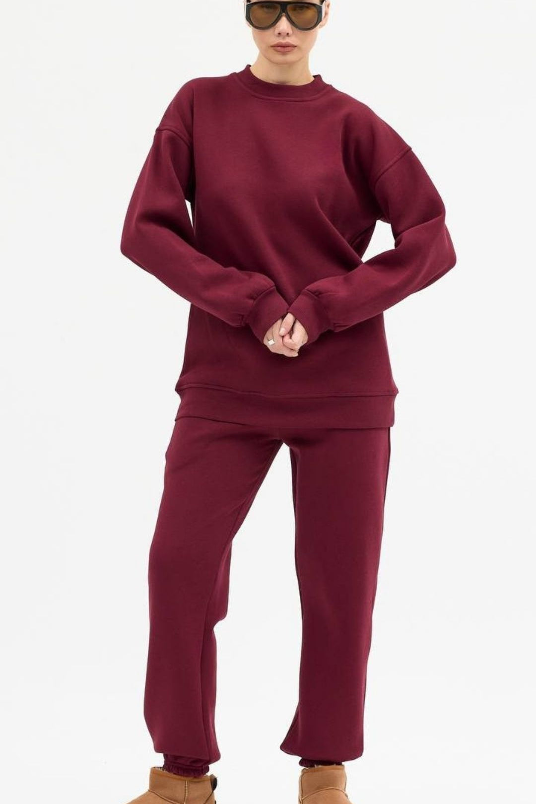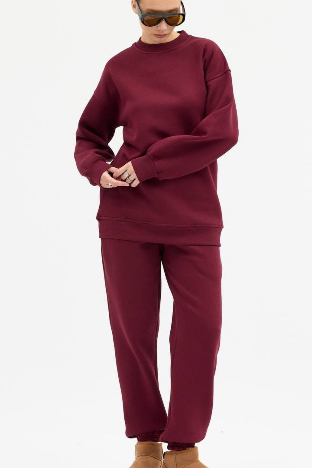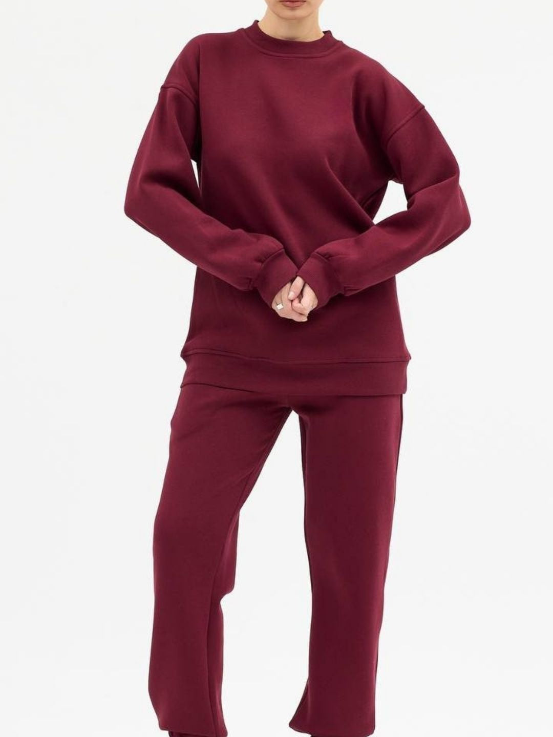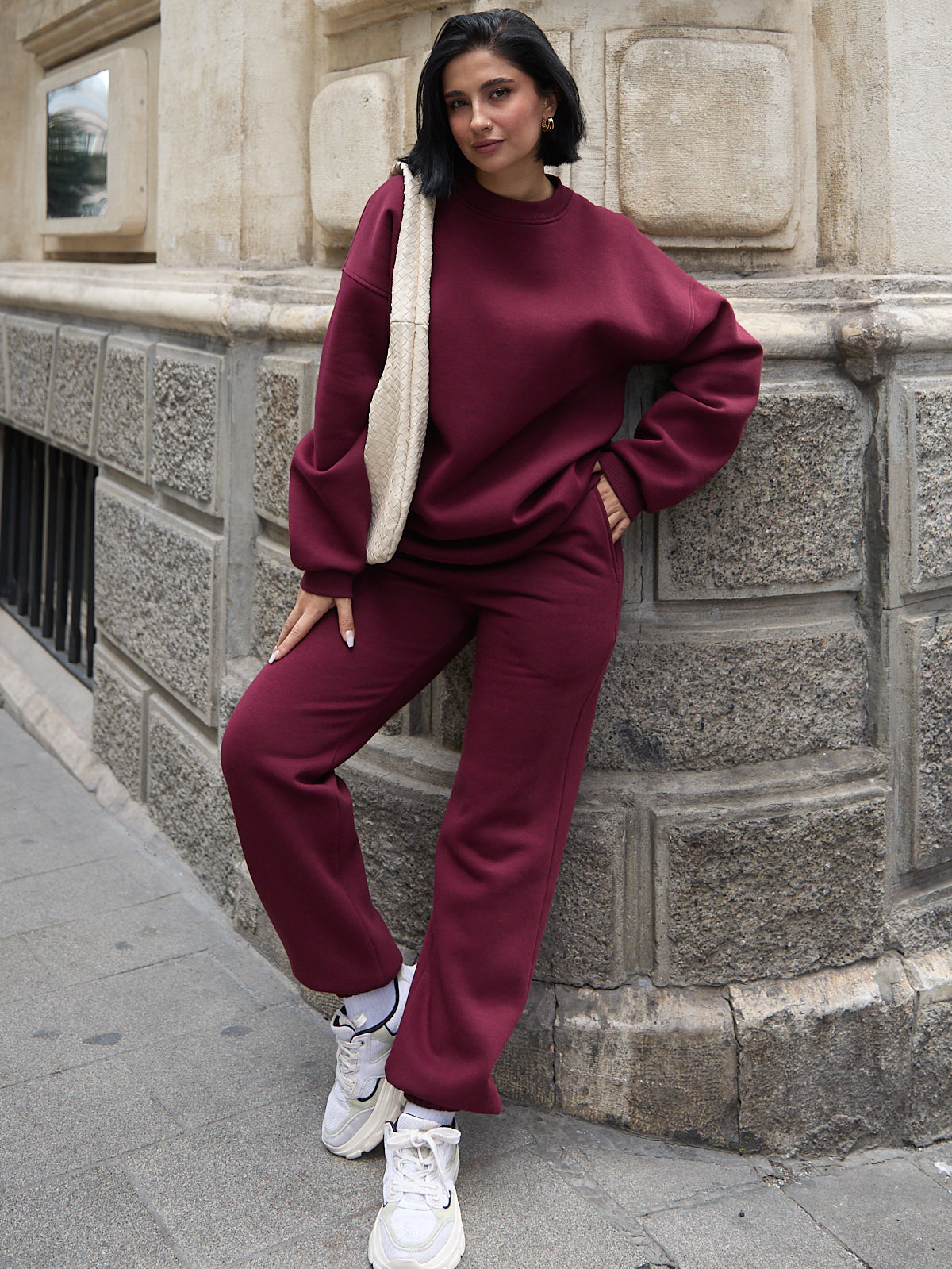 Regular Fit Normal Kalıp Basic Düz İçi Kalın Polarlı Bordo Eşofman Takımı