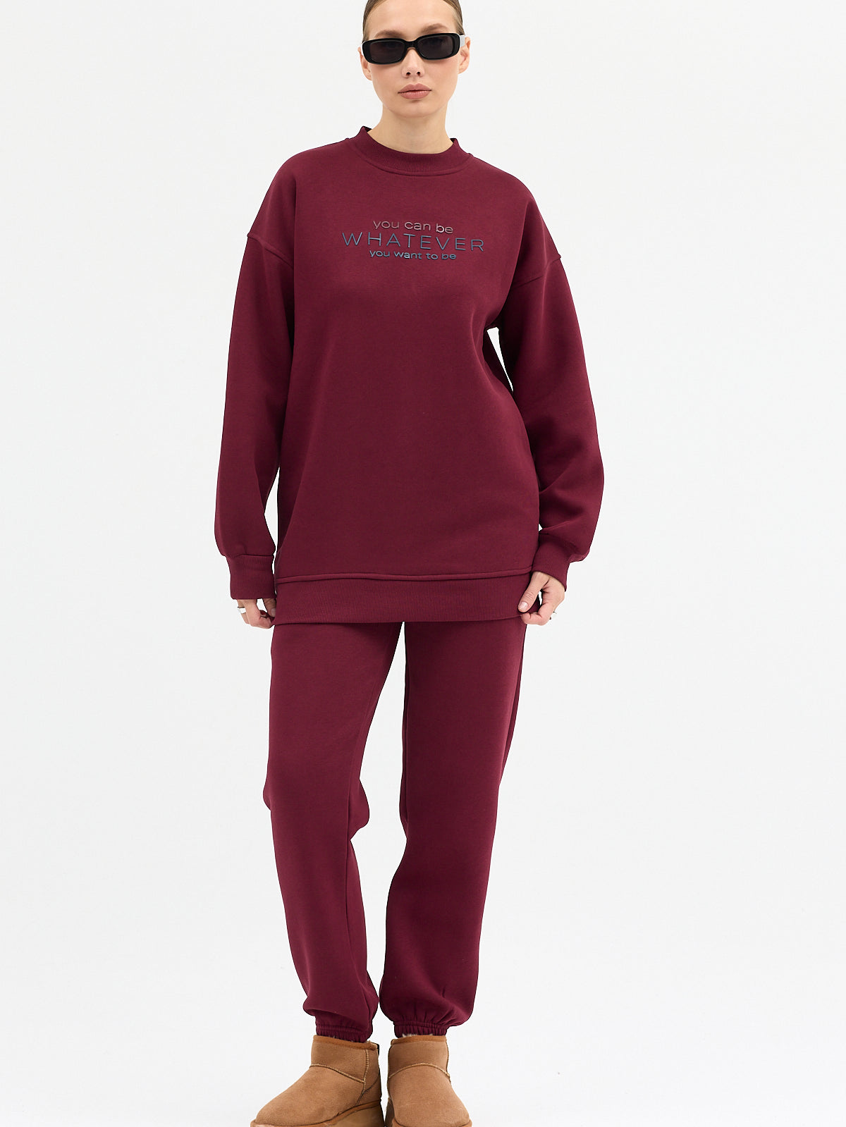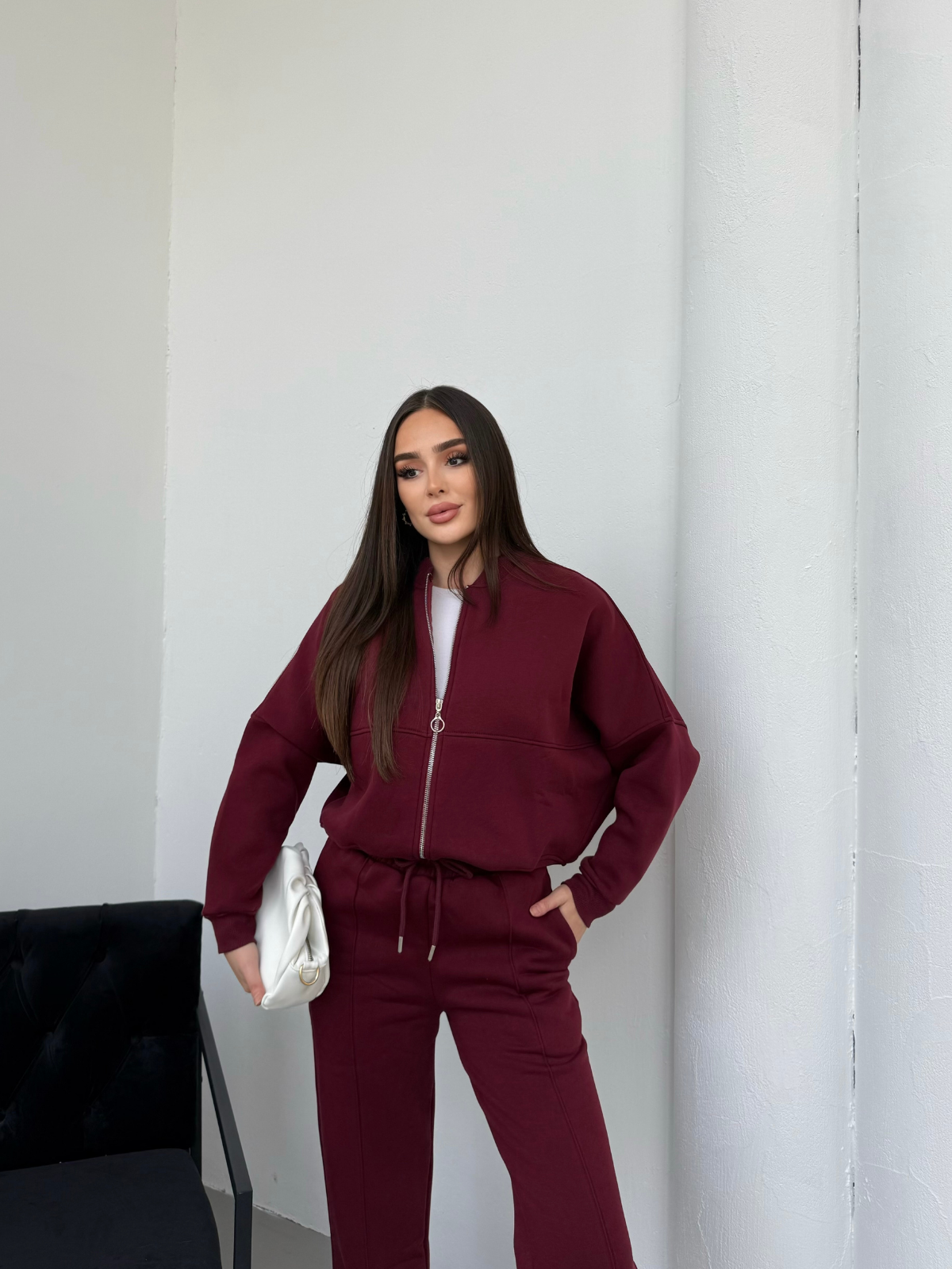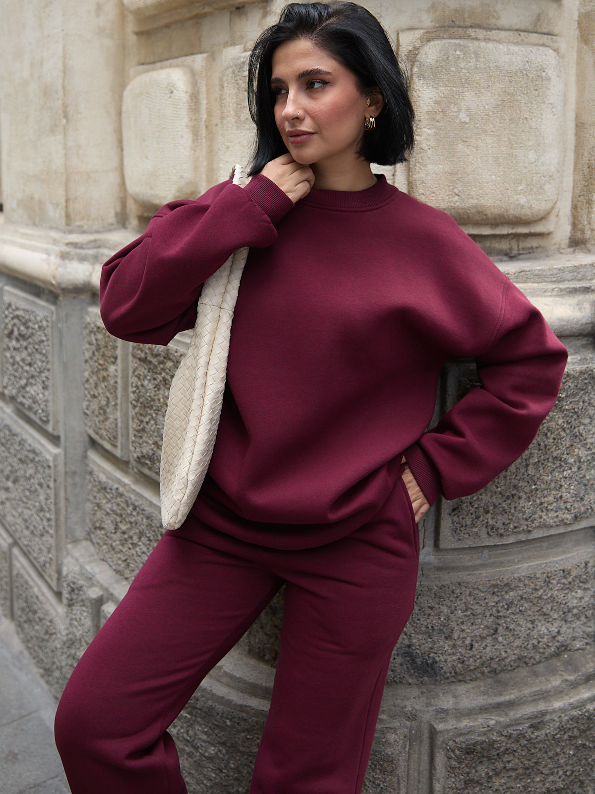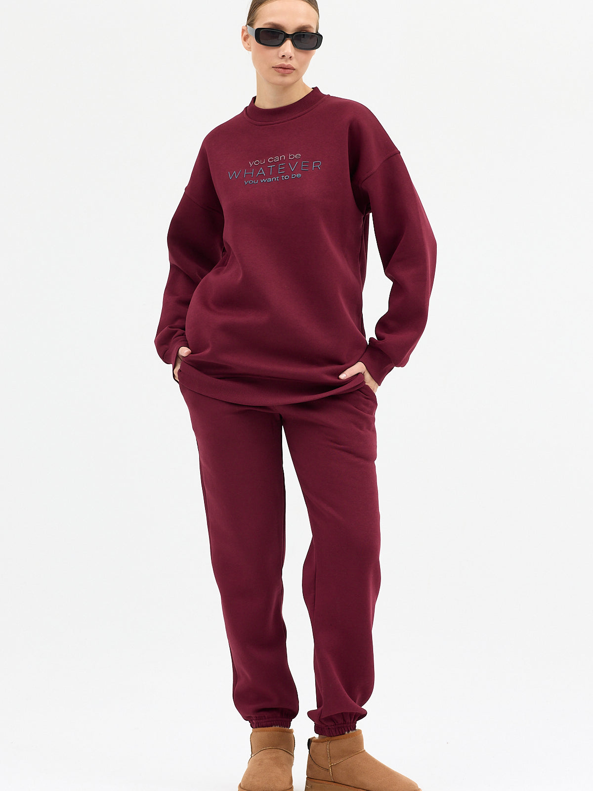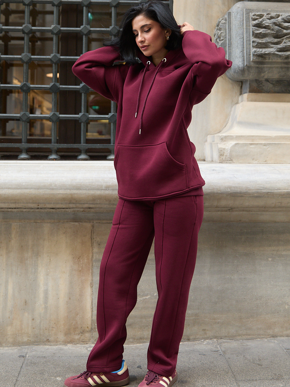 Kadın Oversize Kapüşonlu Bordo Eşofman Takımı Kışlık Içi Pamuklu