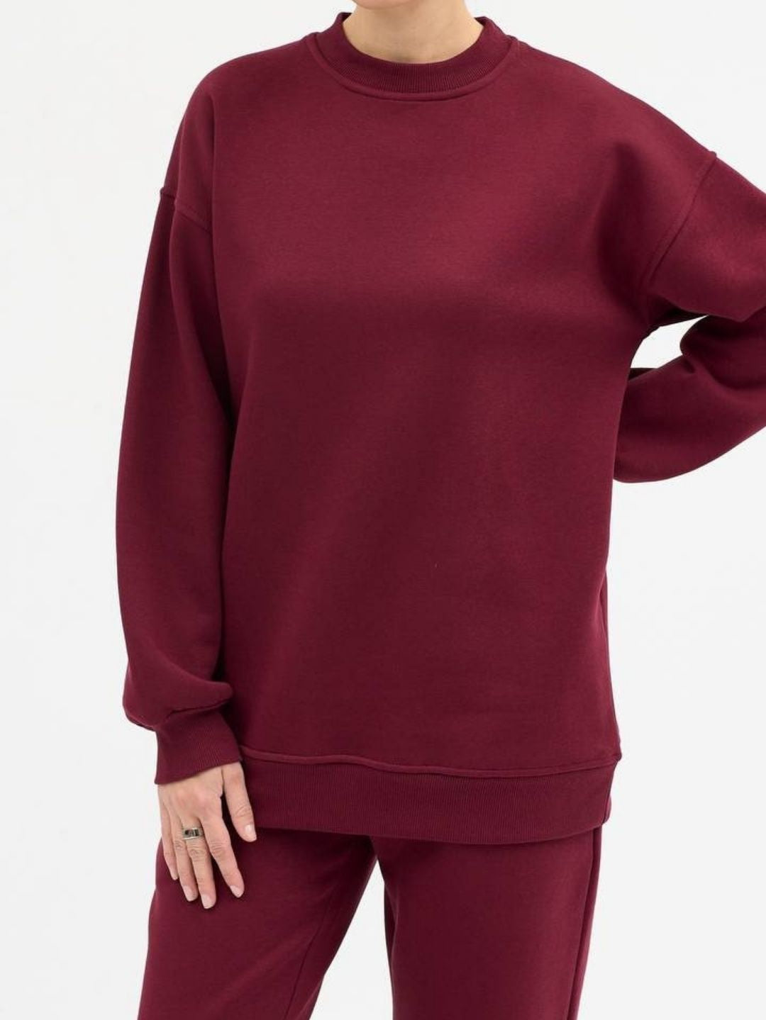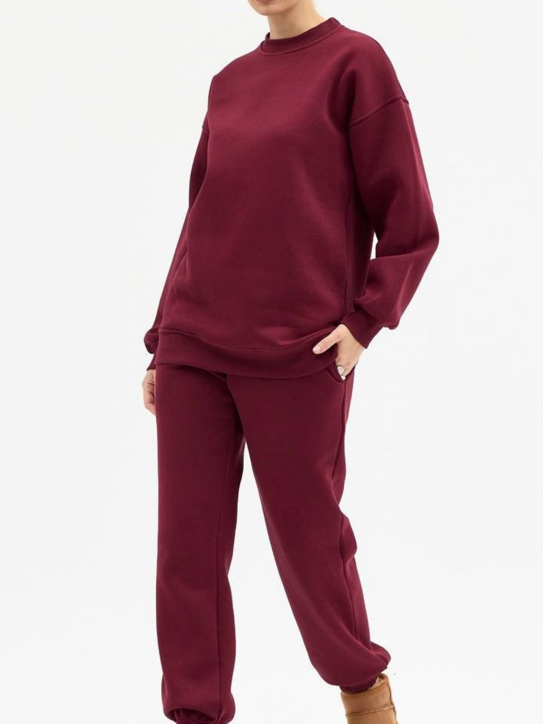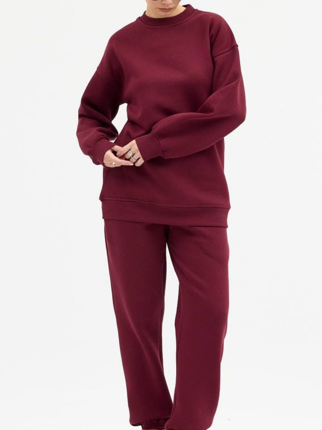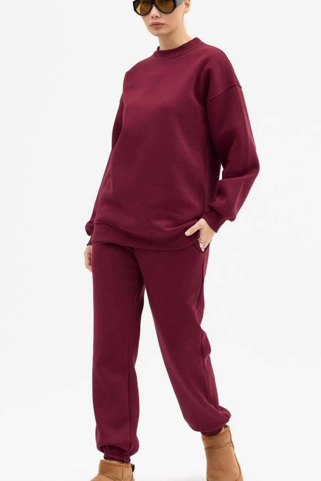 Kadın Oversize Kapüşonlu Bordo Eşofman Takımı Kışlık Içi Pamuklu
