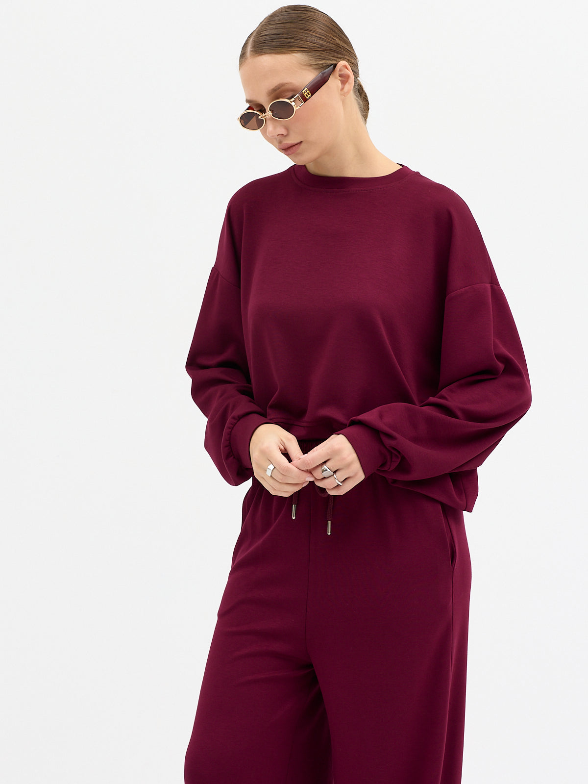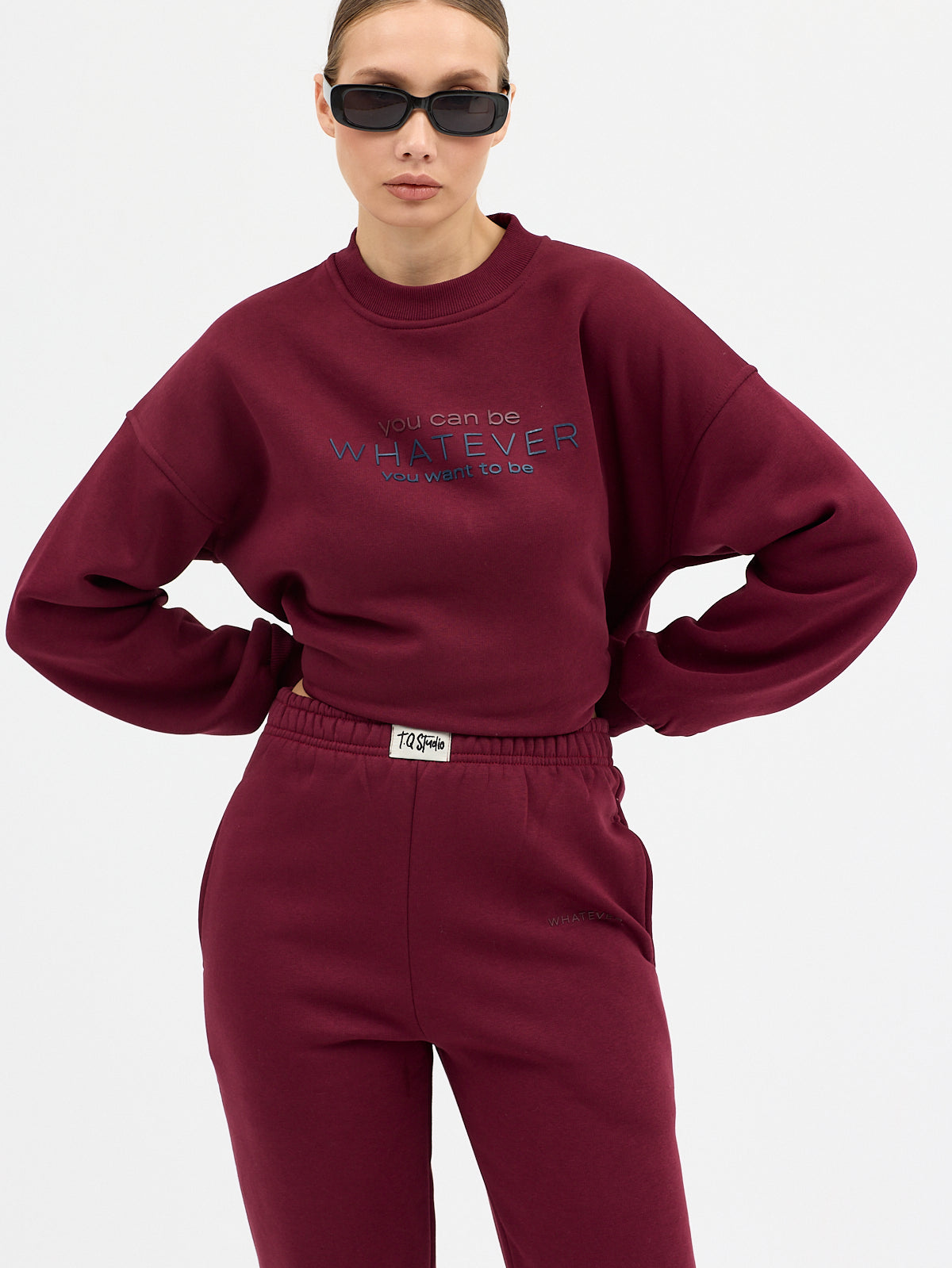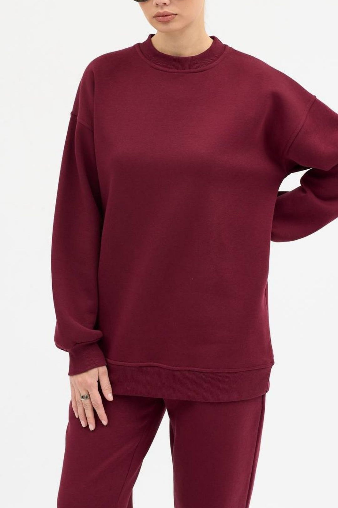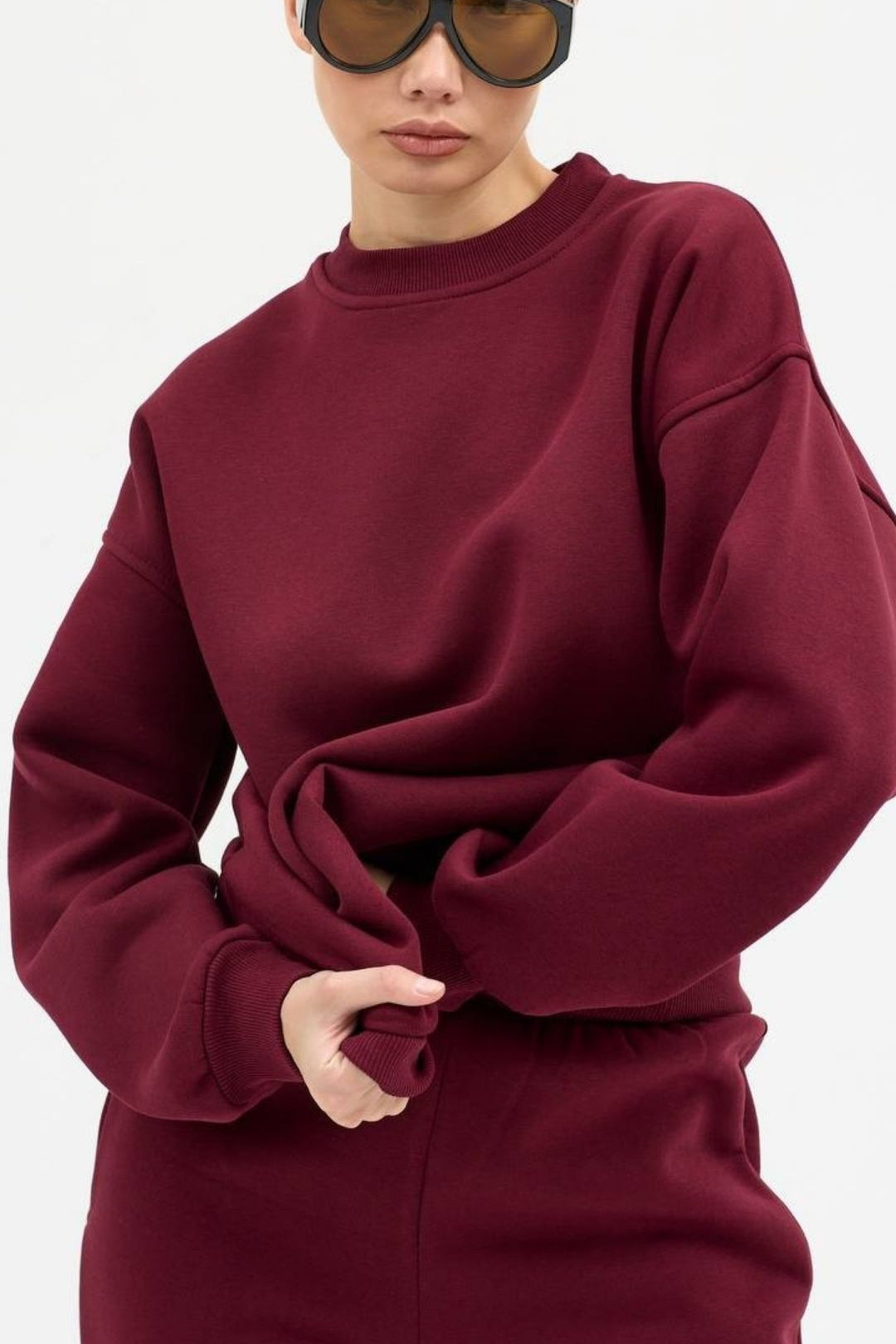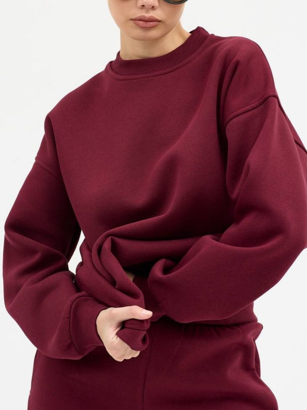 Kadın Oversize Kapüşonlu Bordo Eşofman Takımı Kışlık Içi Pamuklu