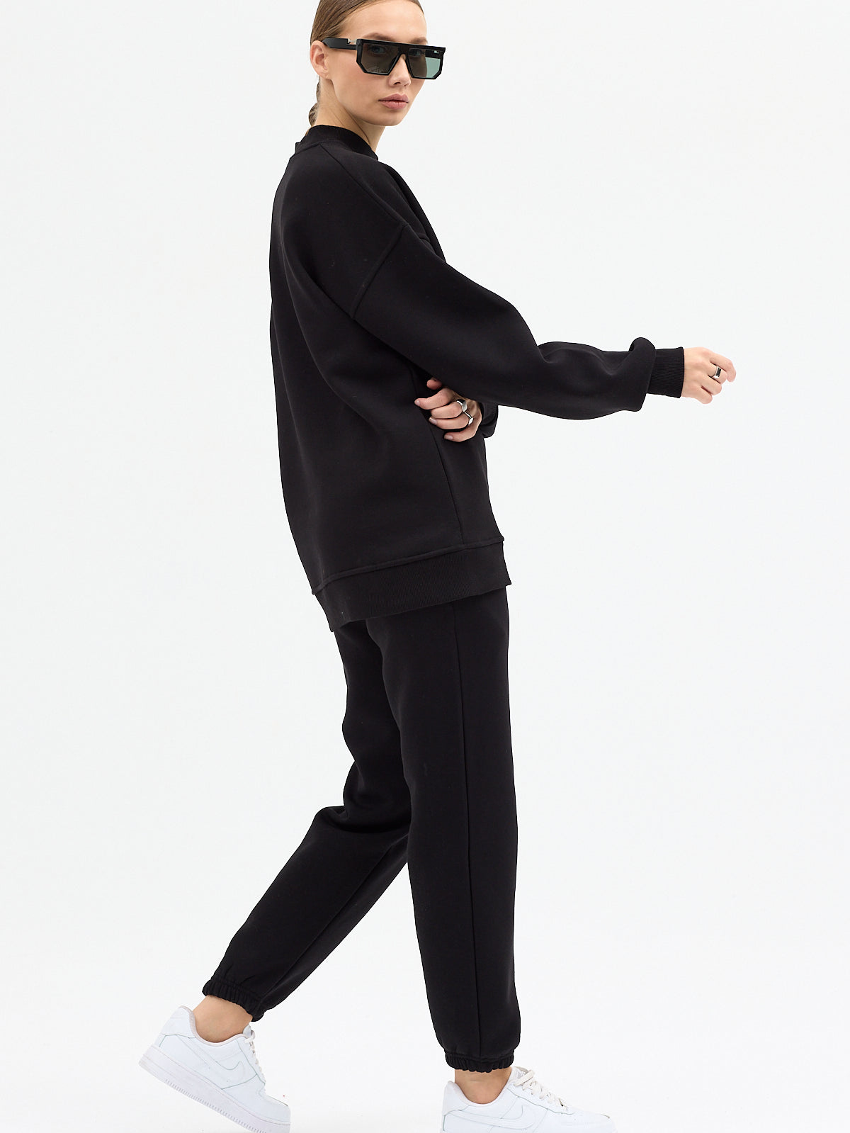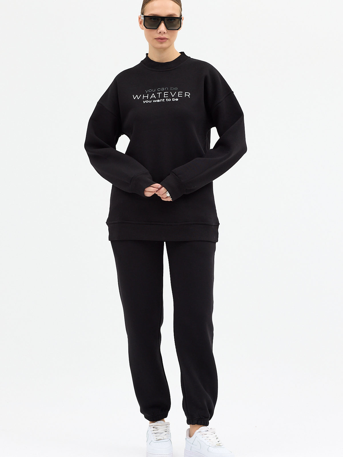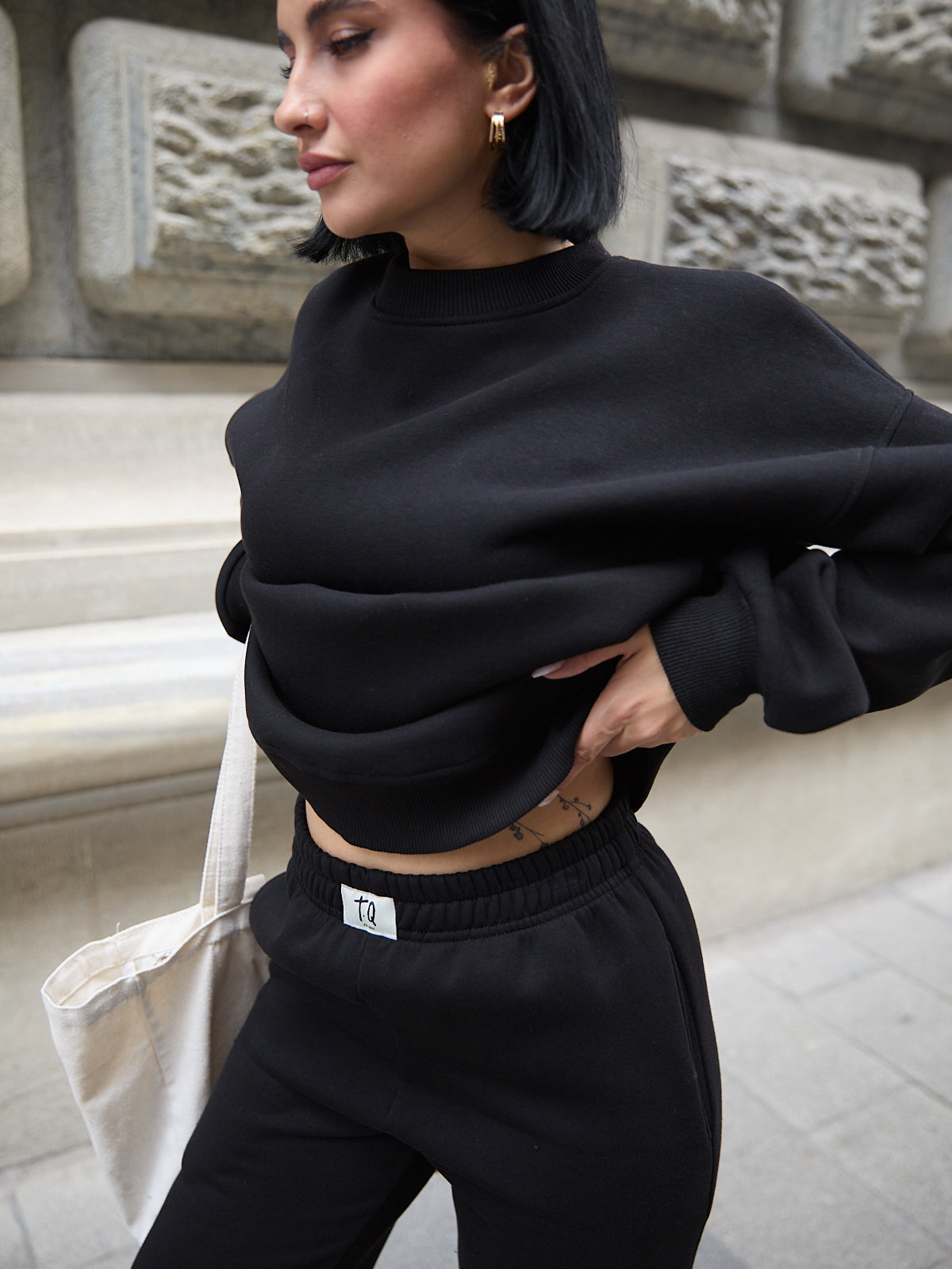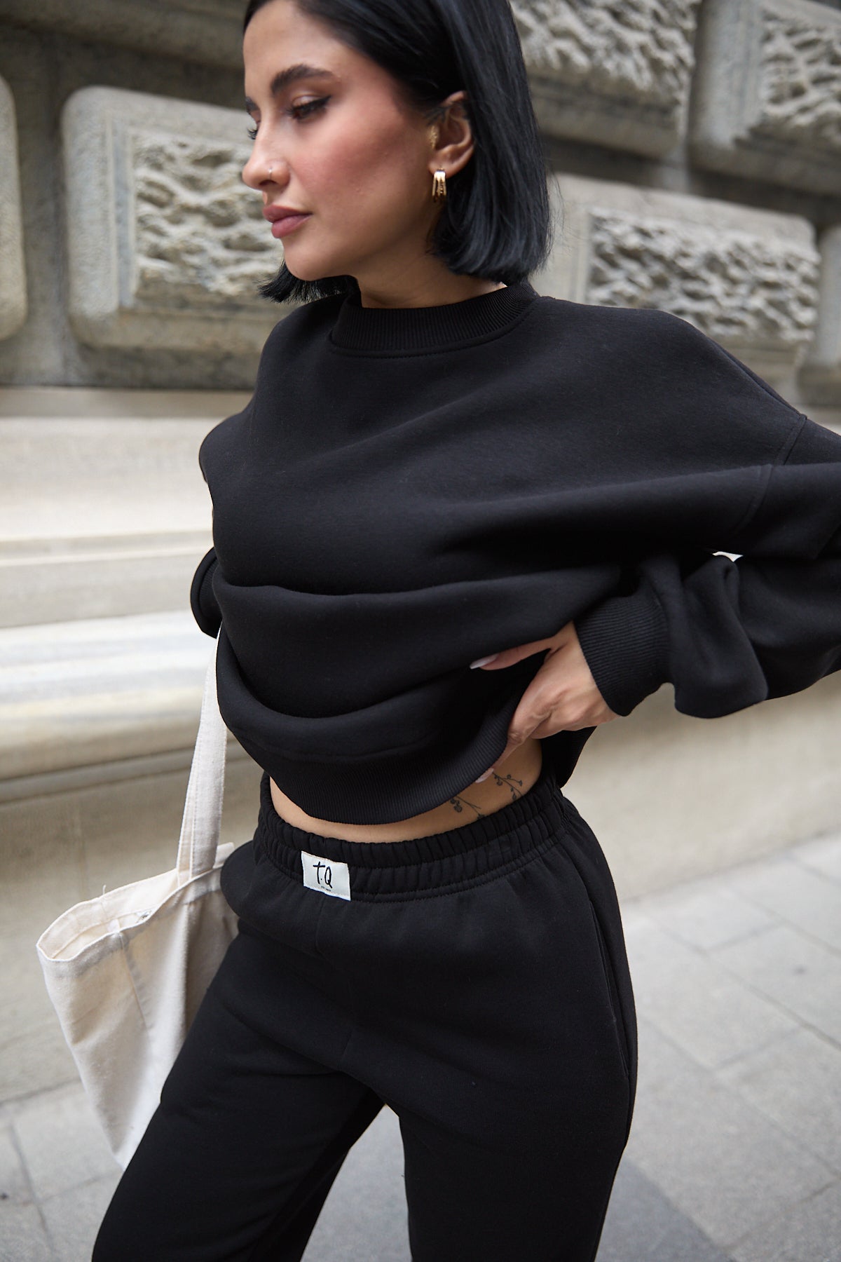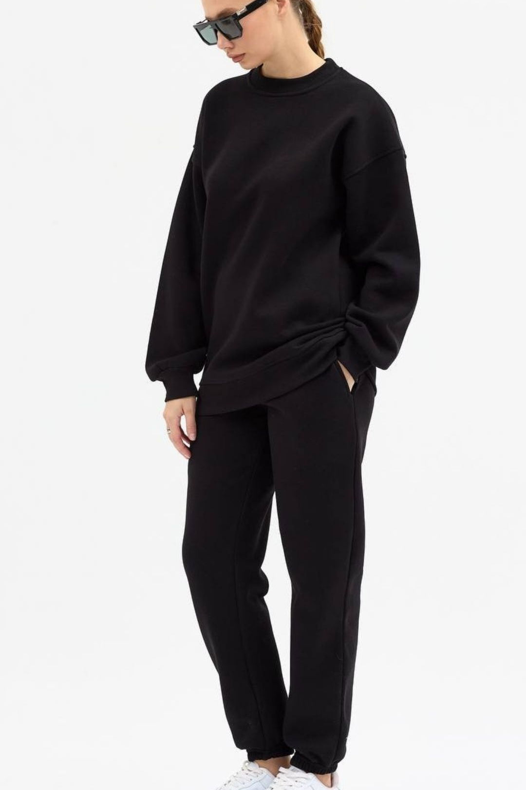 Regular Fit 2'li Takım Sweatshirt Beli Lastikli Jogger Siyah Eşofman Altı