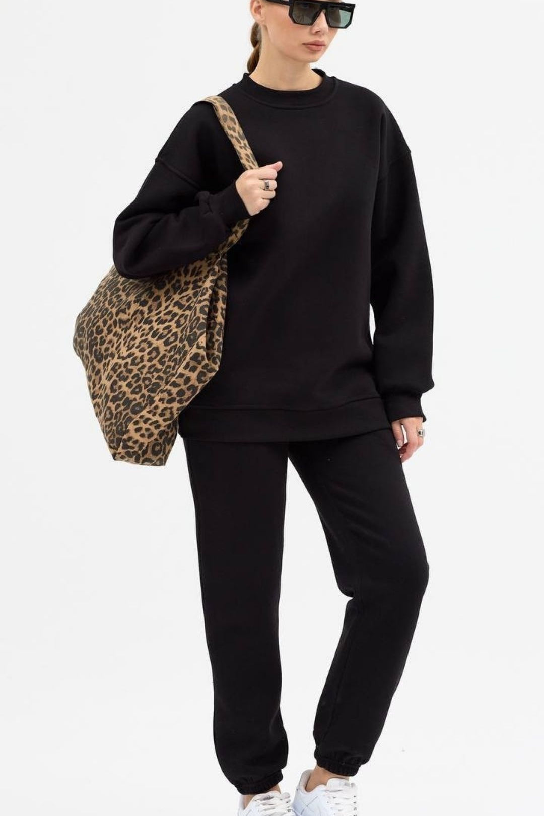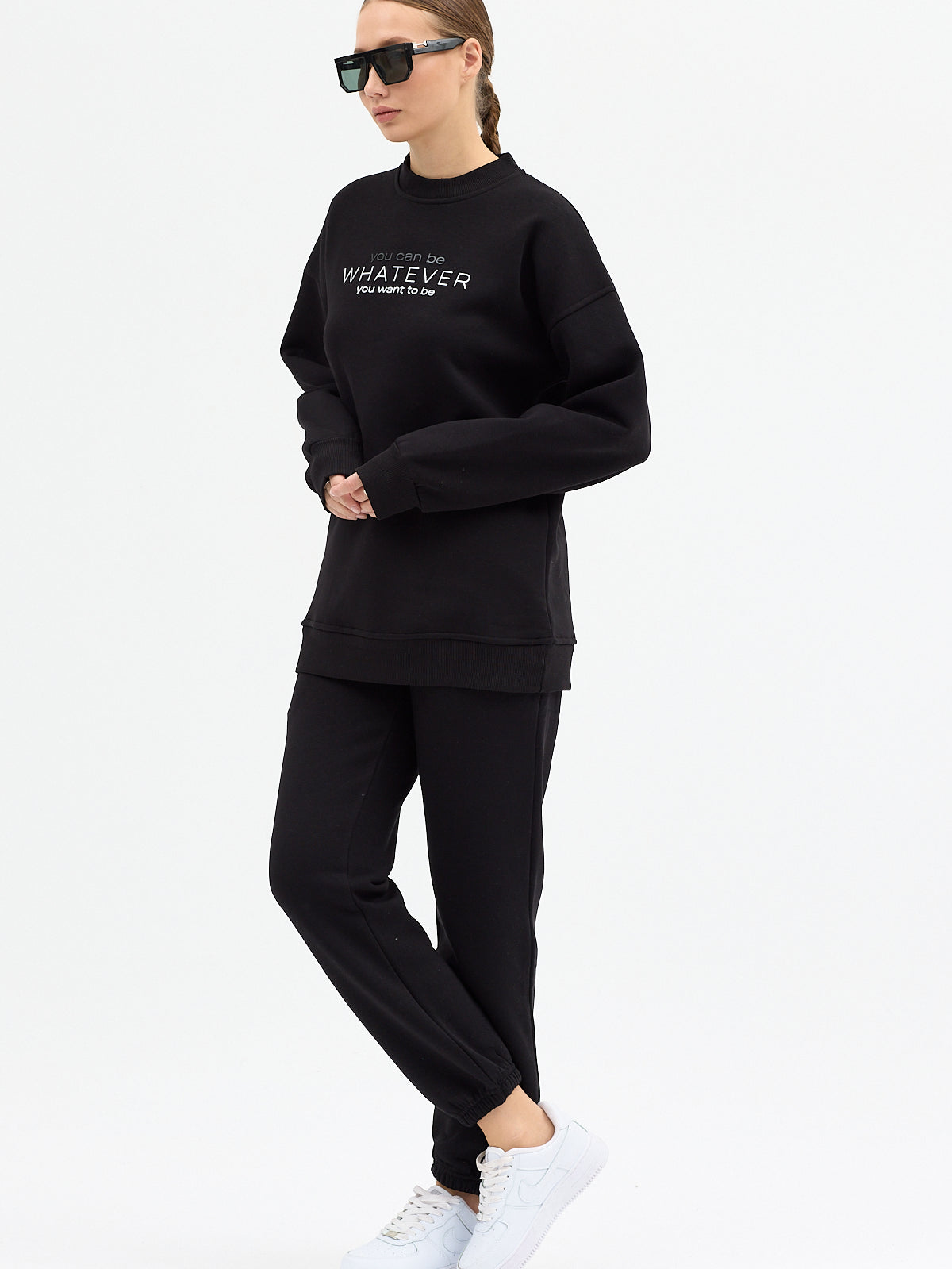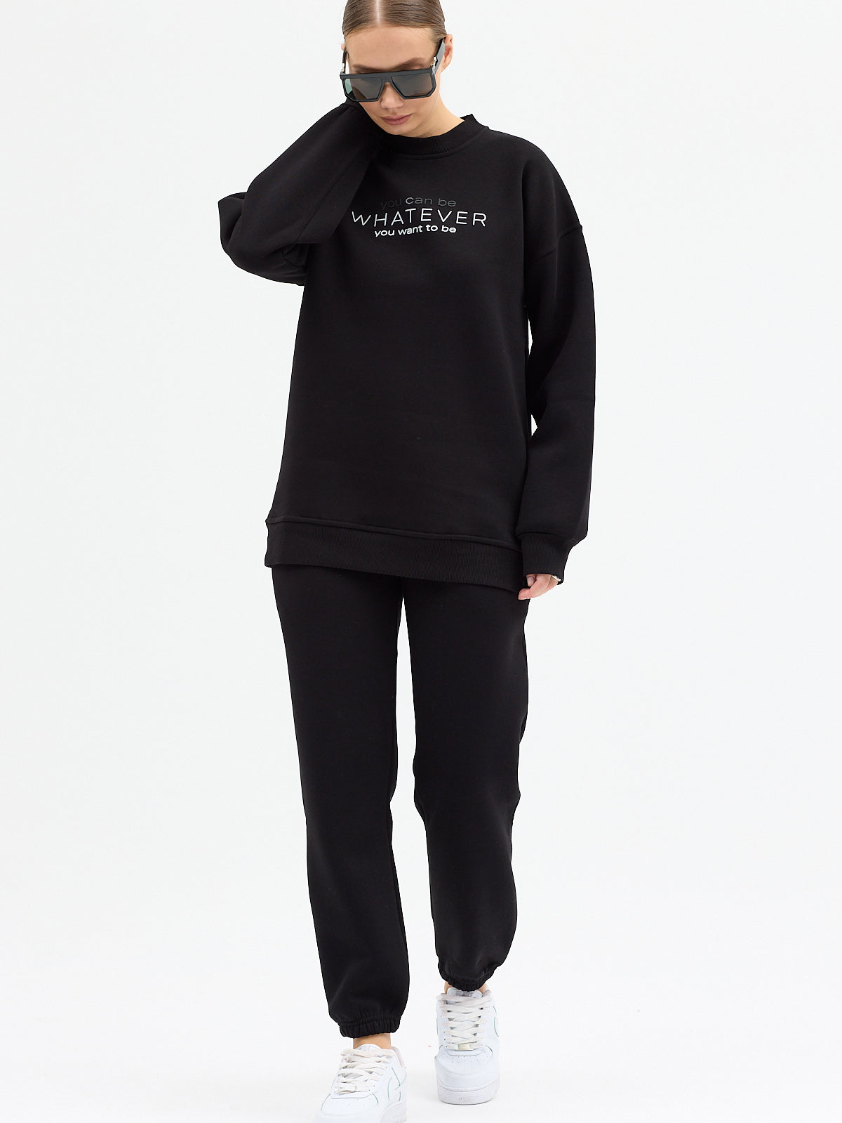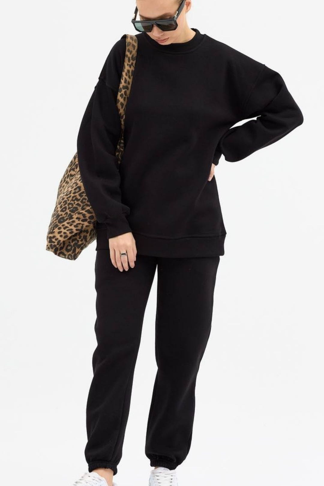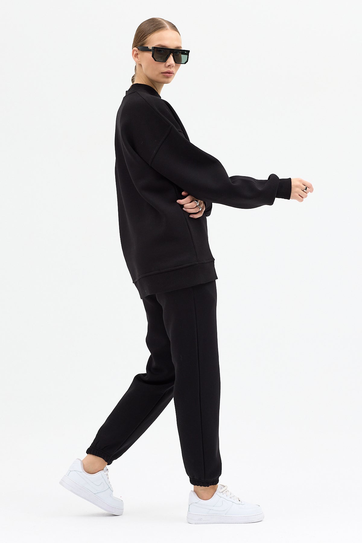 Regular Fit 2'li Takım Sweatshirt Beli Lastikli Jogger Siyah Eşofman Altı