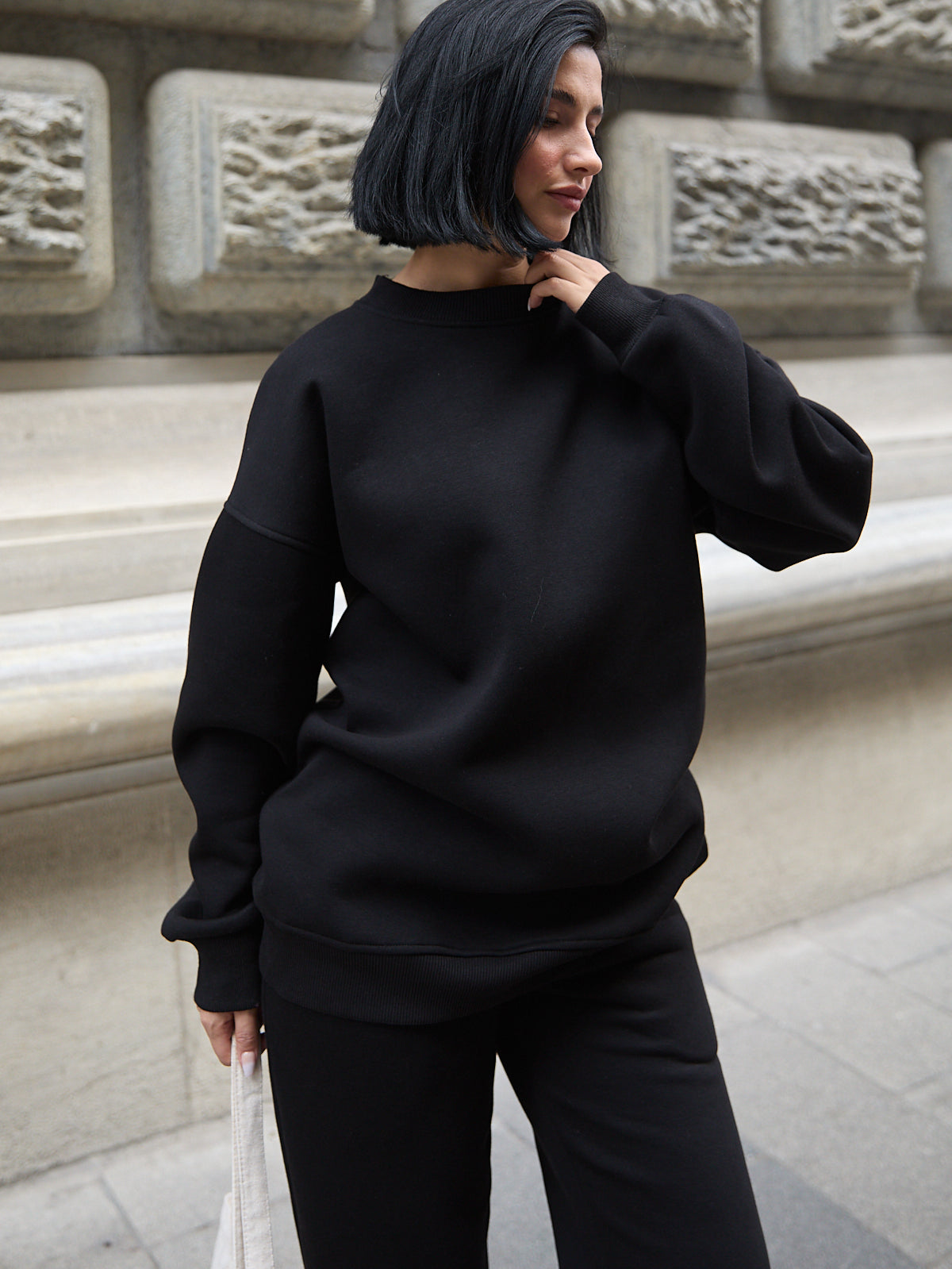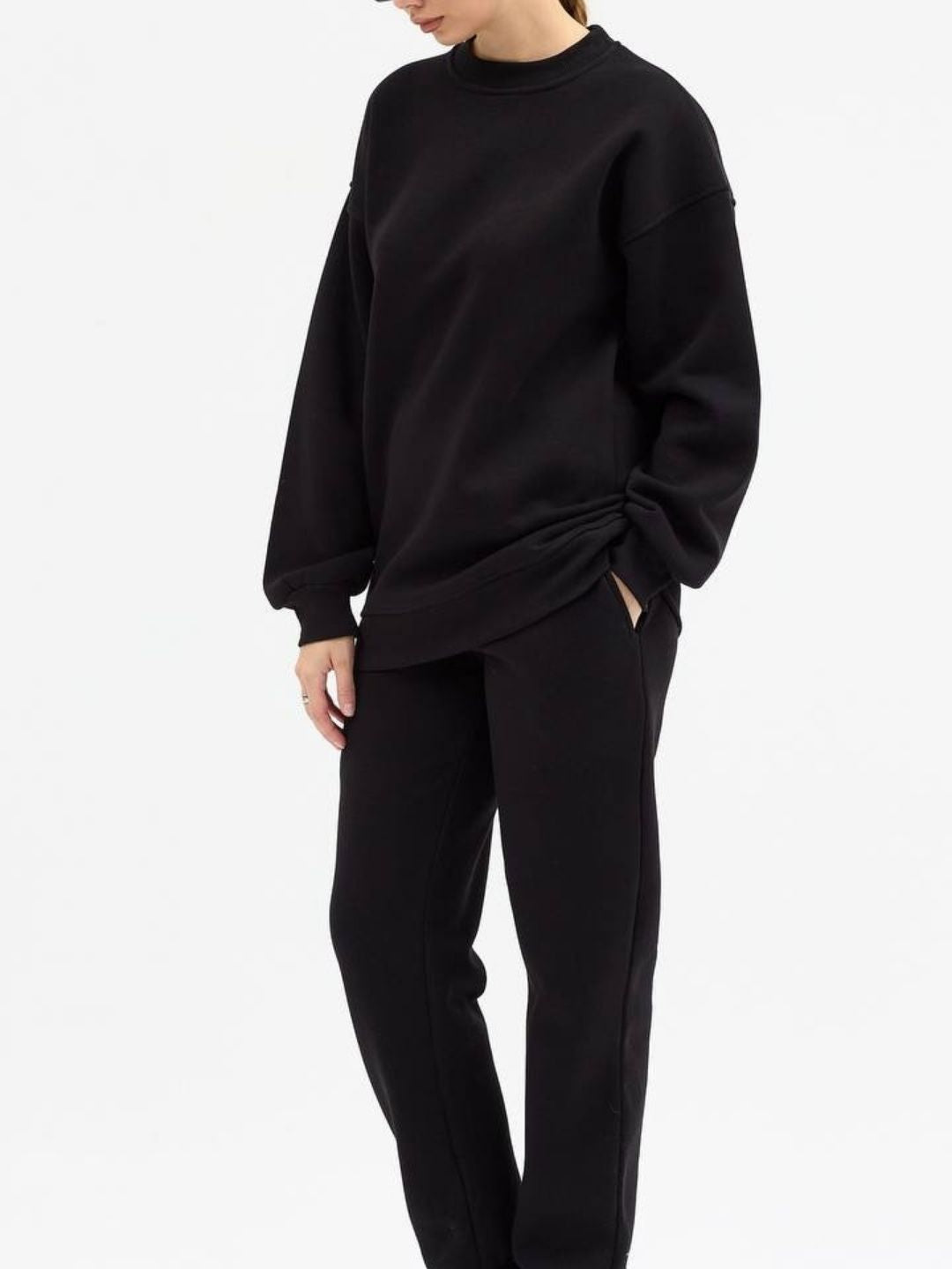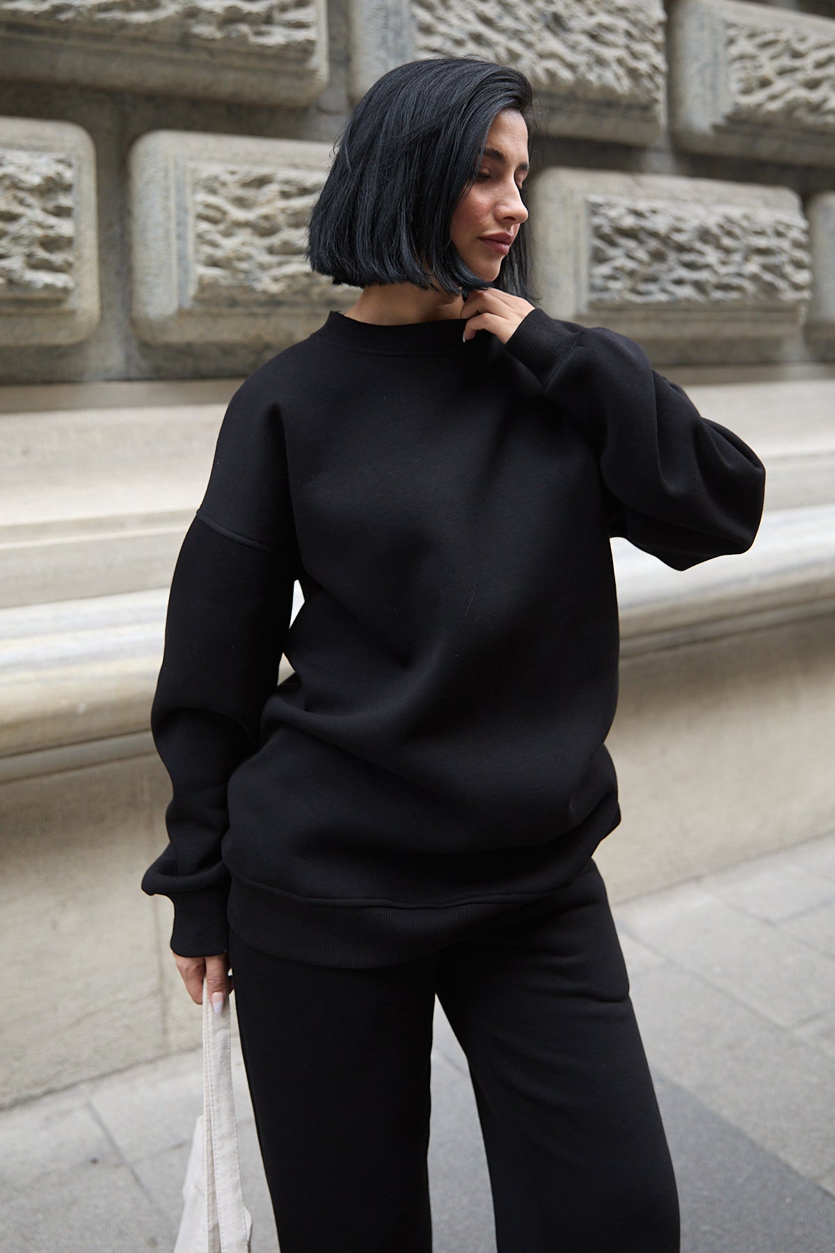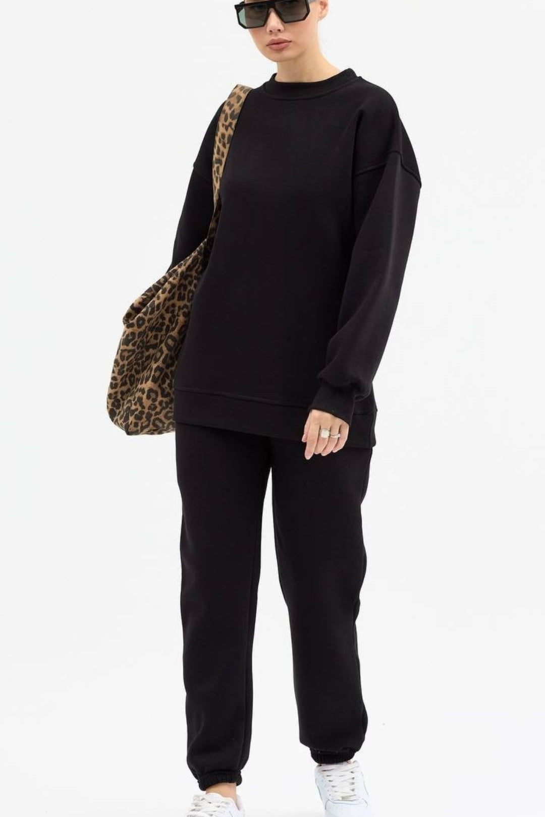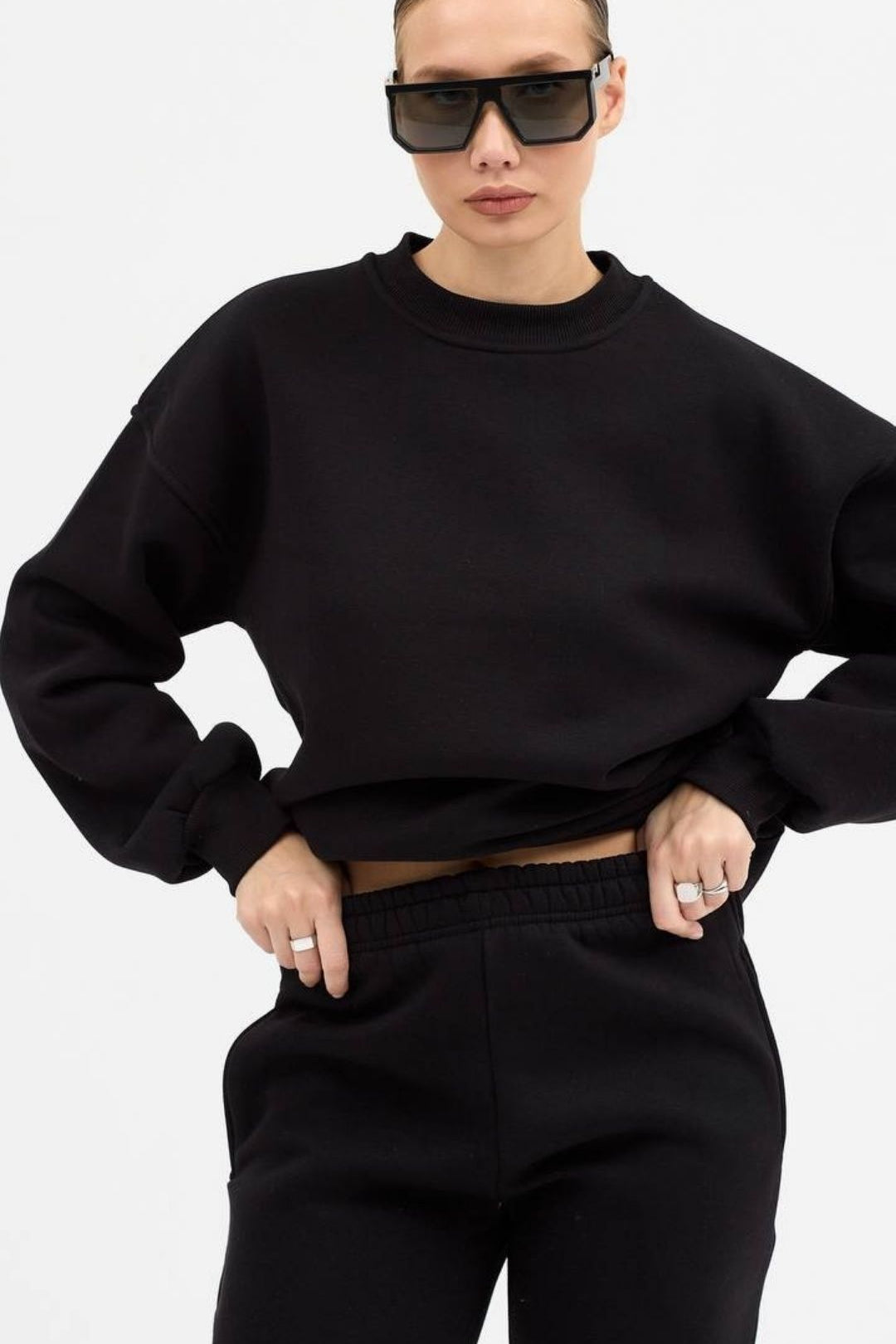 Regular Fit 2'li Takım Sweatshirt Beli Lastikli Jogger Siyah Eşofman Altı