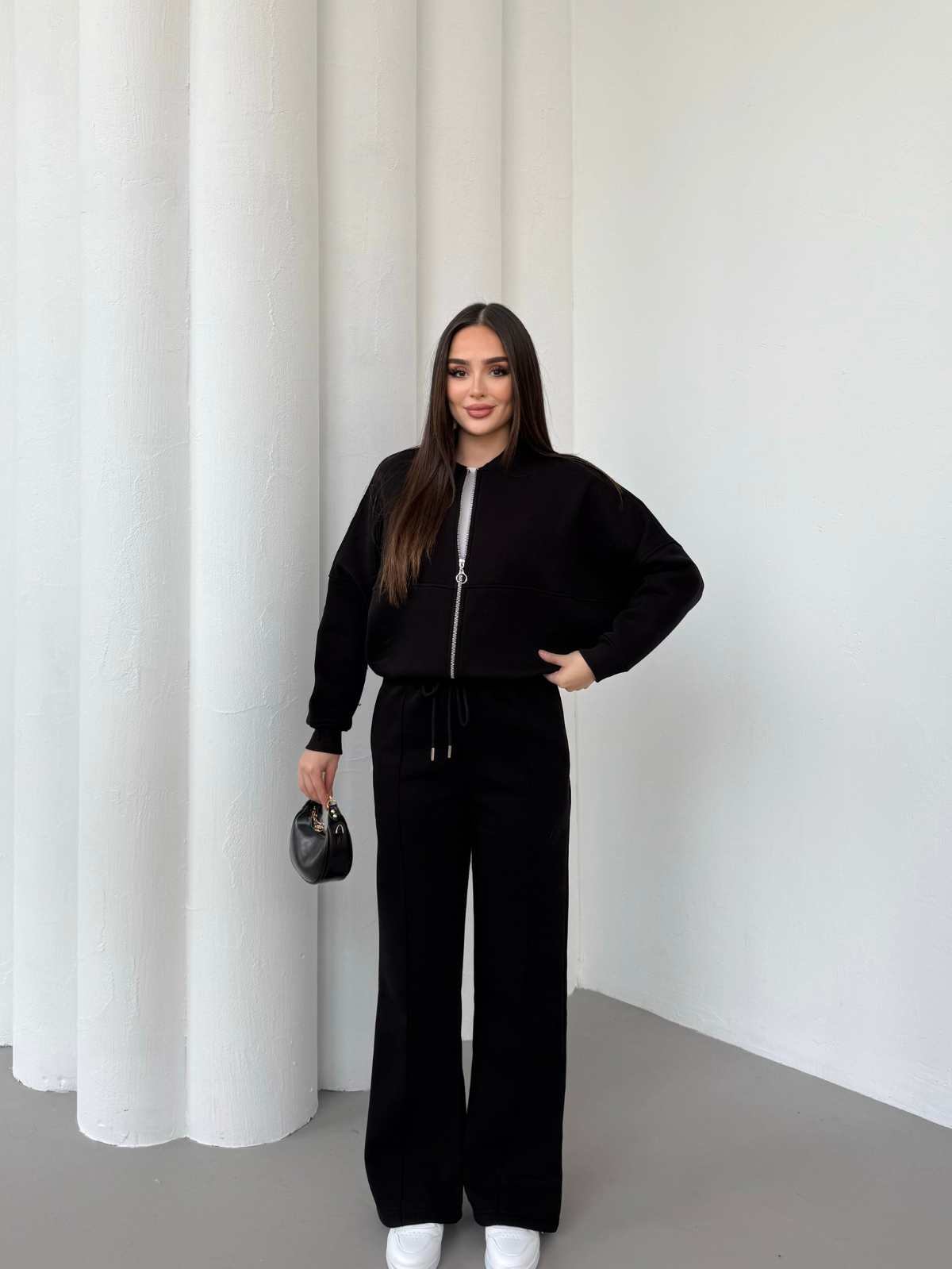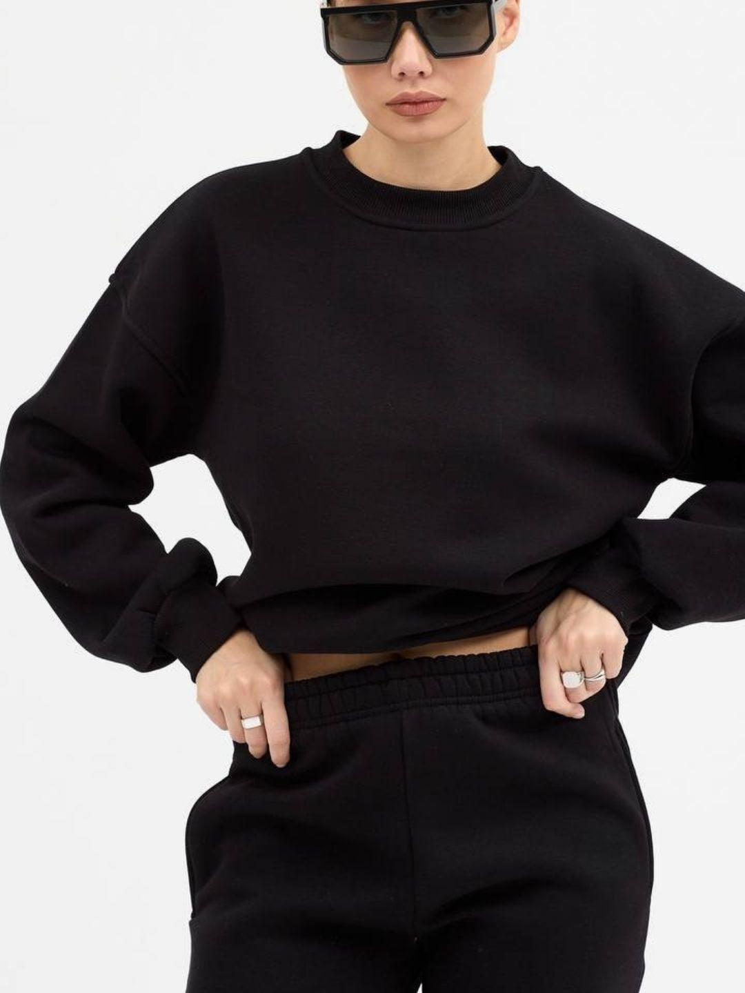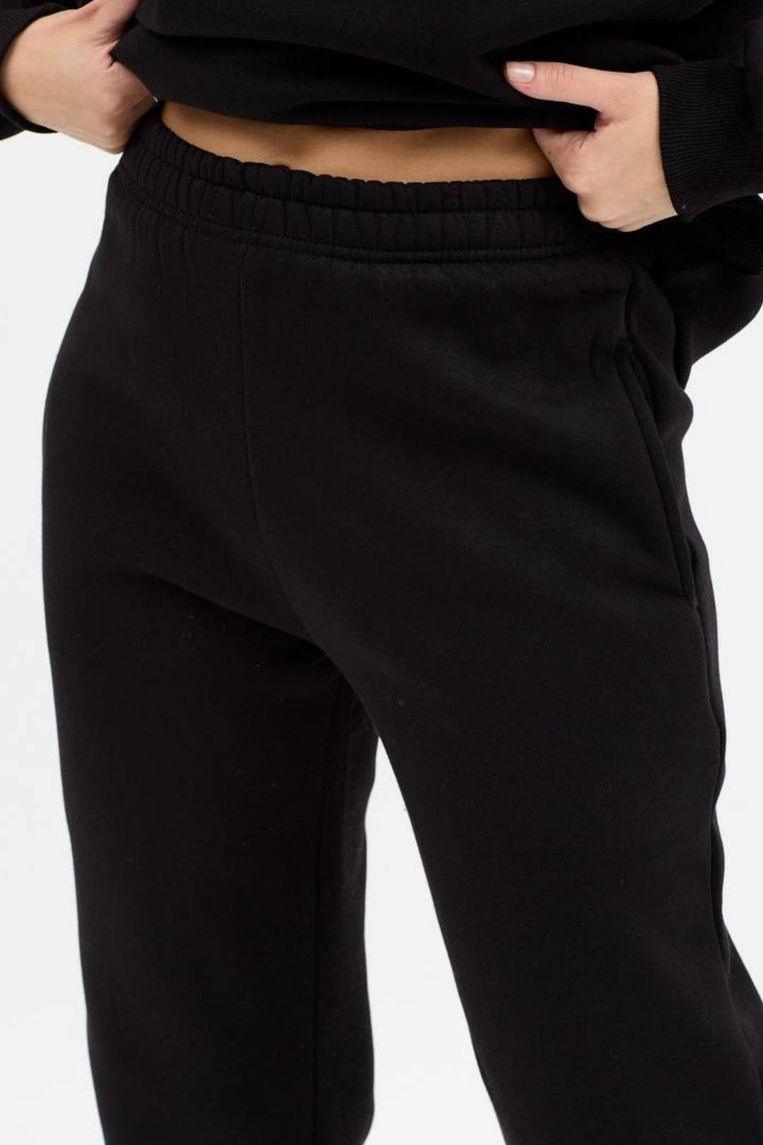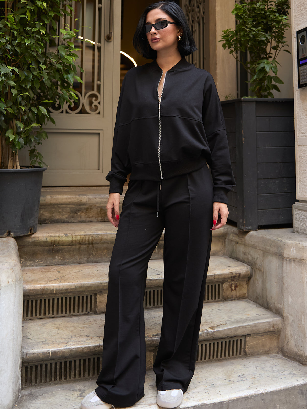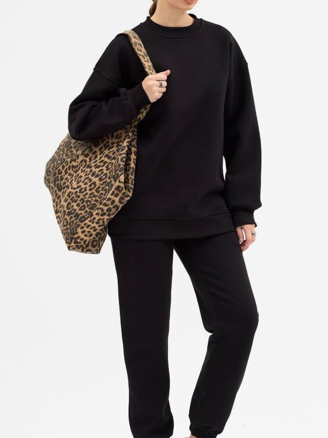 Regular Fit 2'li Takım Sweatshirt Beli Lastikli Jogger Siyah Eşofman Altı