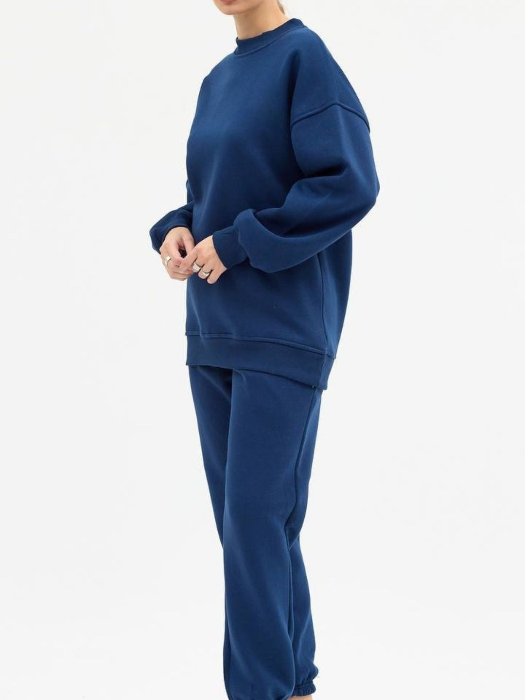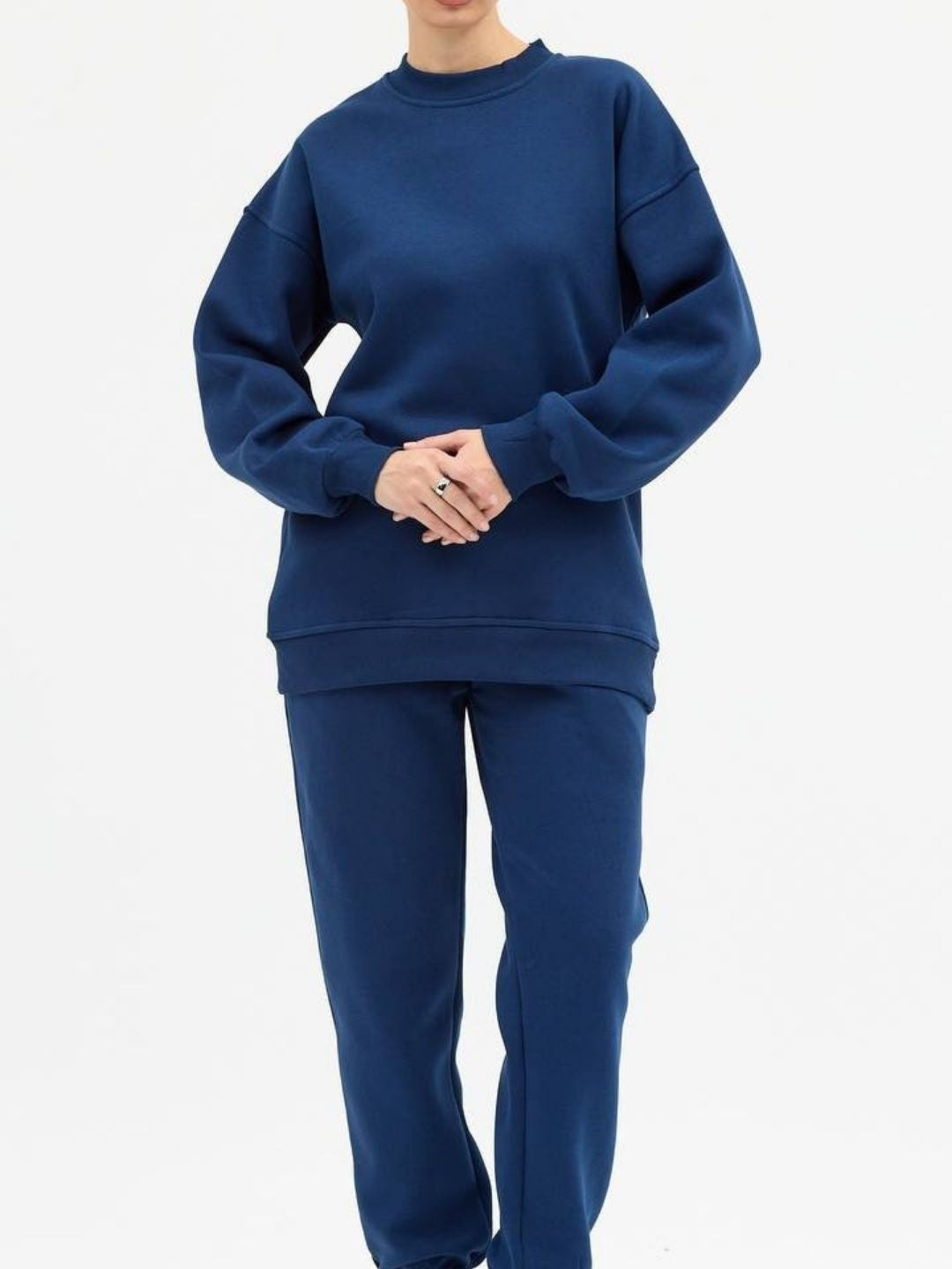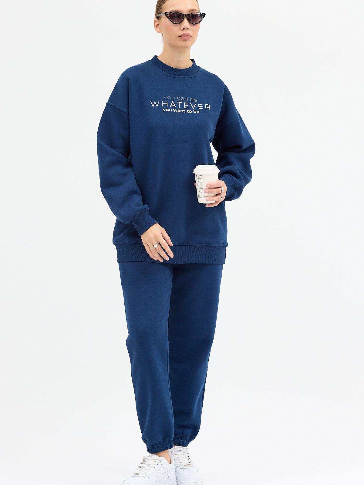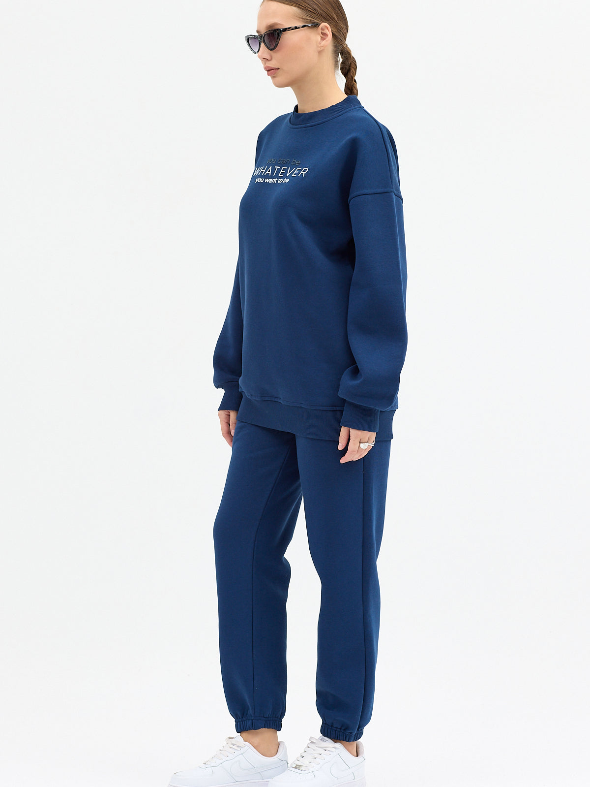 Kadın Oversize Kapüşonlu Lacivert Eşofman Takımı Kışlık Içi Pamuklu