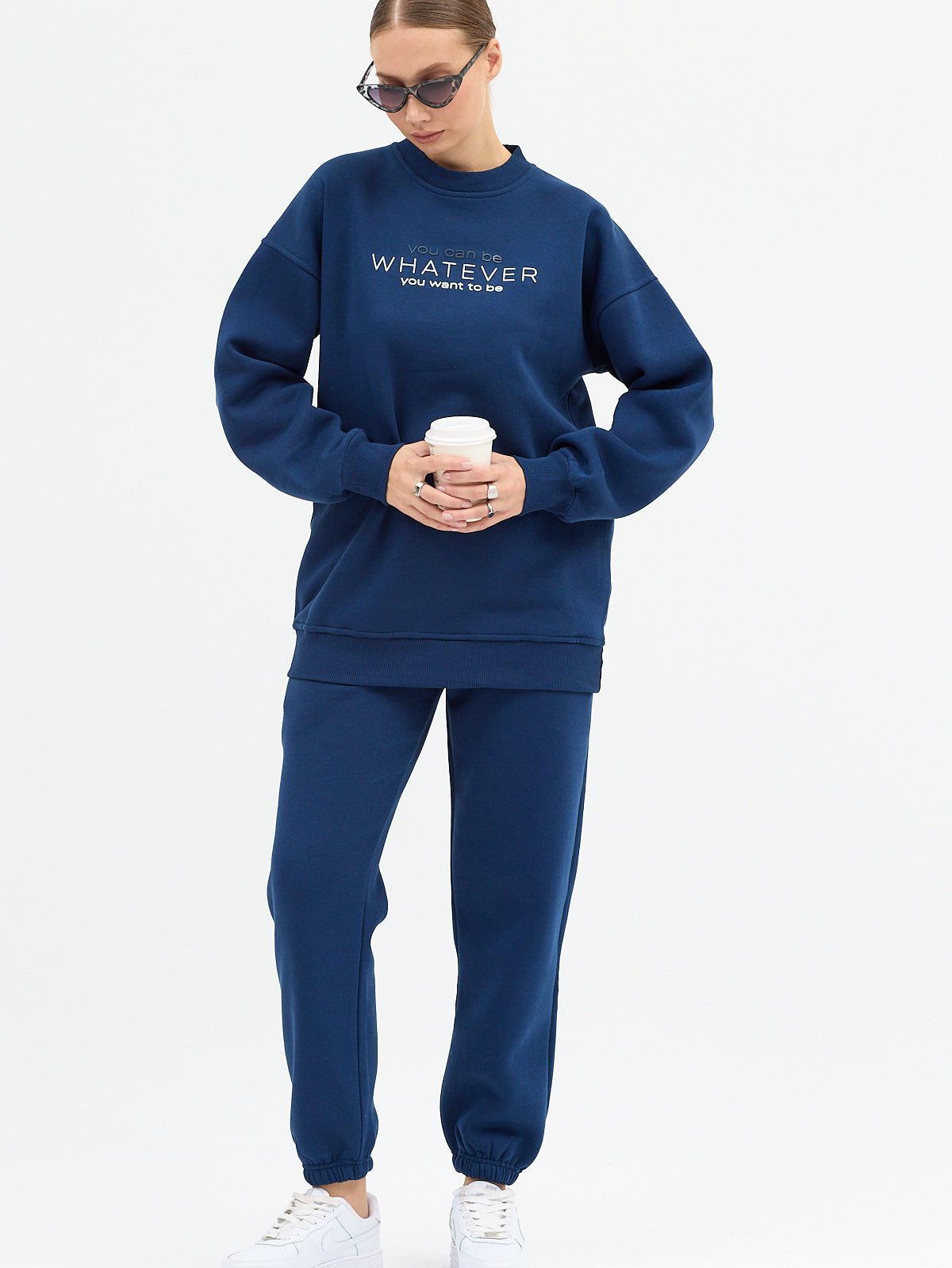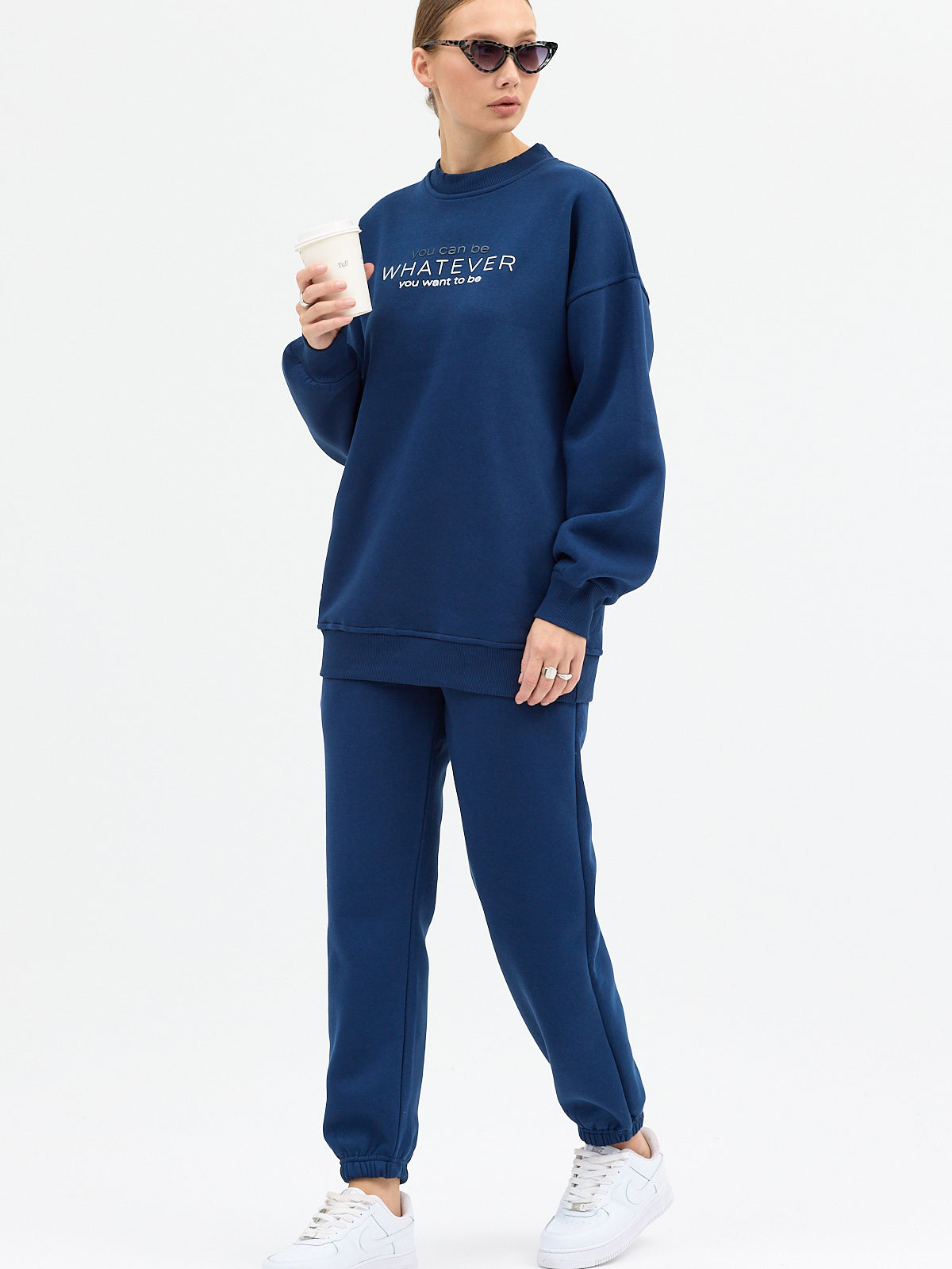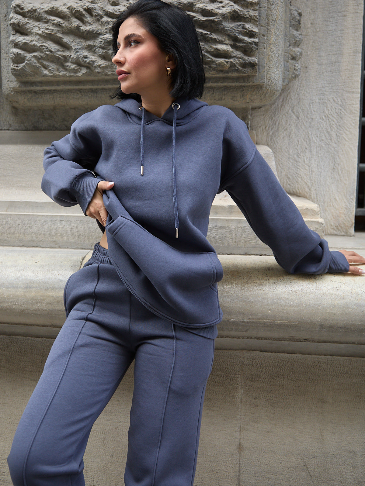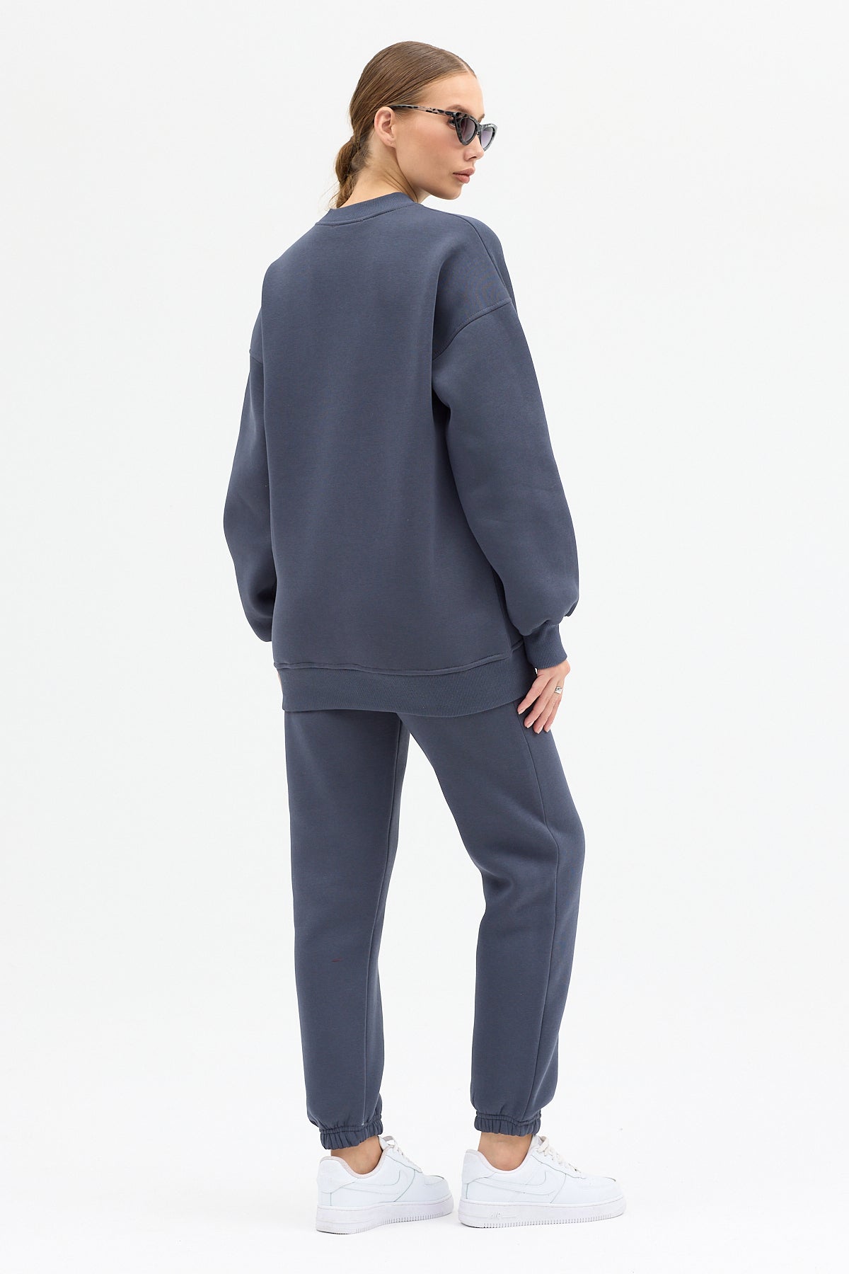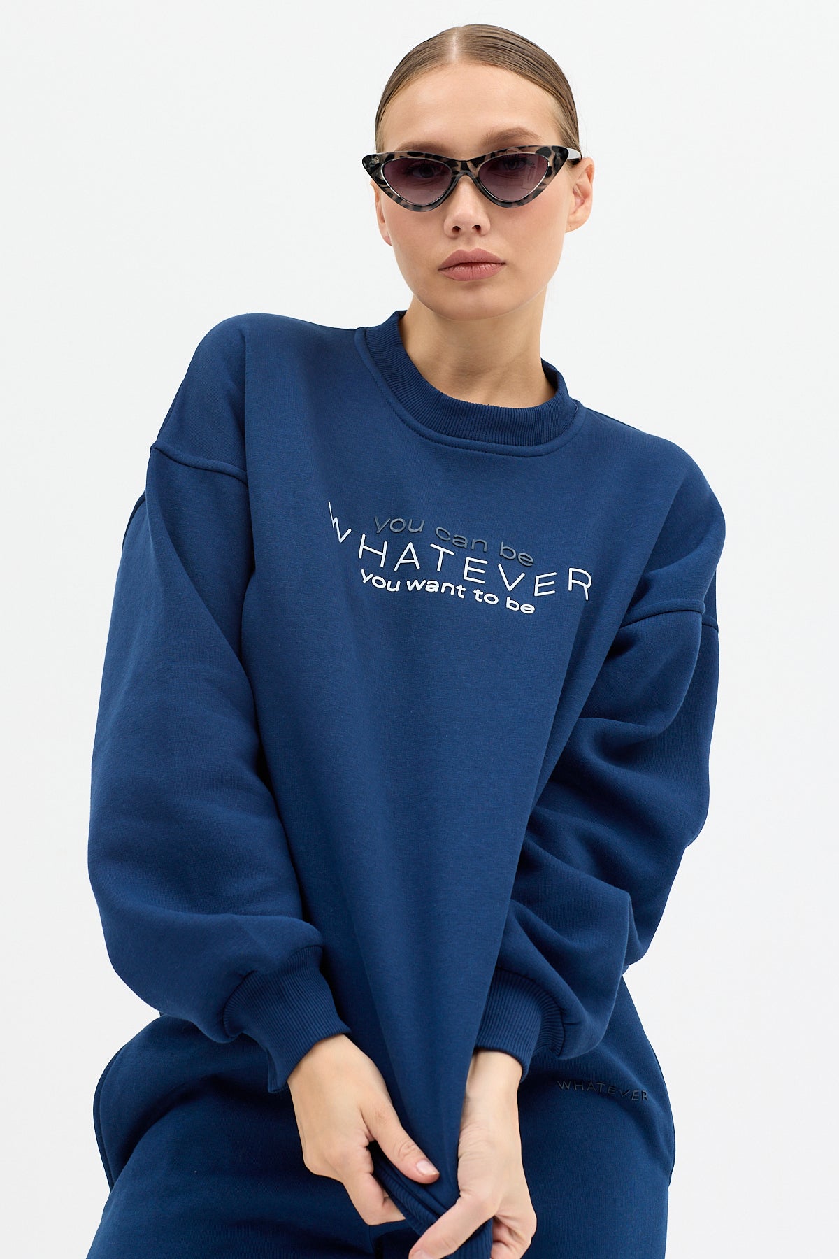 Kadın Oversize Kapüşonlu Lacivert Eşofman Takımı Kışlık Içi Pamuklu