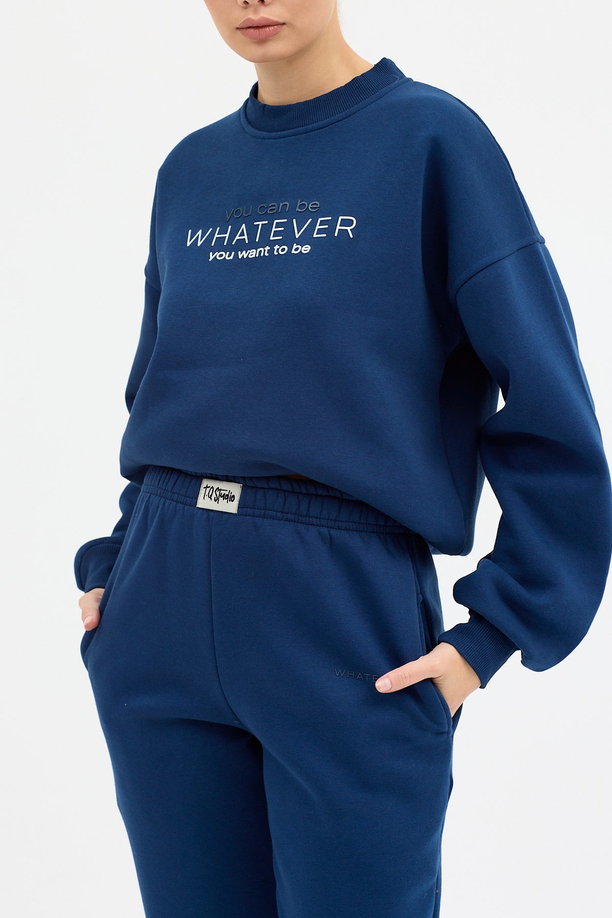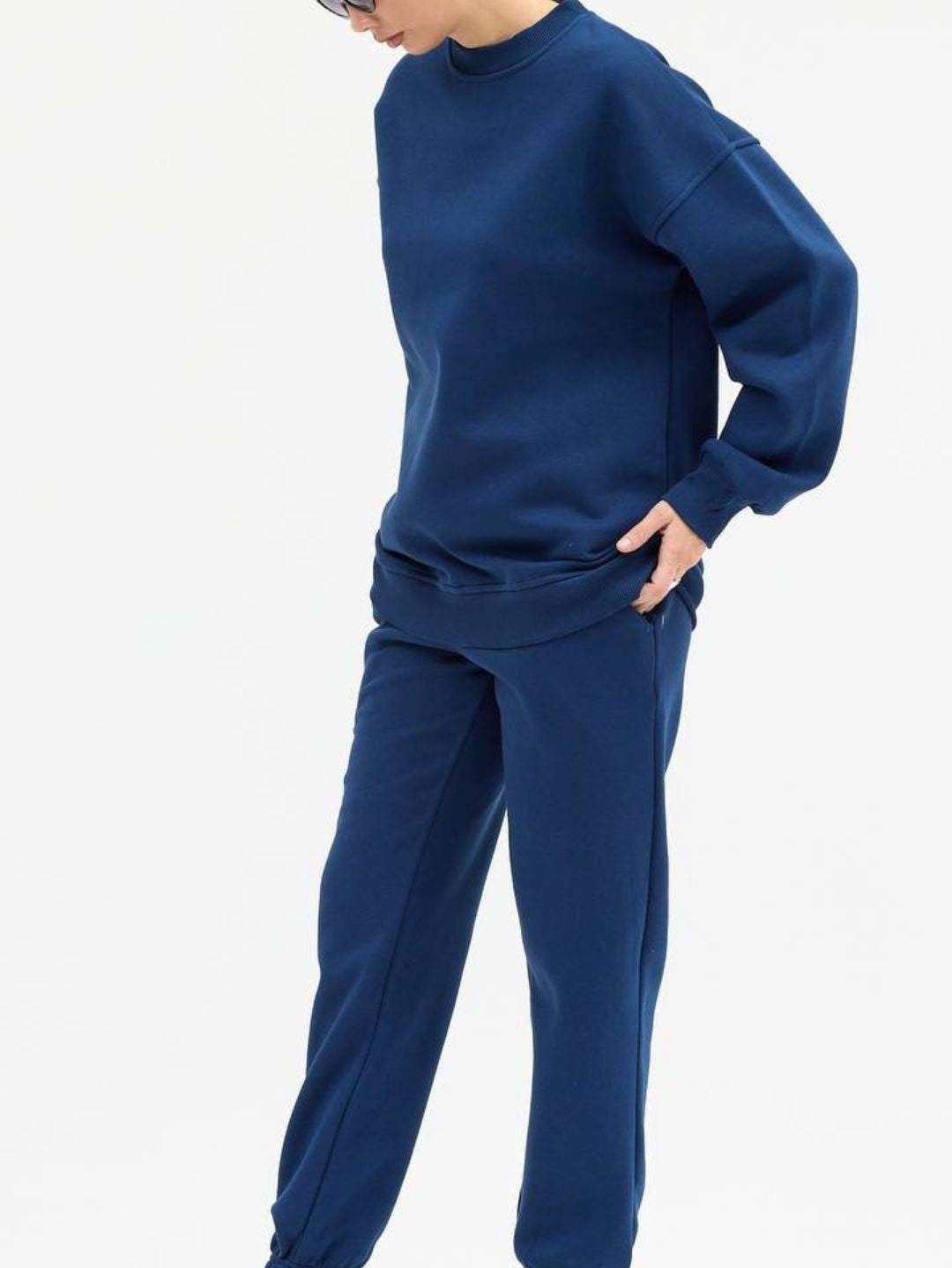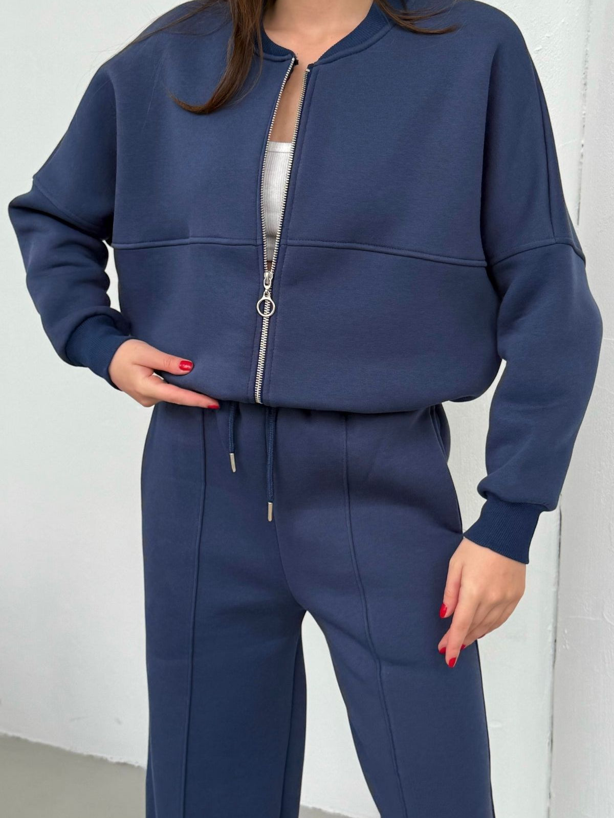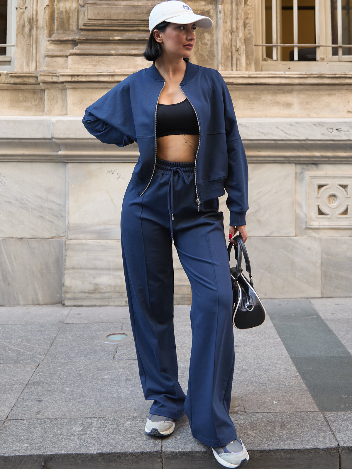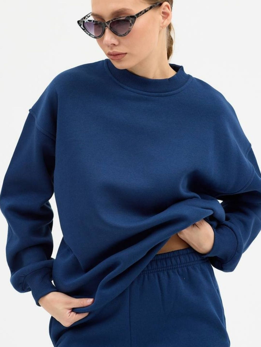 Kadın Oversize Kapüşonlu Lacivert Eşofman Takımı Kışlık Içi Pamuklu