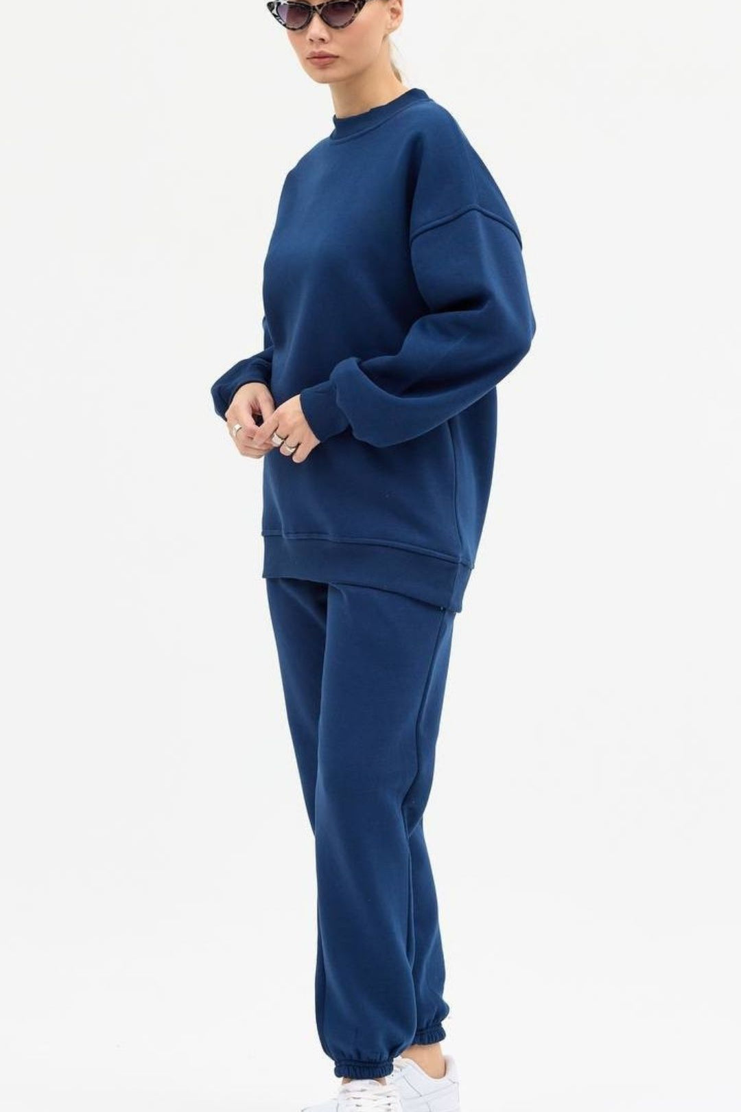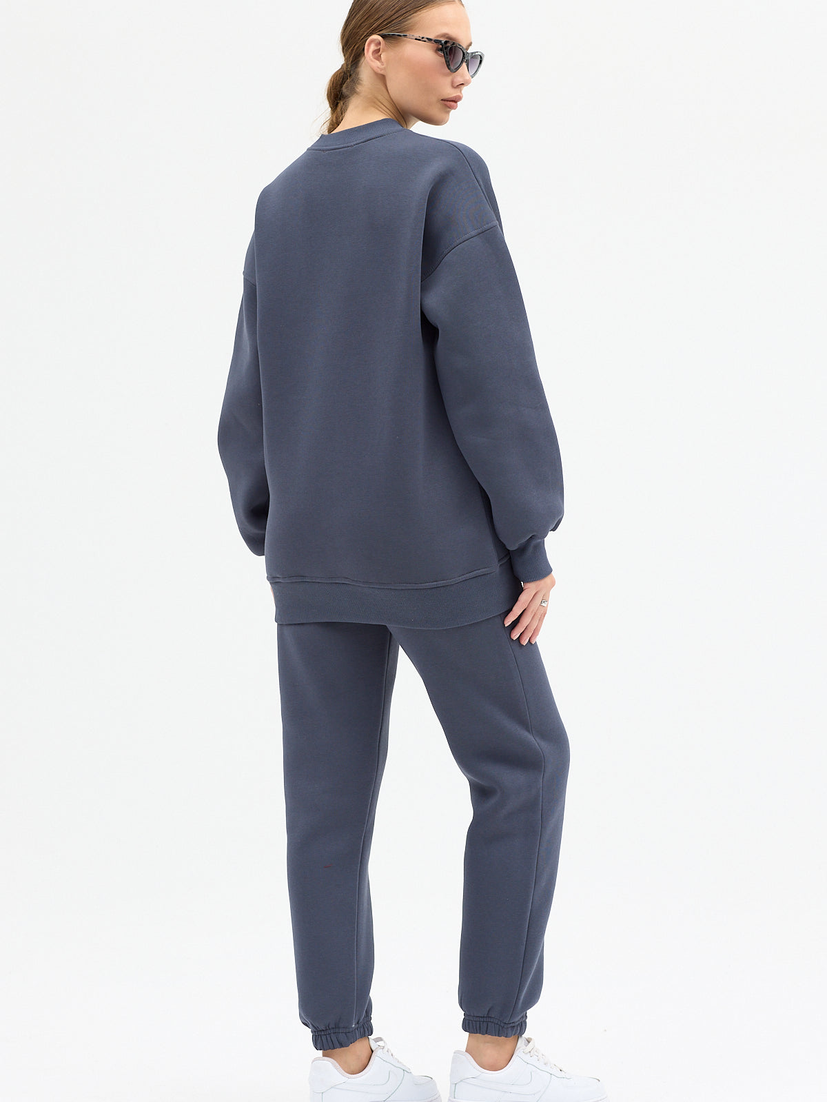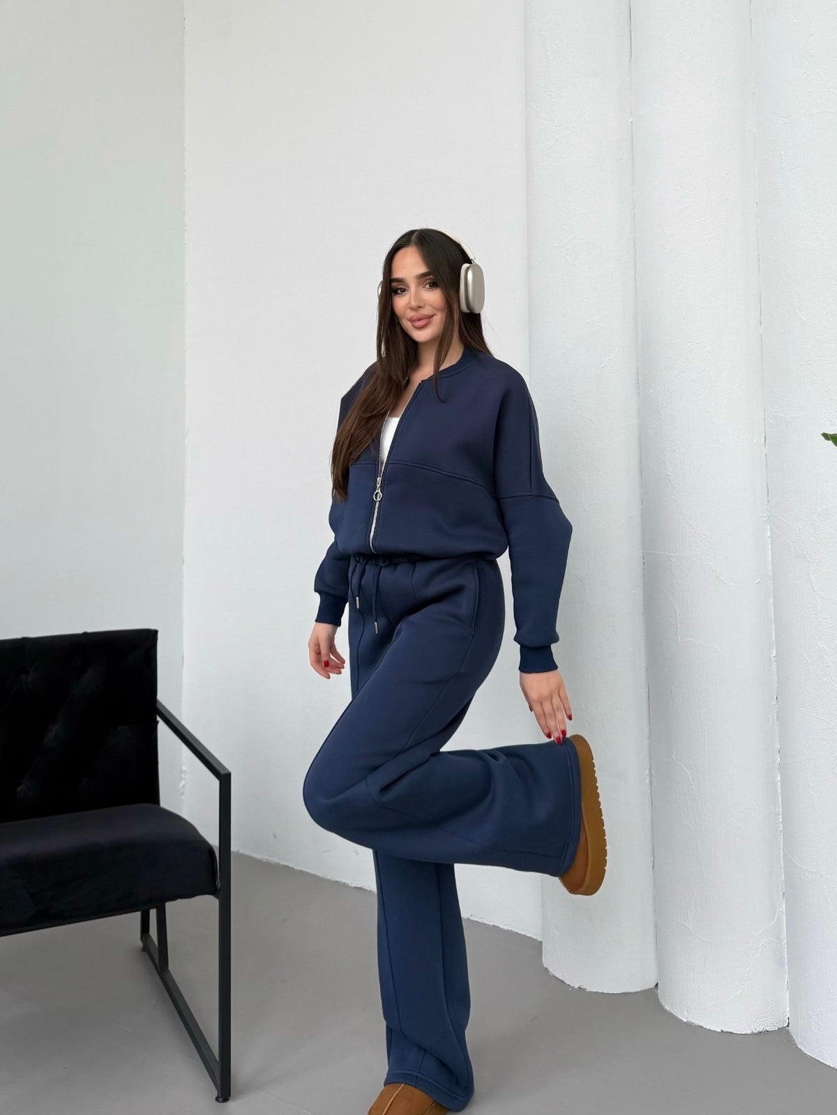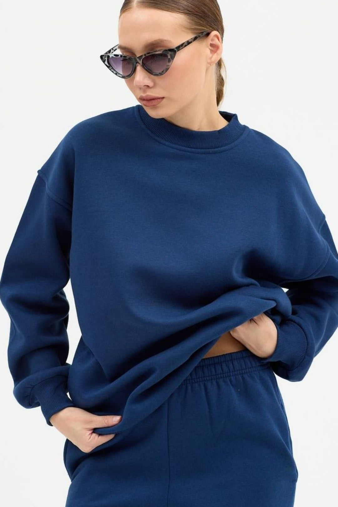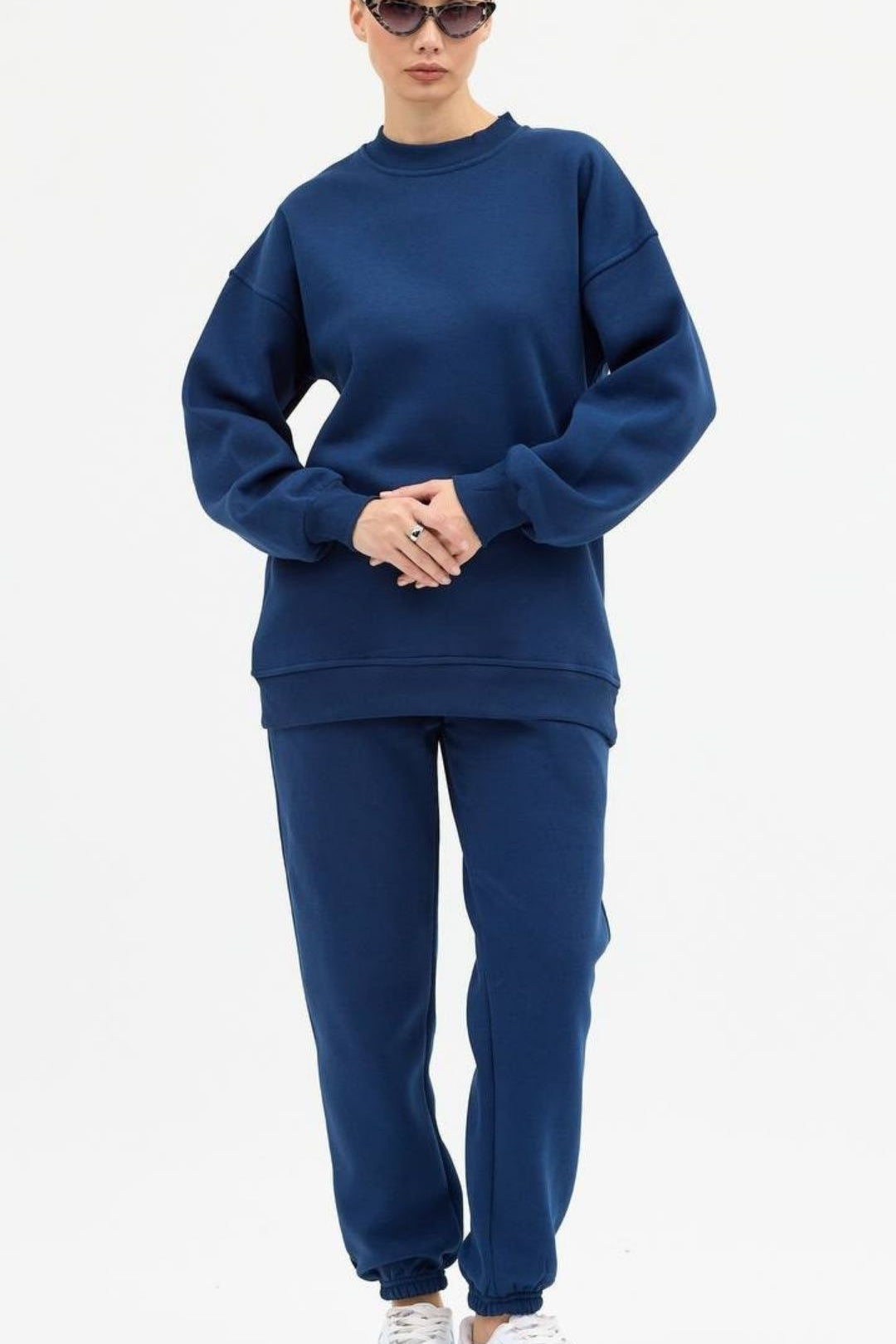 Kadın Oversize Kapüşonlu Lacivert Eşofman Takımı Kışlık Içi Pamuklu