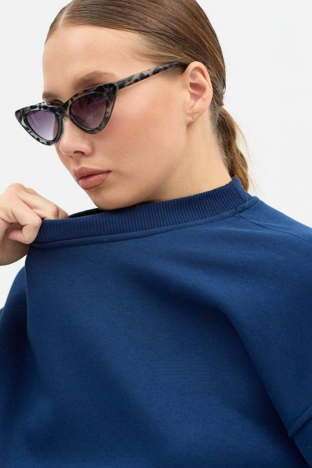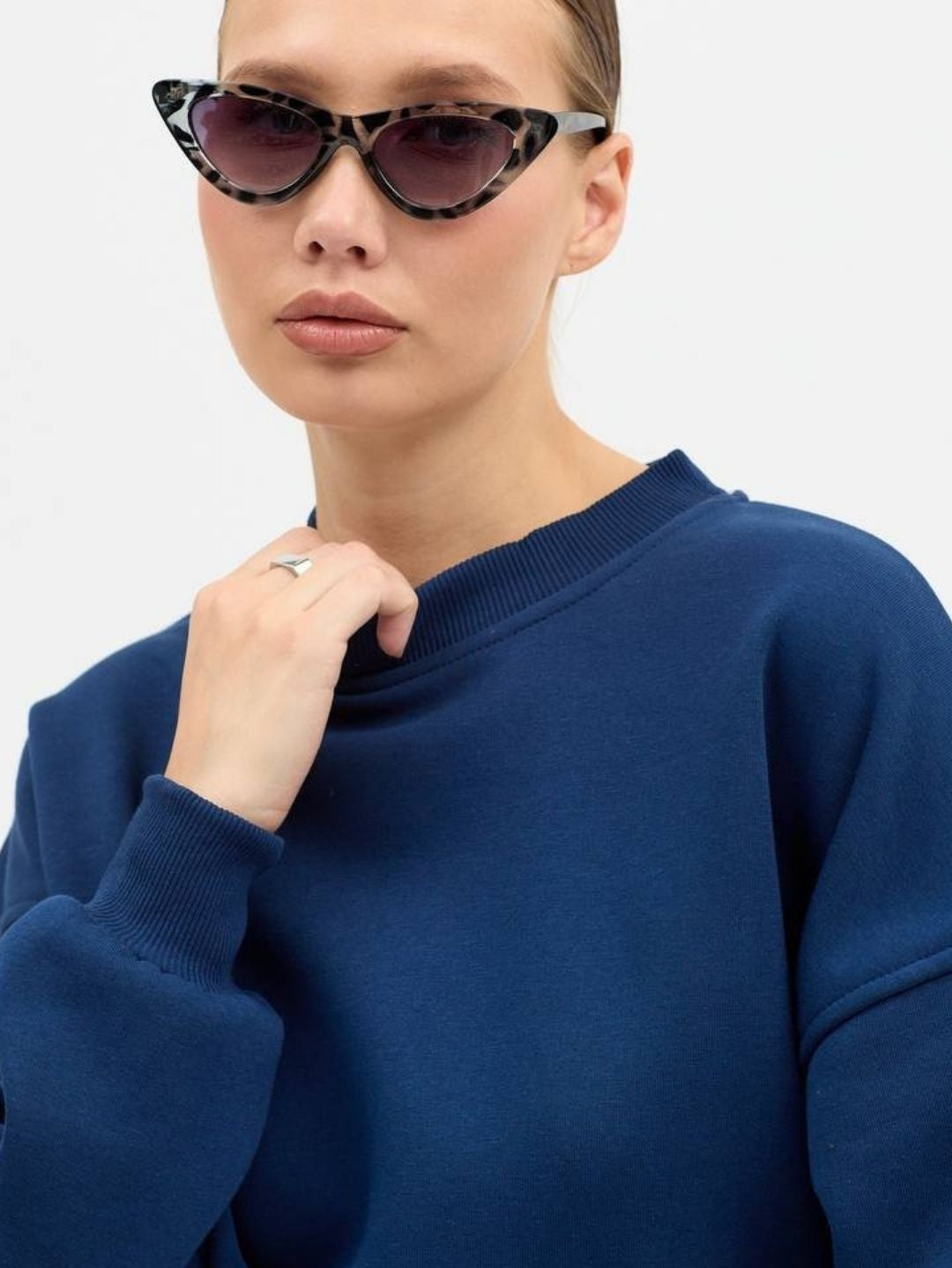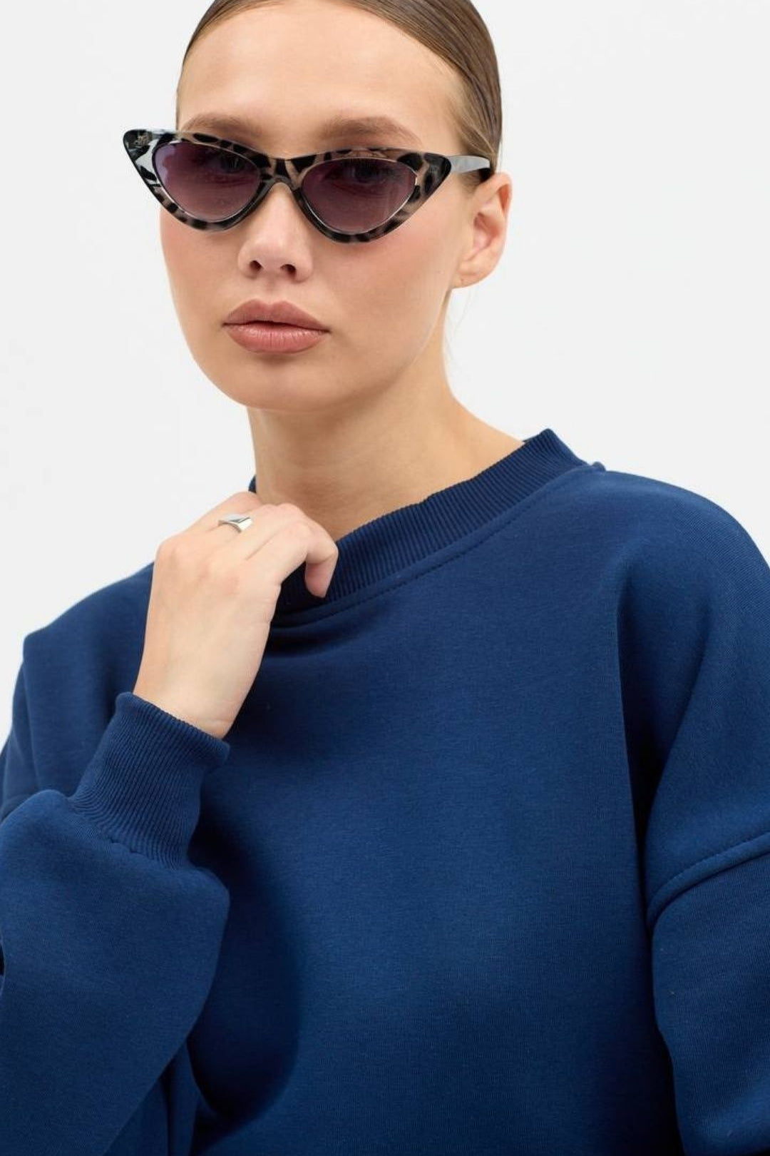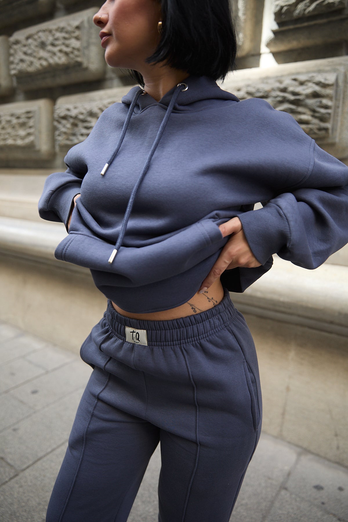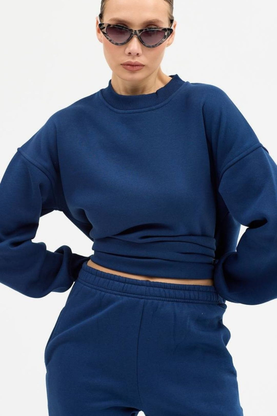 Kadın Oversize Kapüşonlu Lacivert Eşofman Takımı Kışlık Içi Pamuklu