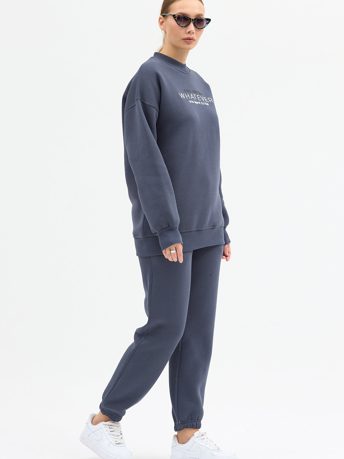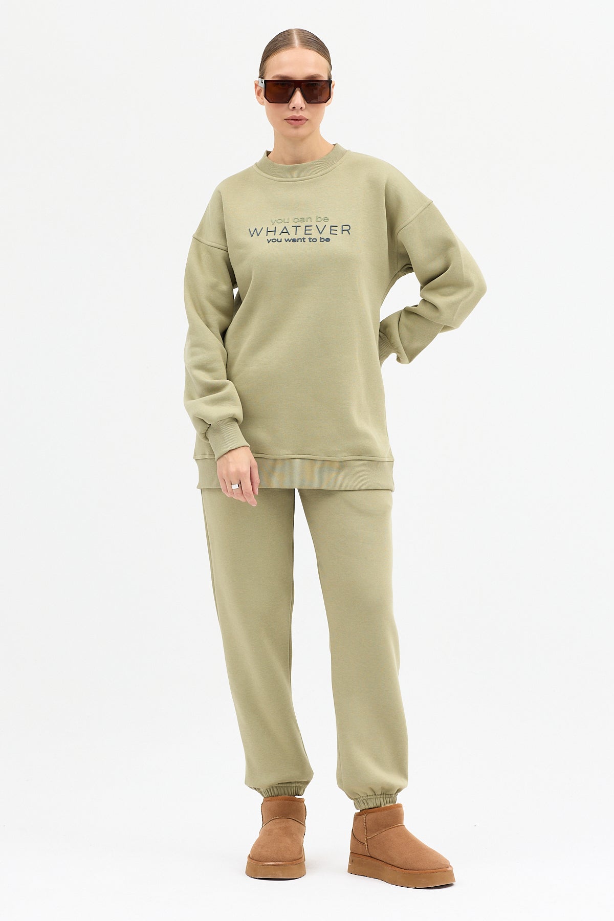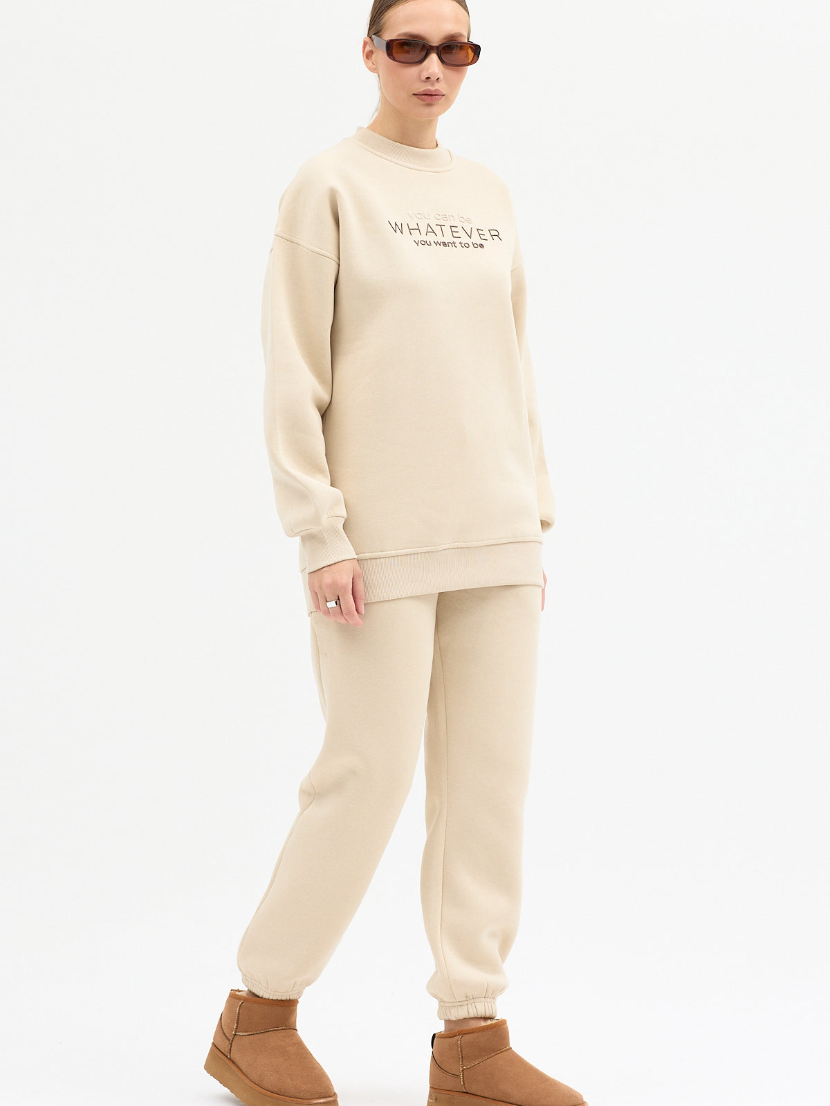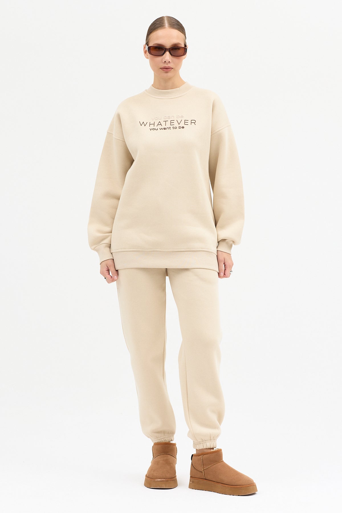 Kadın Whatever Baskılı Bisiklet Yaka Paçası Lastikli Oversize Eşofman Takımı