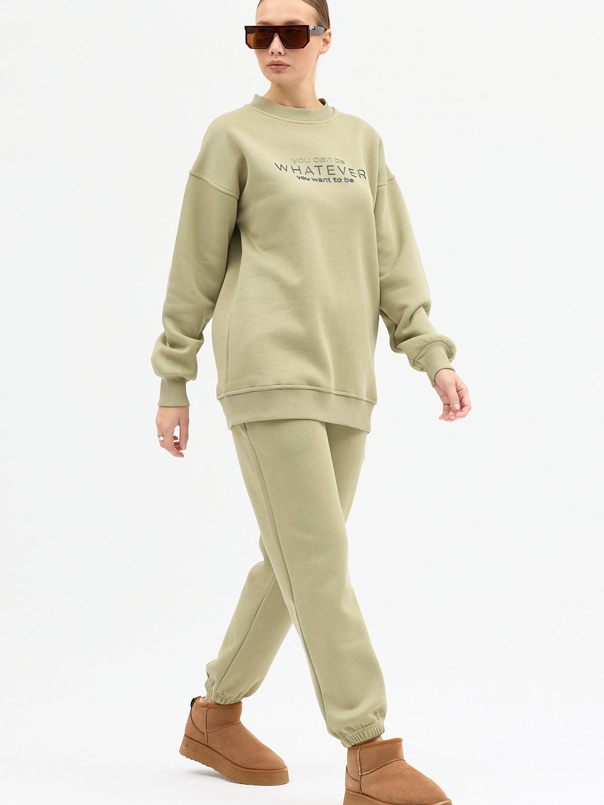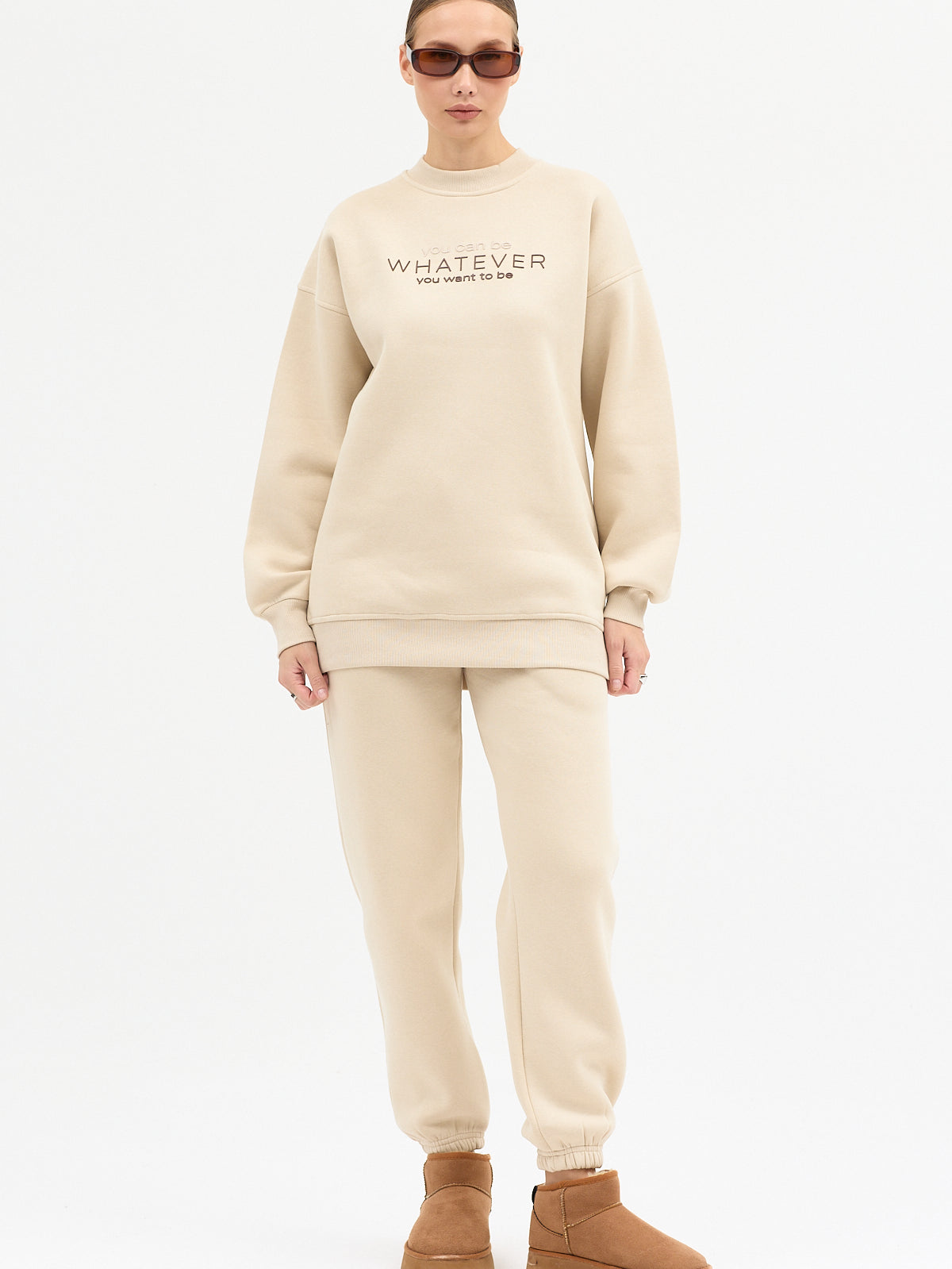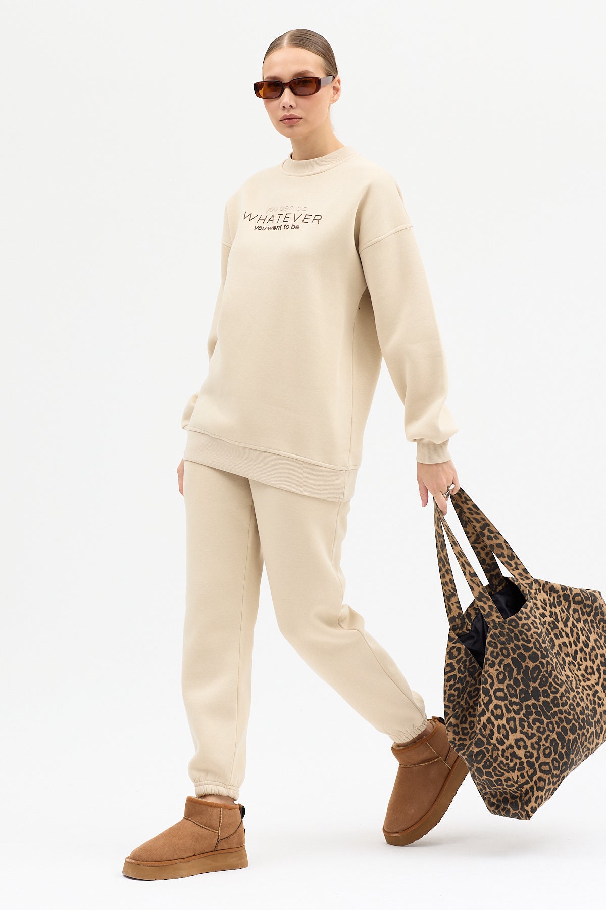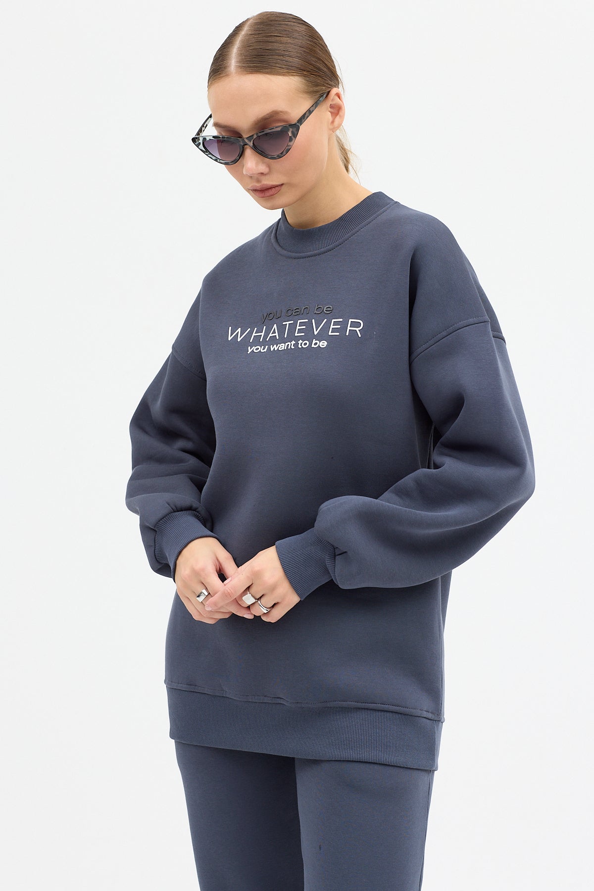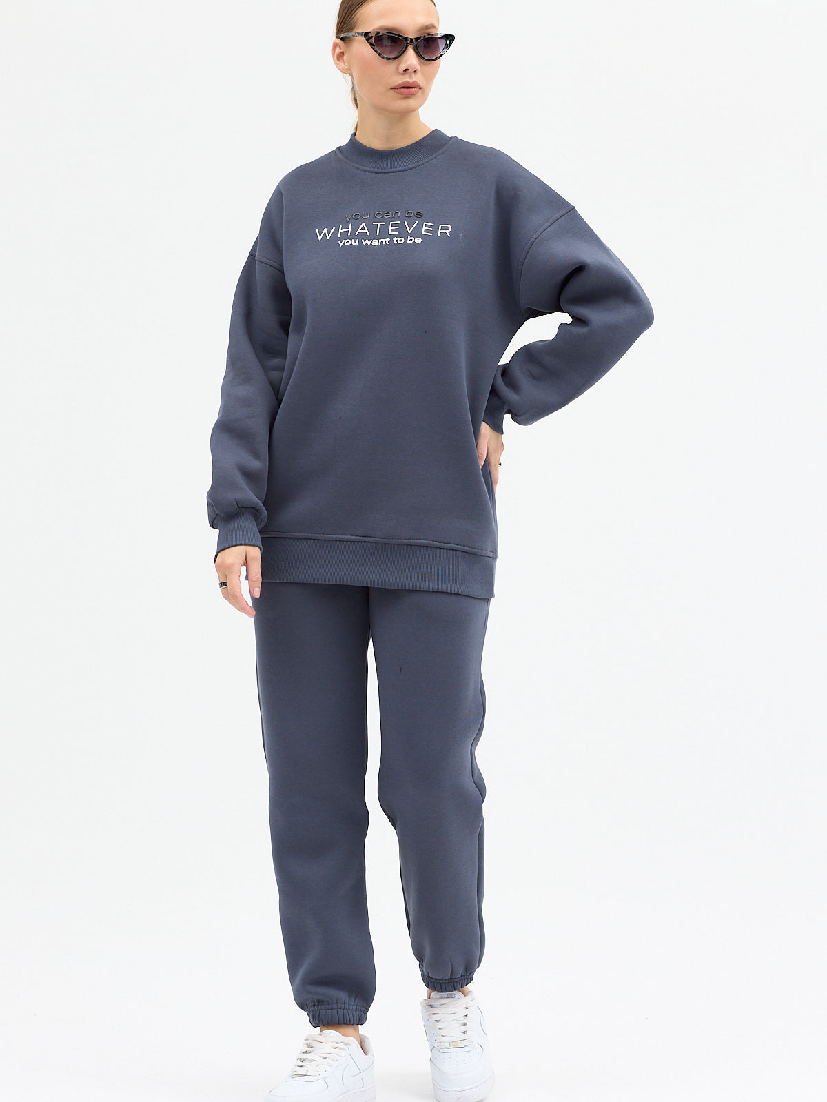 Kadın Whatever Baskılı Bisiklet Yaka Paçası Lastikli Oversize Eşofman Takımı
