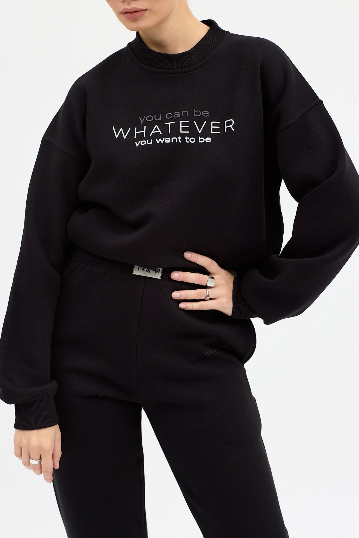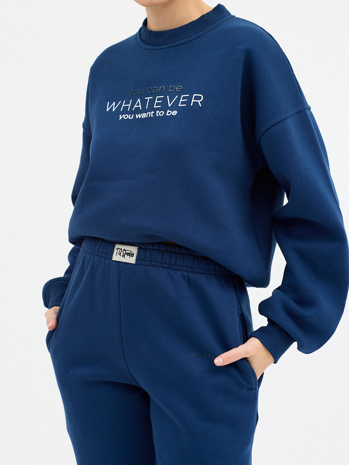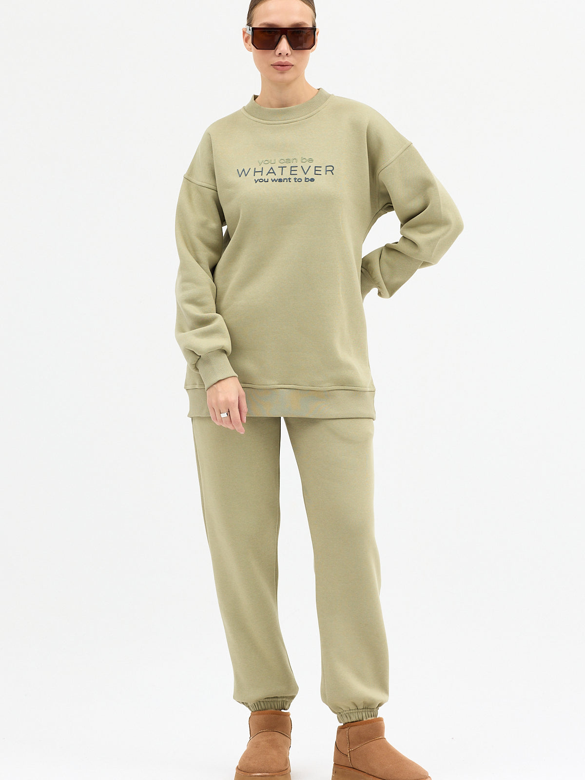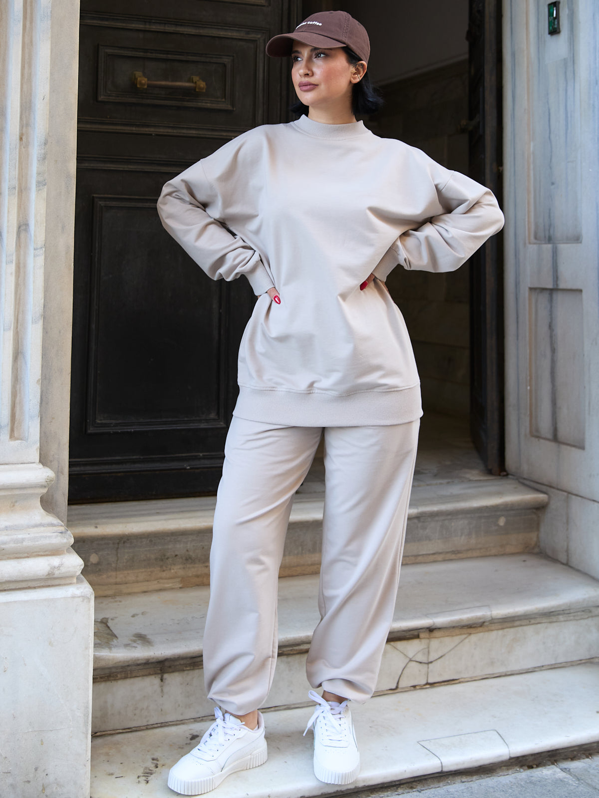 Kadın Whatever Baskılı Bisiklet Yaka Paçası Lastikli Oversize Eşofman Takımı