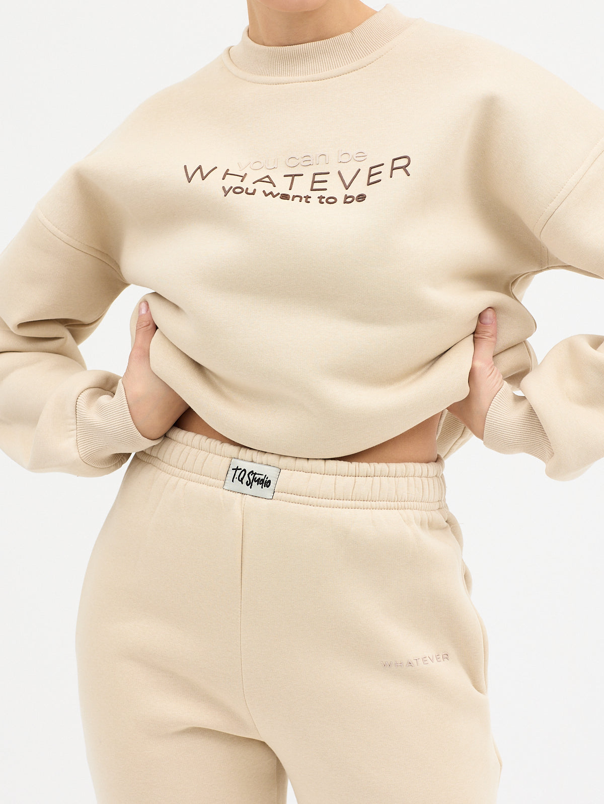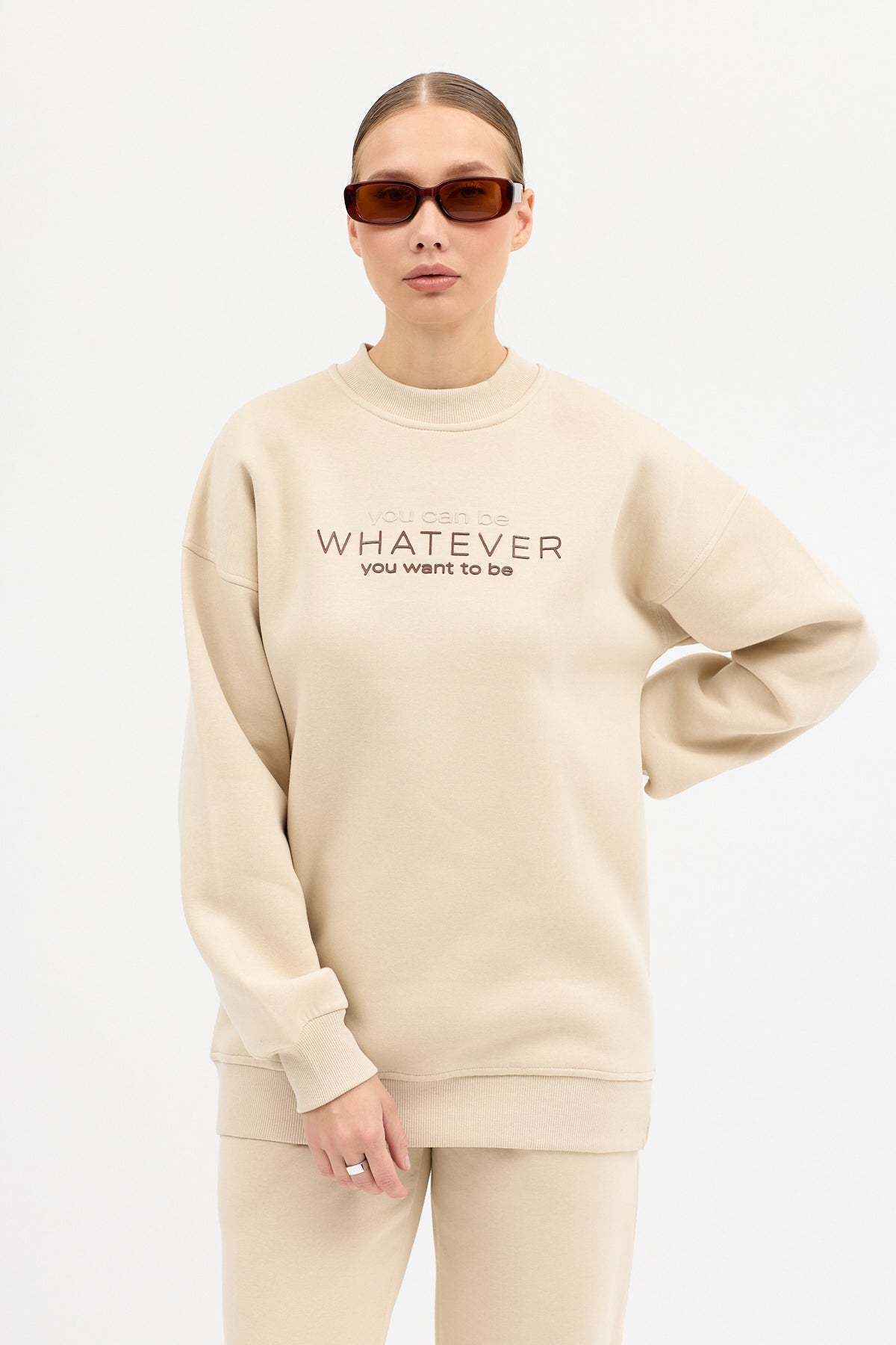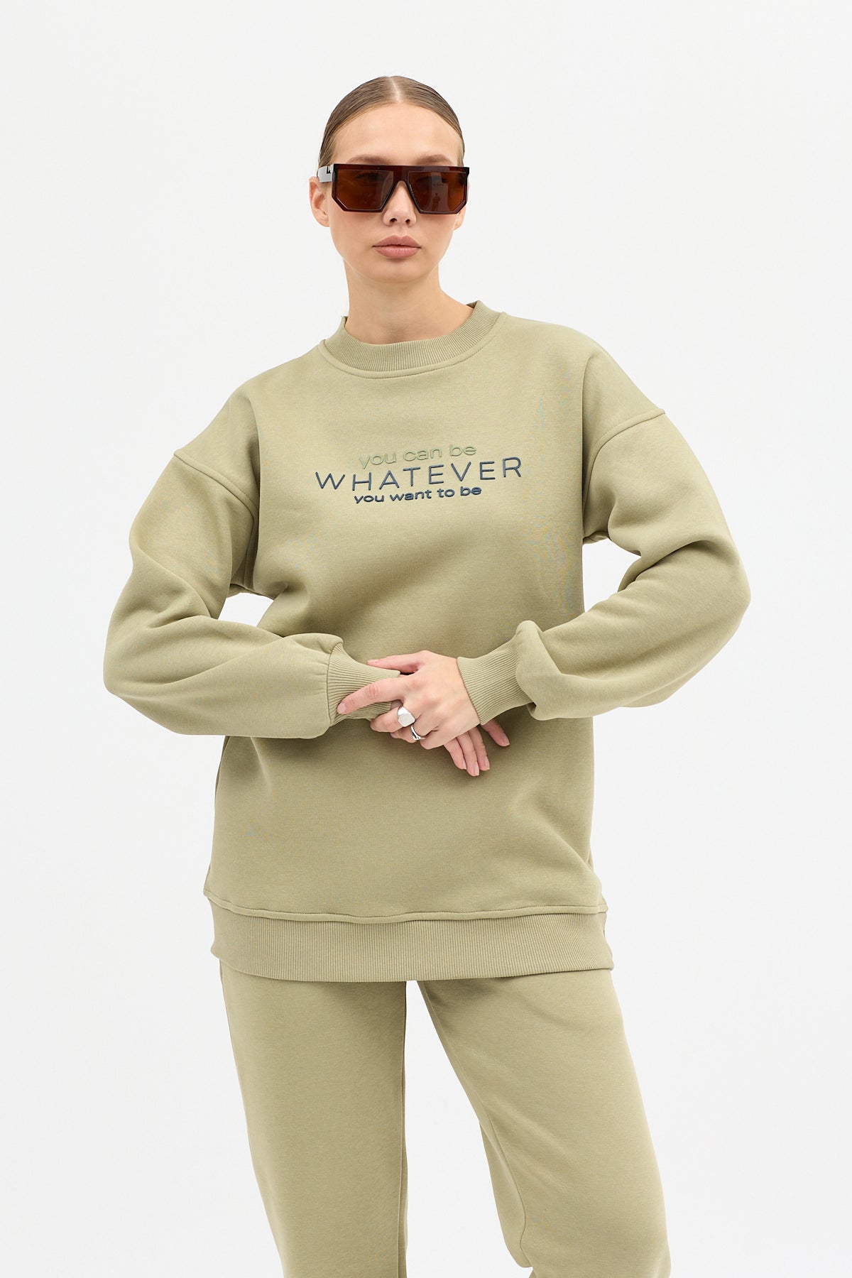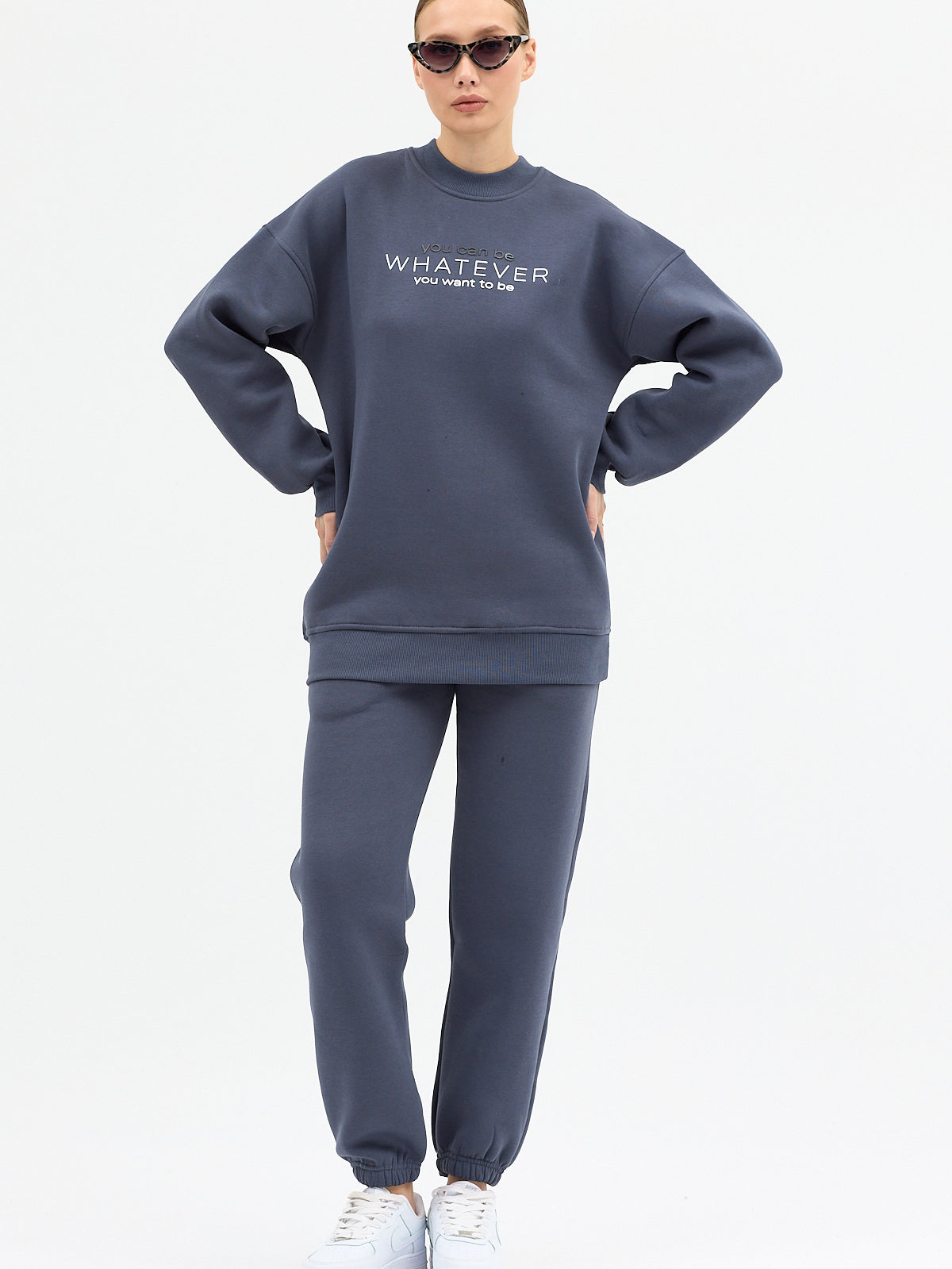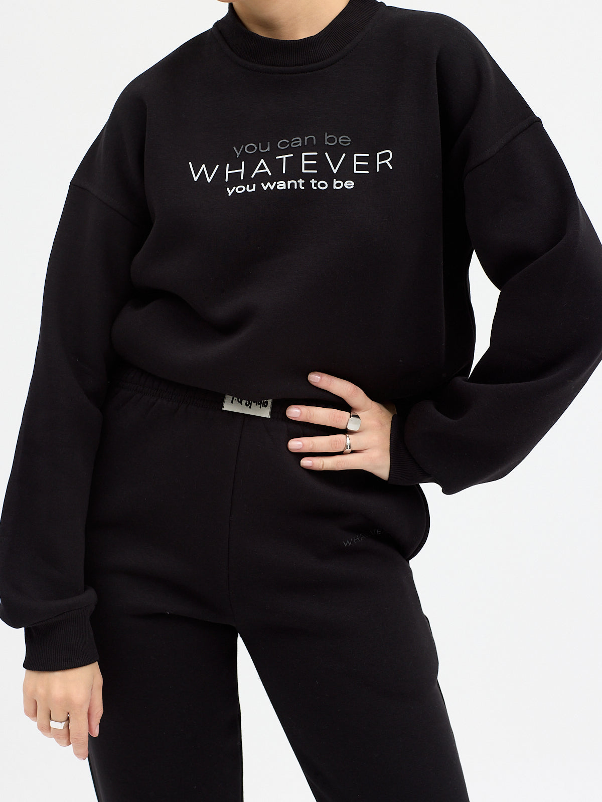 Kadın Whatever Baskılı Bisiklet Yaka Paçası Lastikli Oversize Eşofman Takımı