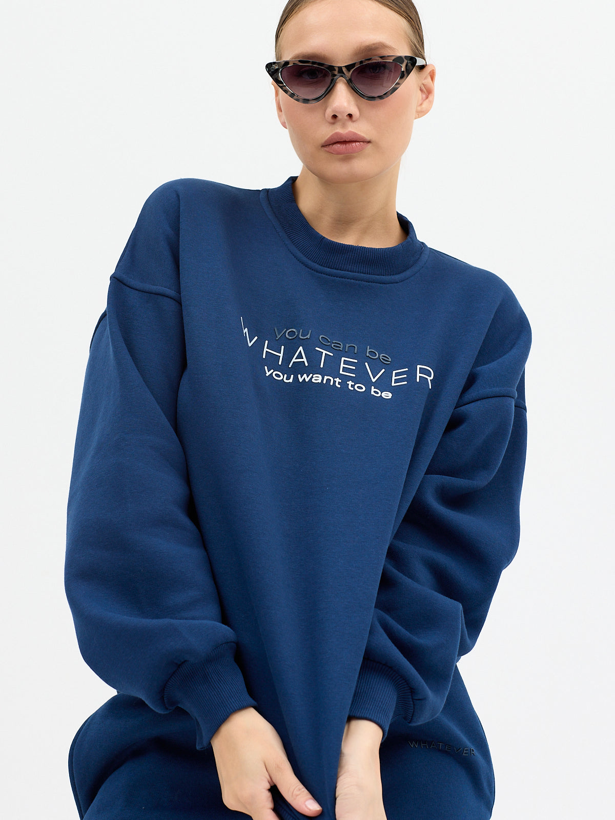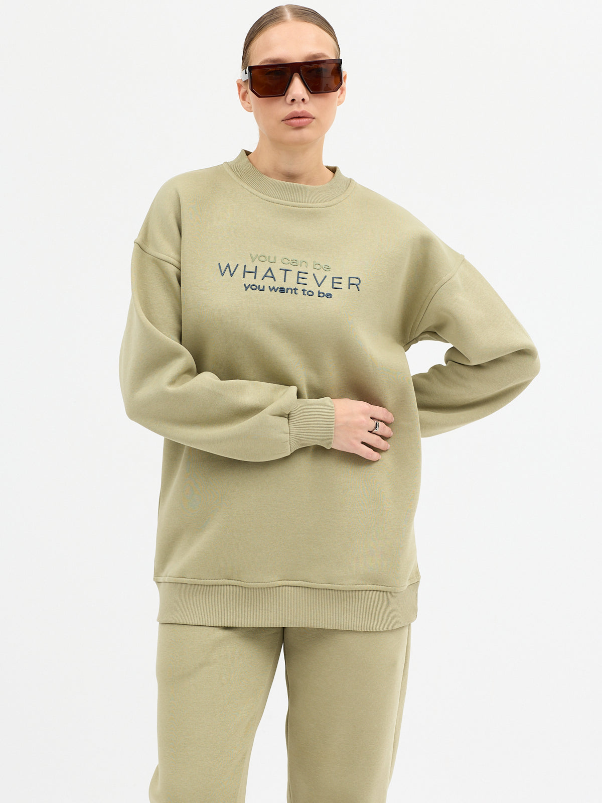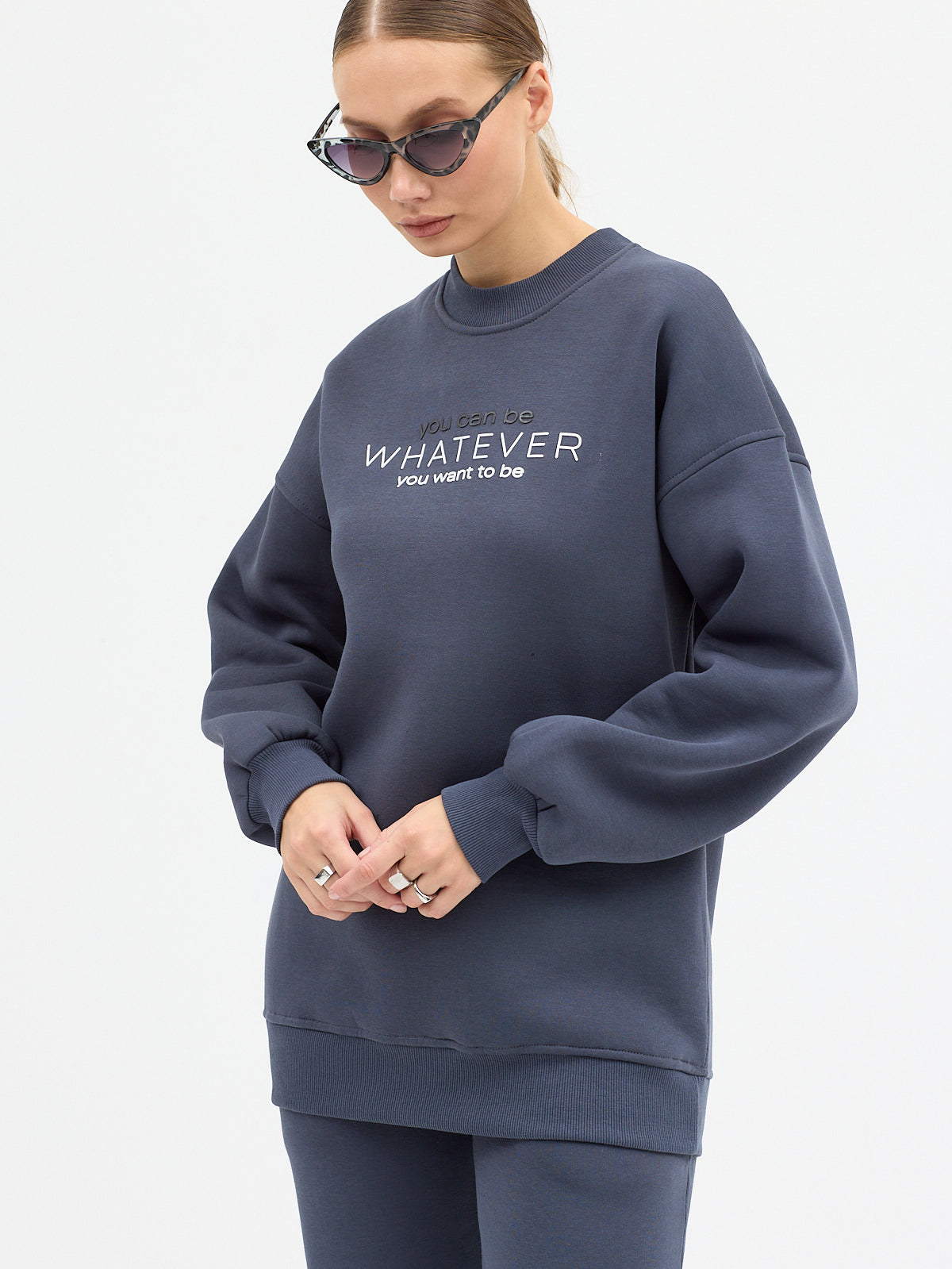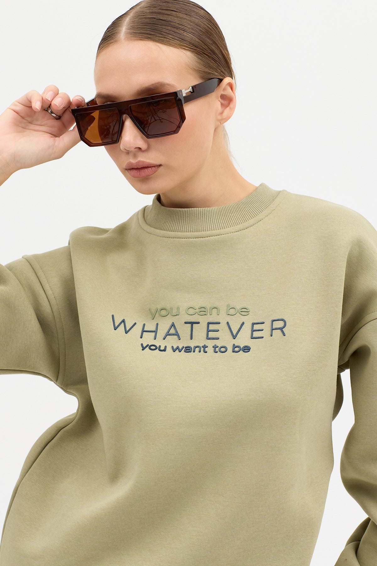 Kadın Whatever Baskılı Bisiklet Yaka Paçası Lastikli Oversize Eşofman Takımı