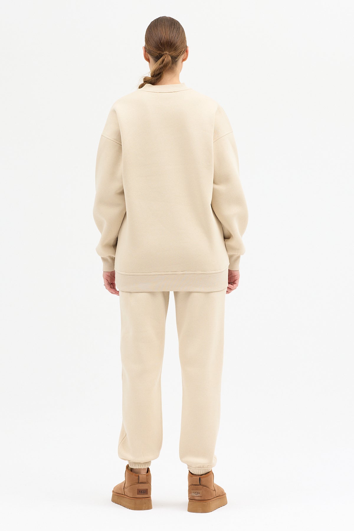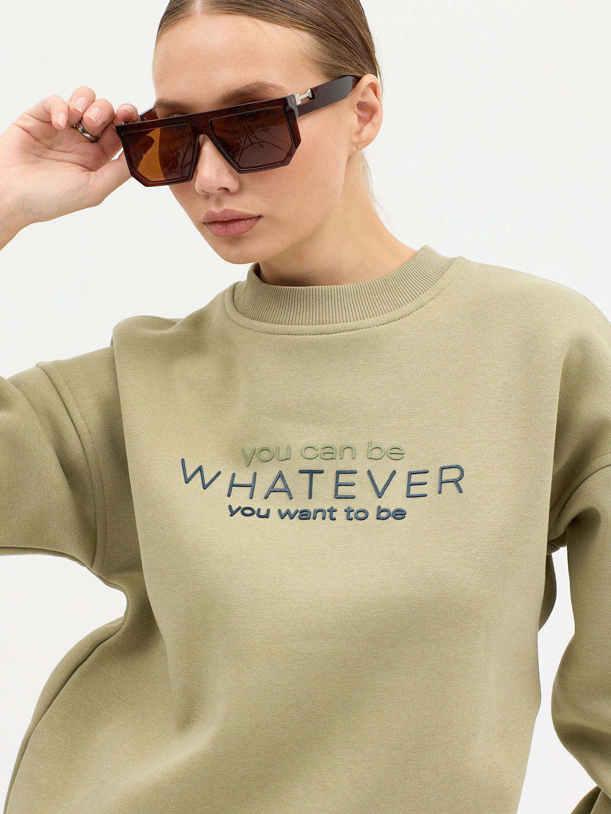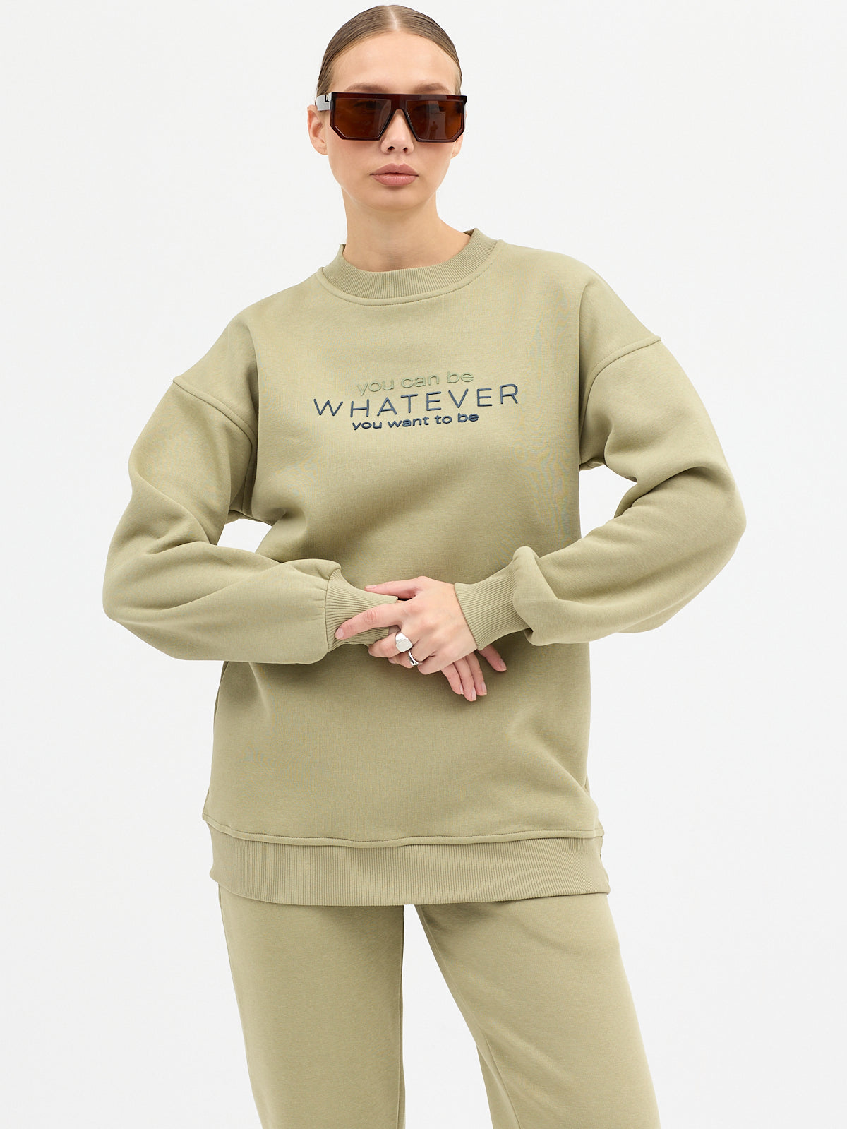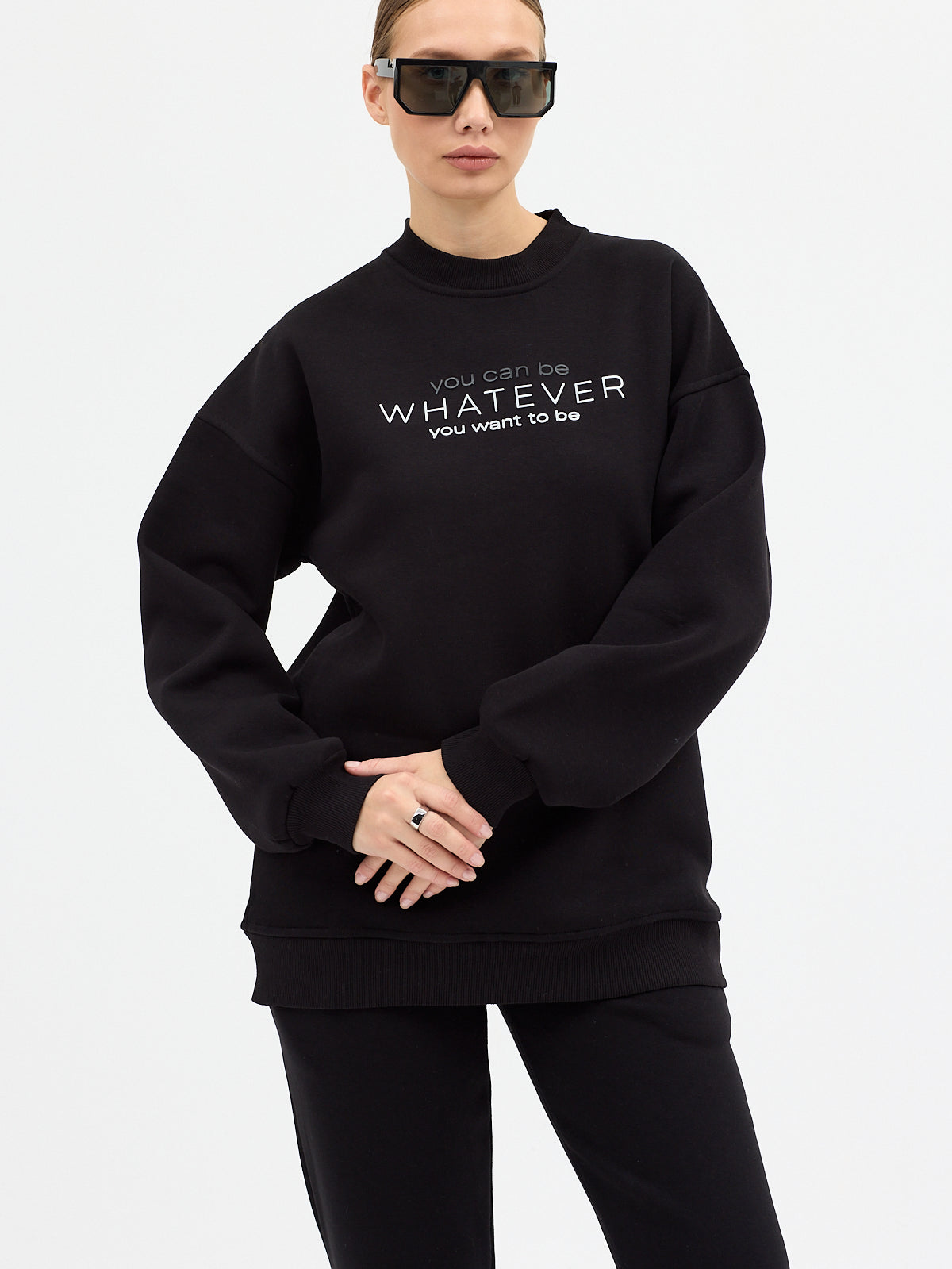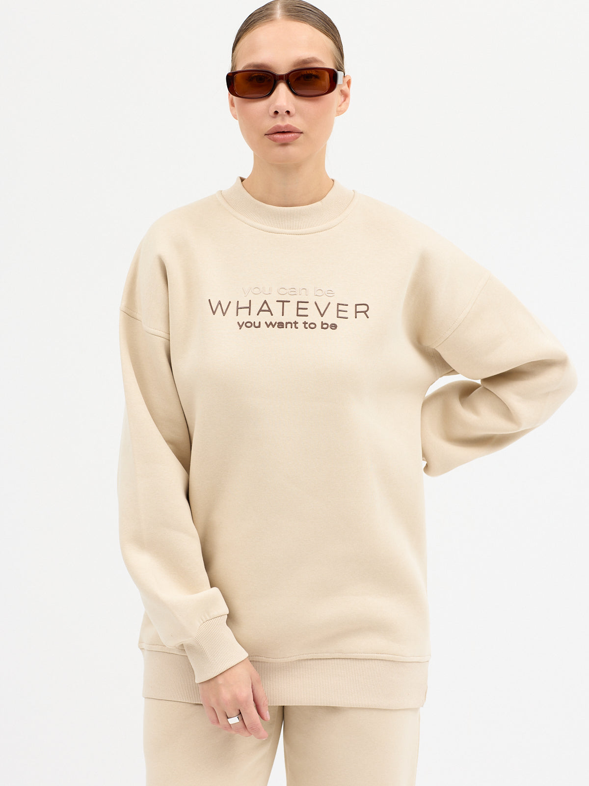 Kadın Whatever Baskılı Bisiklet Yaka Paçası Lastikli Oversize Eşofman Takımı