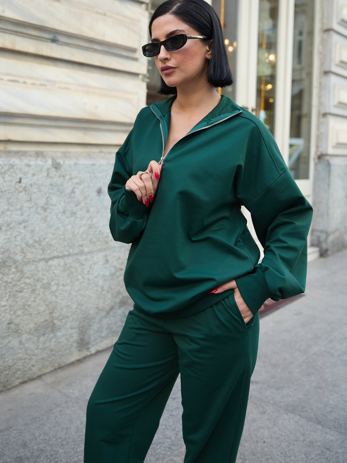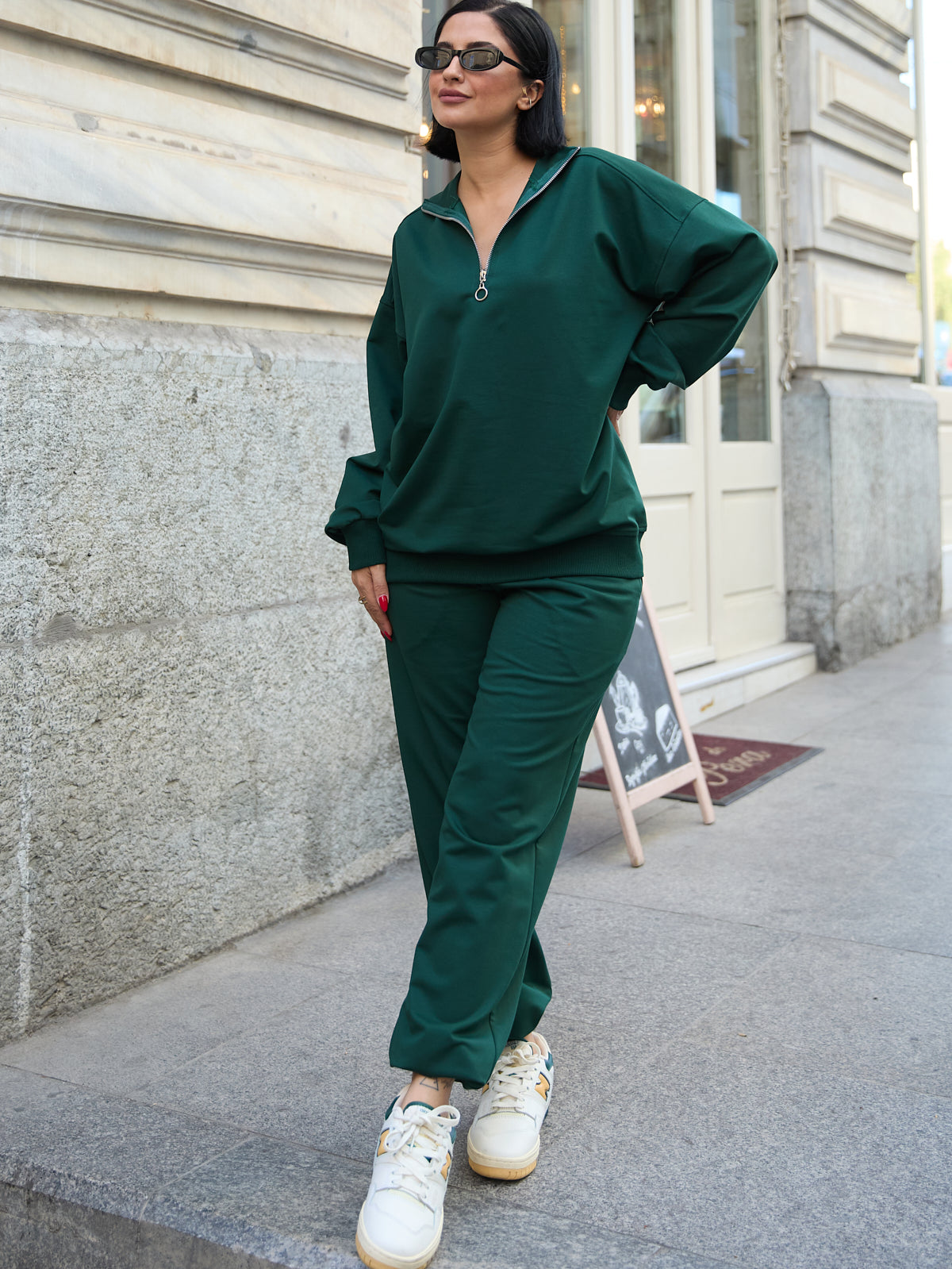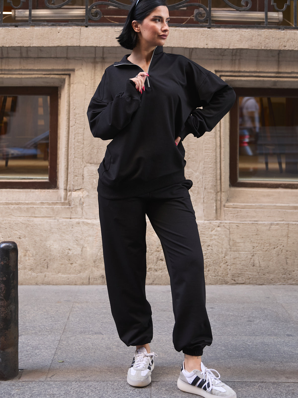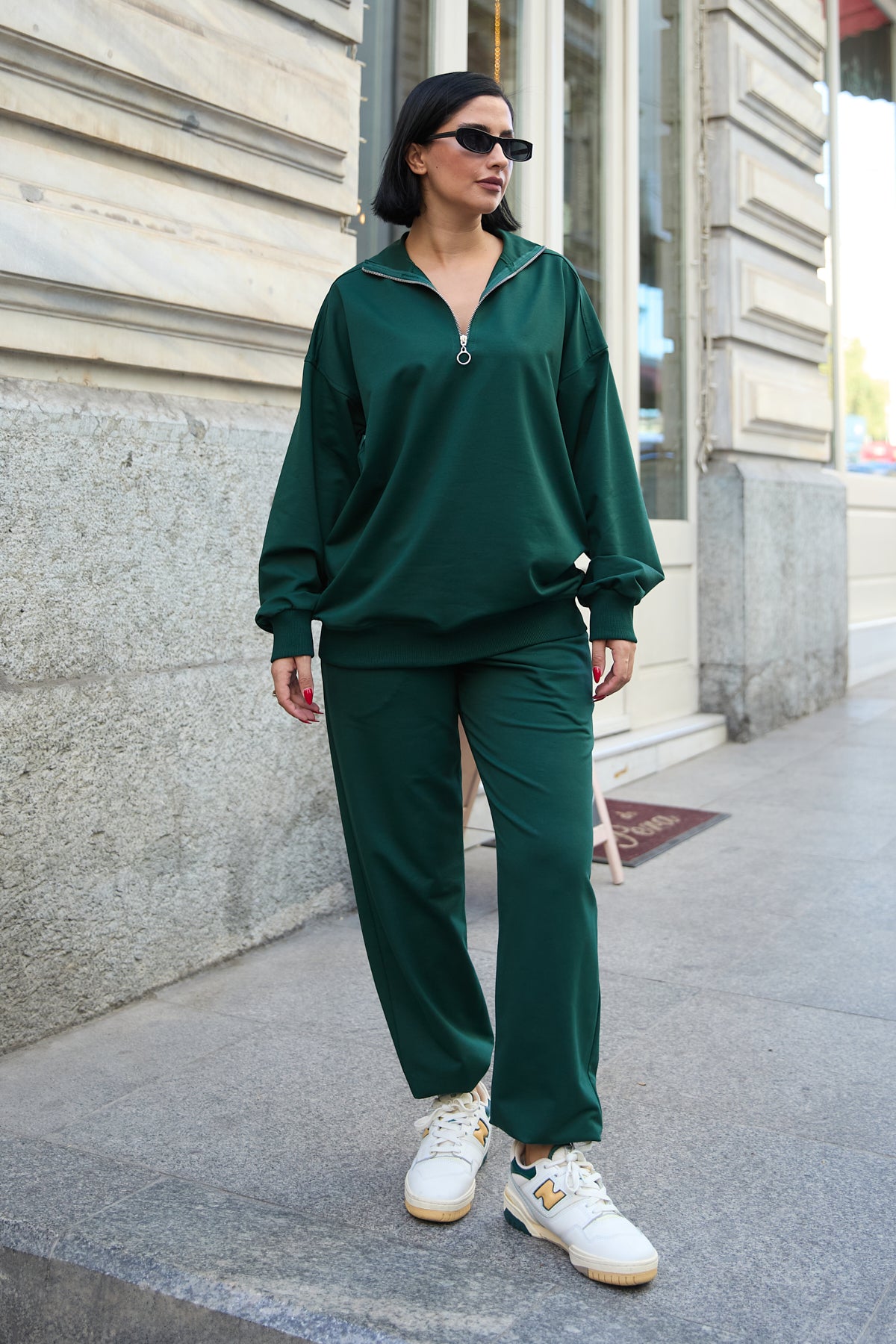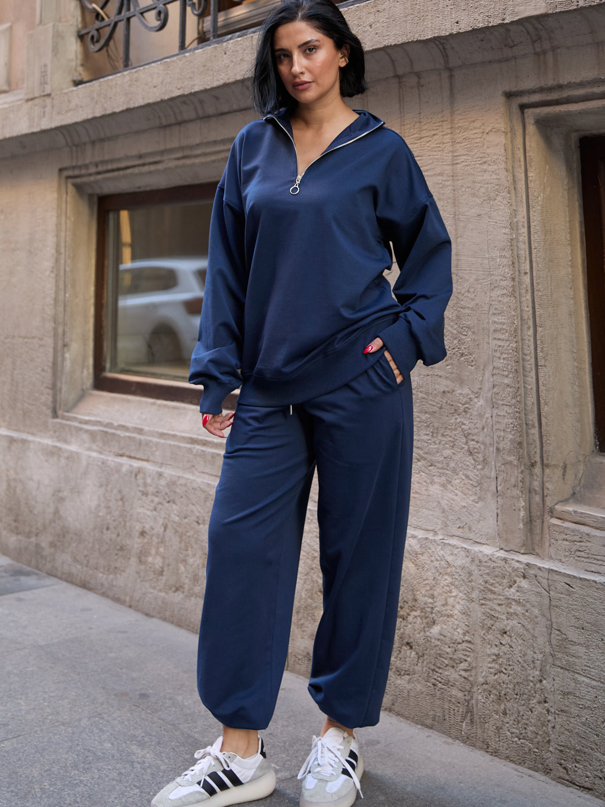 Kadın Yarım Fermuarlı Sweatshırt Ve Paçası Lastikli Eşofman Takımı