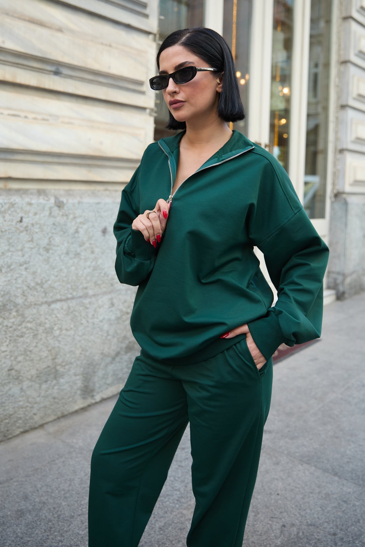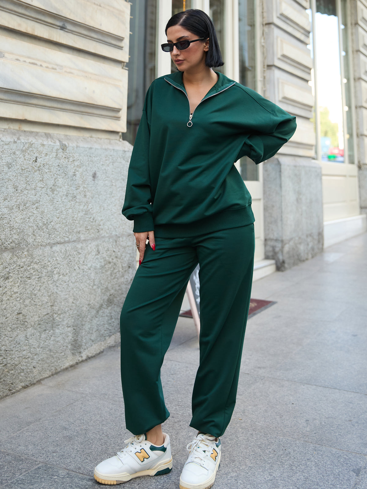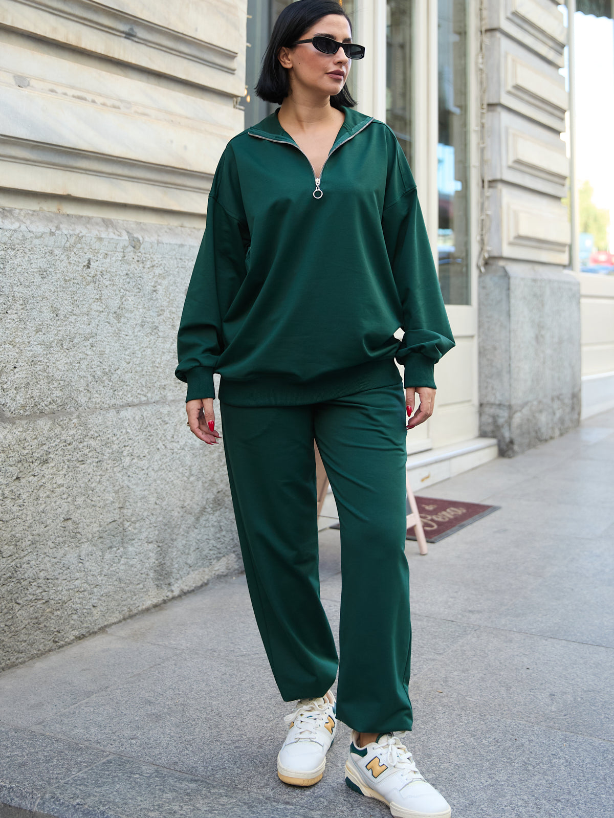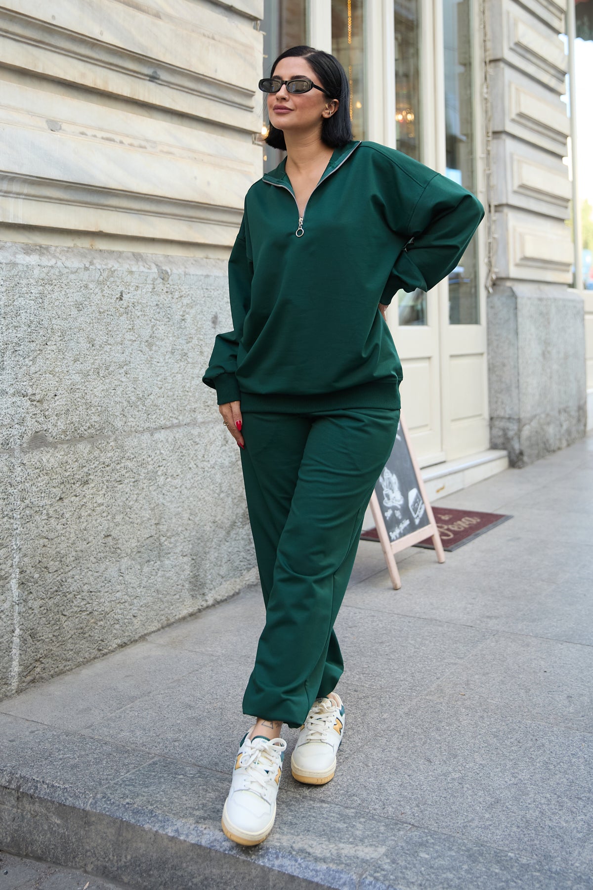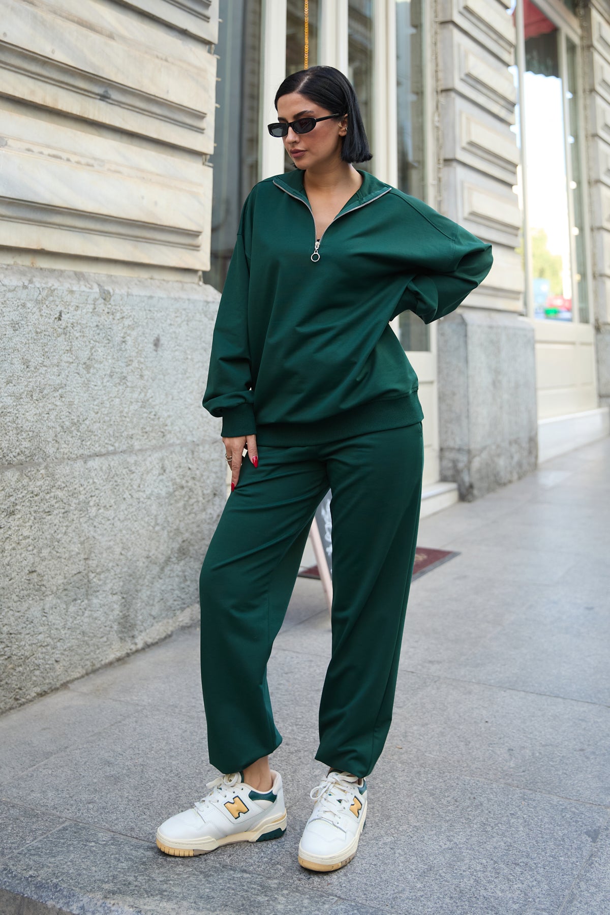 Kadın Yarım Fermuarlı Sweatshırt Ve Paçası Lastikli Eşofman Takımı