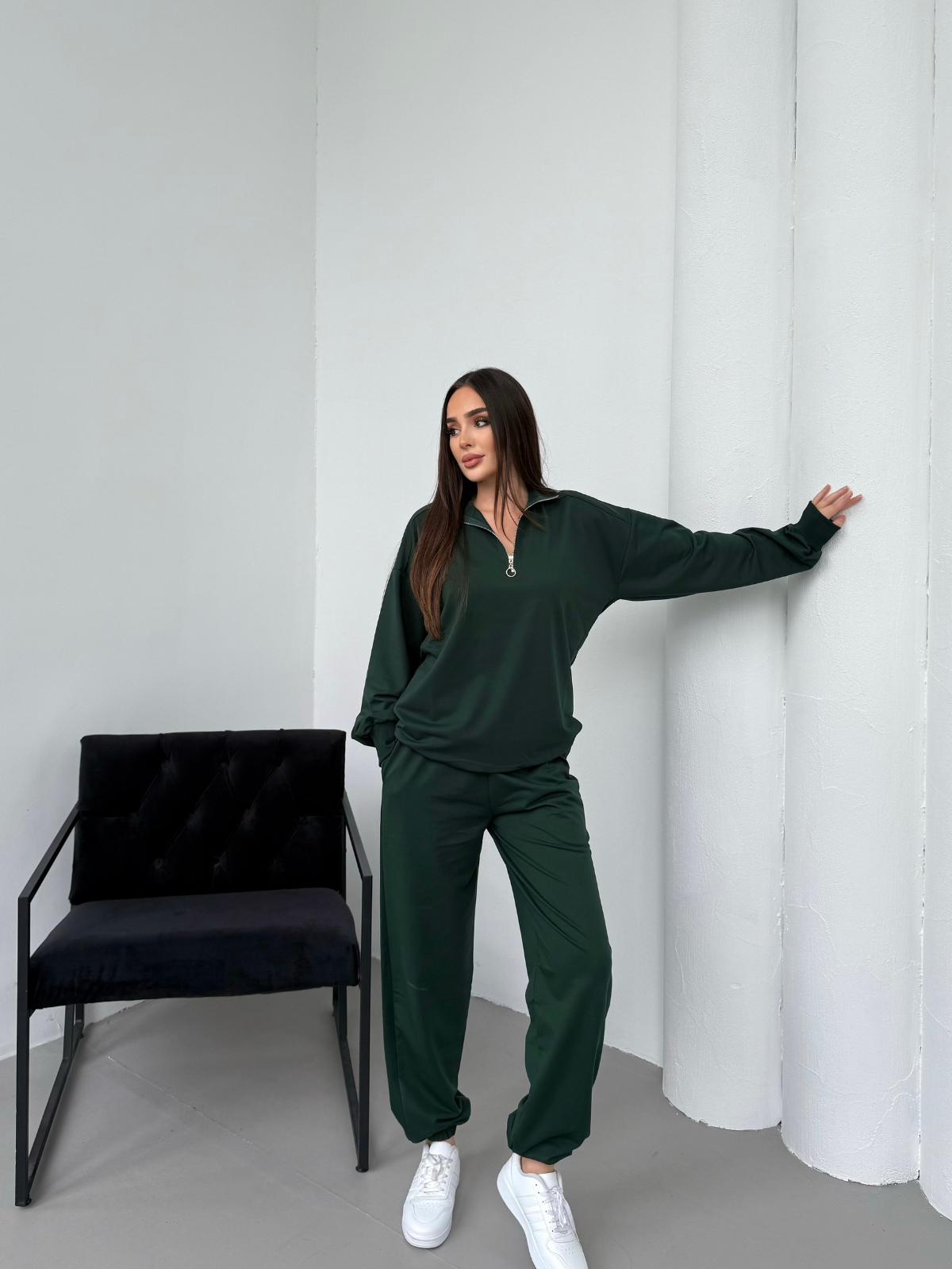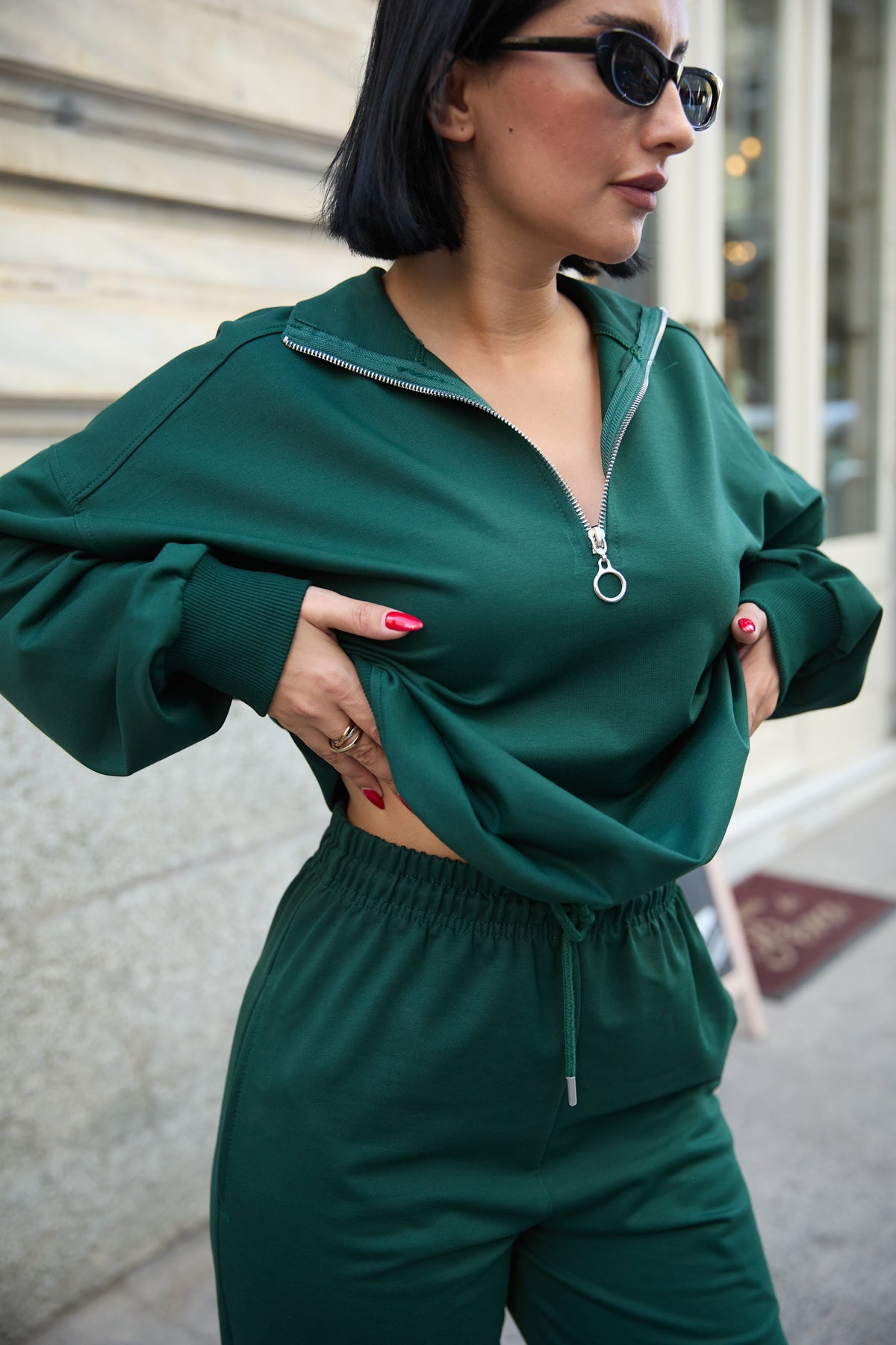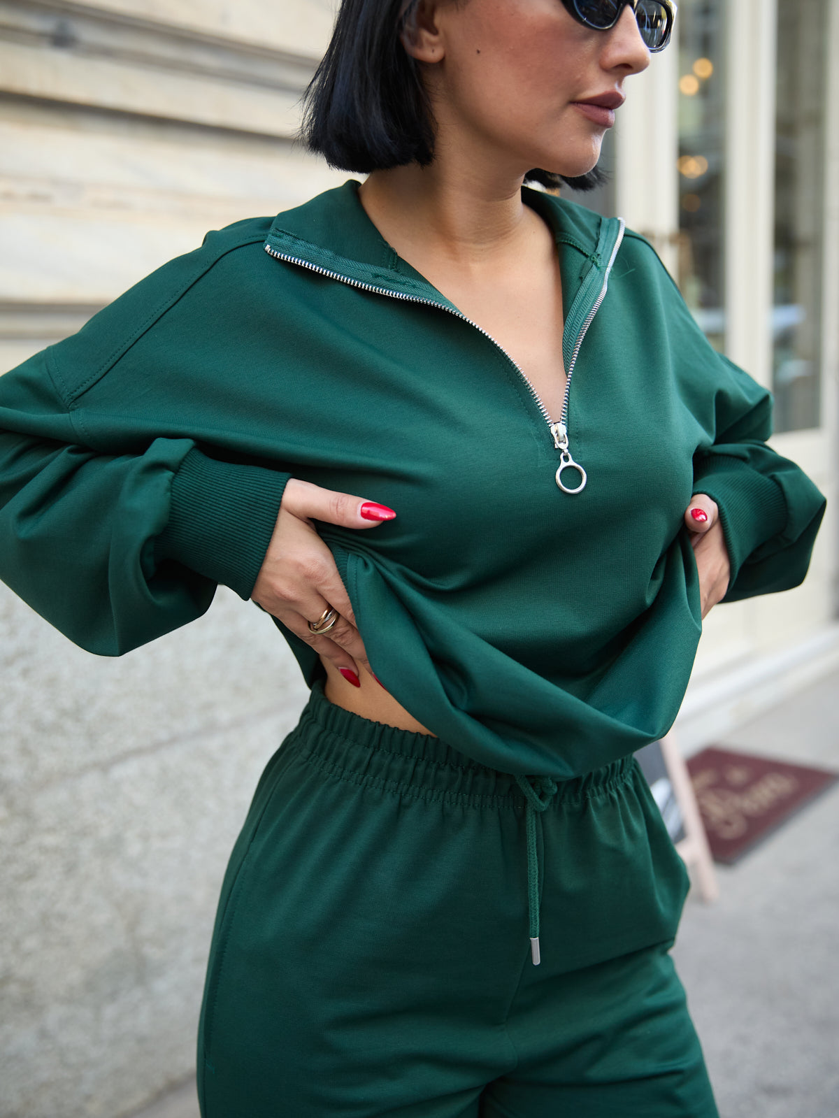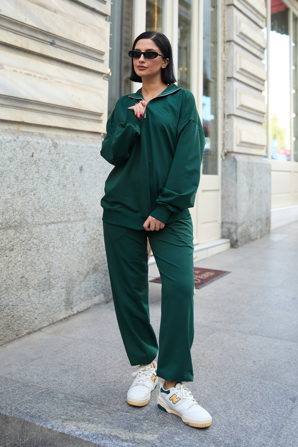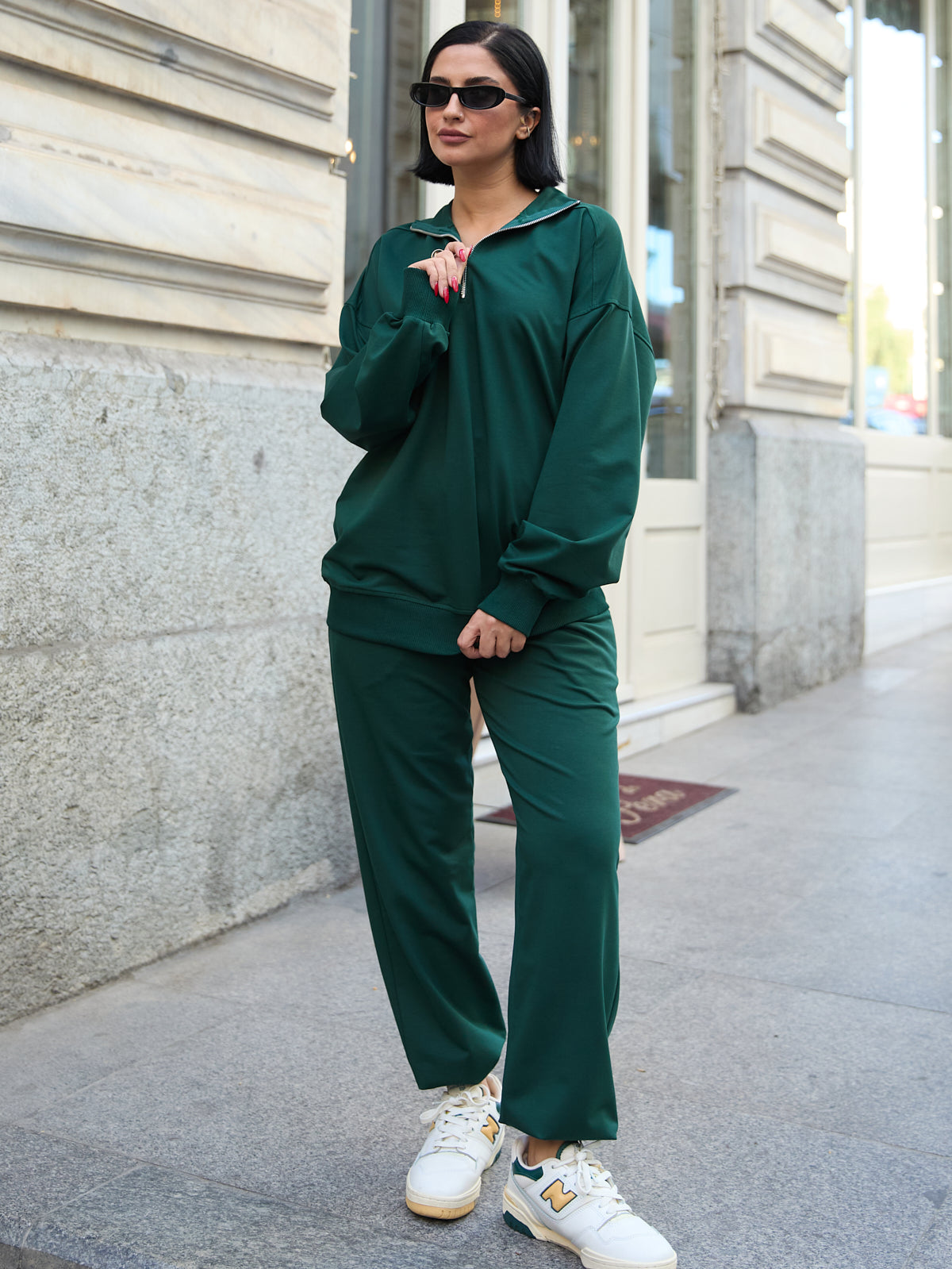 Kadın Yarım Fermuarlı Sweatshırt Ve Paçası Lastikli Eşofman Takımı