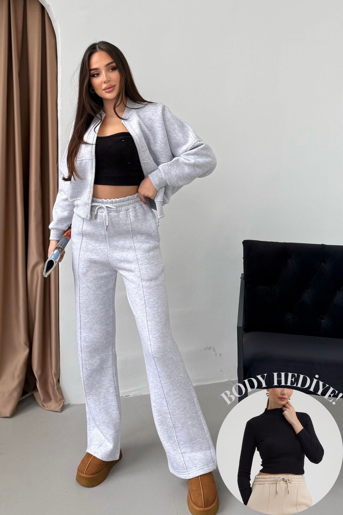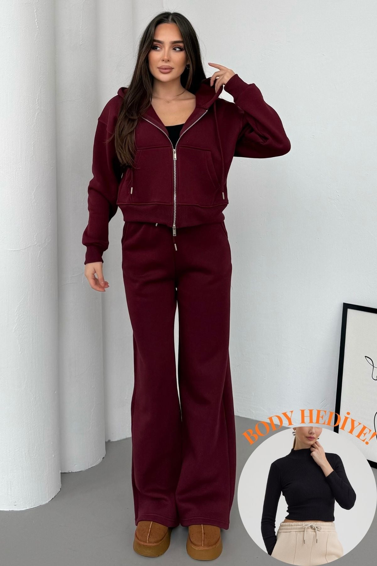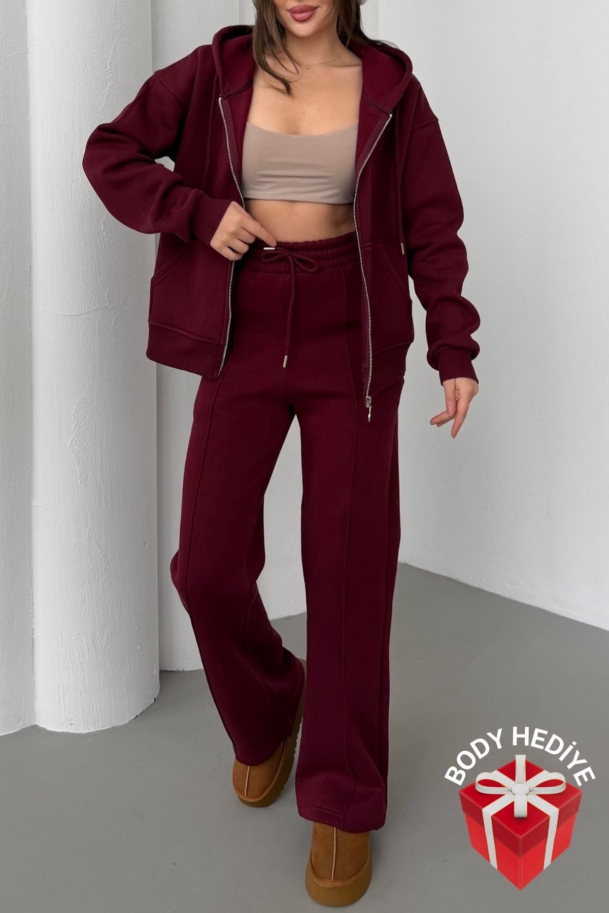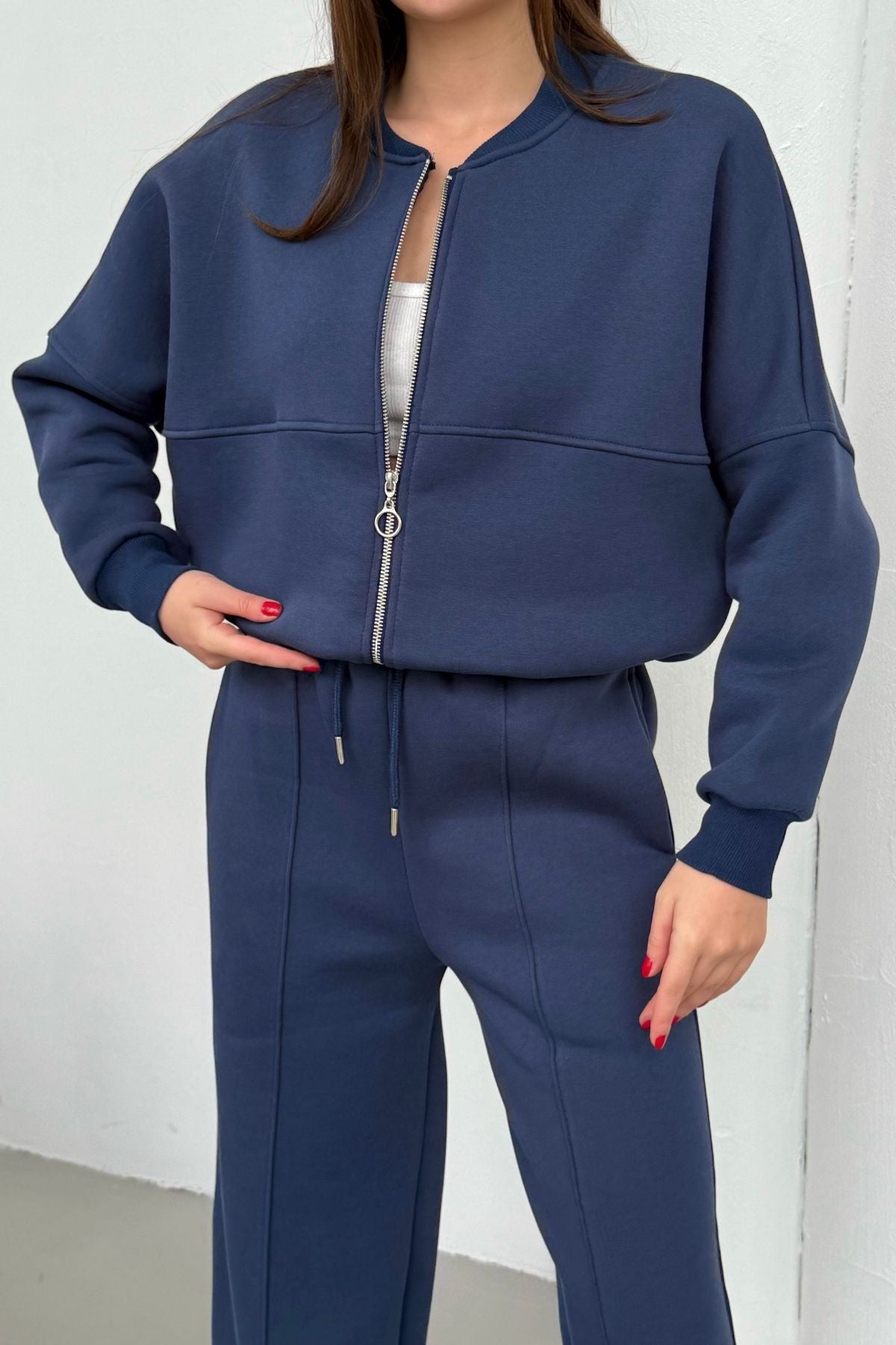 Kadın Şardonlu Fermuar Detaylı Üç Iplik Kışlık Eşofman Takımı