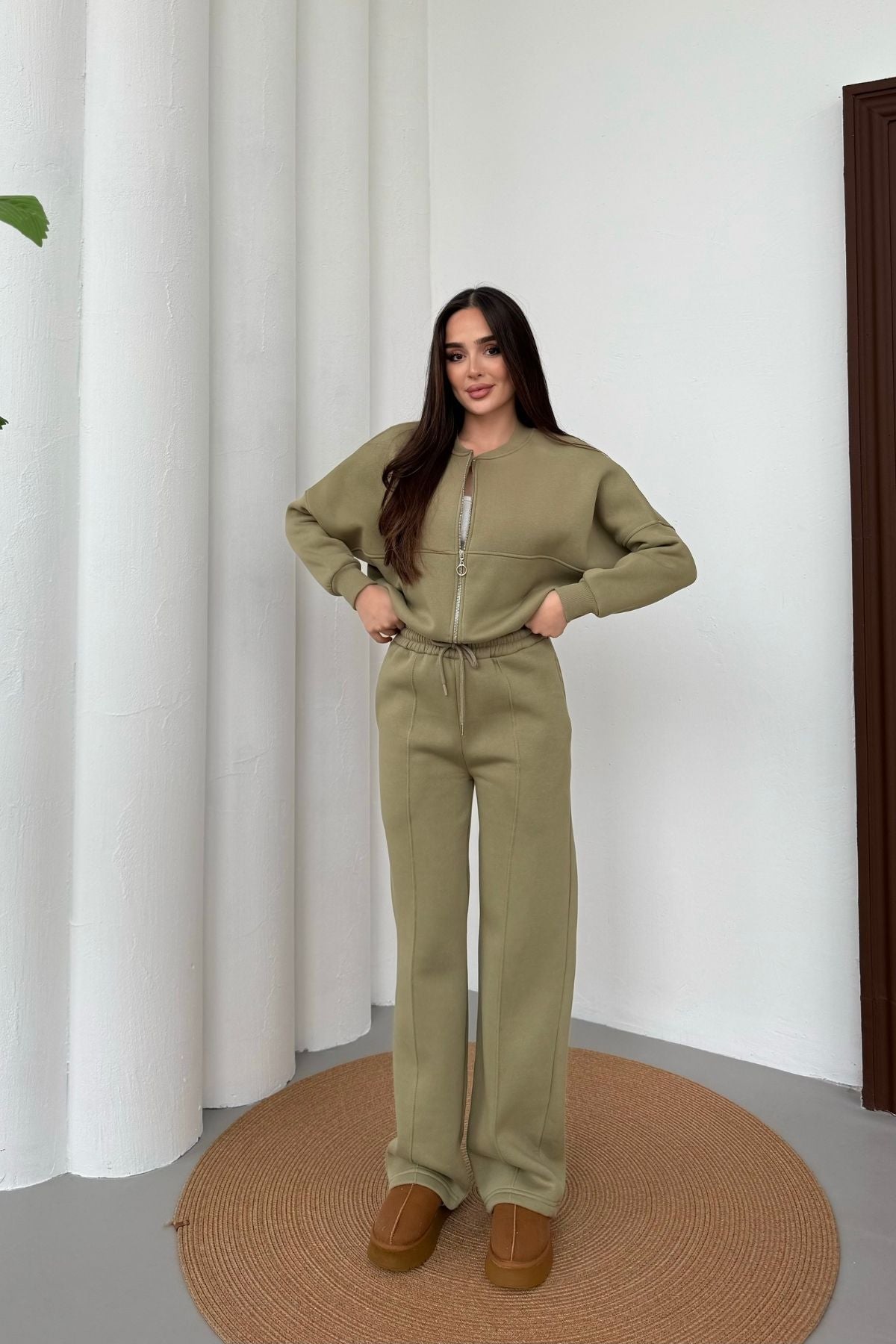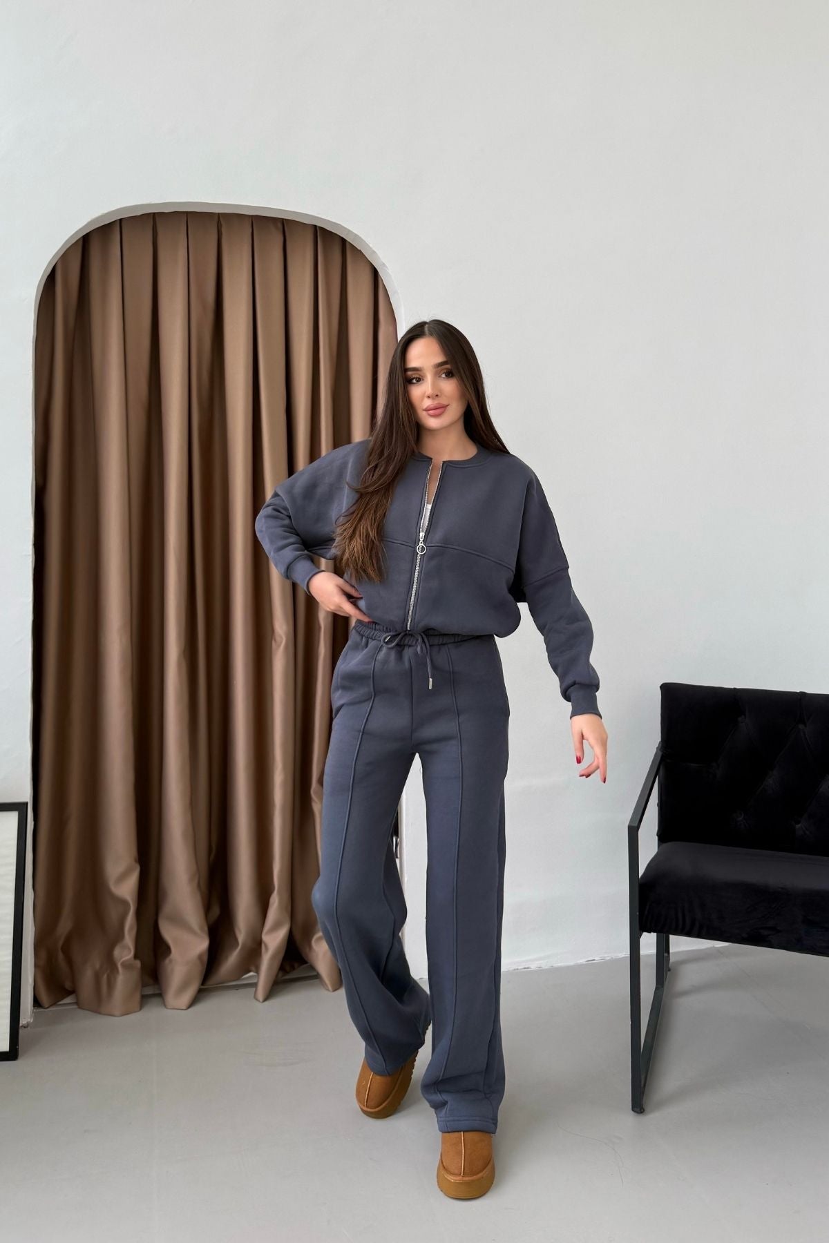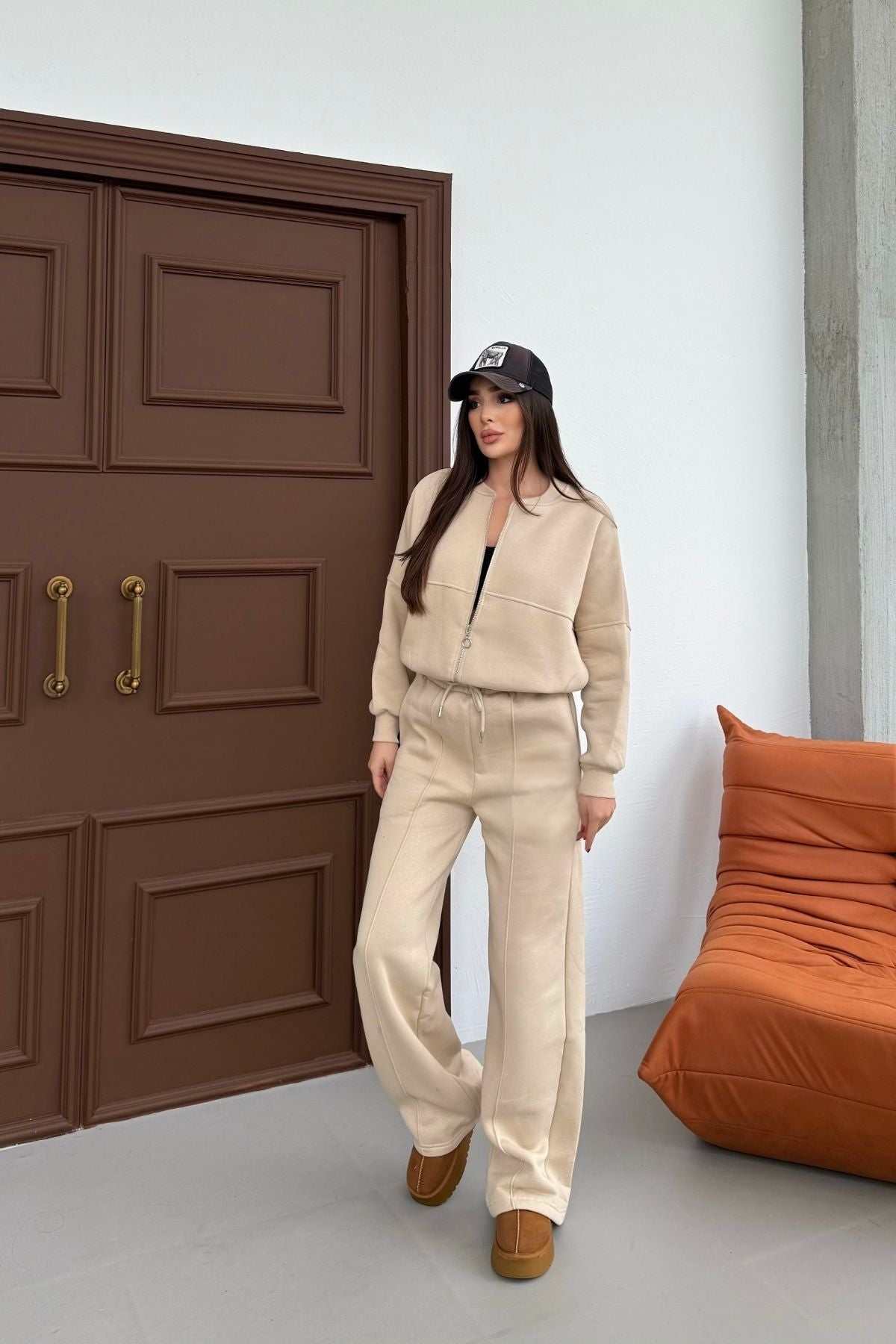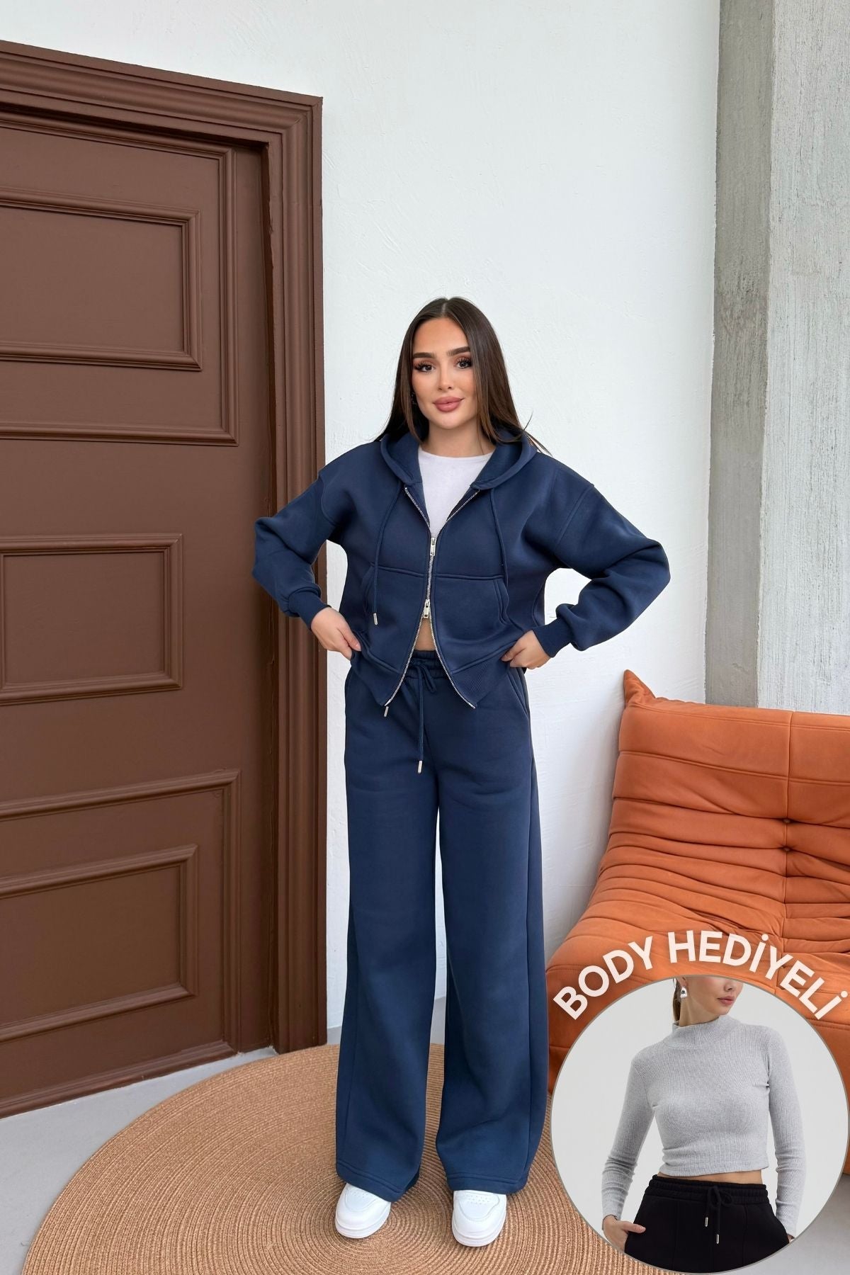 Kadın Şardonlu Fermuar Detaylı Üç Iplik Kışlık Eşofman Takımı