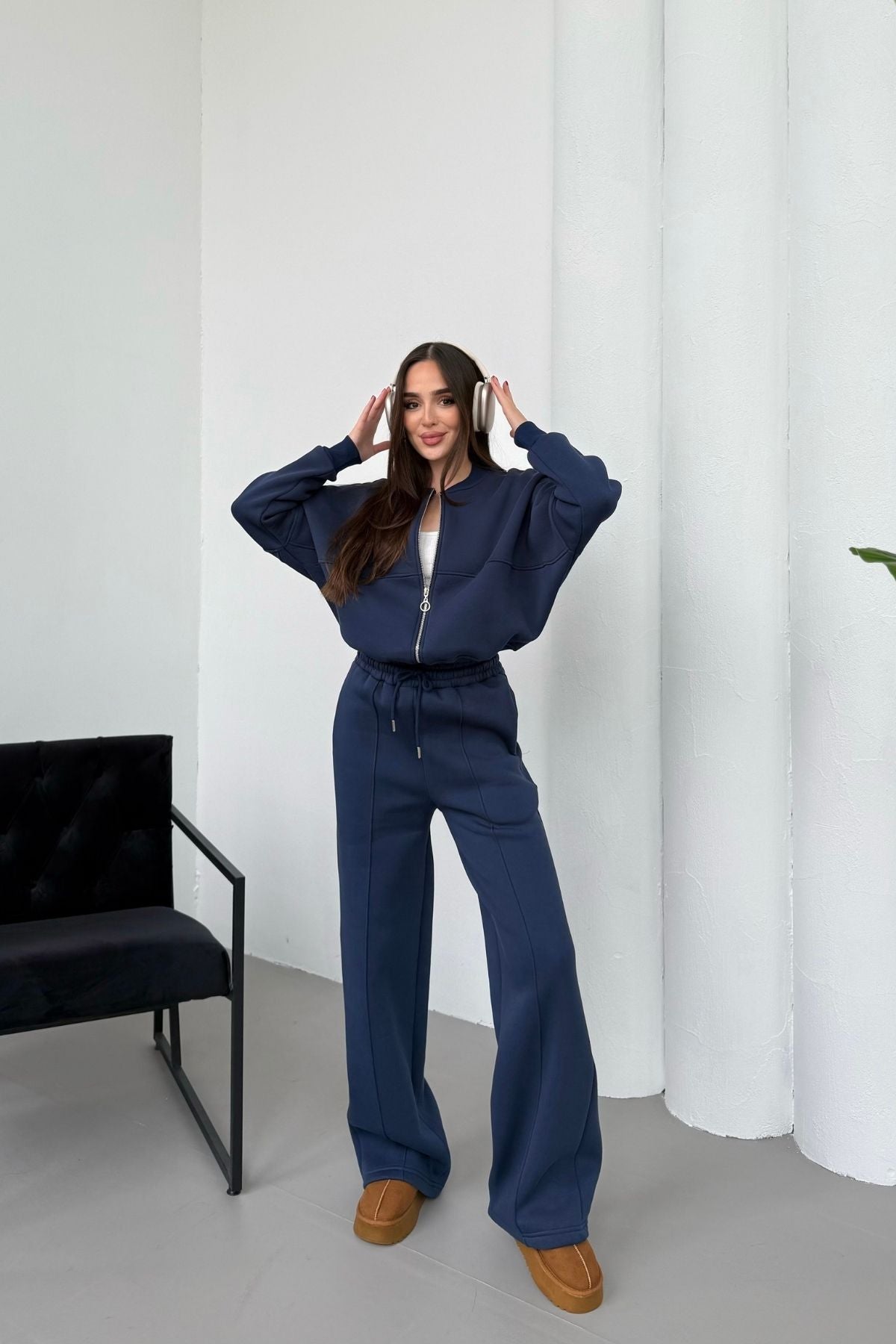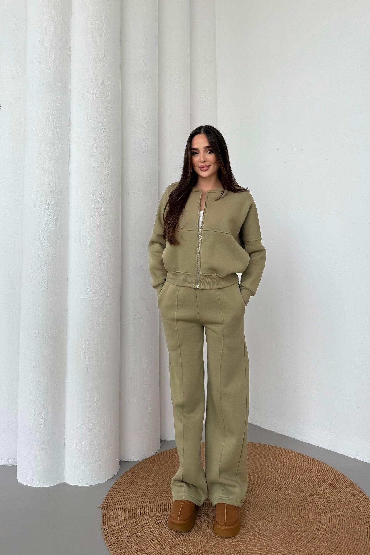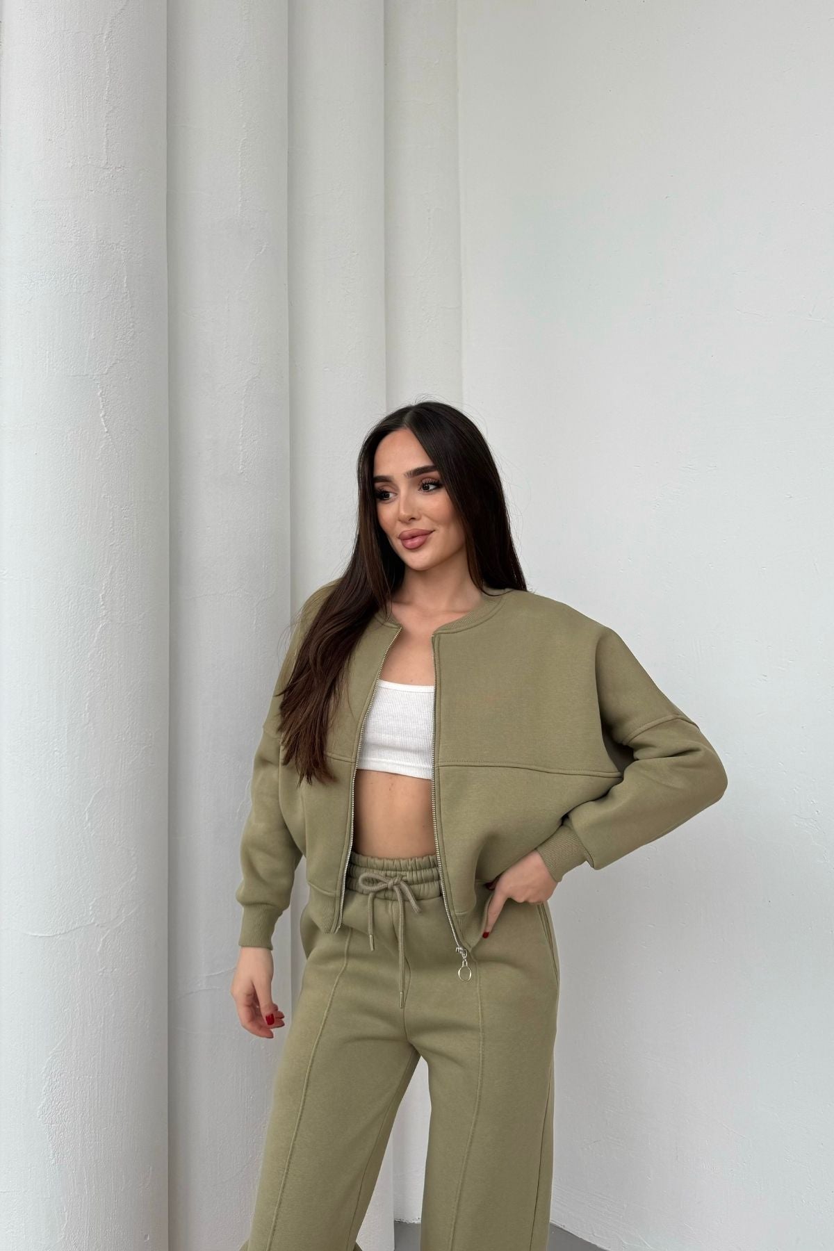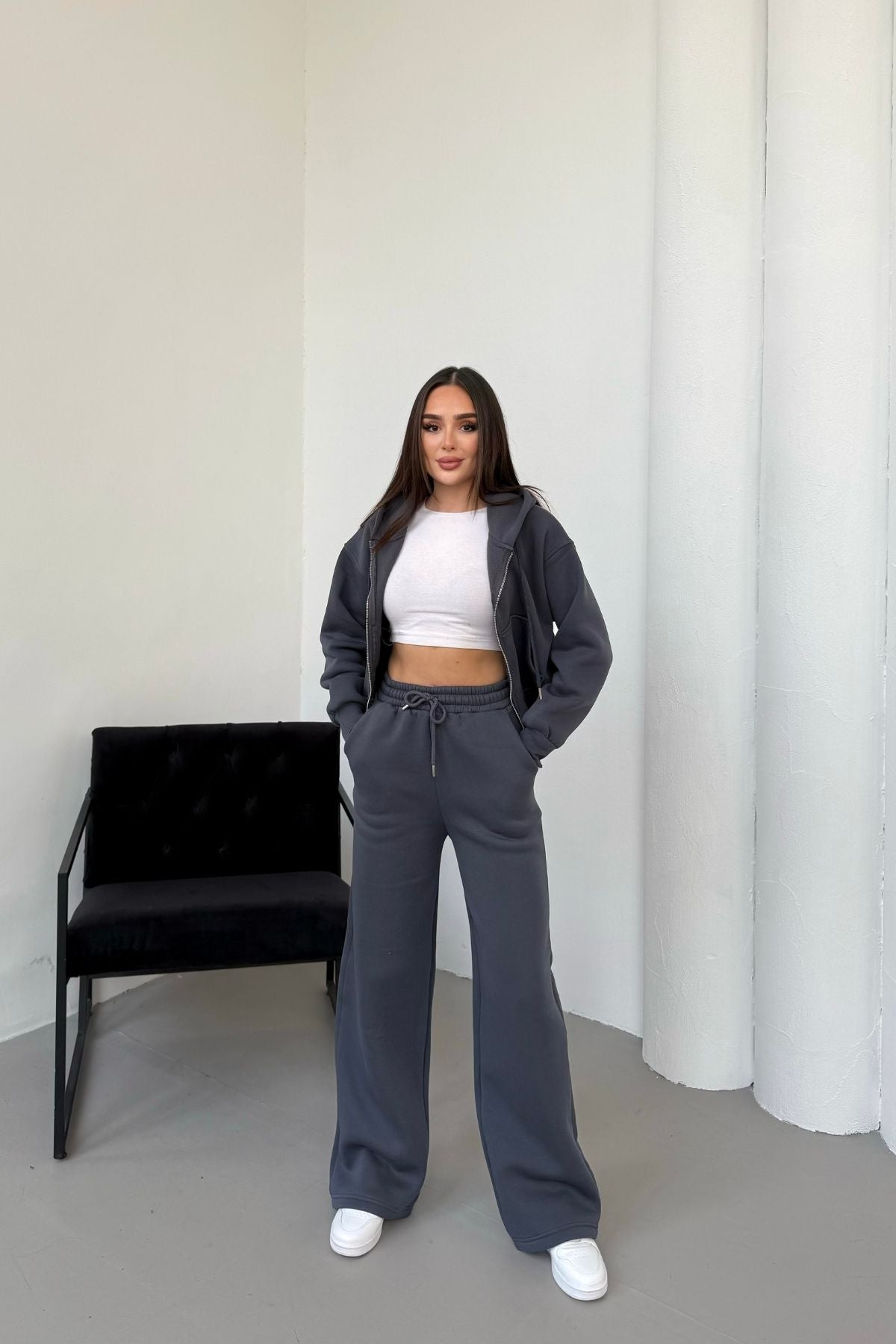 Kadın Şardonlu Fermuar Detaylı Üç Iplik Kışlık Eşofman Takımı