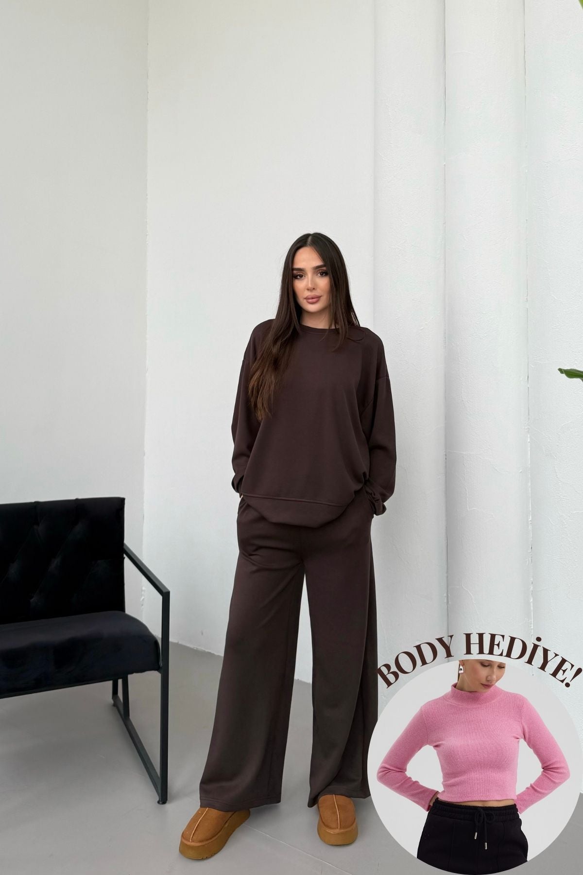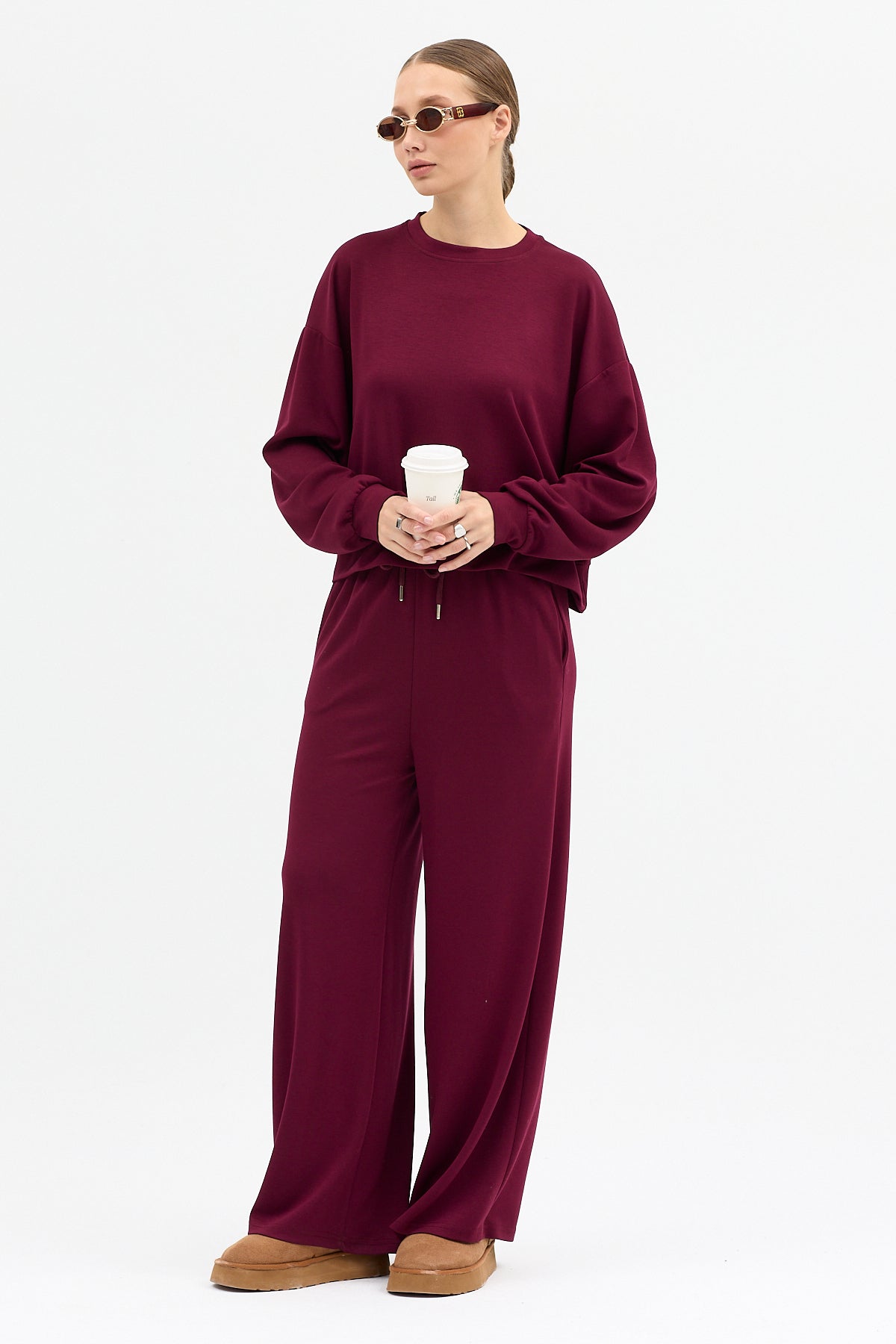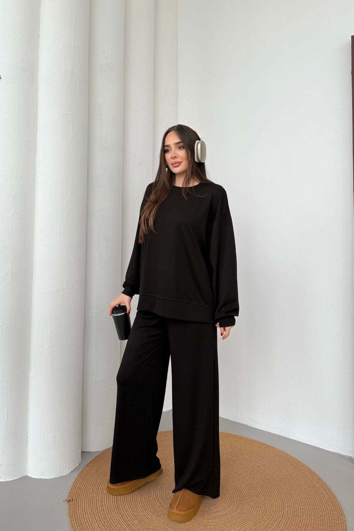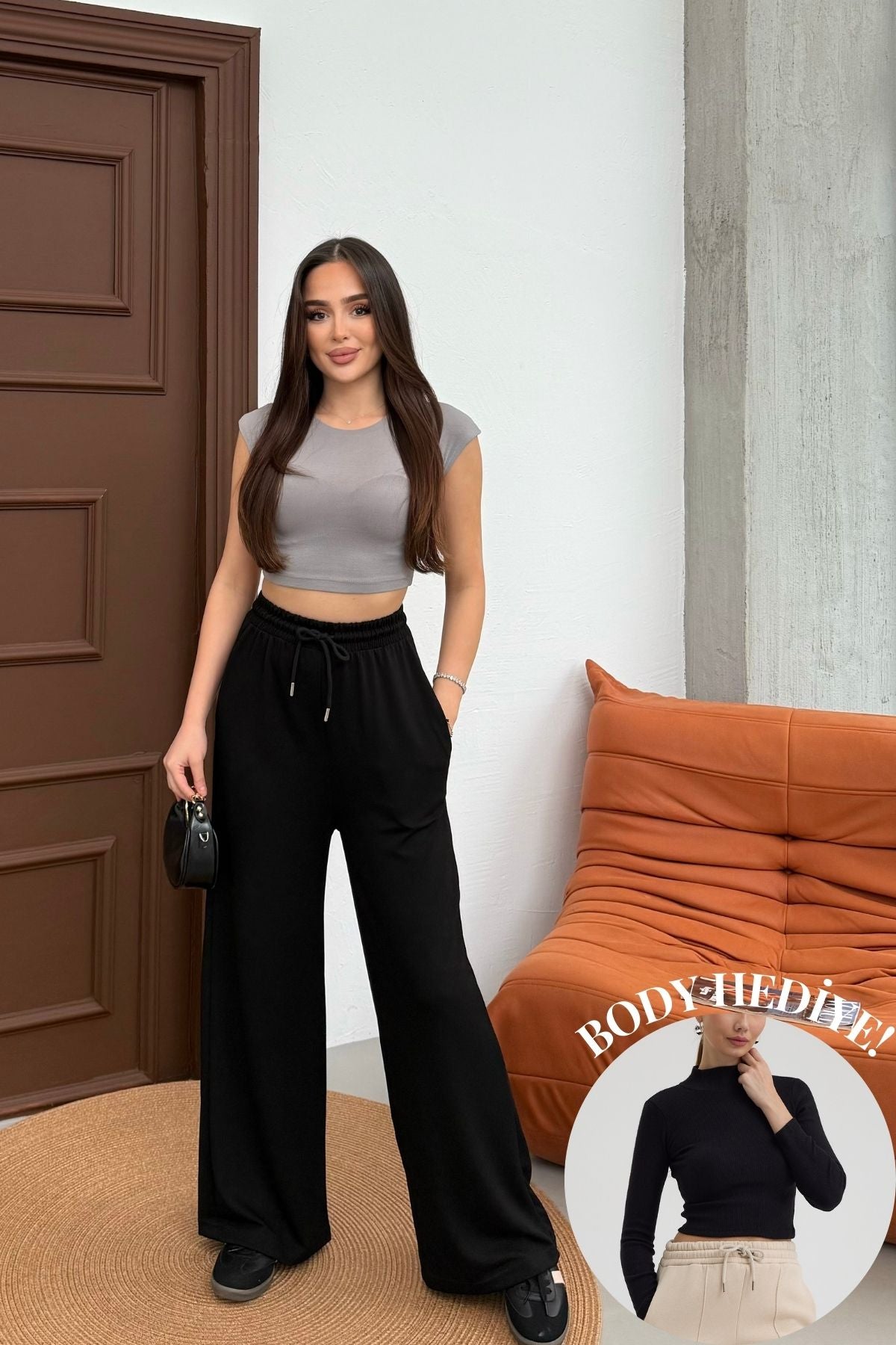 Basic Yumuşak Premium Kumaş Uzun Beli Lastikli Bol Paça Modal Alt-Üst Takım