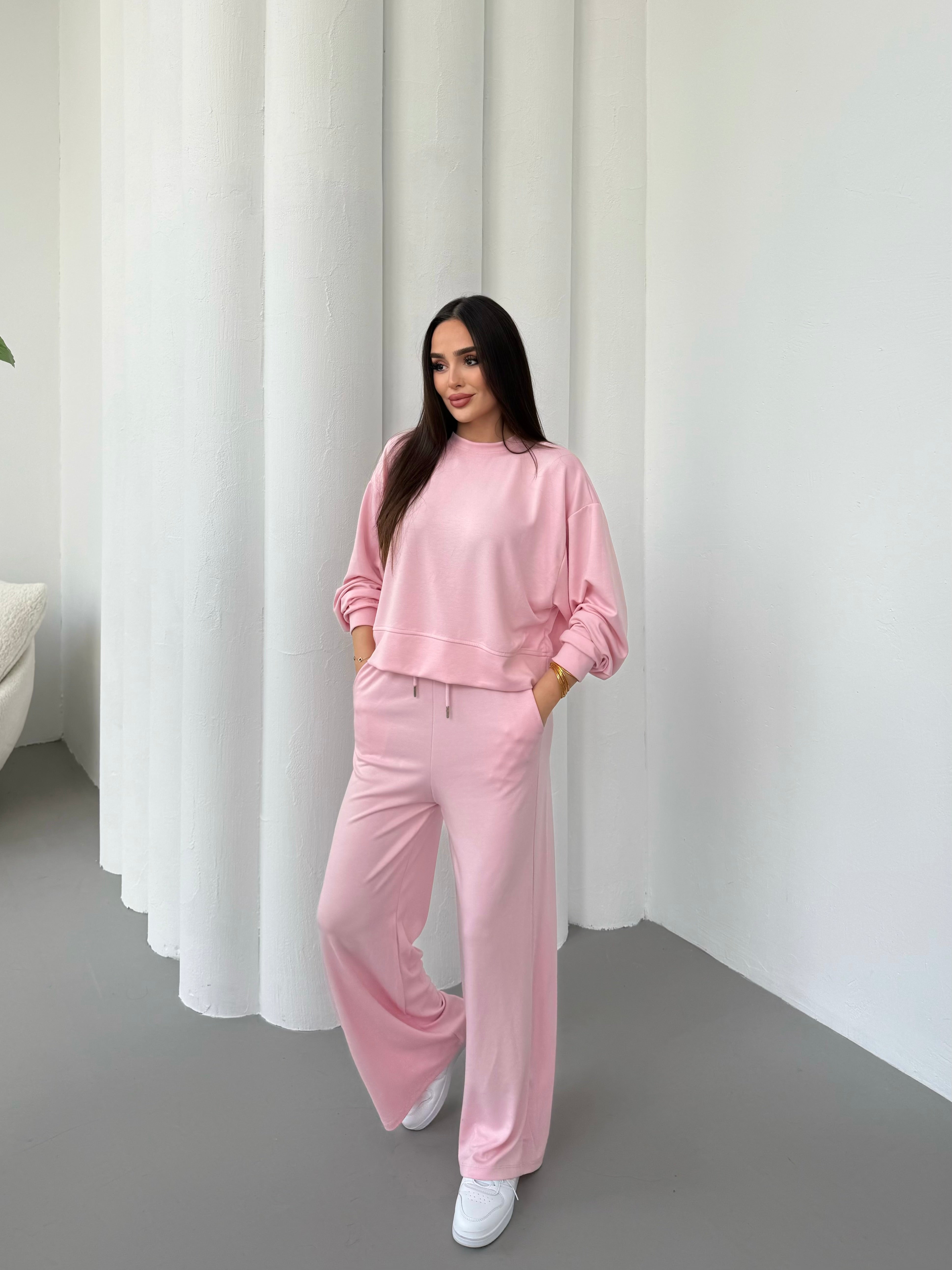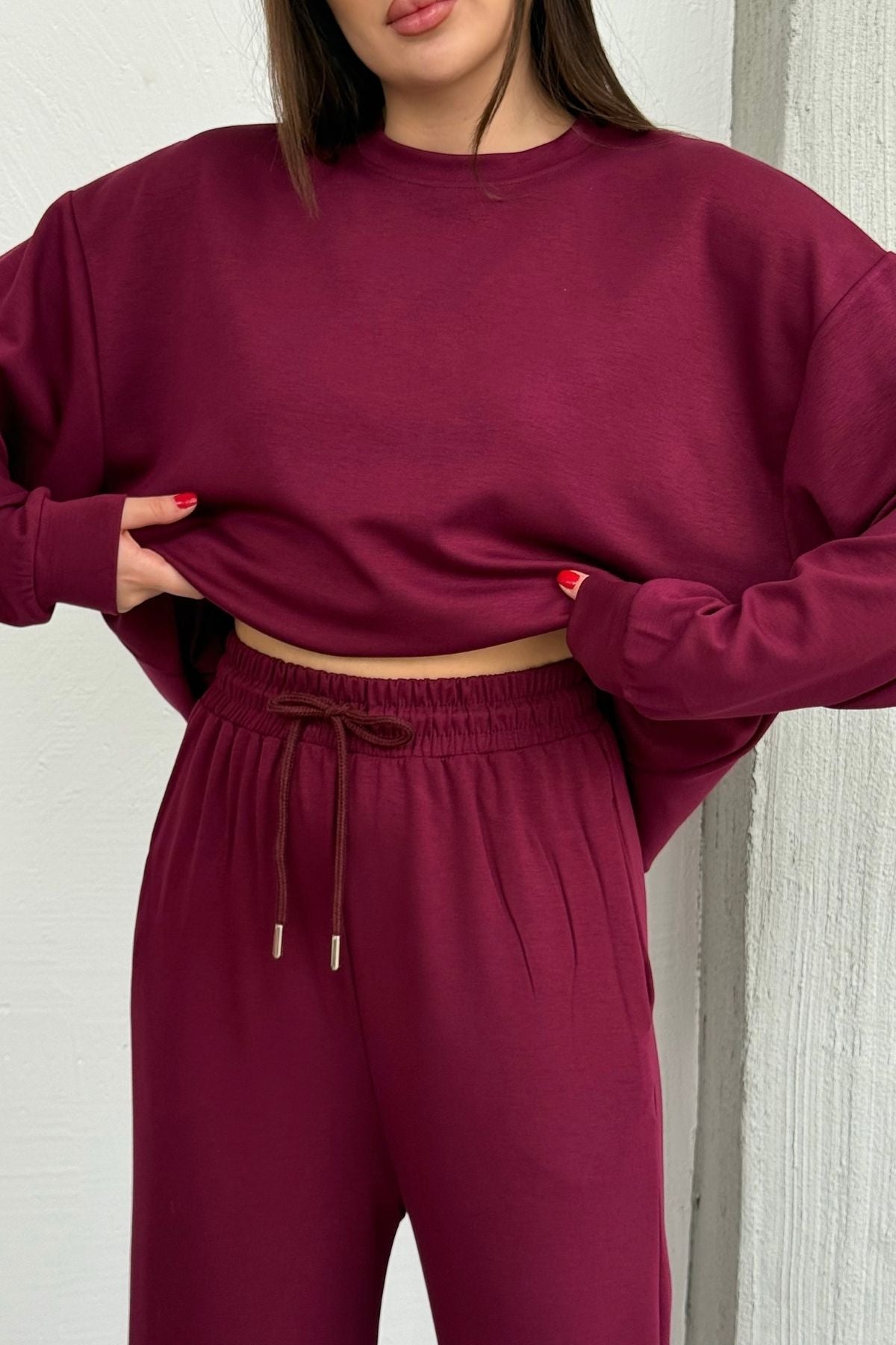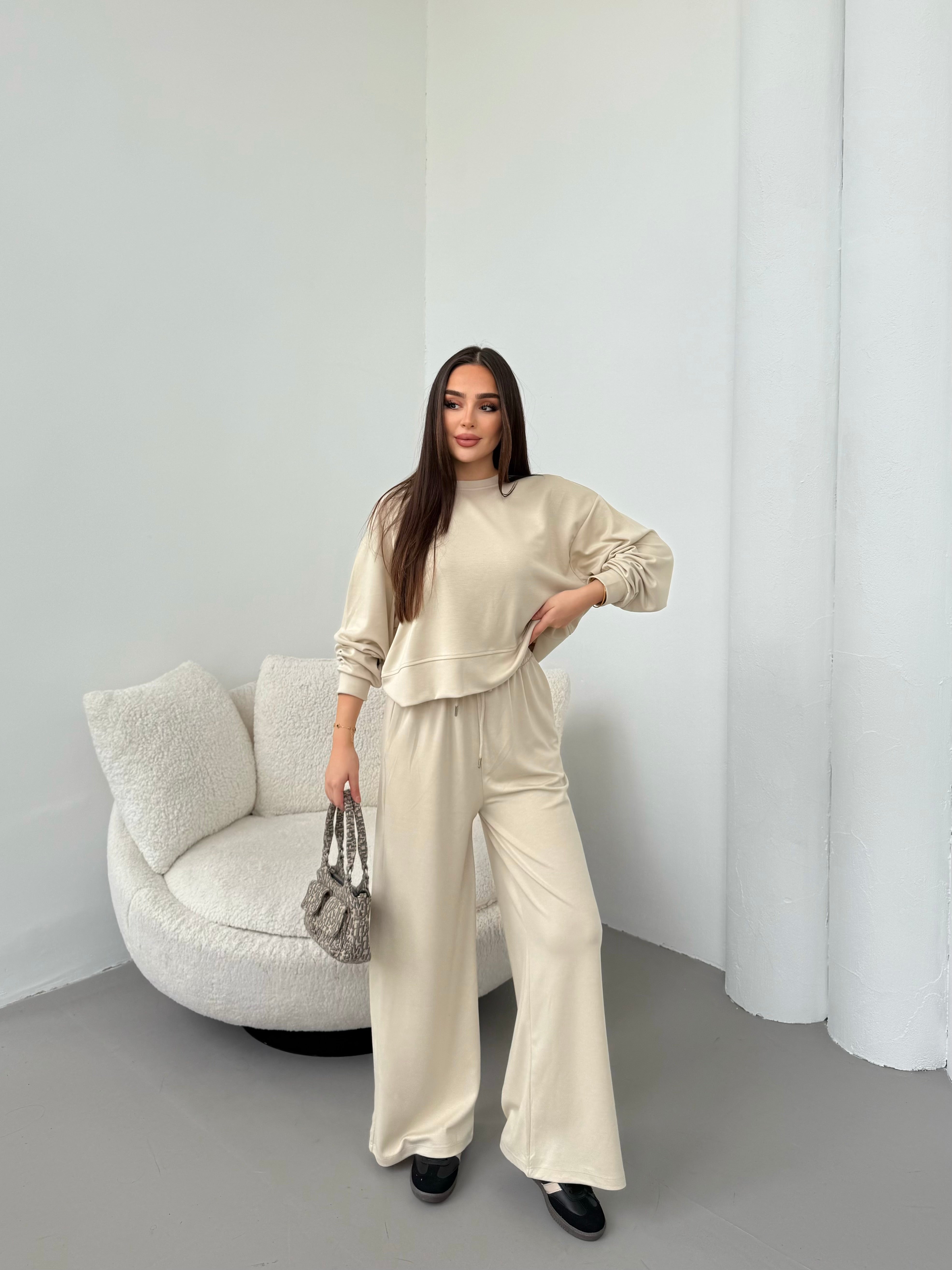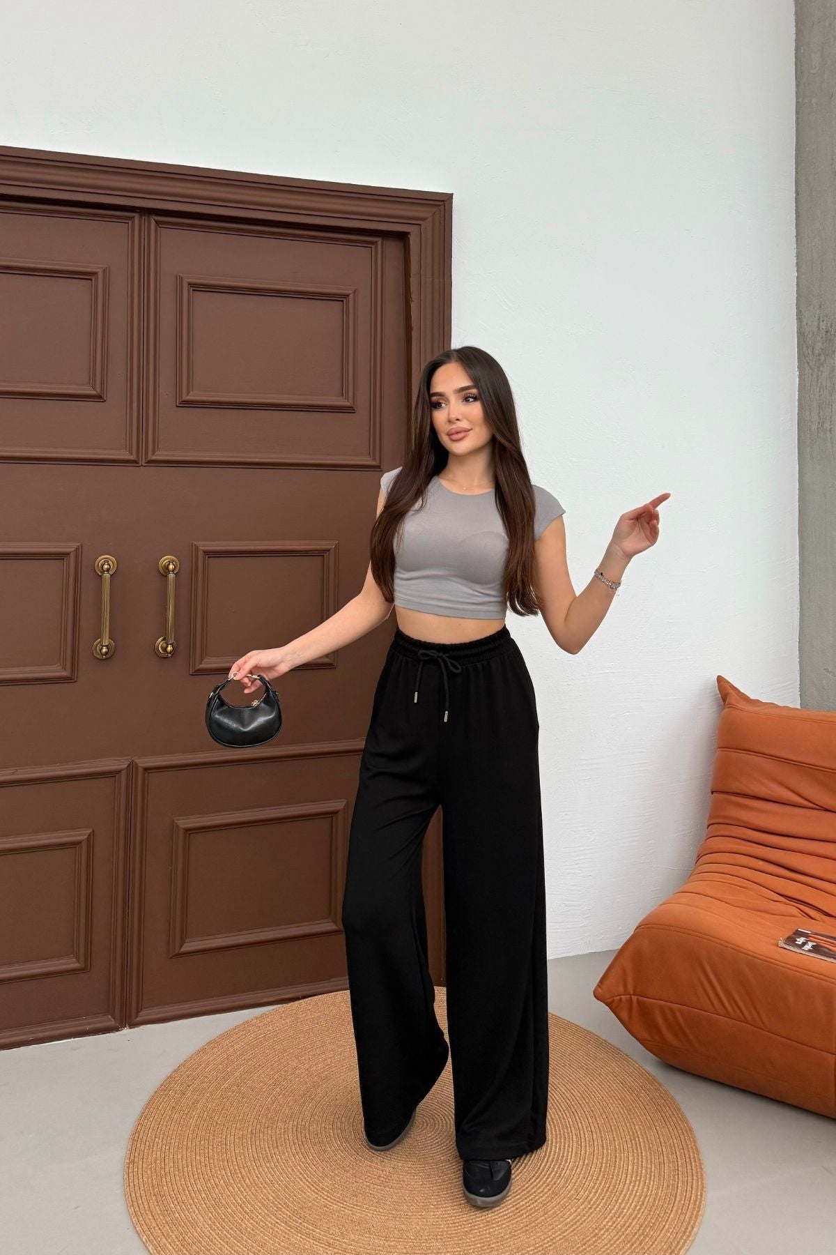 Basic Yumuşak Premium Kumaş Uzun Beli Lastikli Bol Paça Modal Alt-Üst Takım