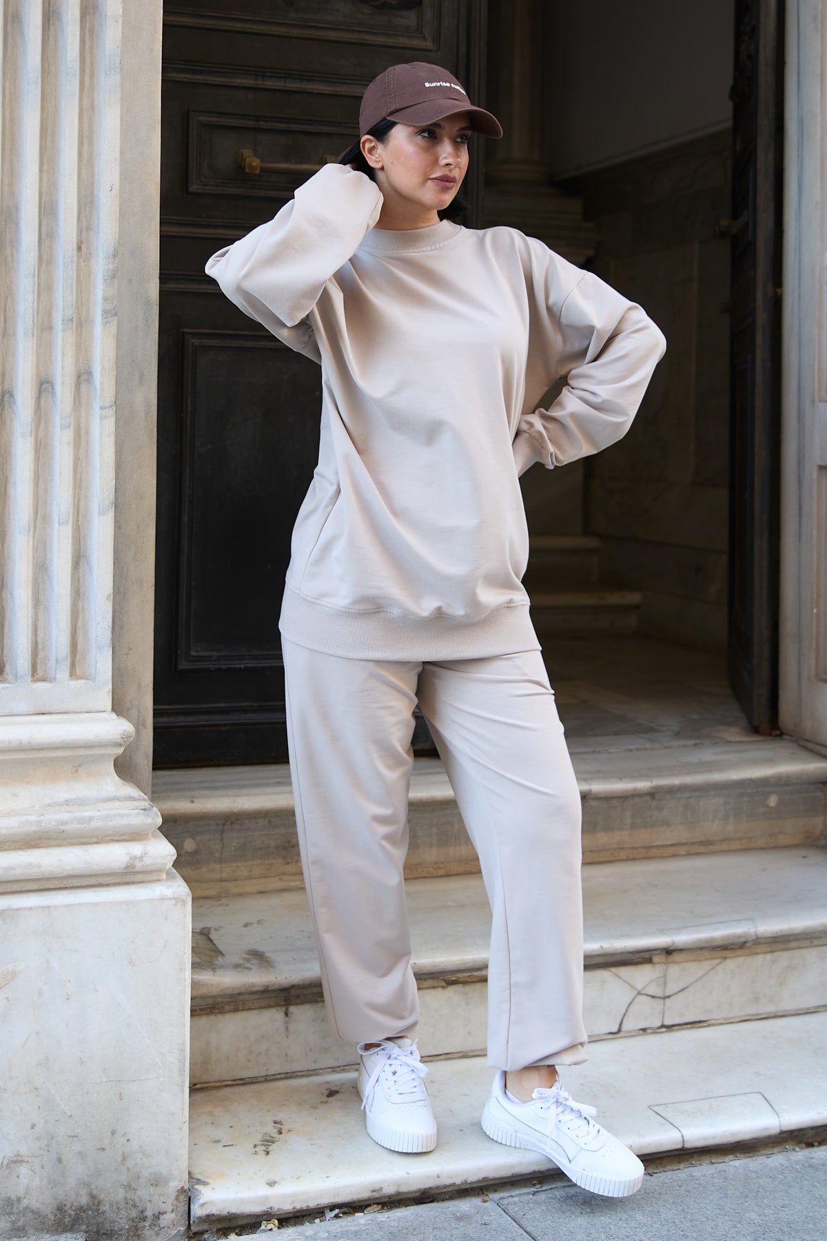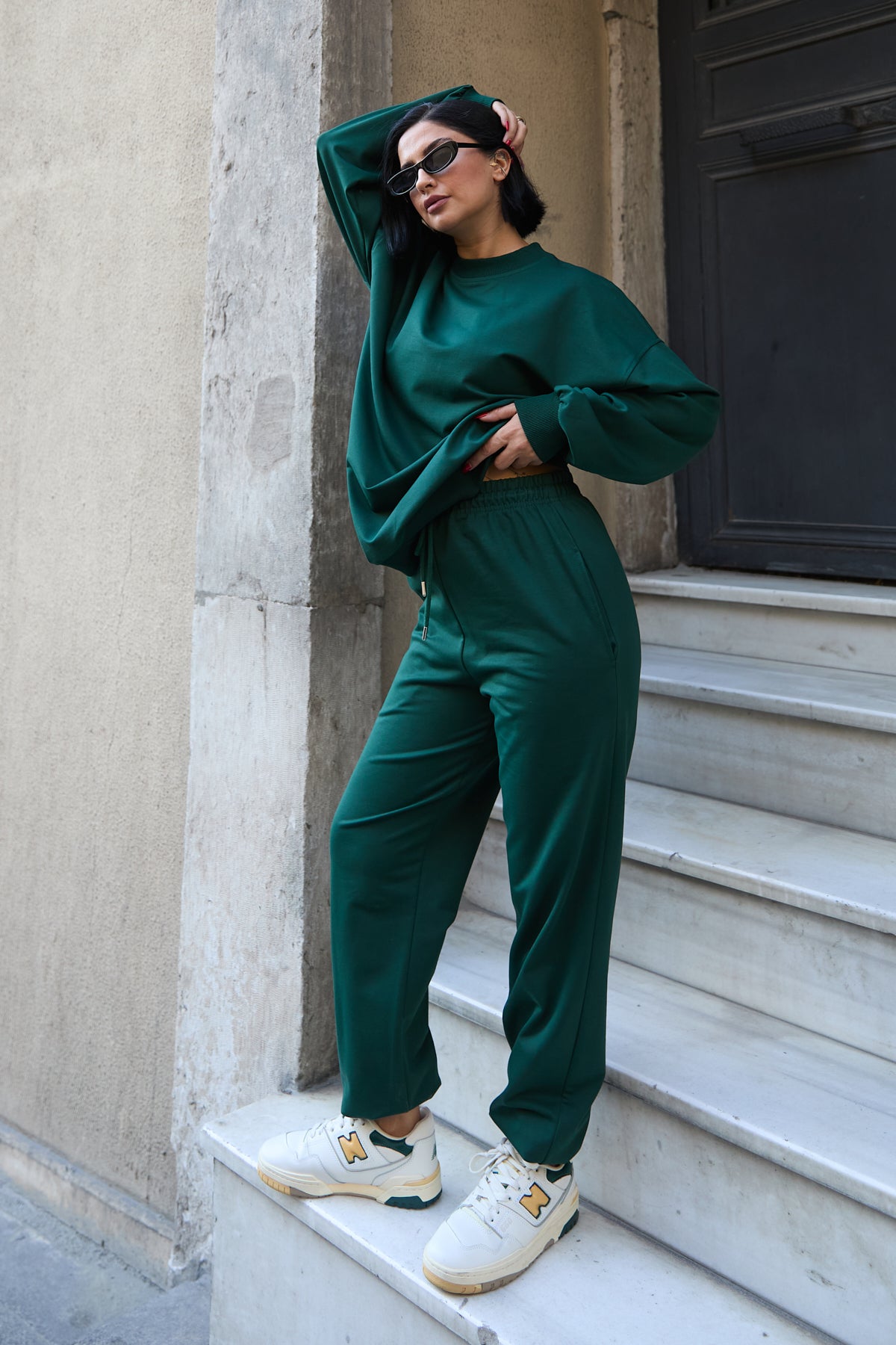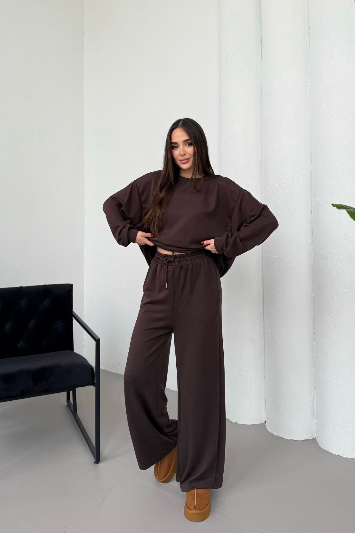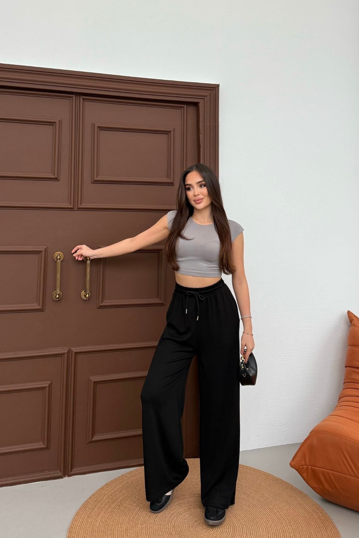 Basic Yumuşak Premium Kumaş Uzun Beli Lastikli Bol Paça Modal Alt-Üst Takım