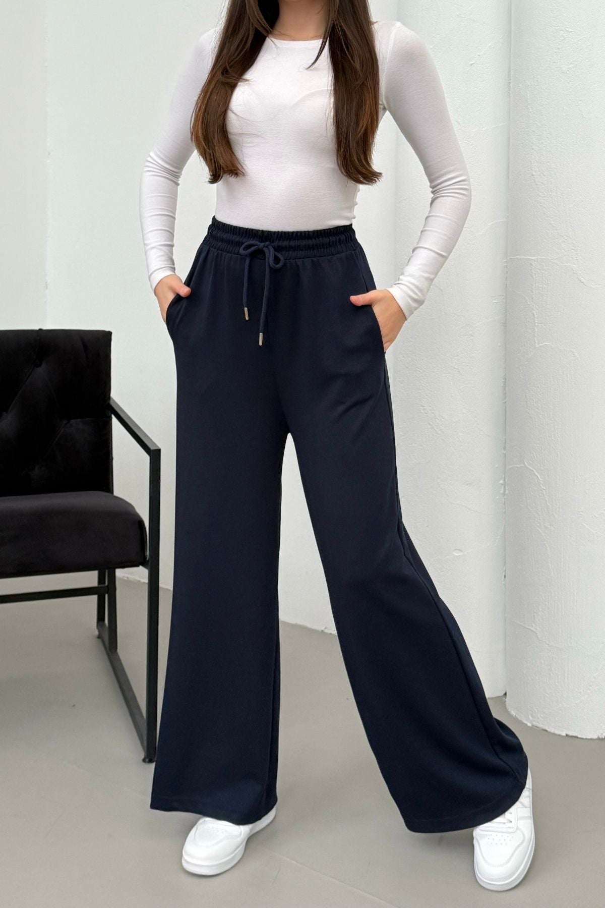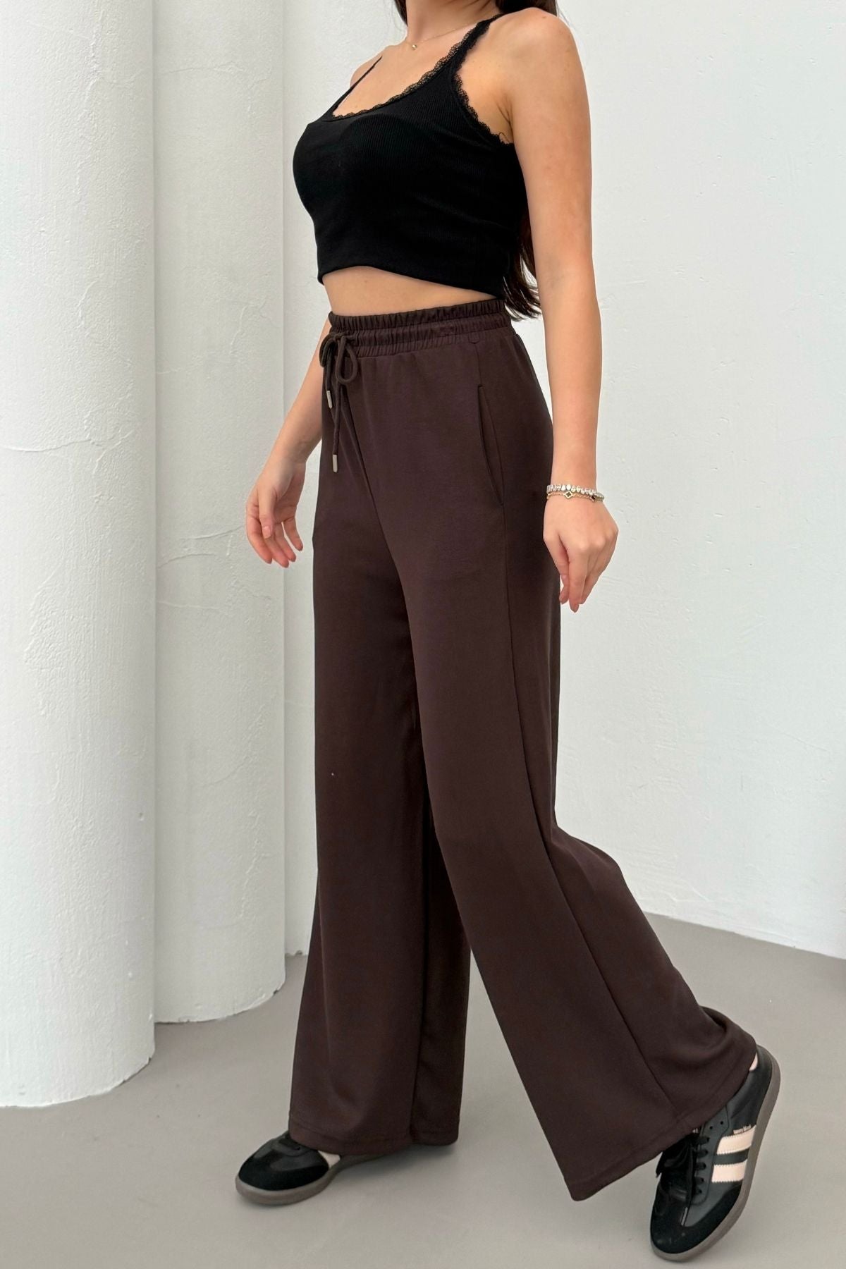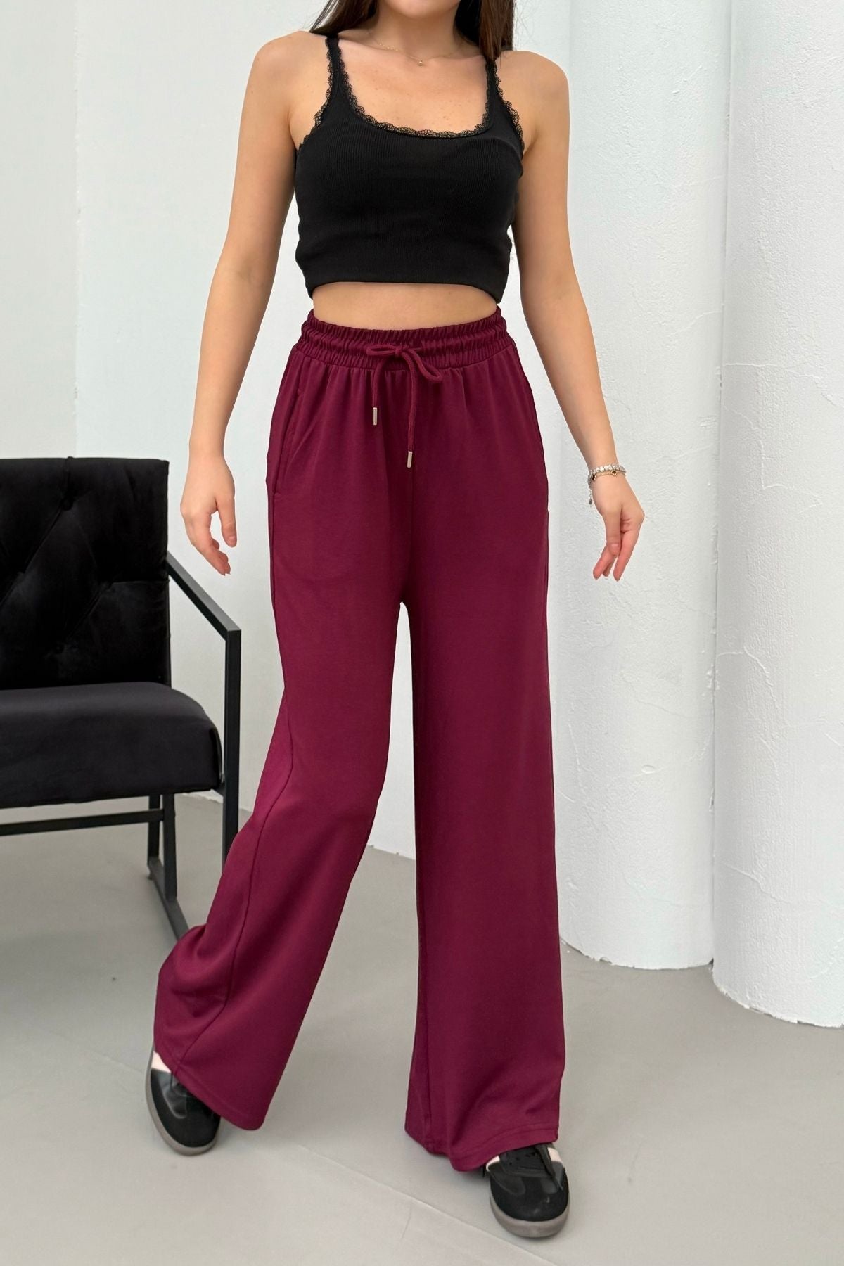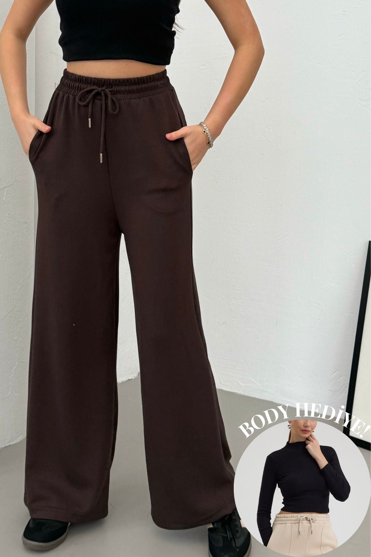 Yüksek Bel Cepli Rahat Form Modal Touch Geniş Paça Kadın Eşofman Alt