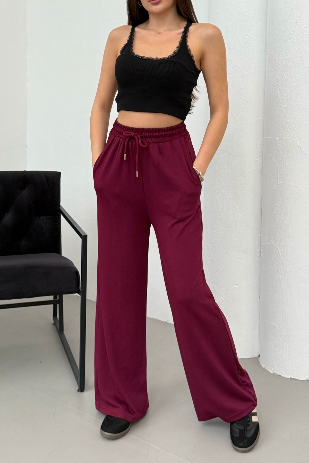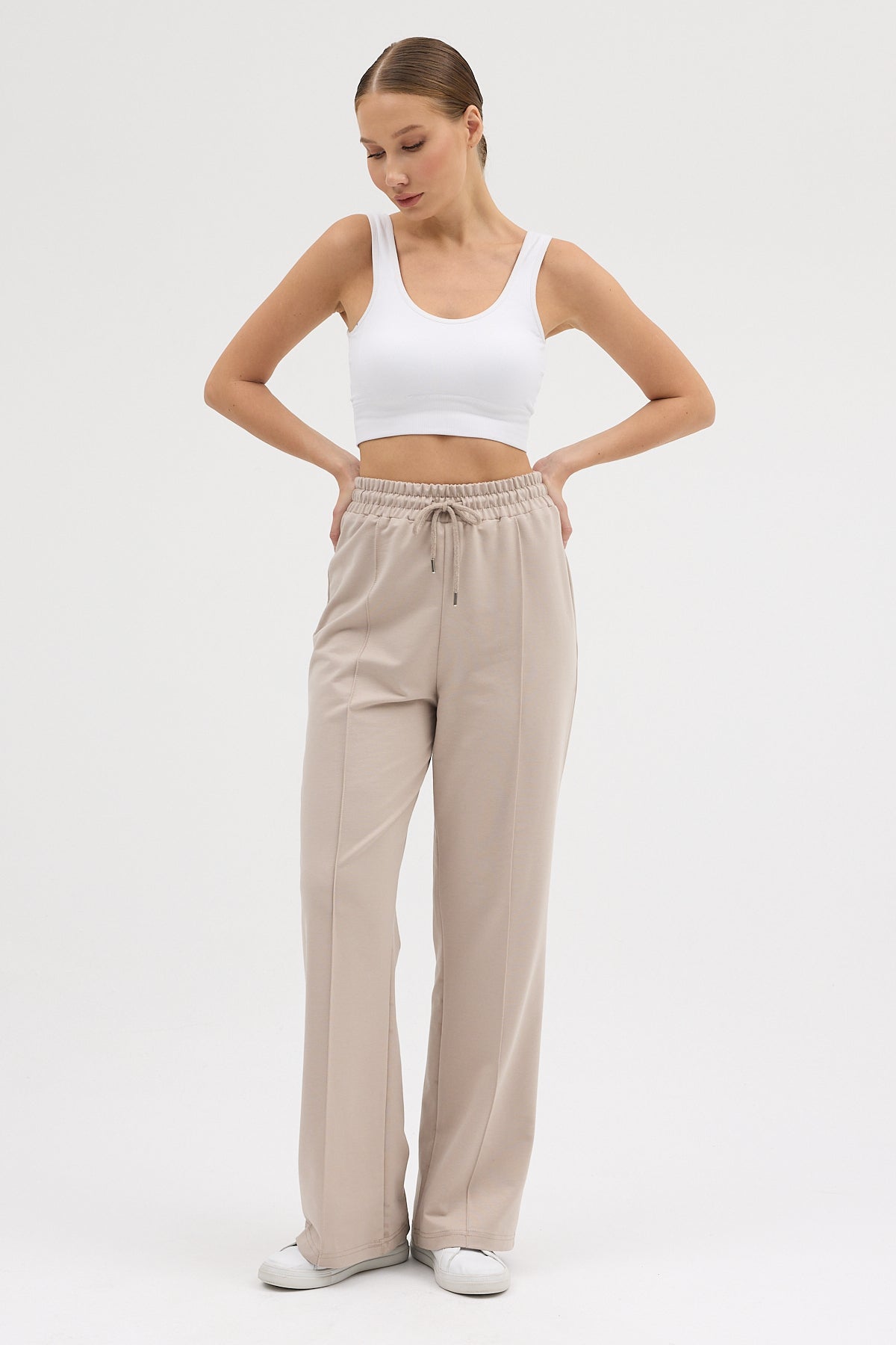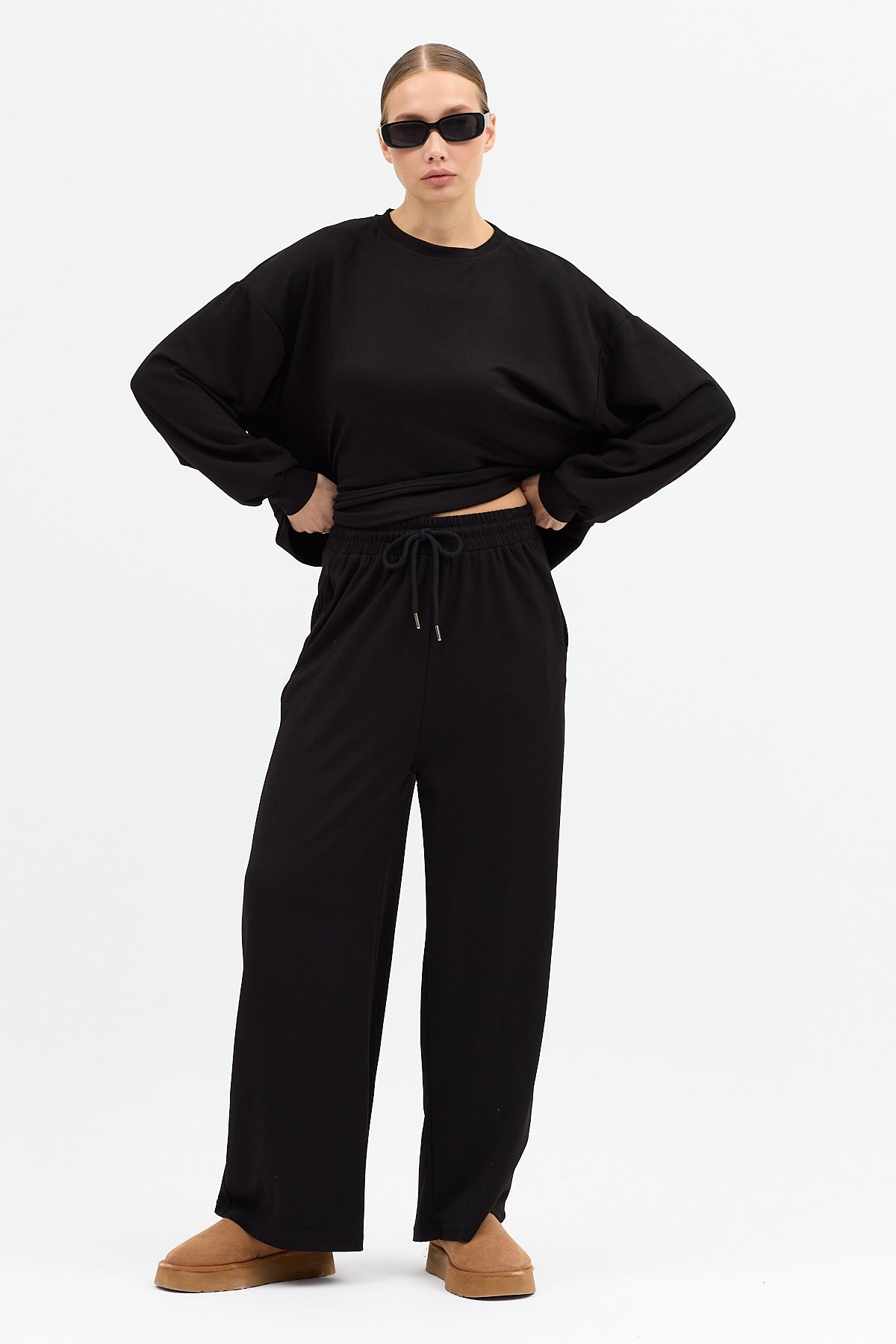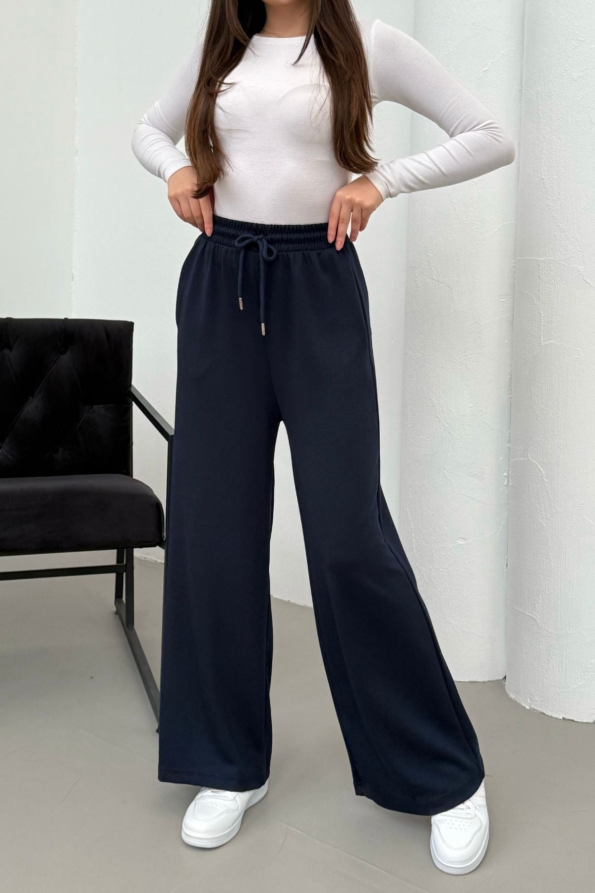 Yüksek Bel Cepli Rahat Form Modal Touch Geniş Paça Kadın Eşofman Alt