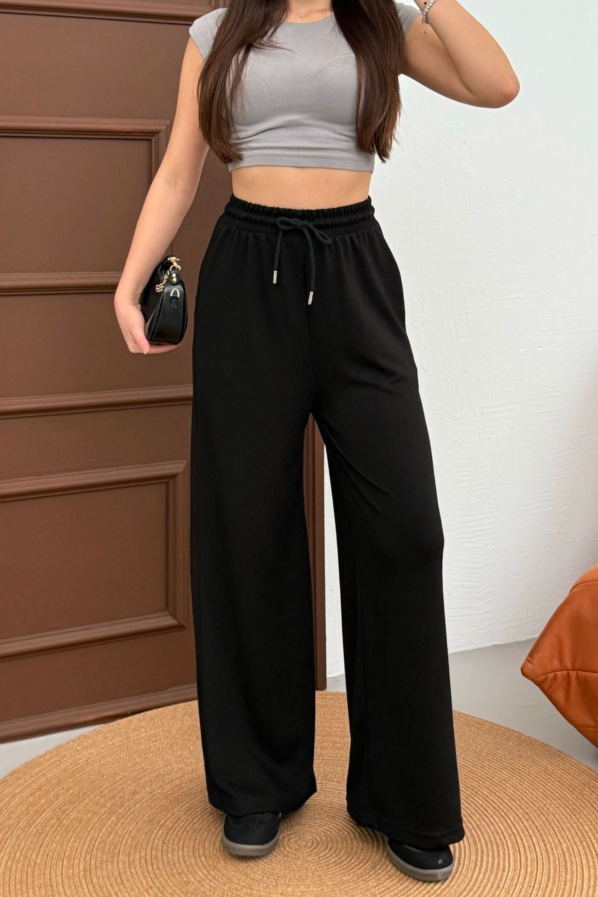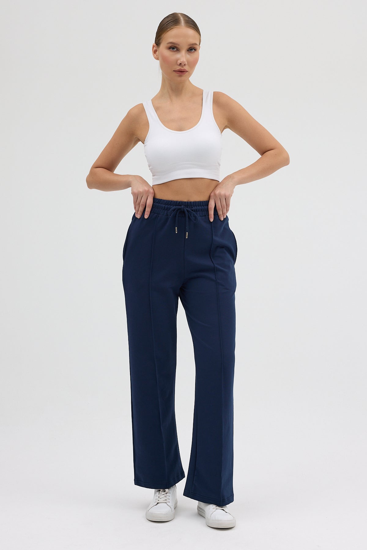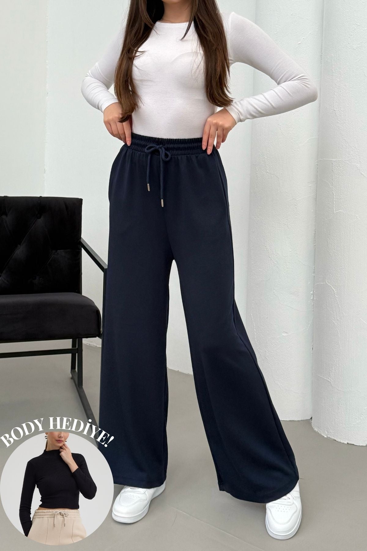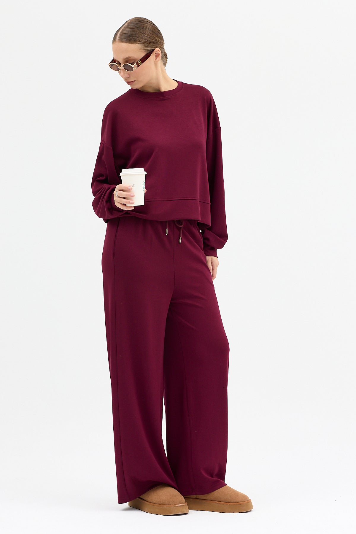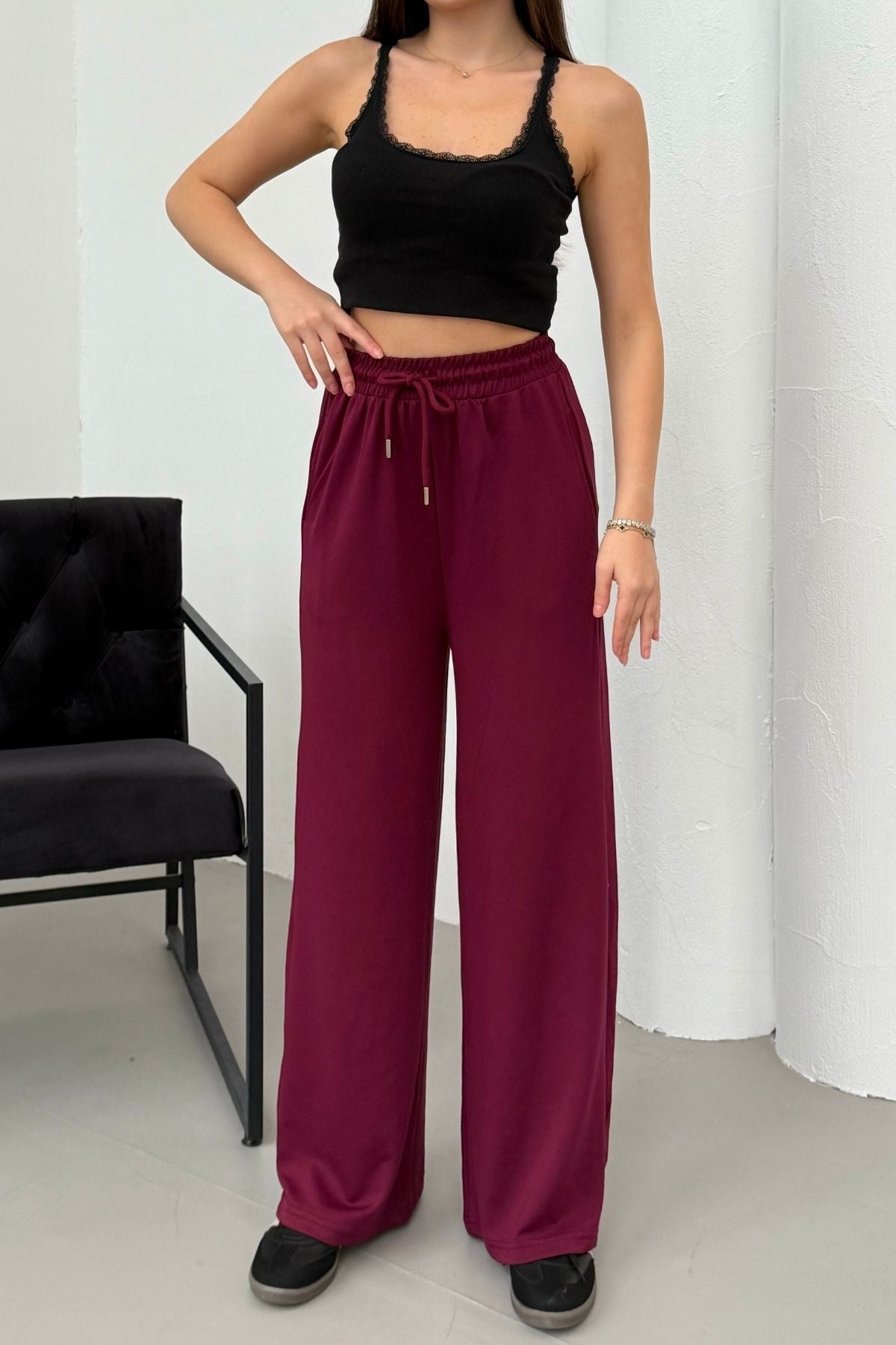Yüksek Bel Cepli Rahat Form Modal Touch Geniş Paça Kadın Eşofman Alt