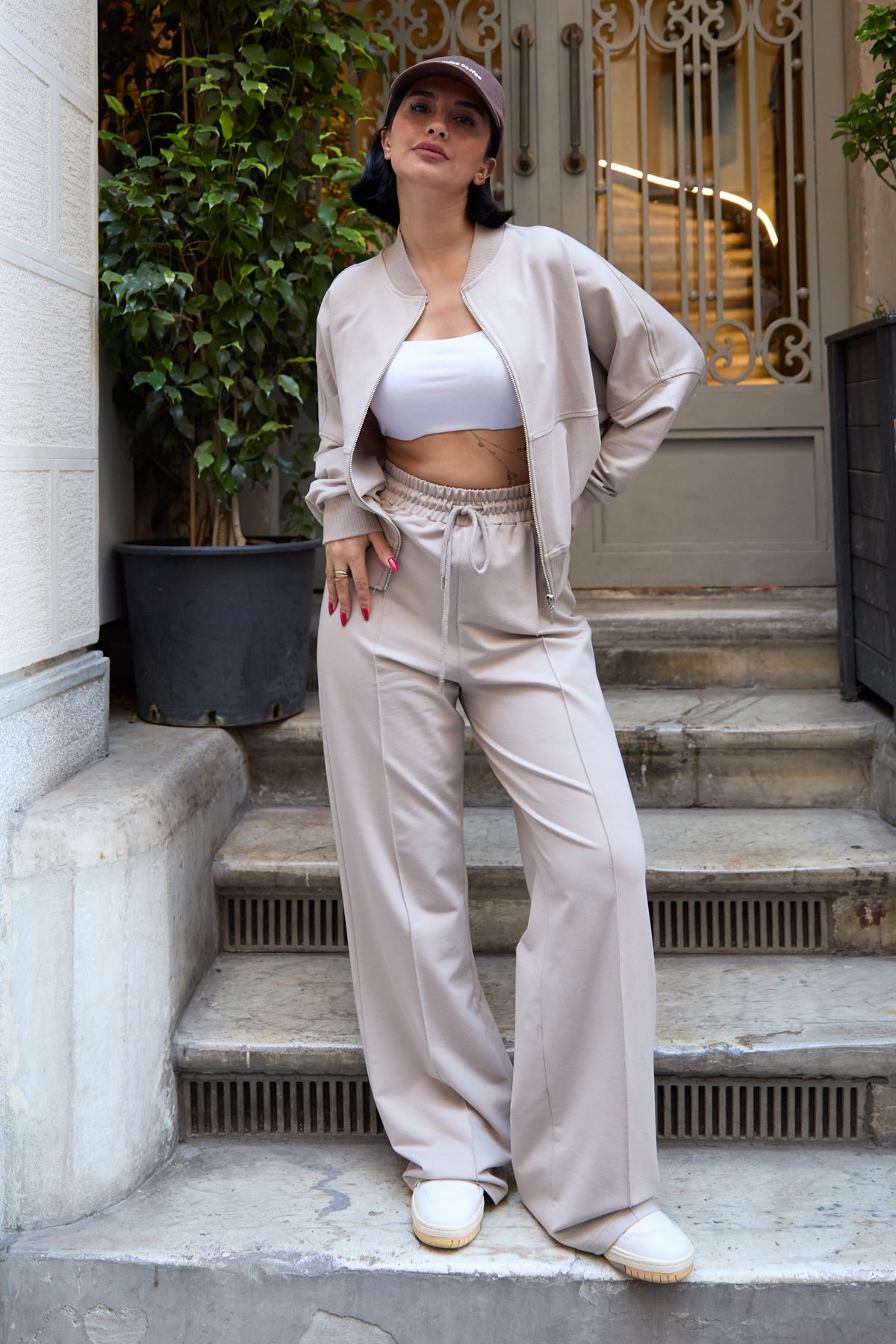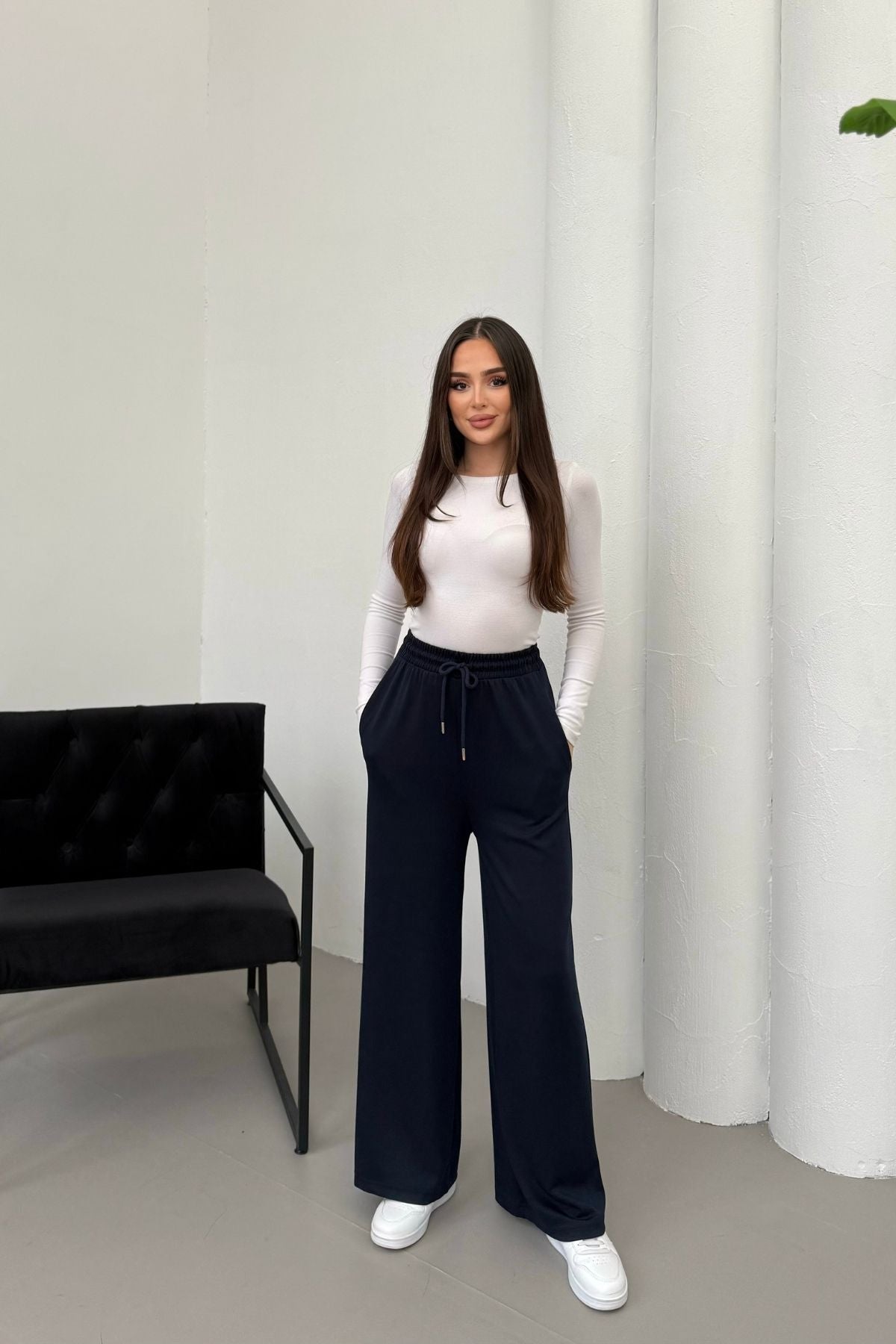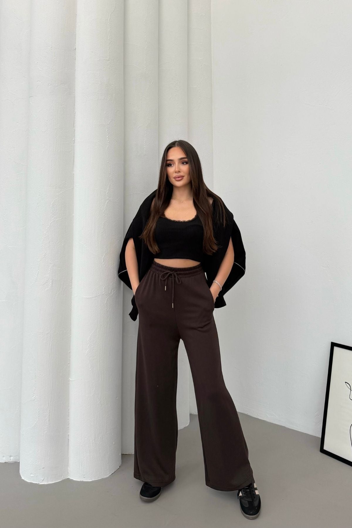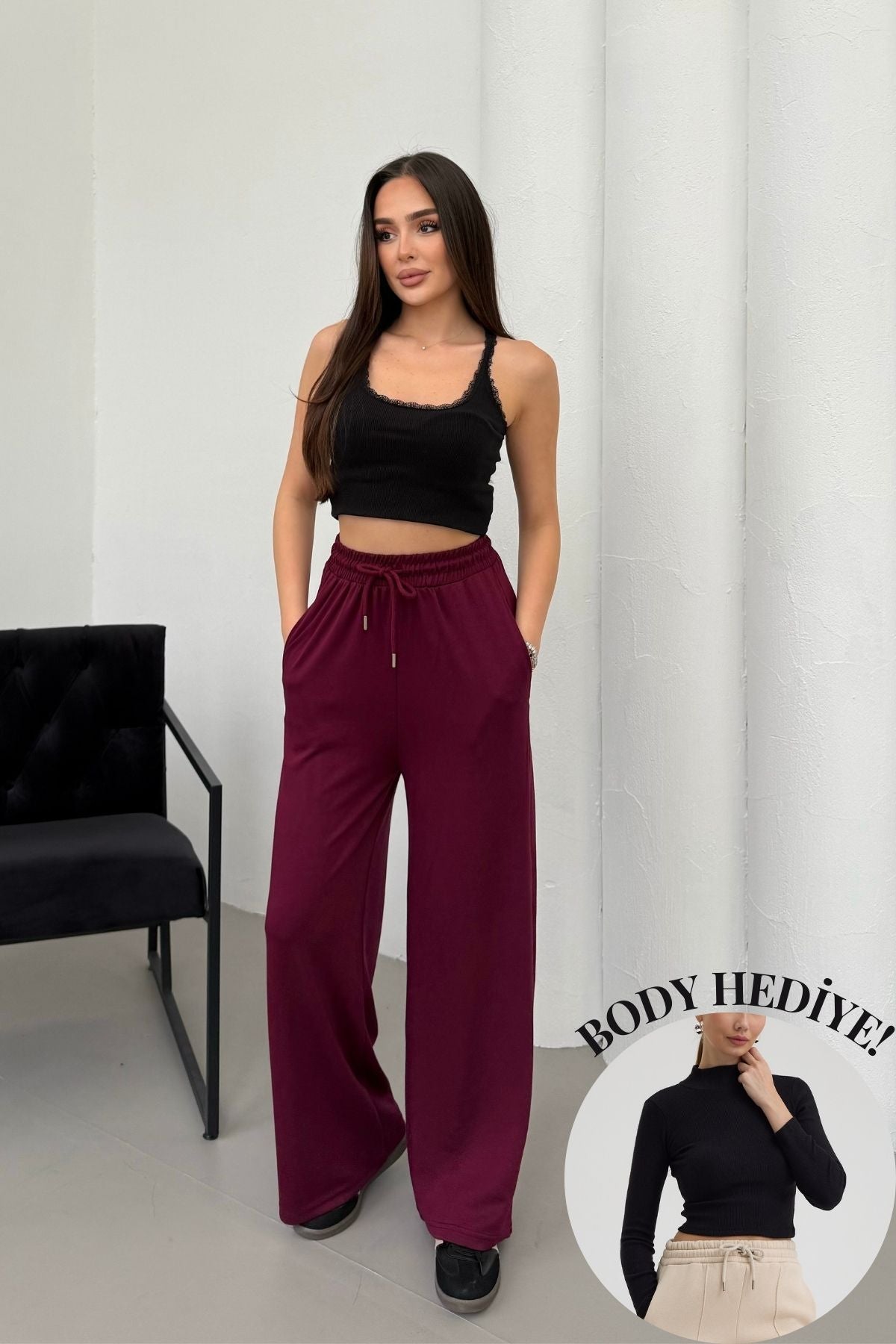 Yüksek Bel Cepli Rahat Form Modal Touch Geniş Paça Kadın Eşofman Alt