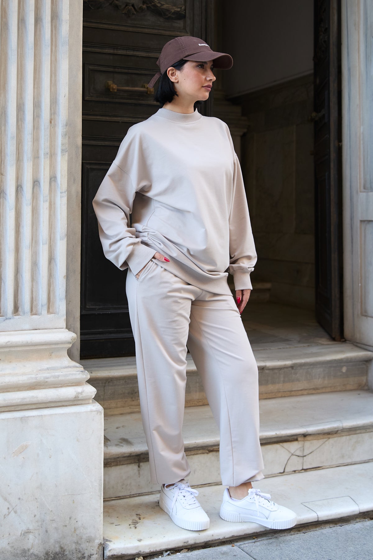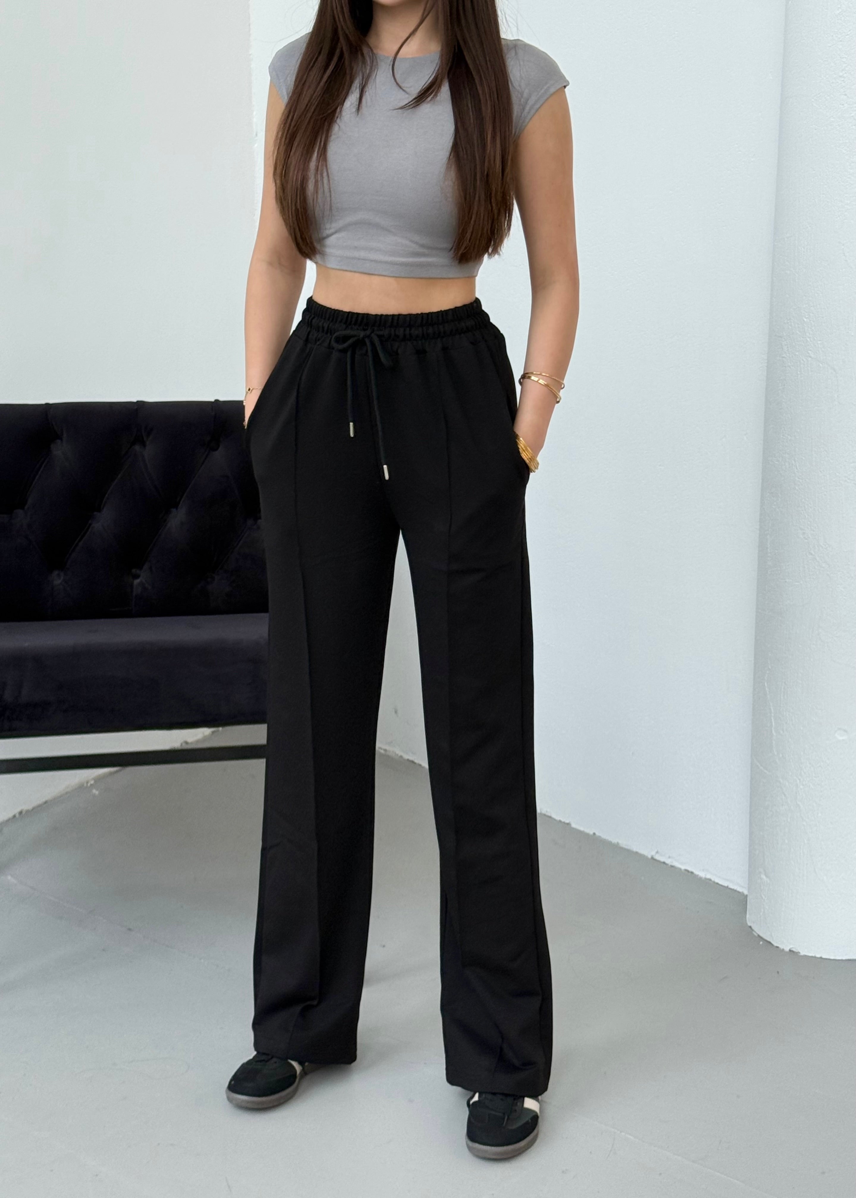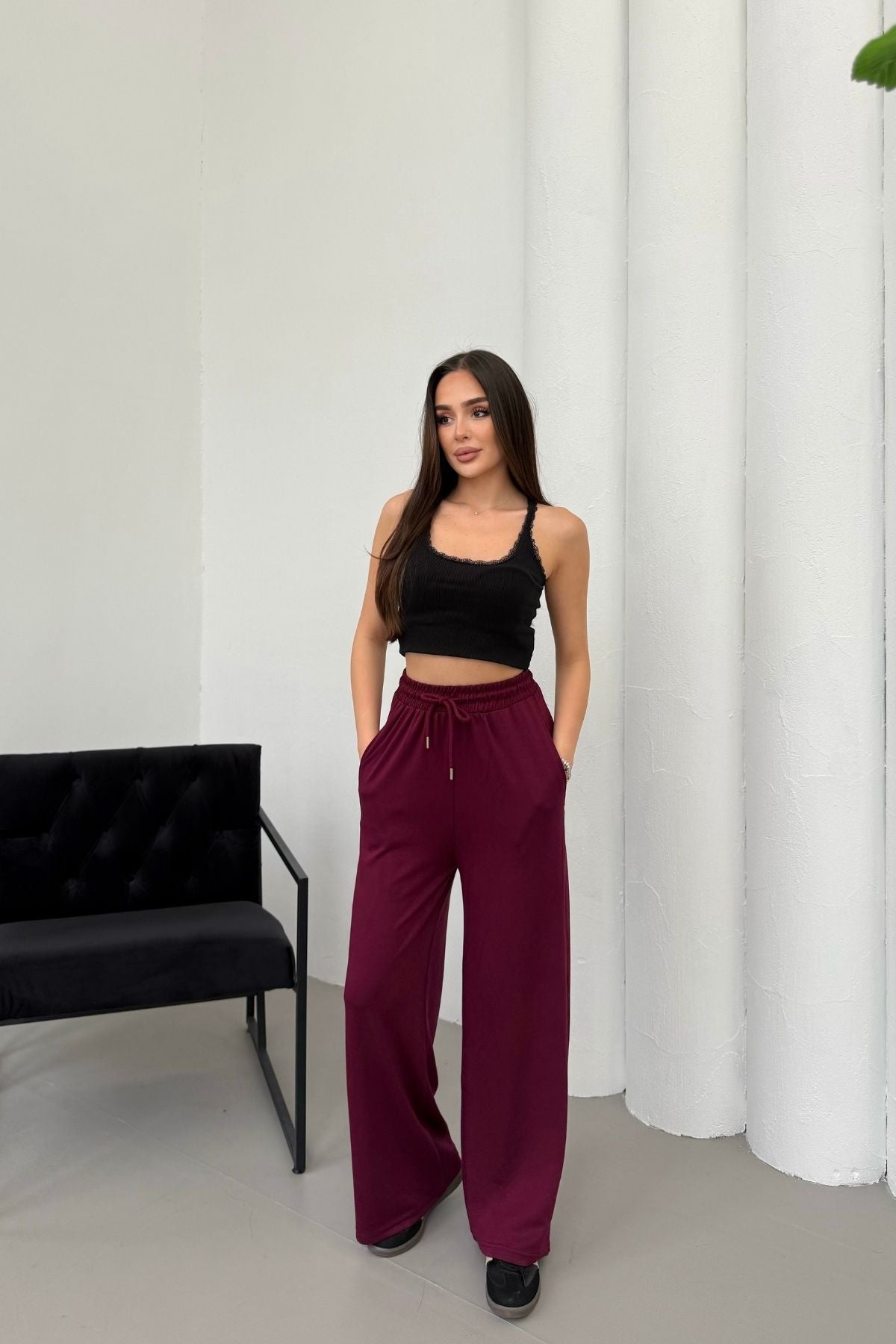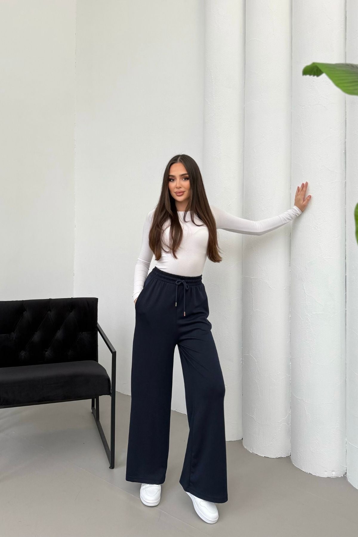 Yüksek Bel Cepli Rahat Form Modal Touch Geniş Paça Kadın Eşofman Alt