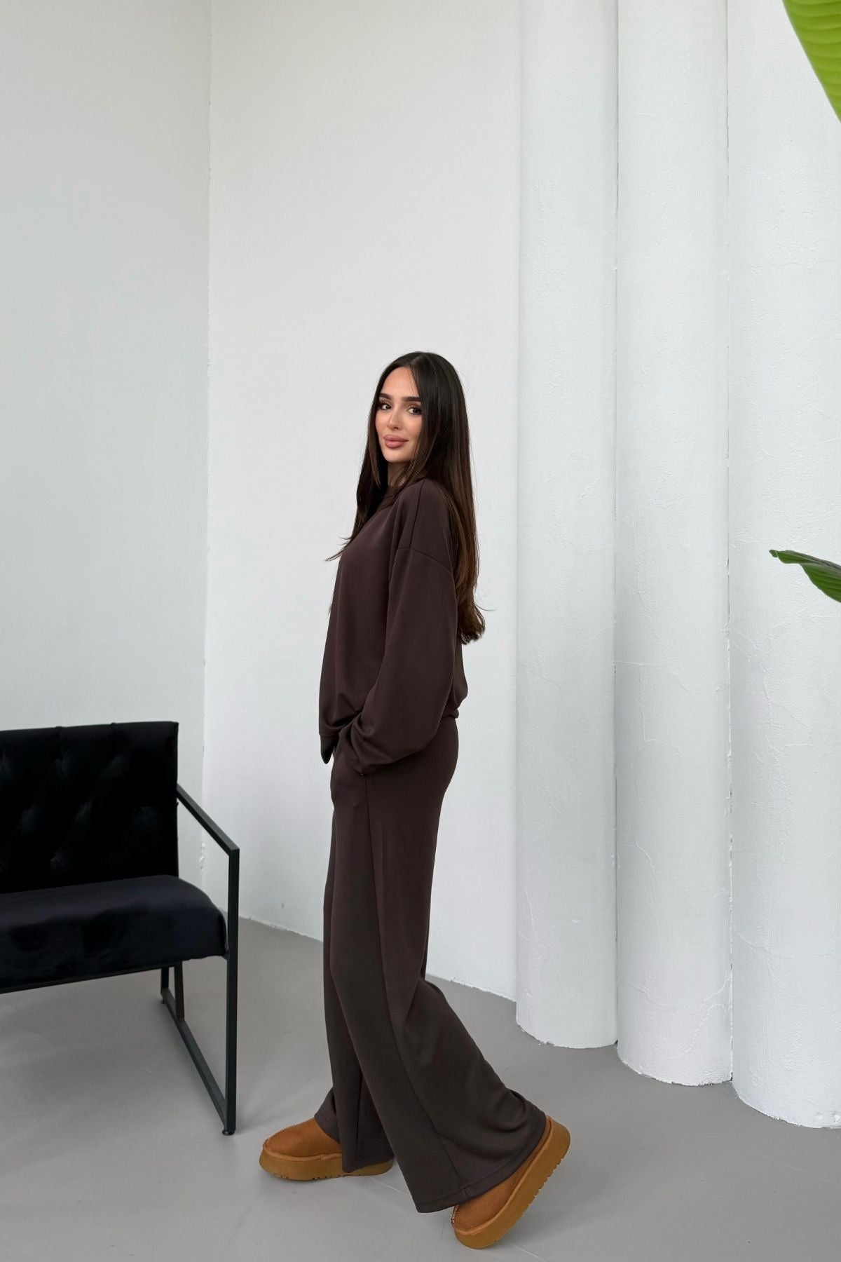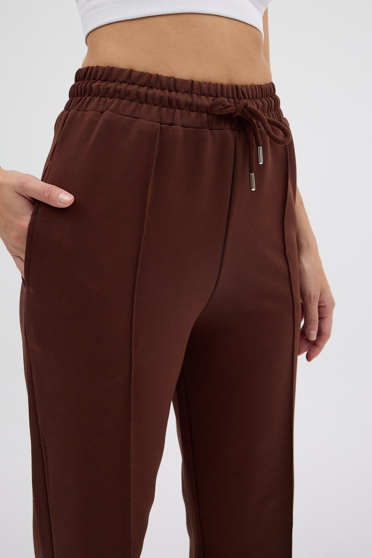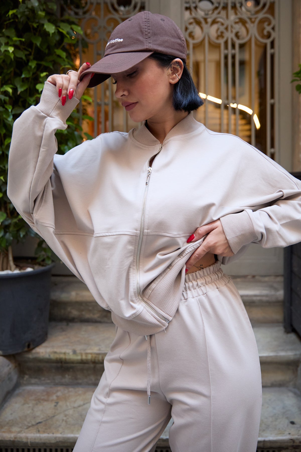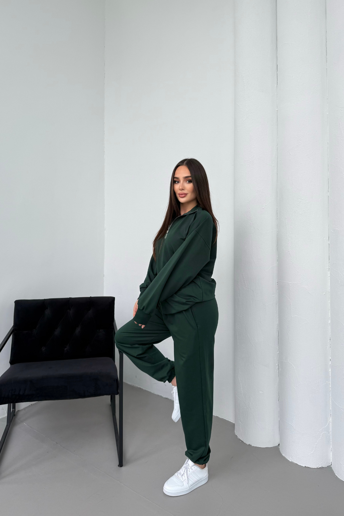 Kadın Yarım Fermuarlı Sweatshırt Ve Paçası Lastikli Kahverengi Eşofman Takımı