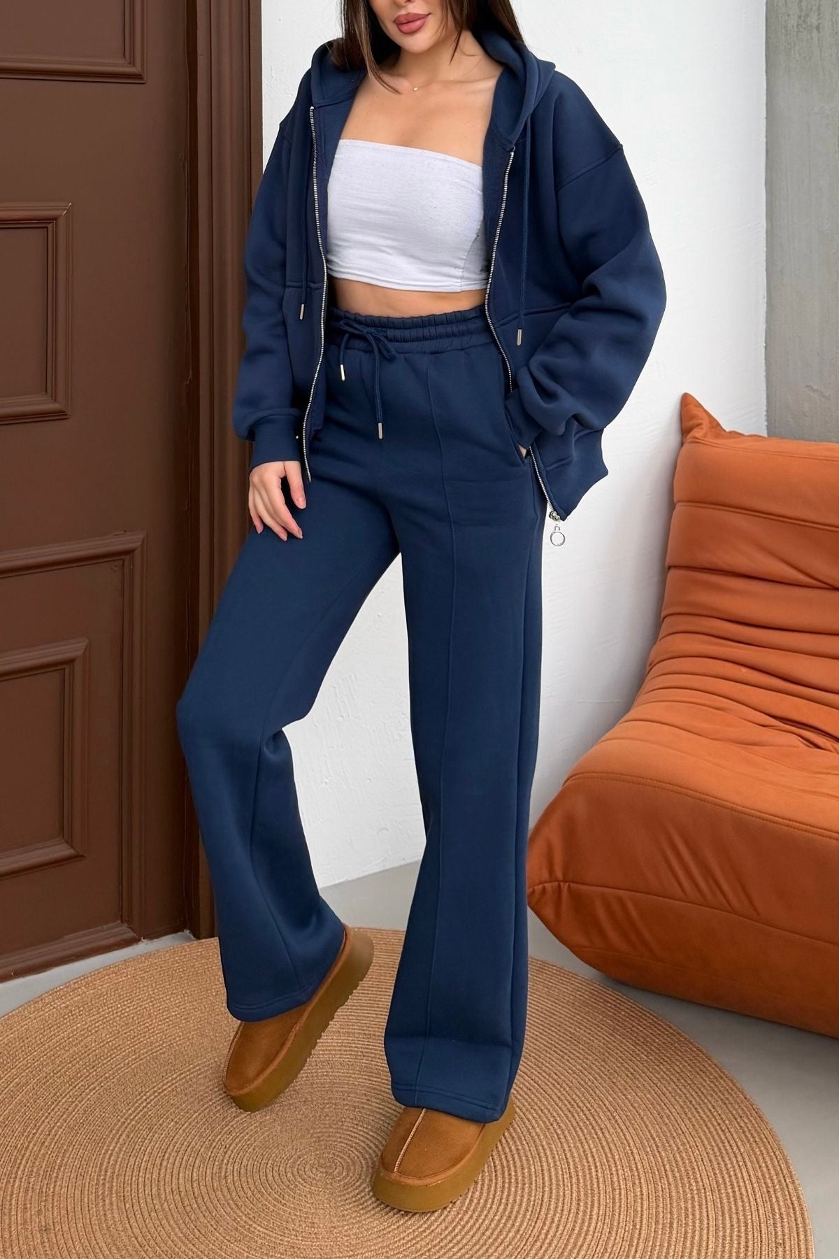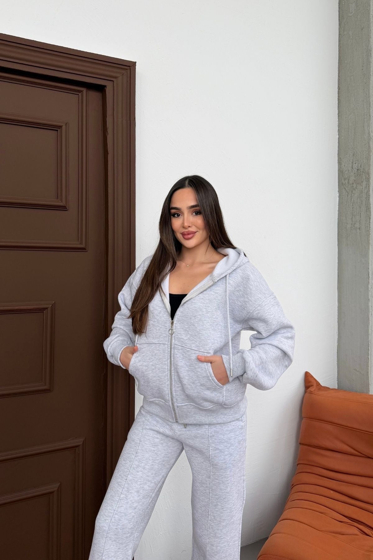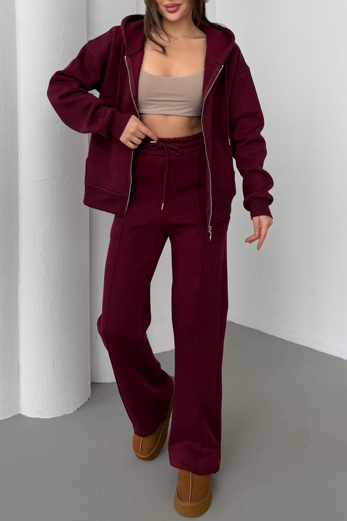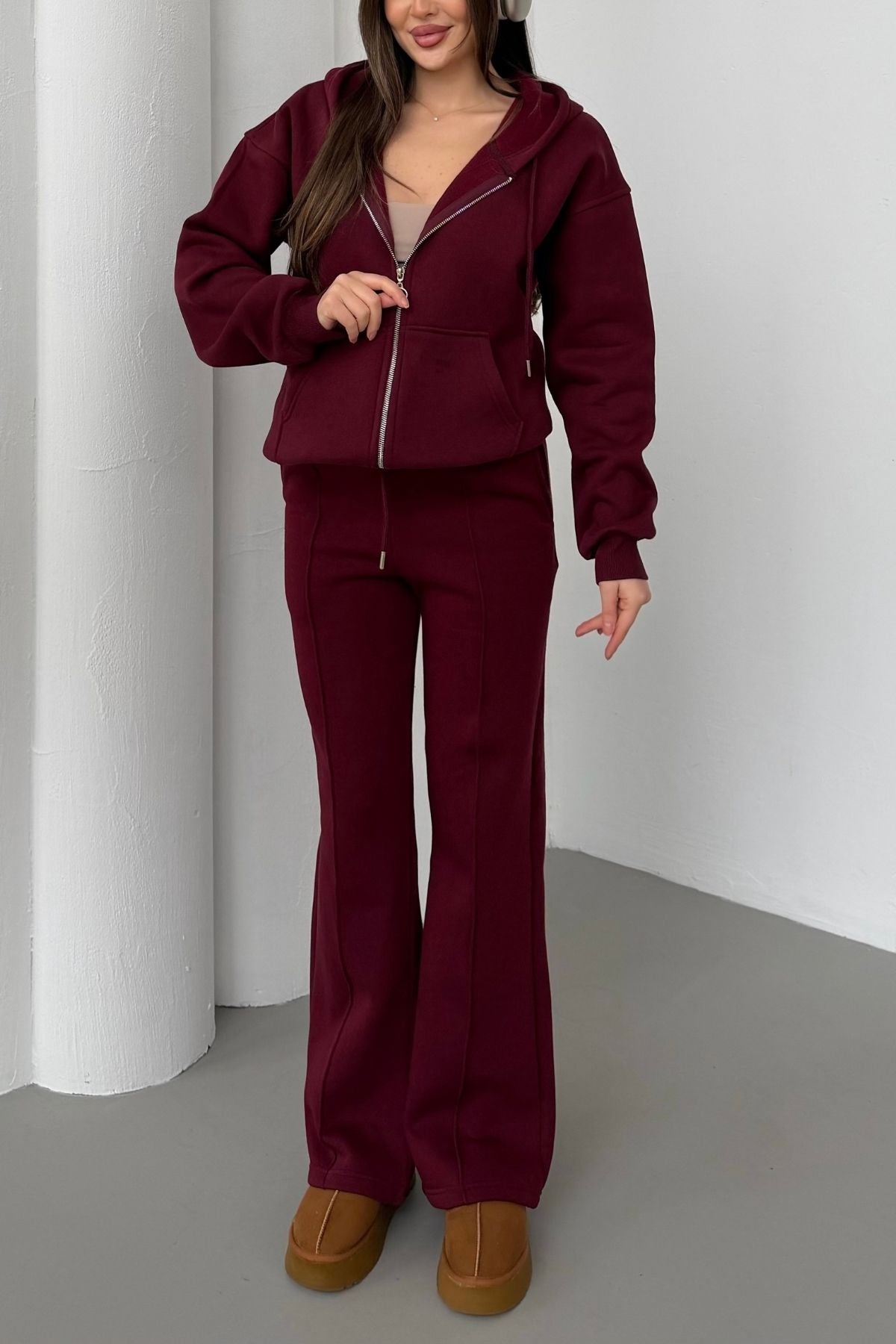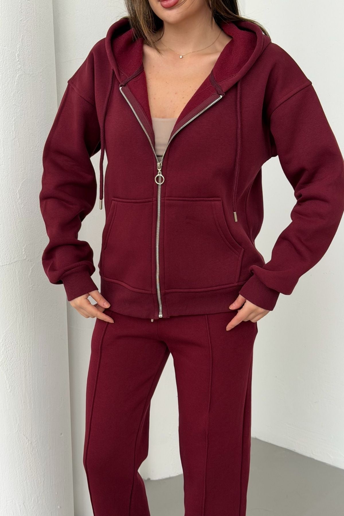 İçi Polar Rahat Kesim Kapüşonlu Fermuarlı Eşofman Takımı