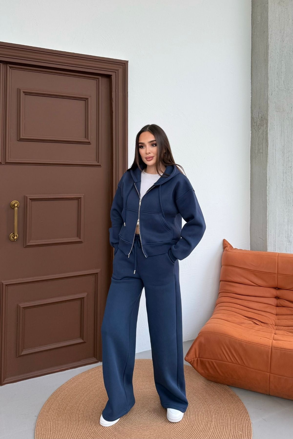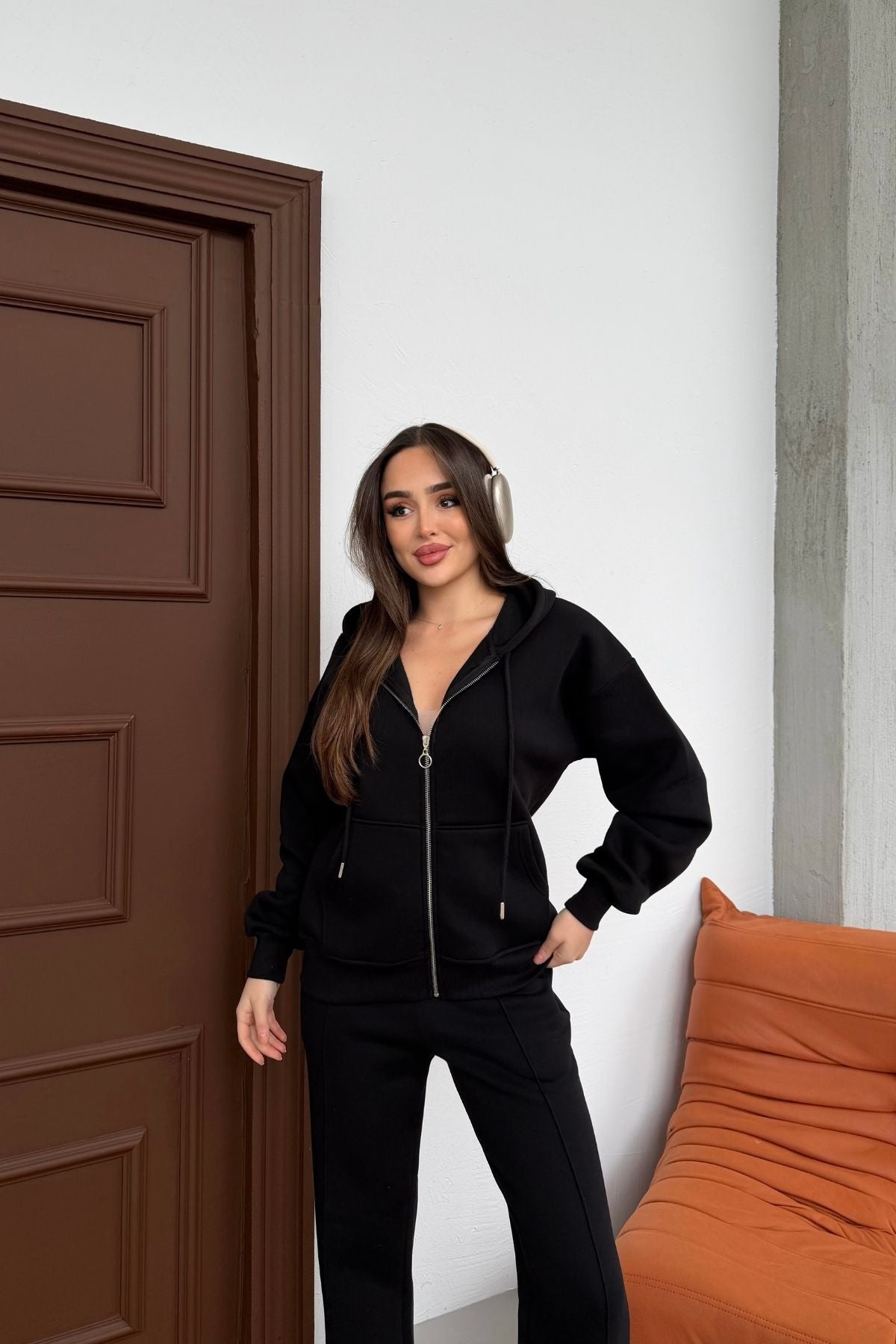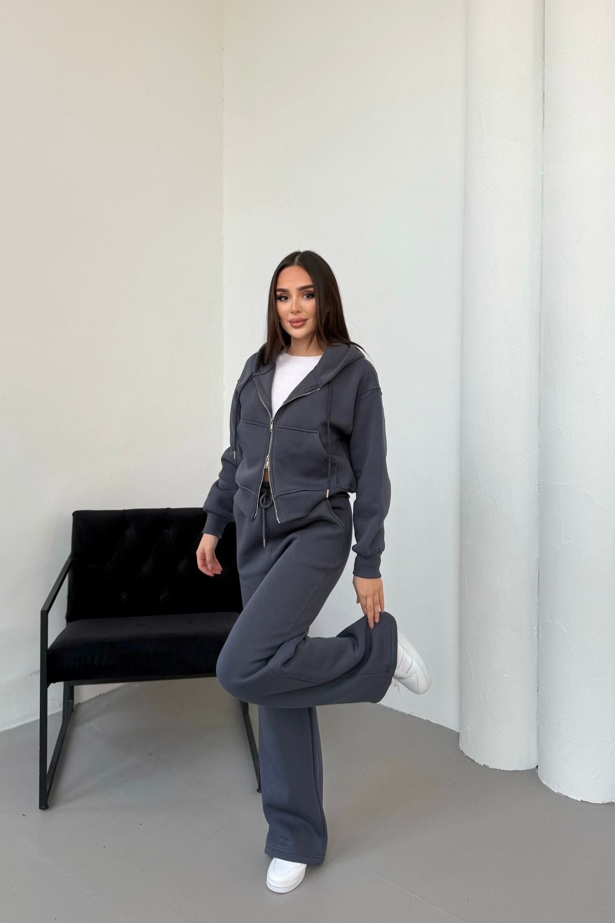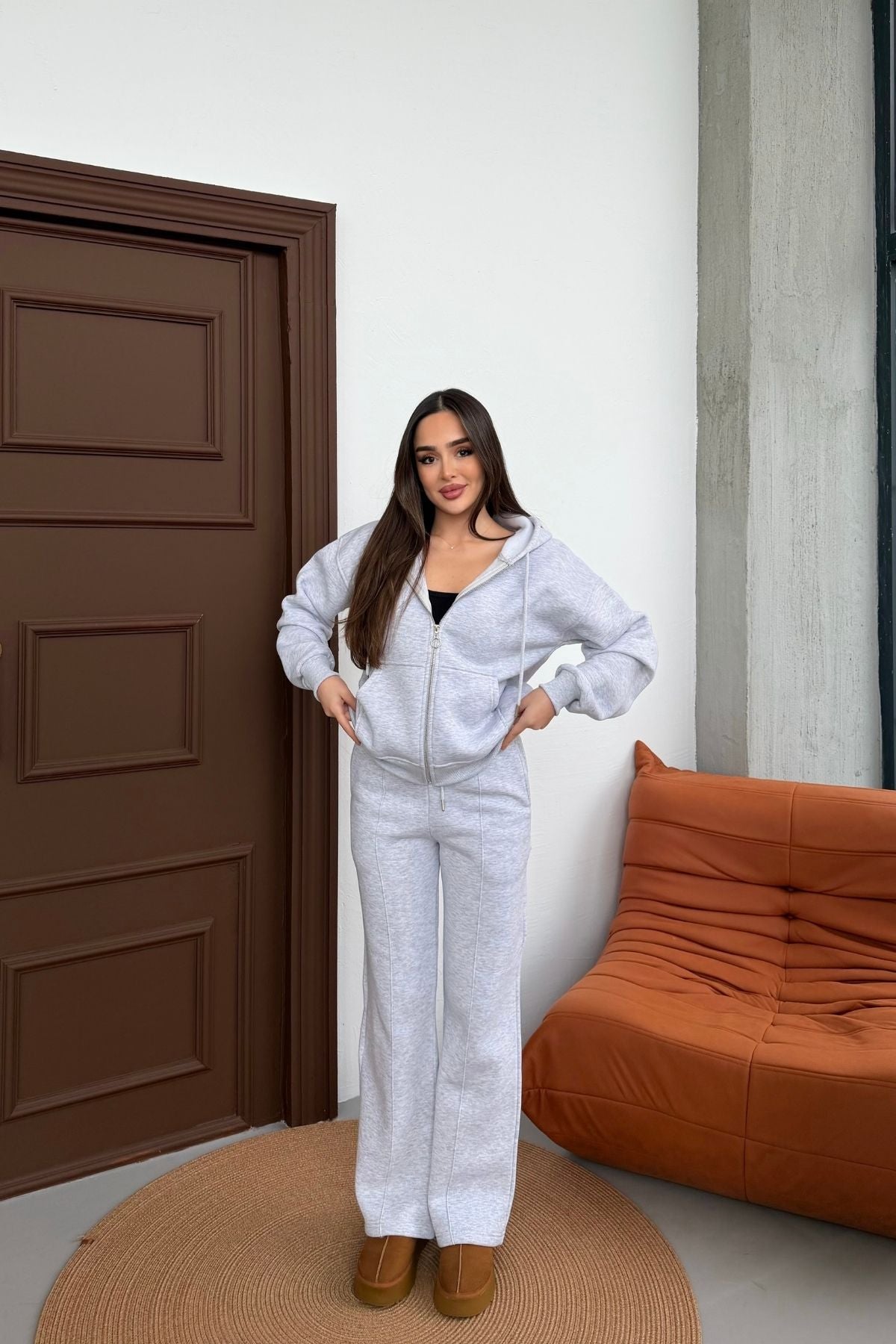 İçi Polar Rahat Kesim Kapüşonlu Fermuarlı Eşofman Takımı
