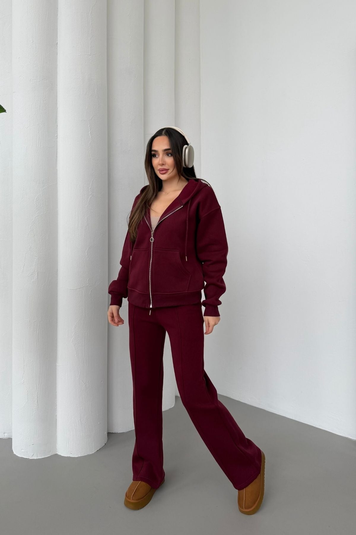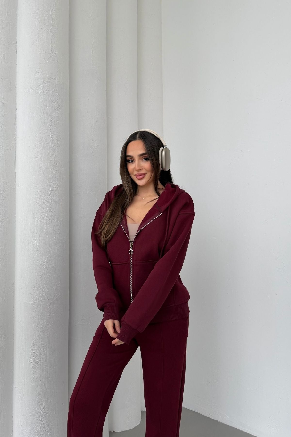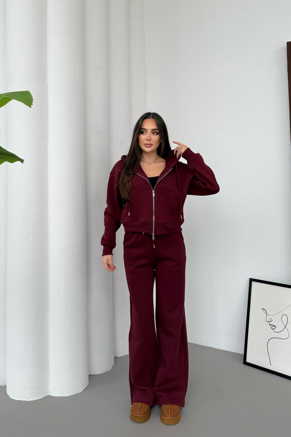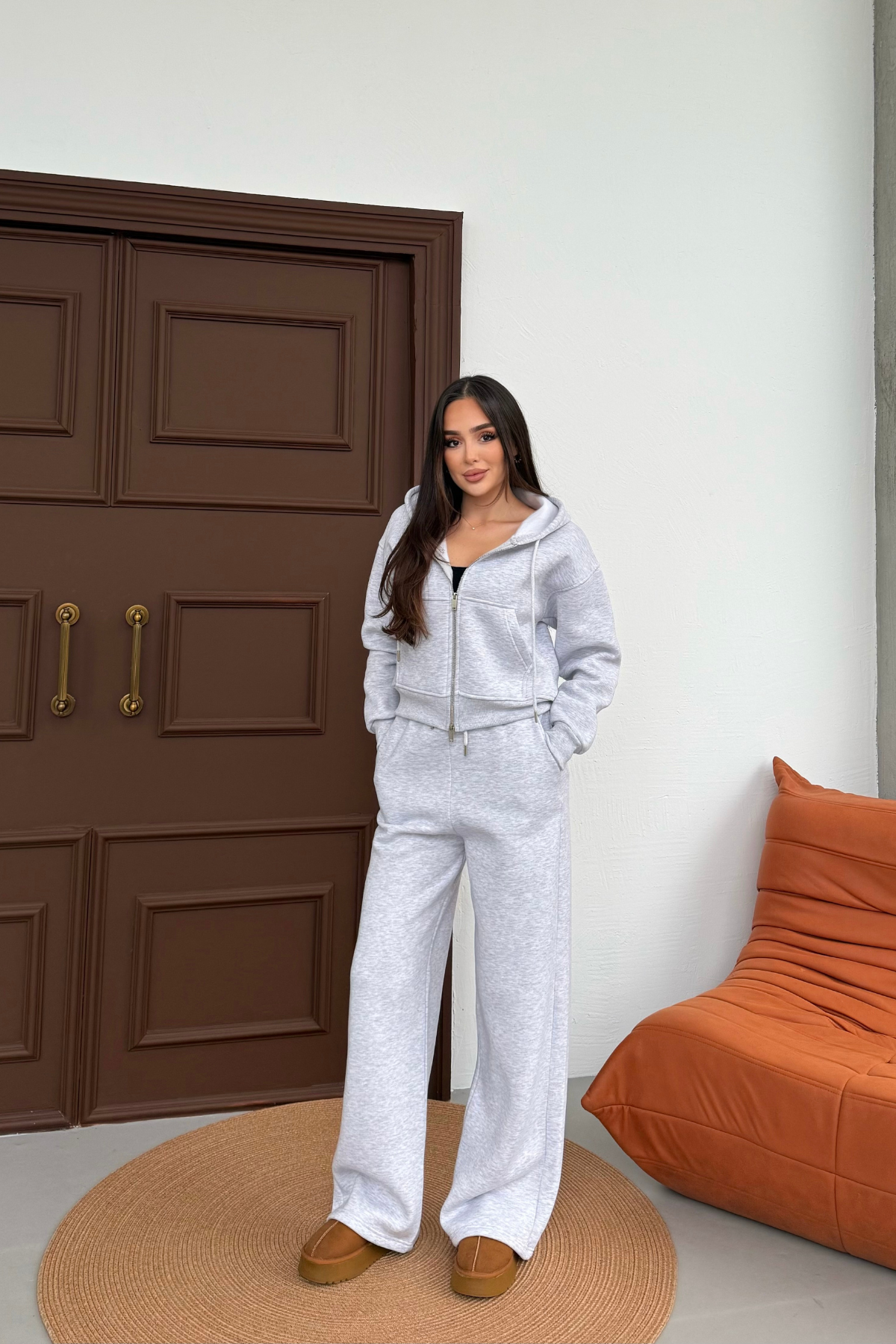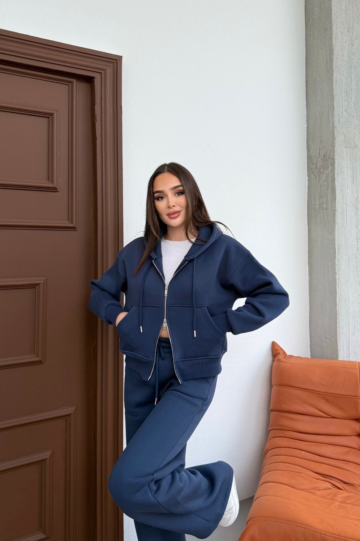 İçi Polar Rahat Kesim Kapüşonlu Fermuarlı Eşofman Takımı