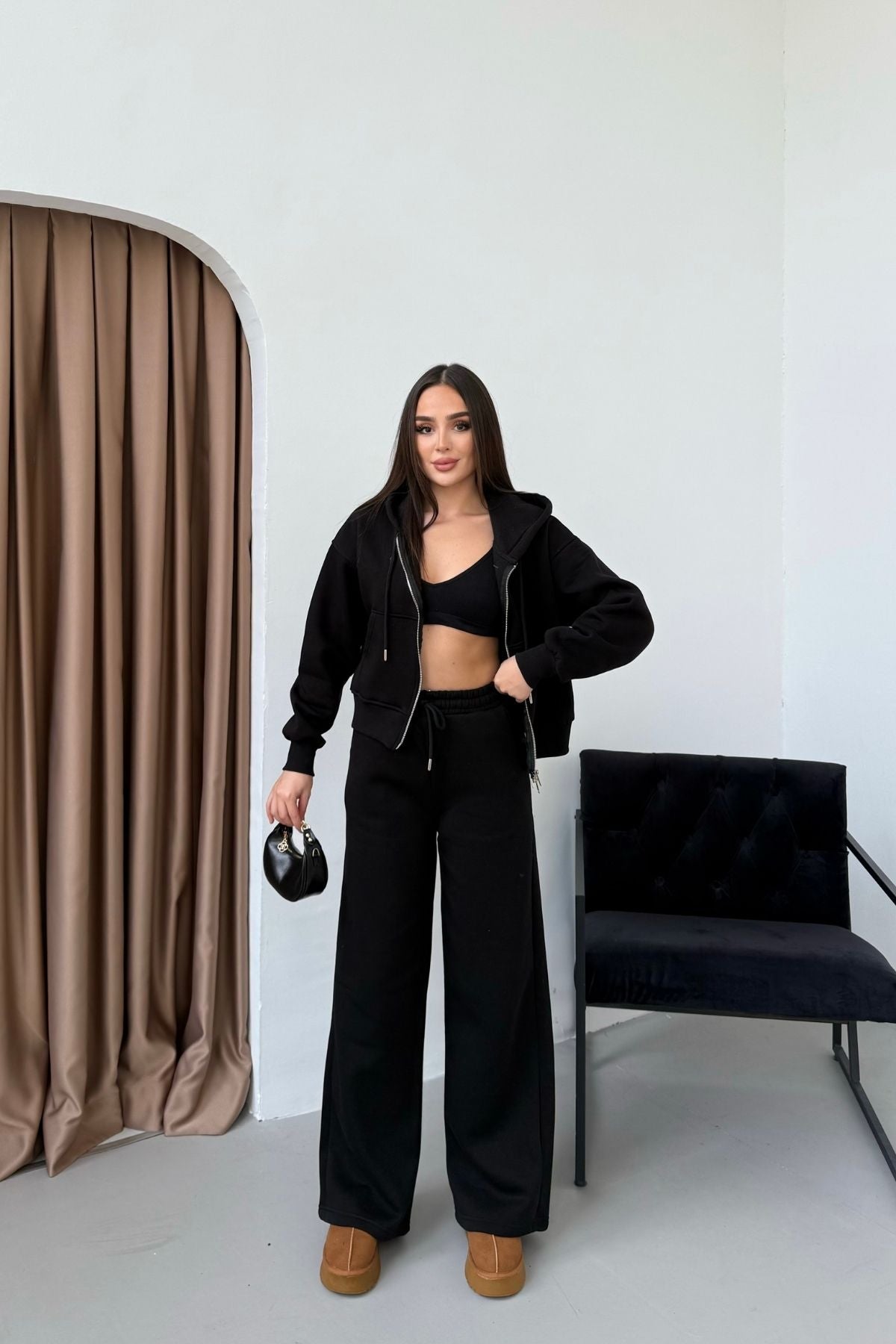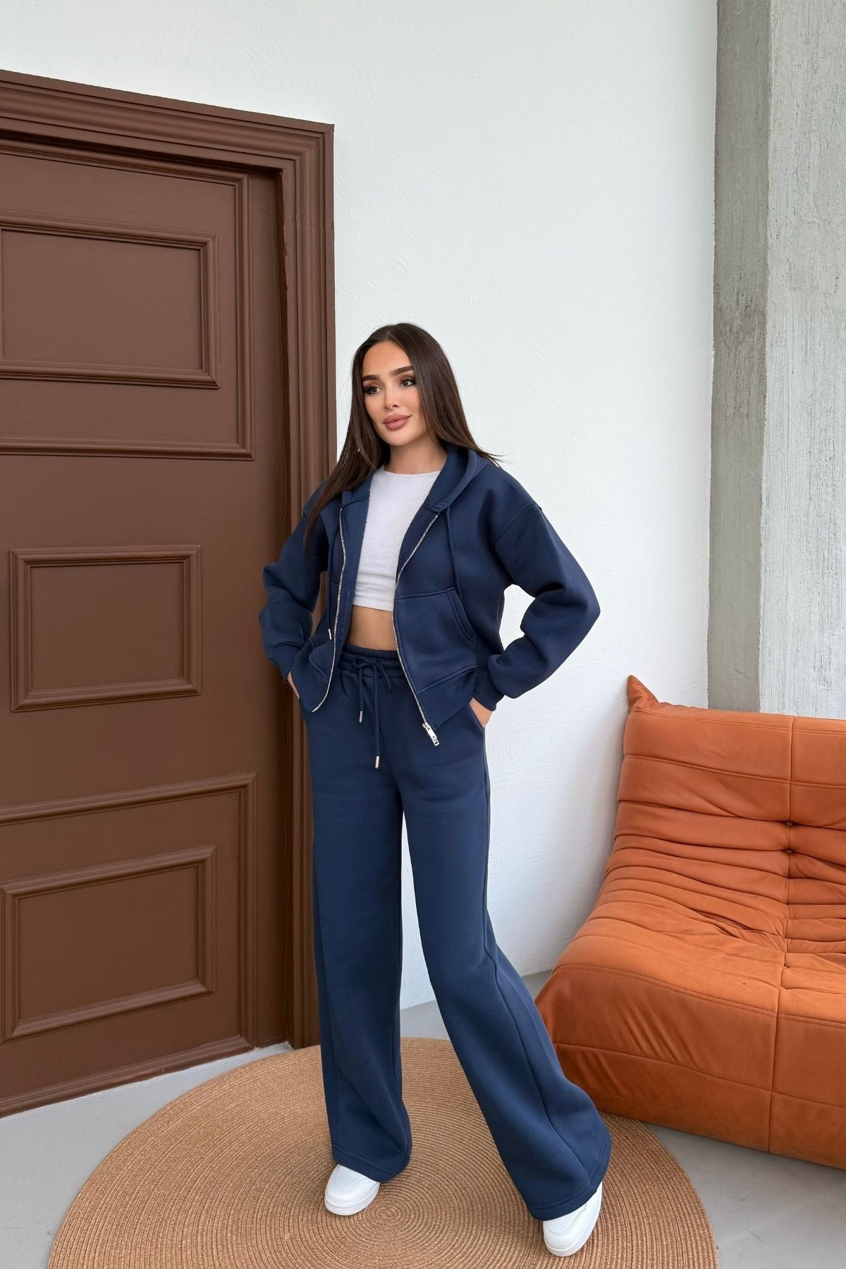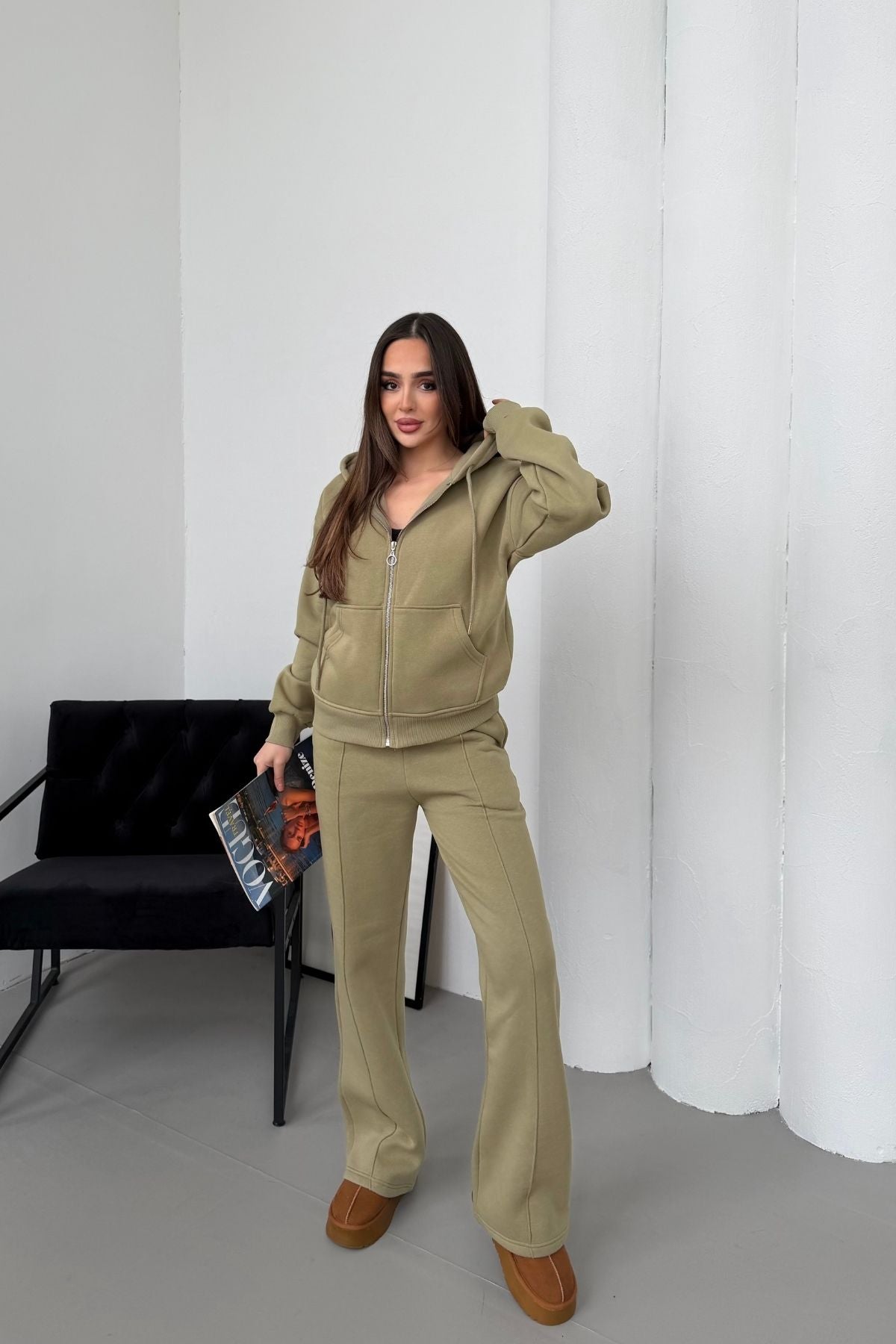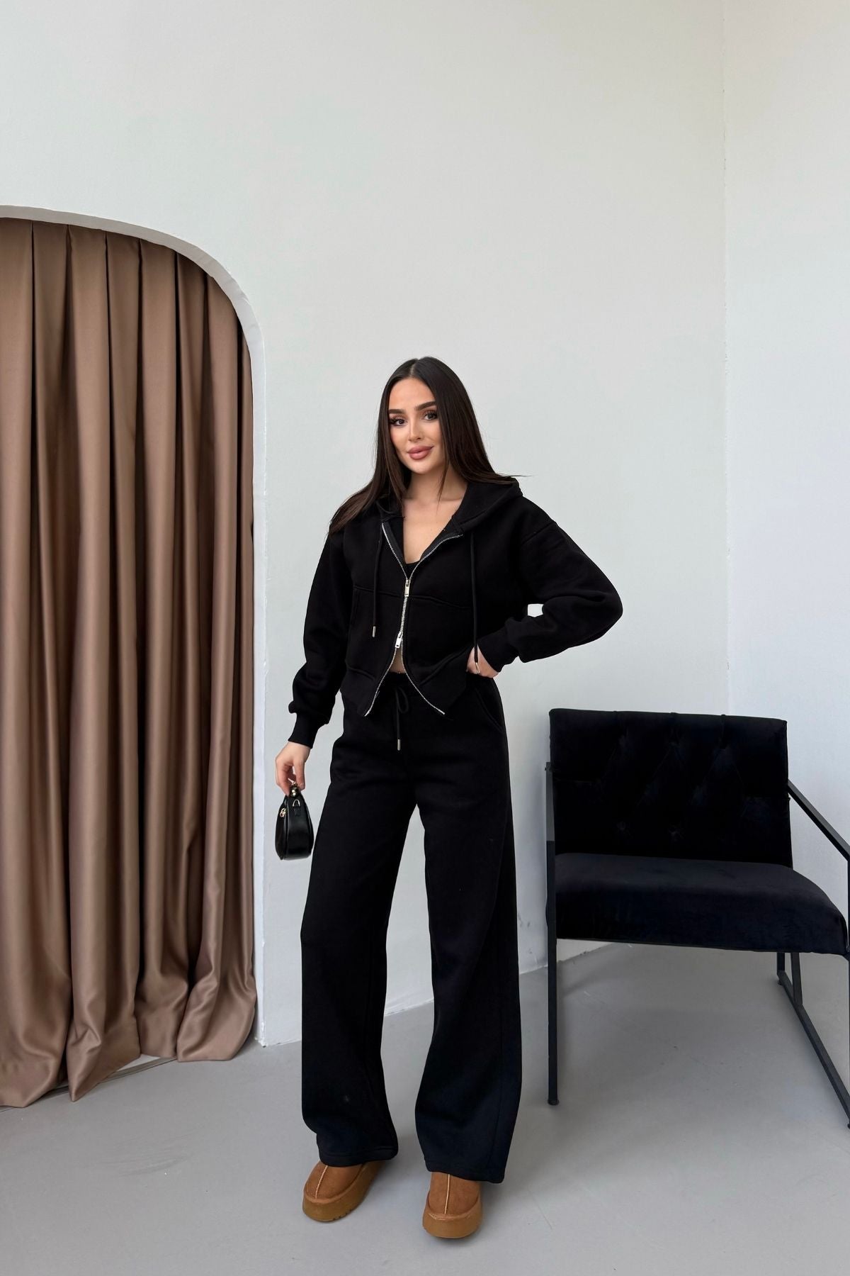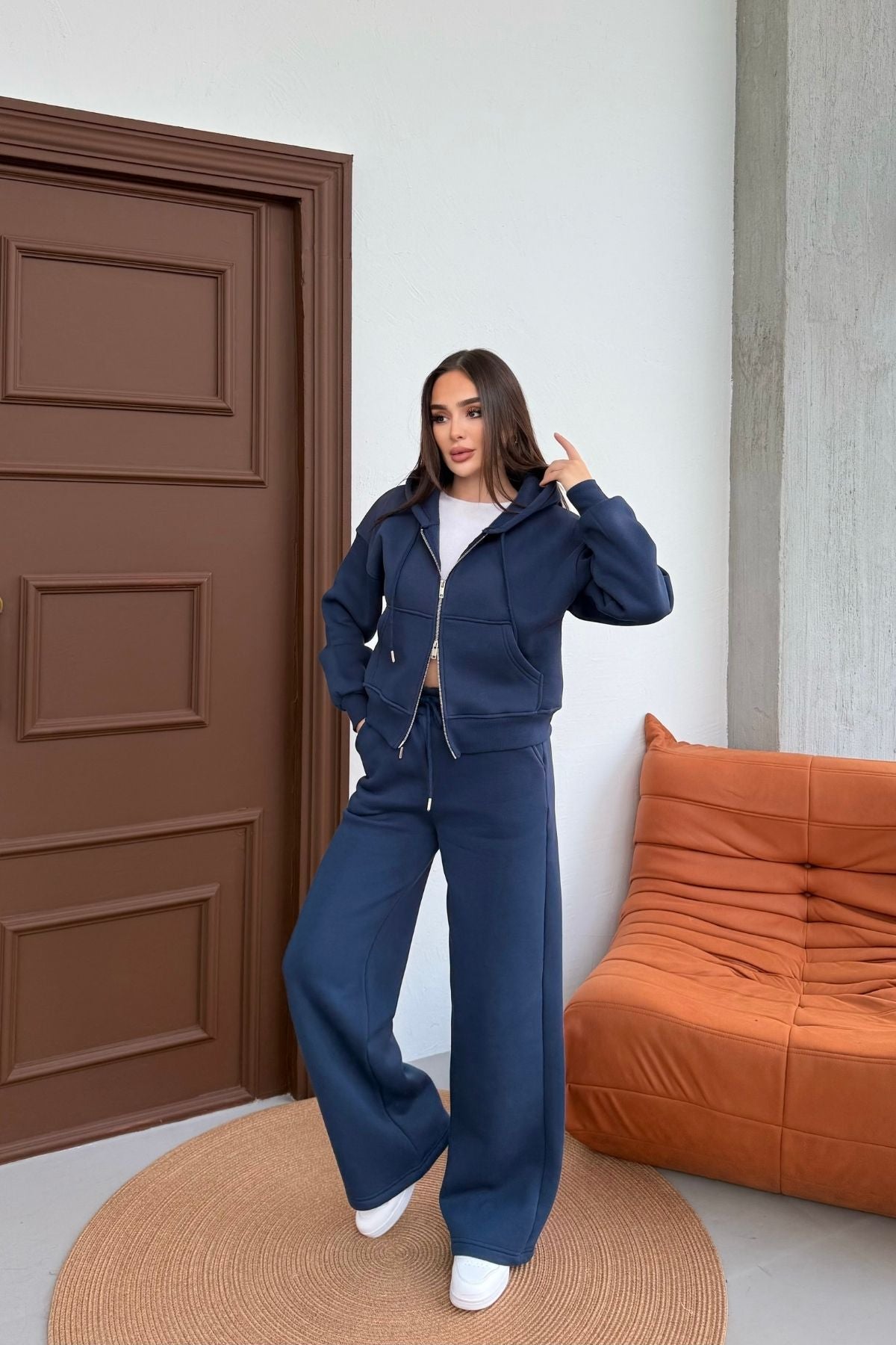 İçi Polar Rahat Kesim Kapüşonlu Fermuarlı Eşofman Takımı