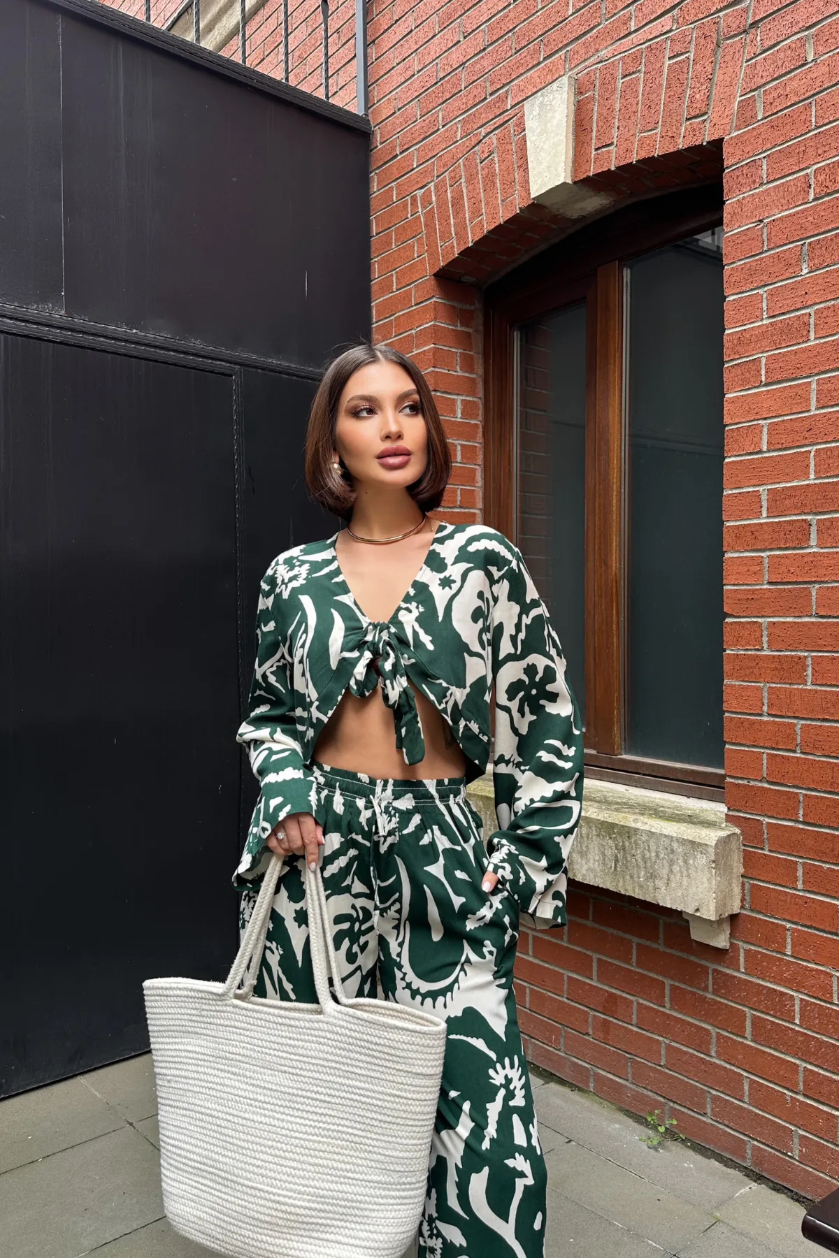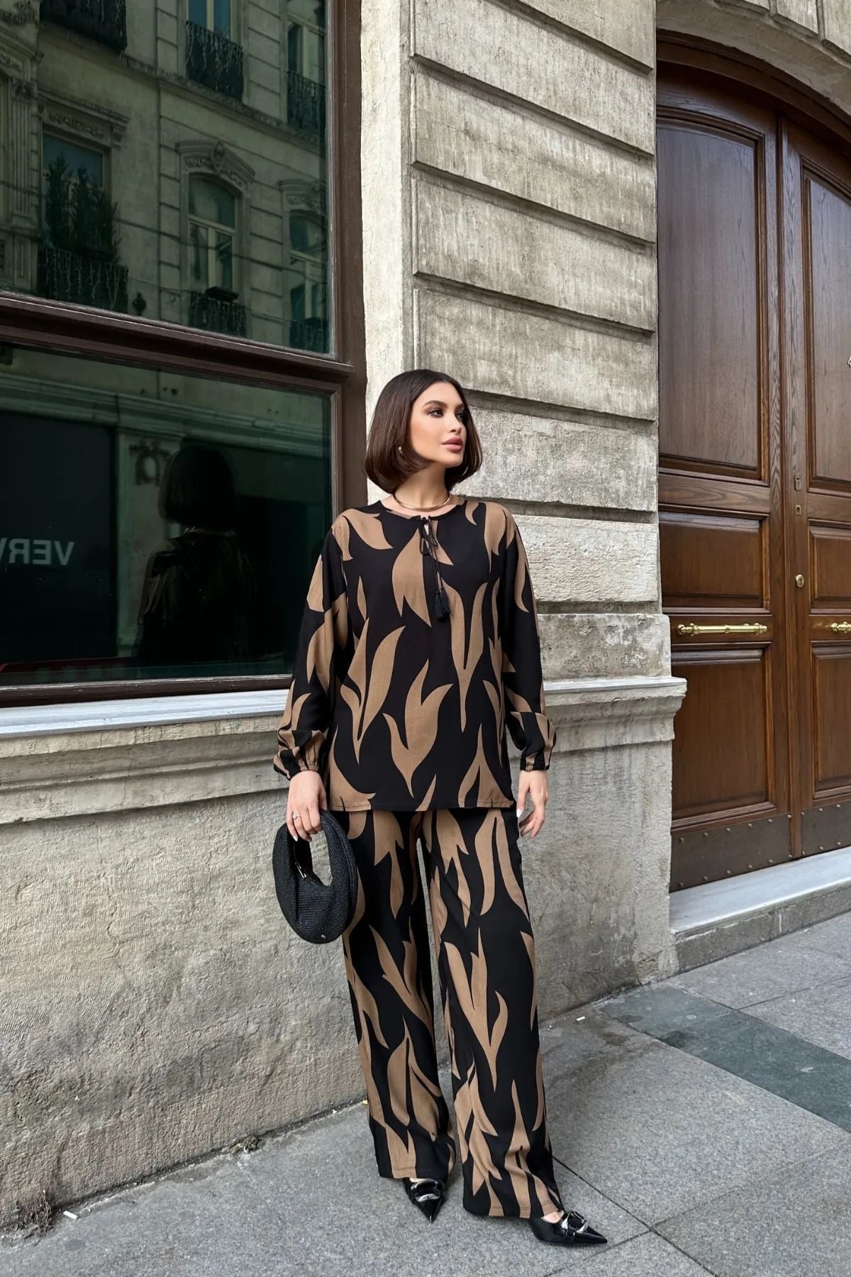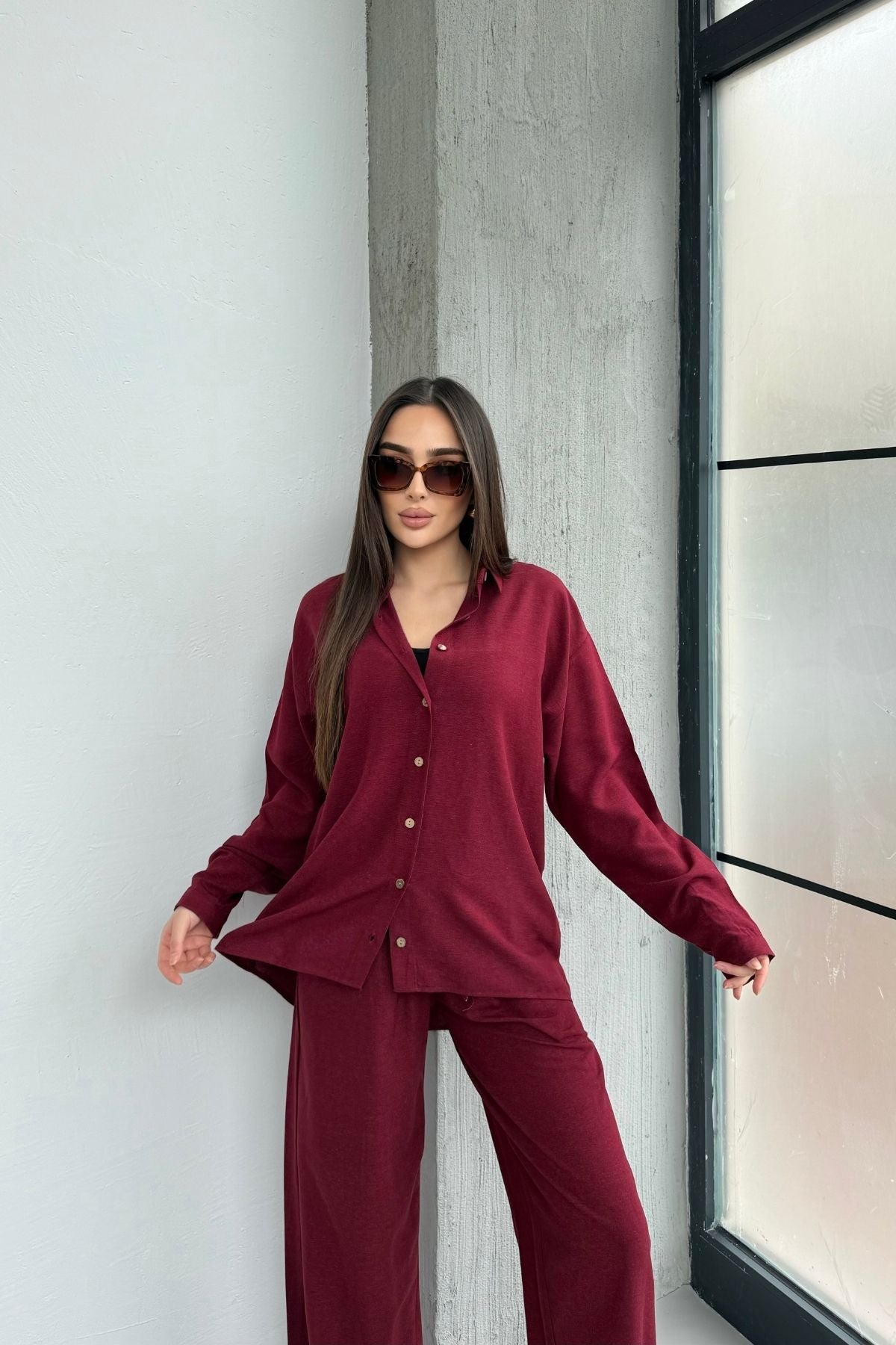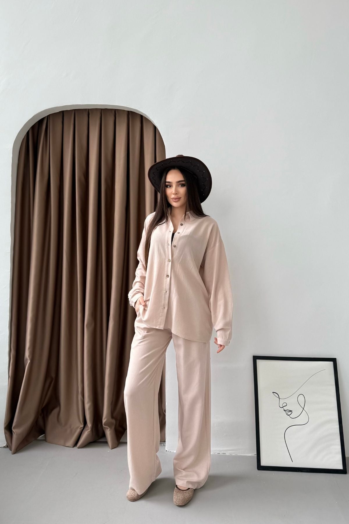 Kadın İkili Rahat Kesim Keten Gömlek Pantolon Alt Üst Takım