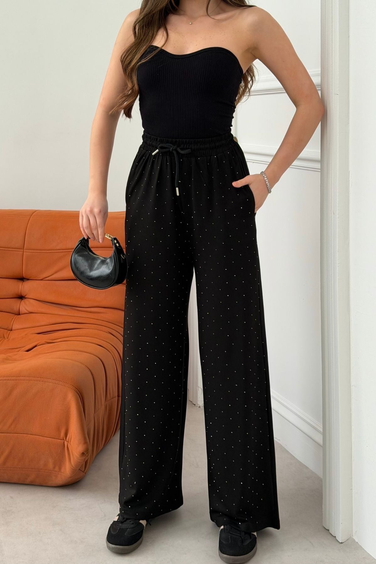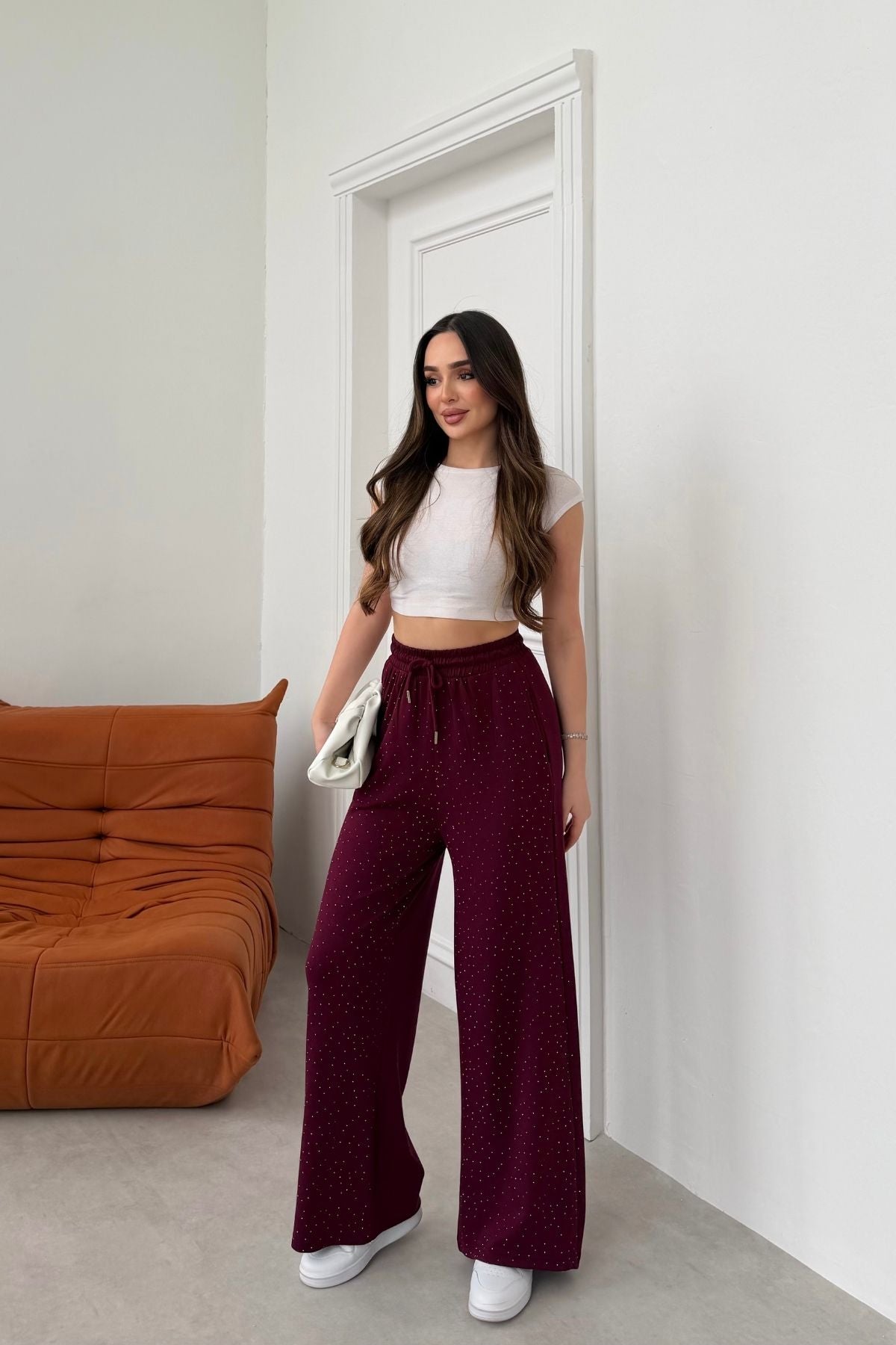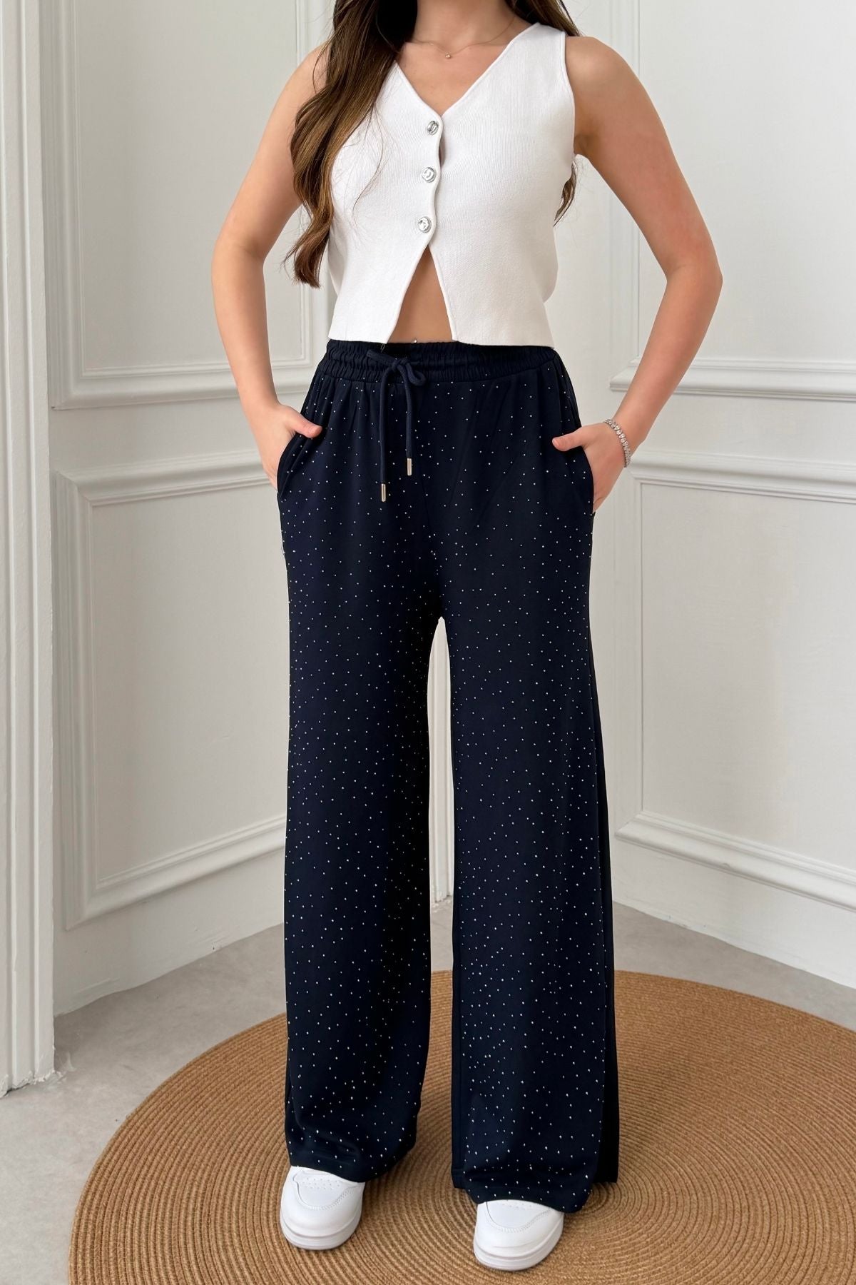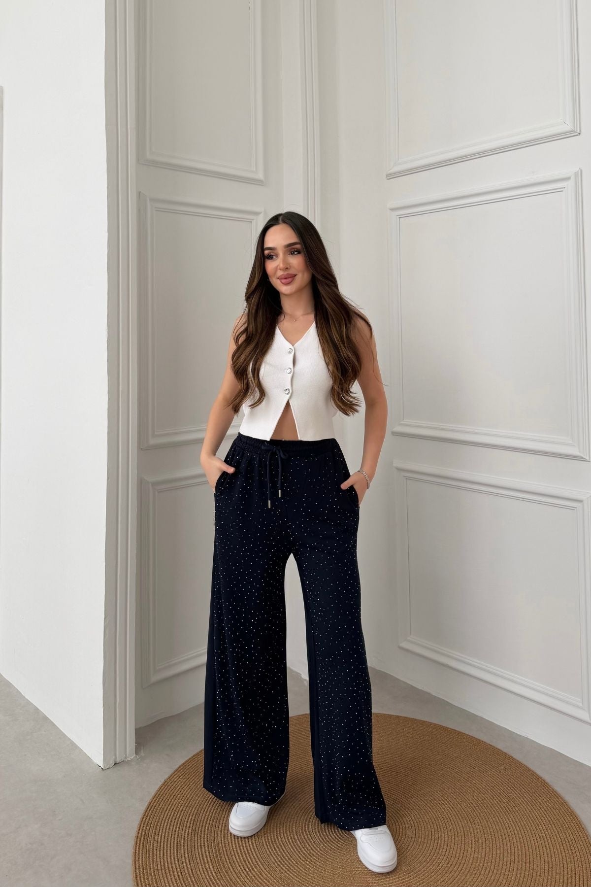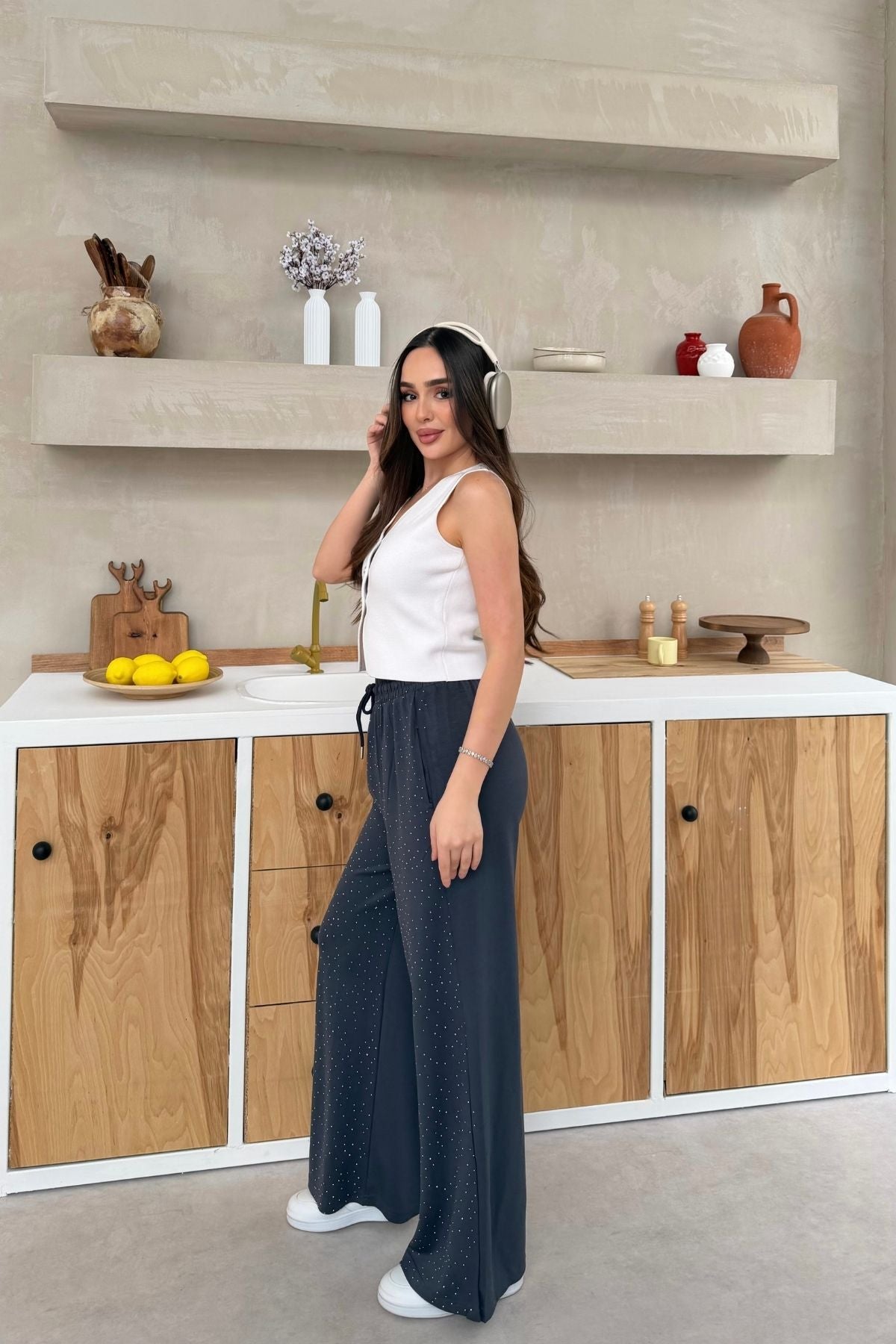Kadın Taşlı Bol Paça Modal Kumaş Eşofman Altı