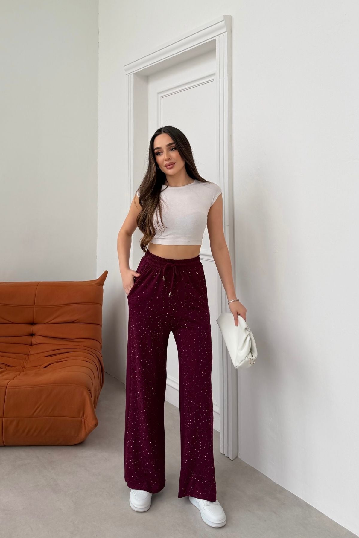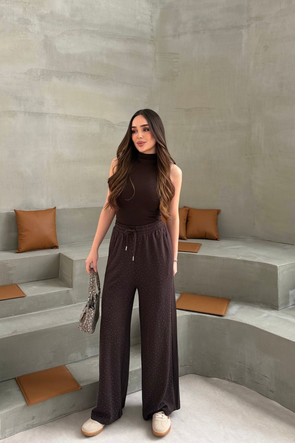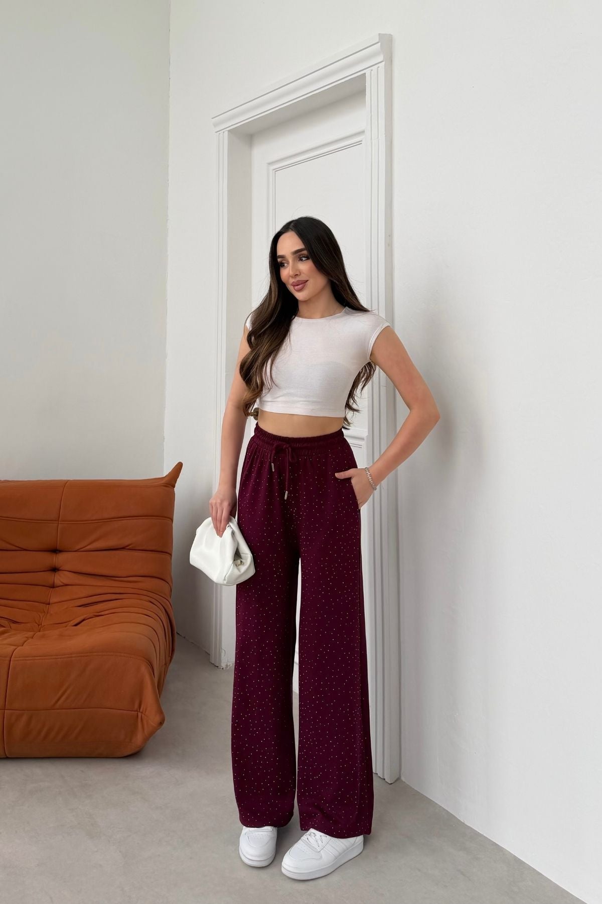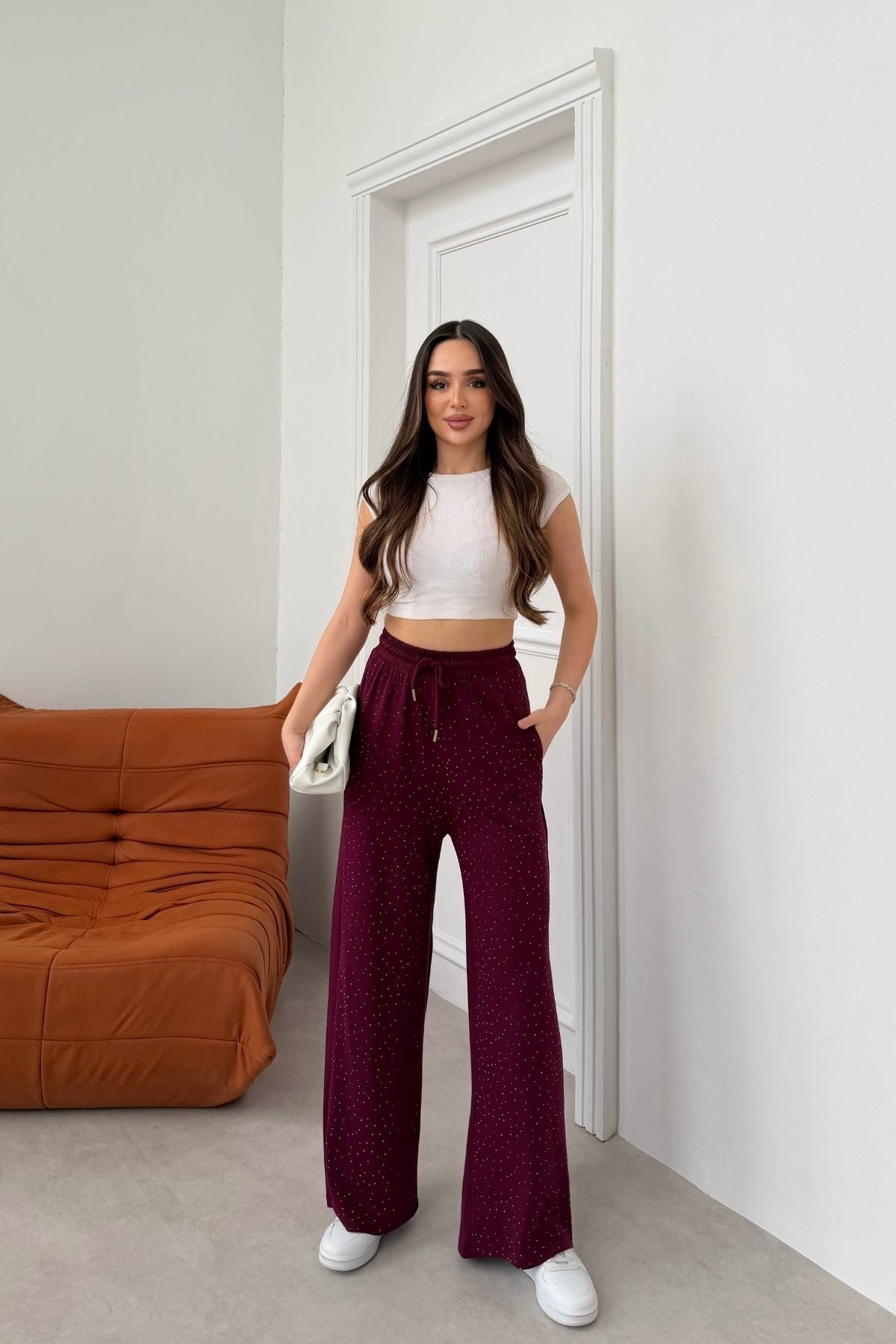 Kadın Taşlı Bol Paça Modal Kumaş Eşofman Altı