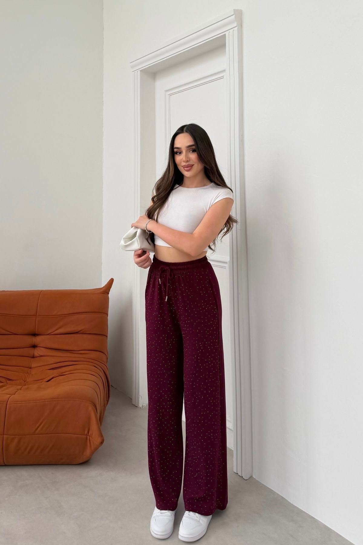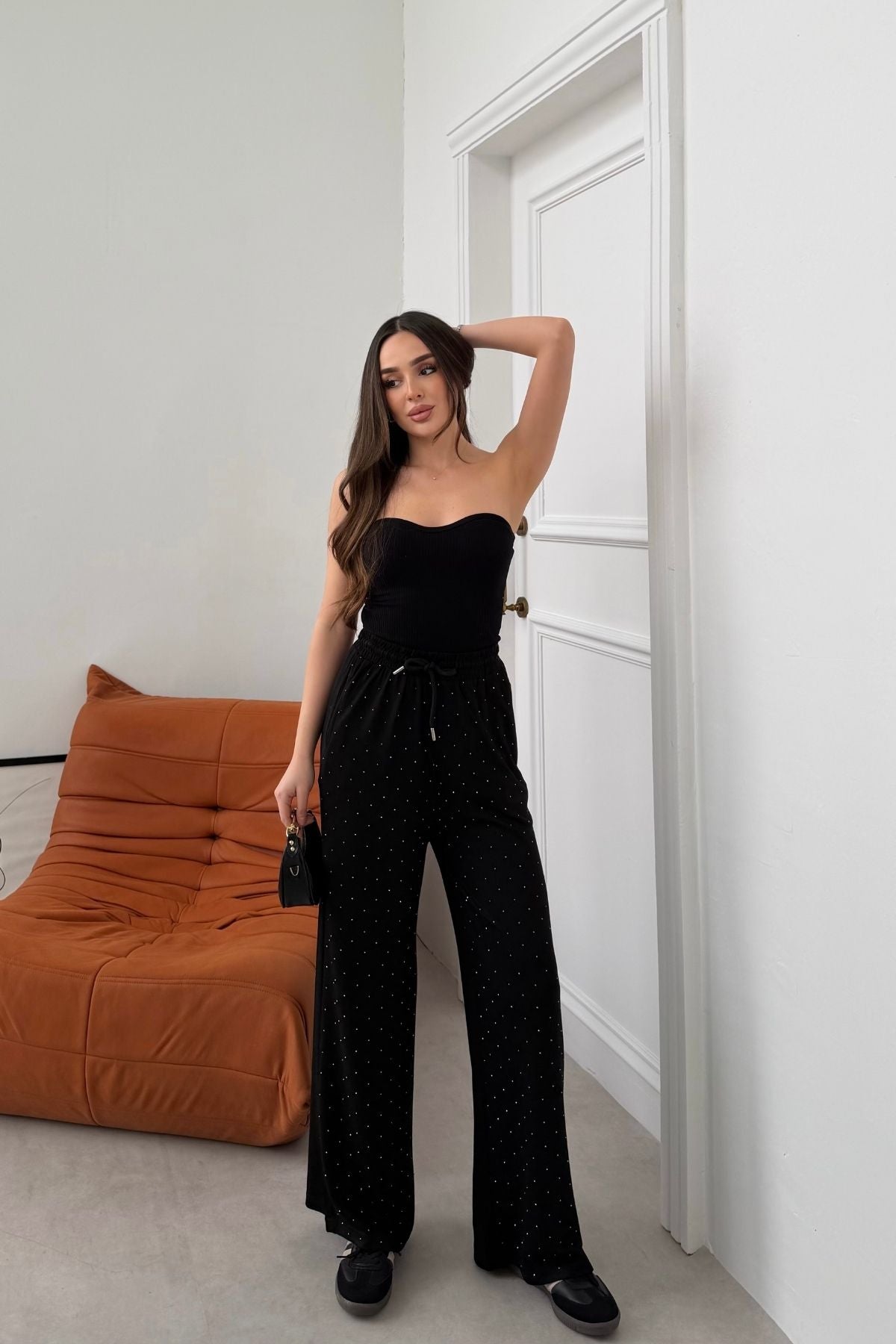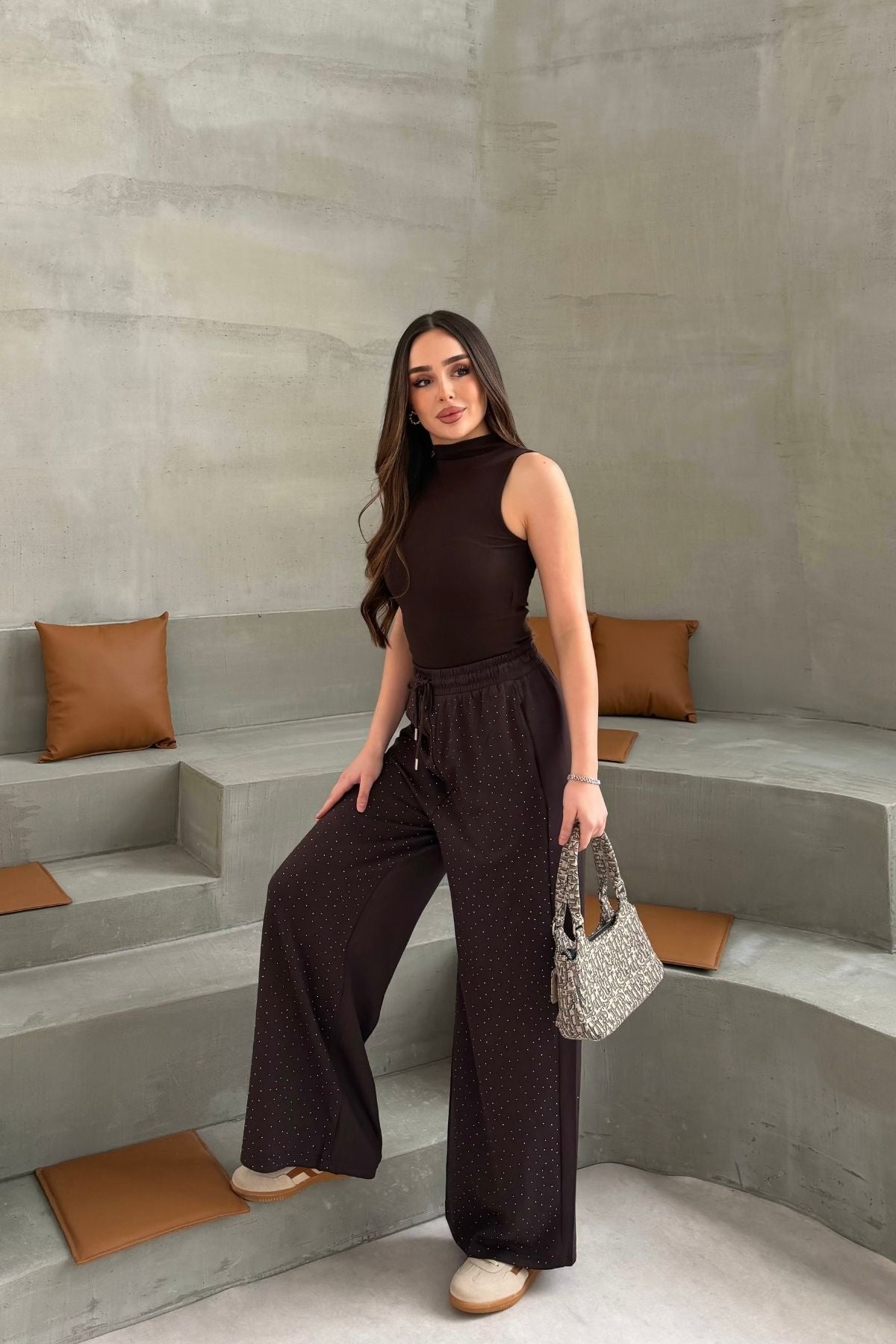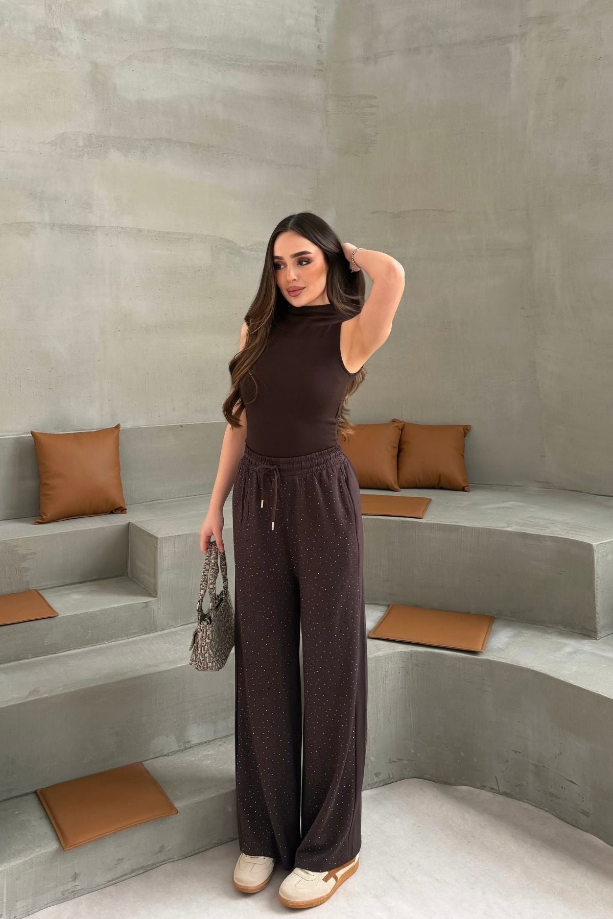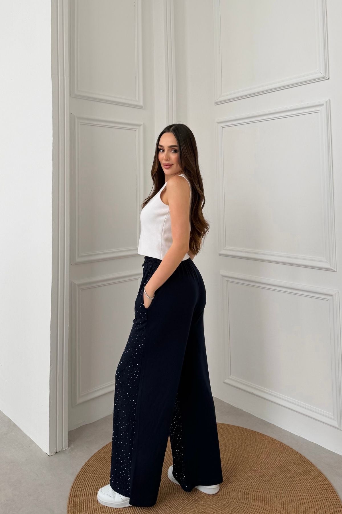 Kadın Taşlı Bol Paça Modal Kumaş Eşofman Altı