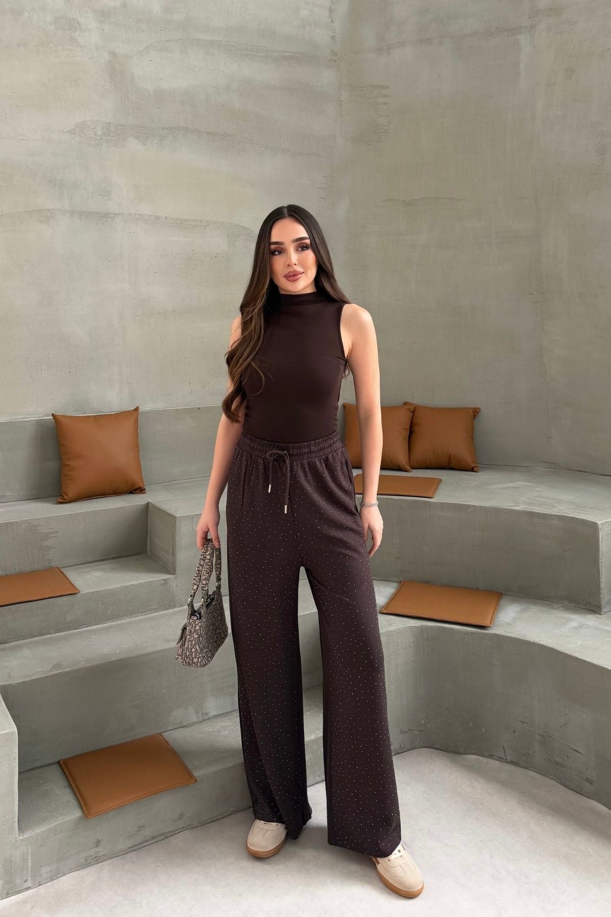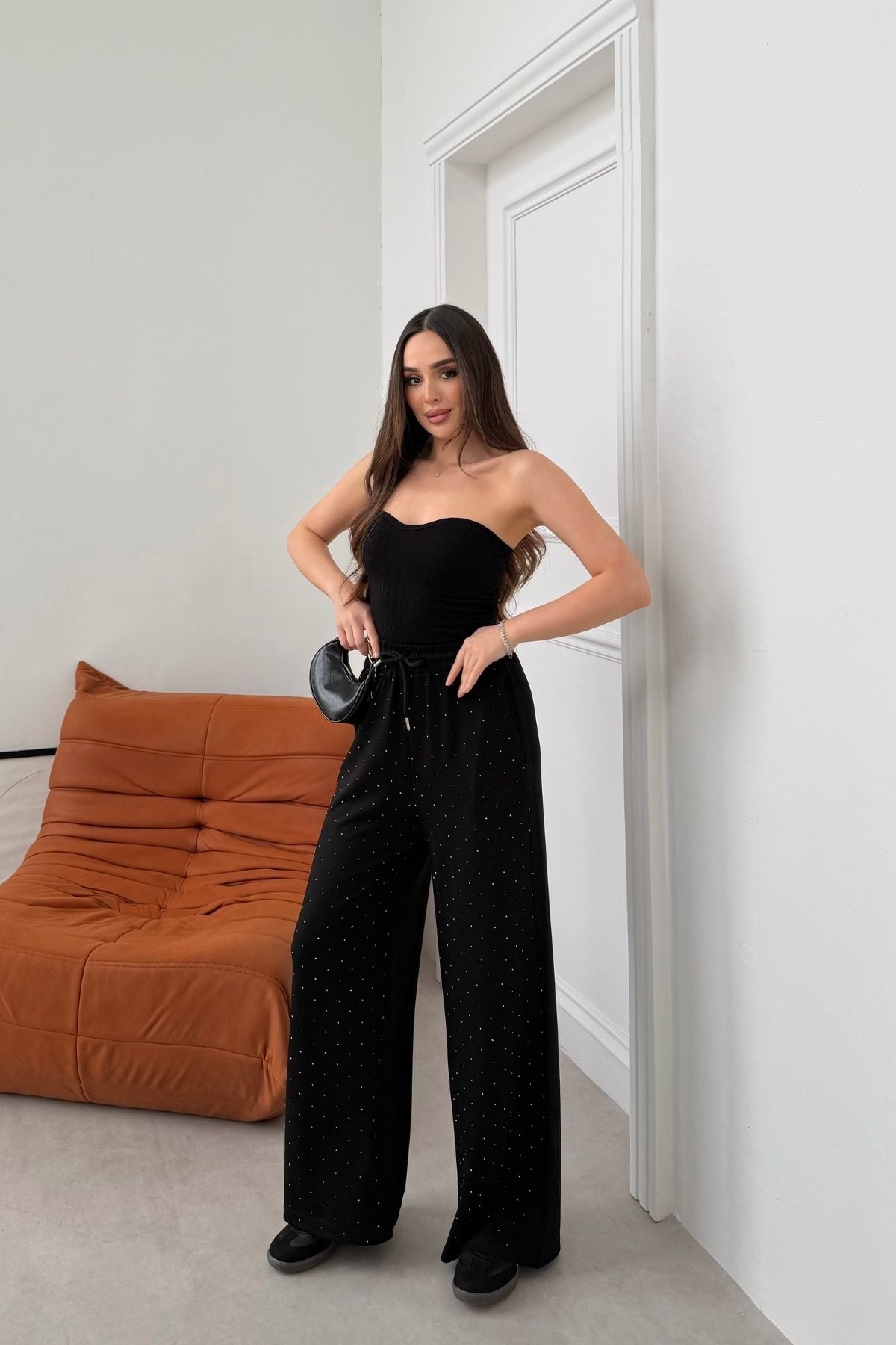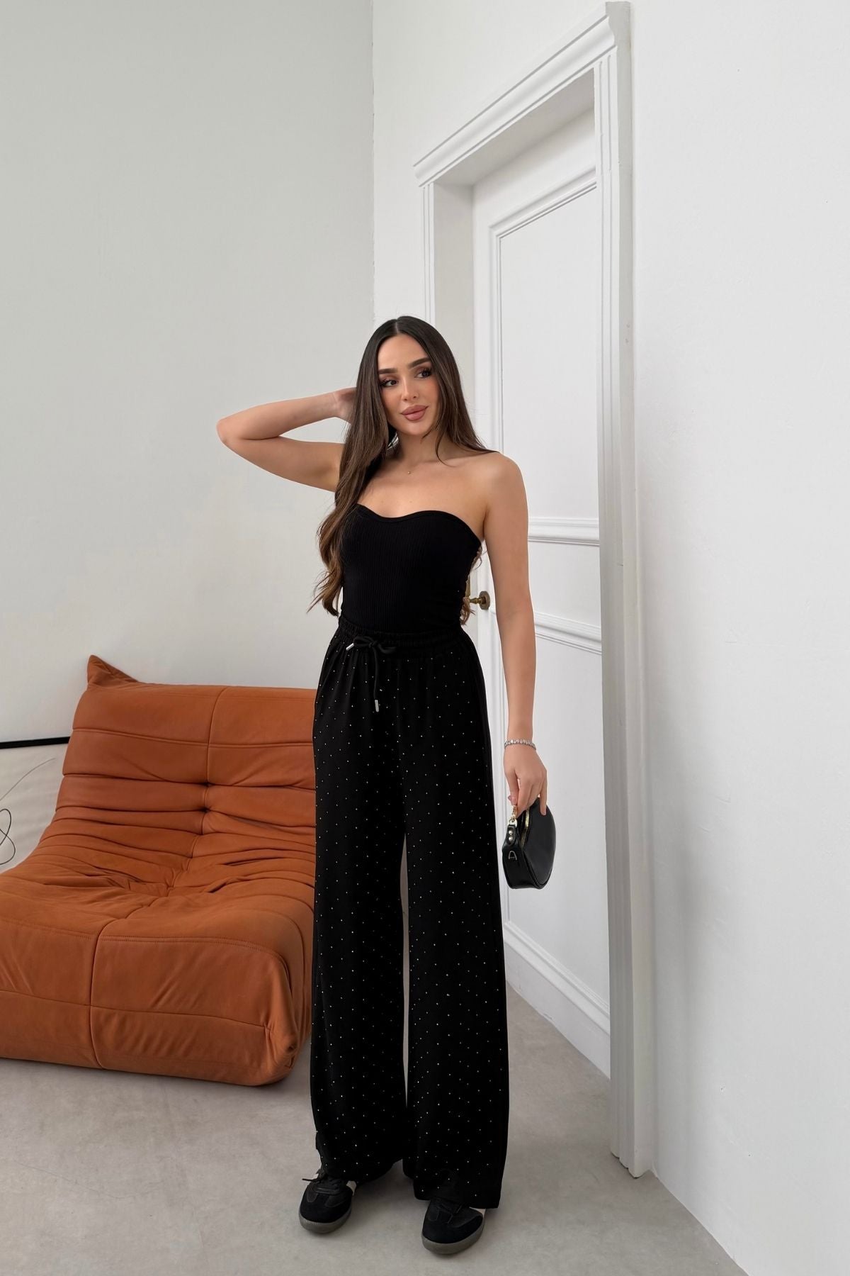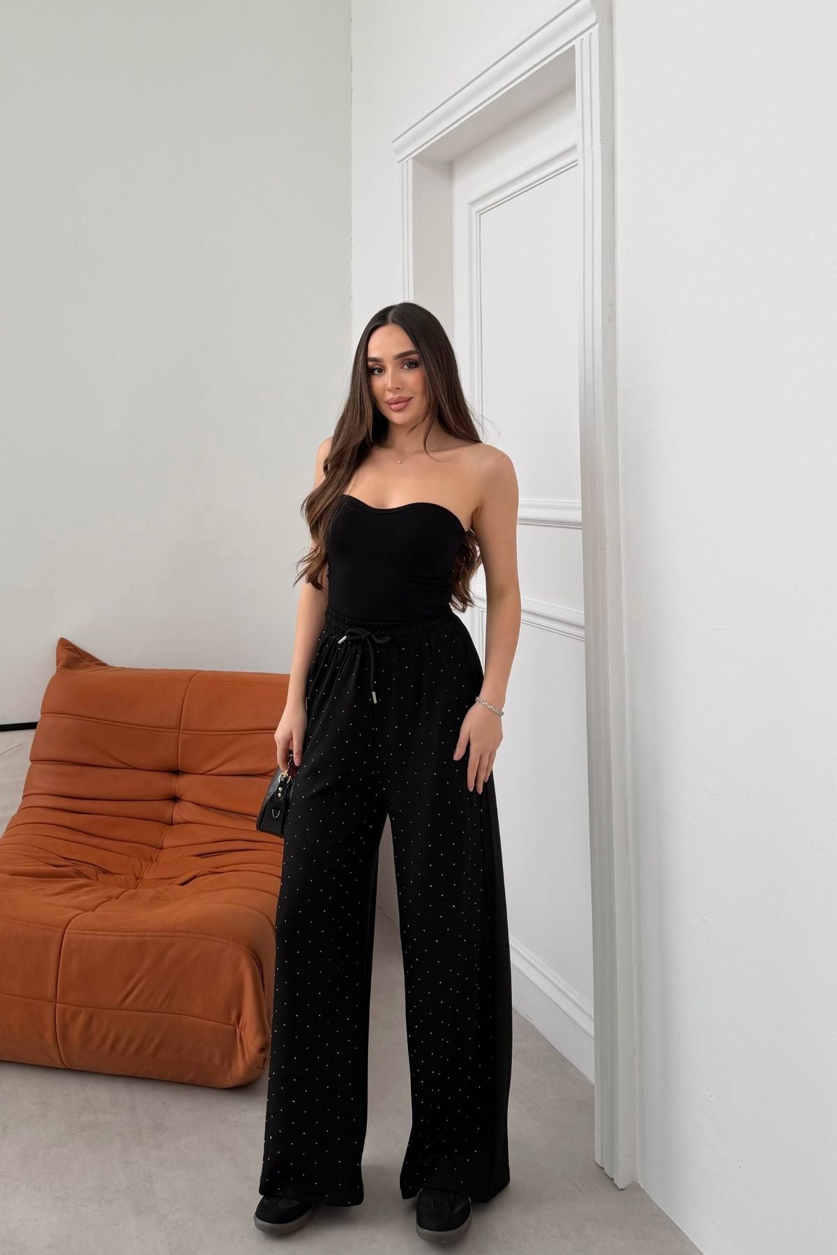 Kadın Taşlı Bol Paça Modal Kumaş Eşofman Altı