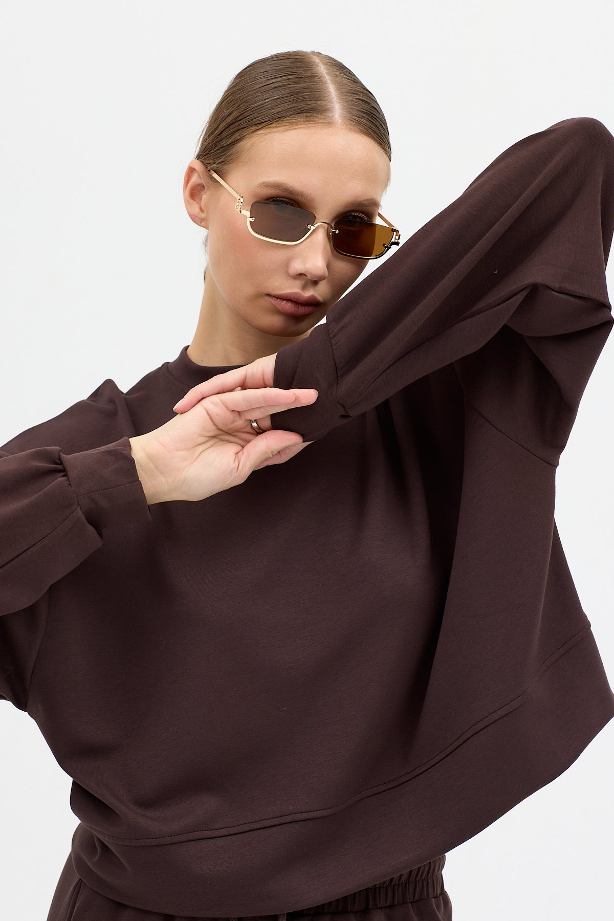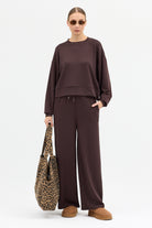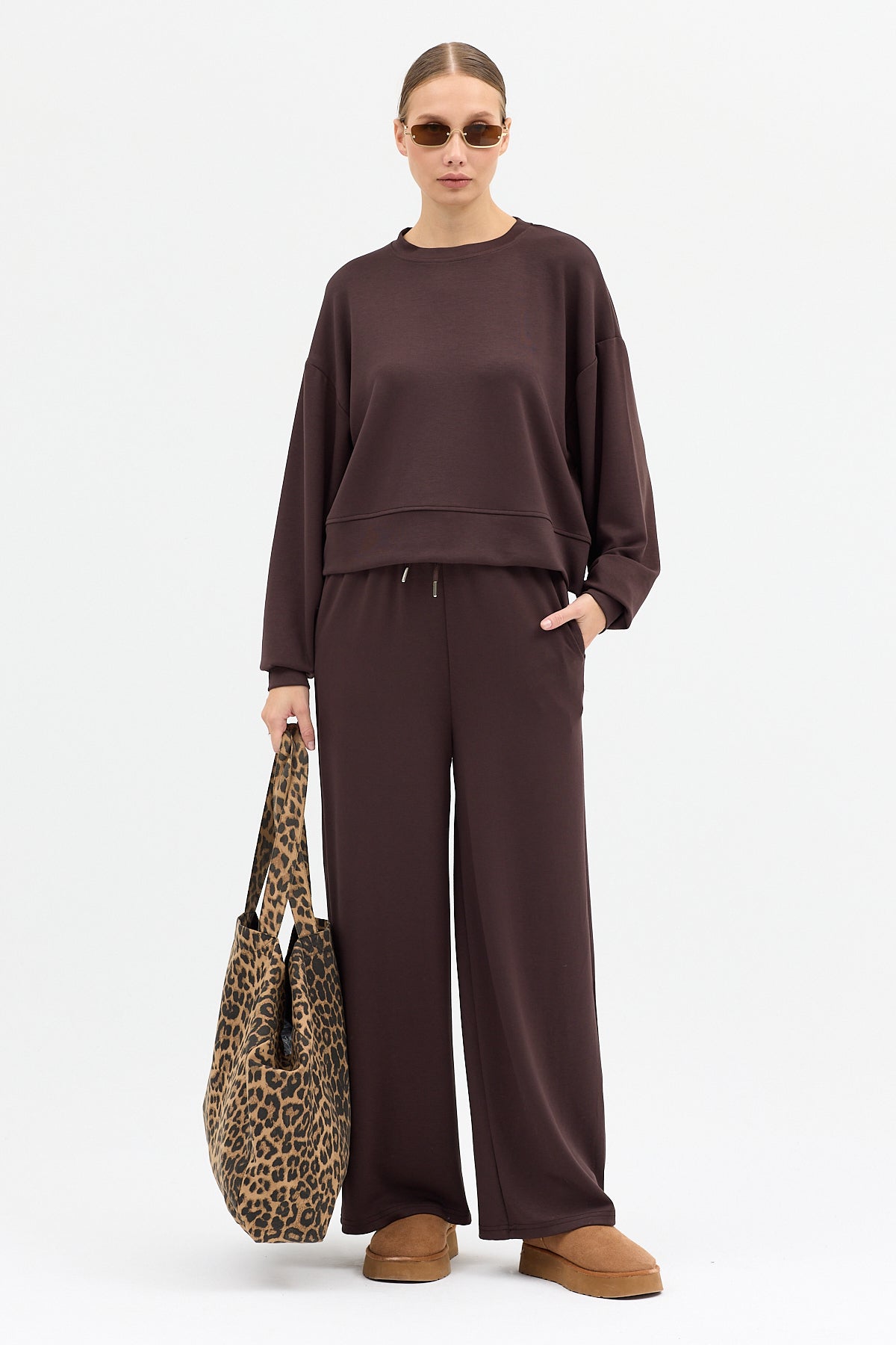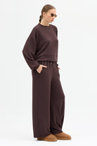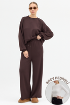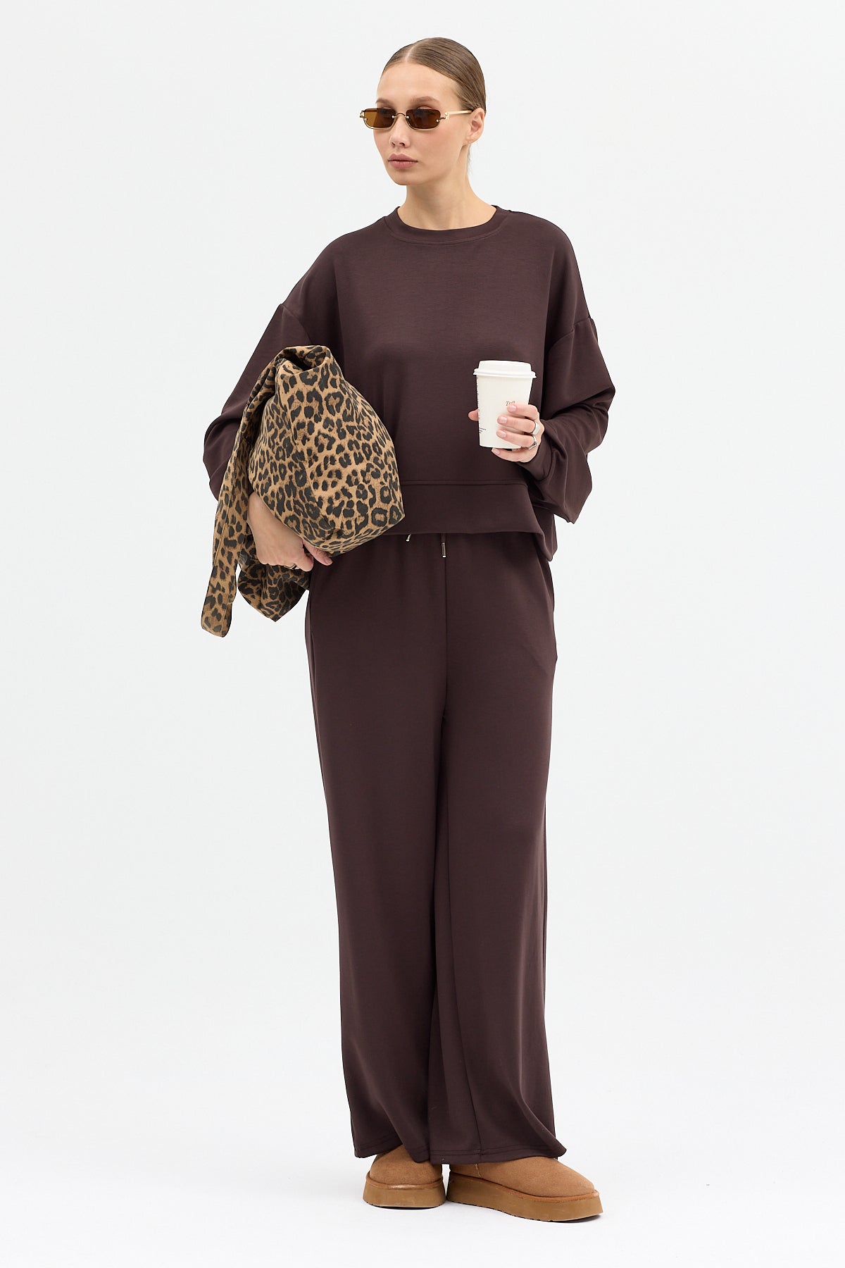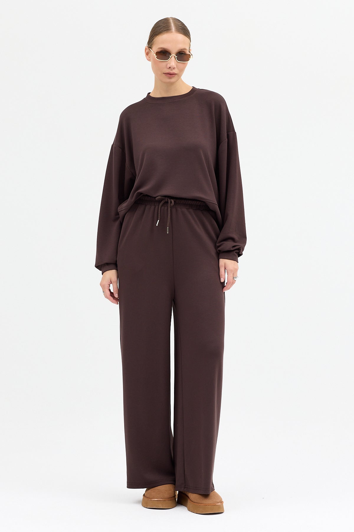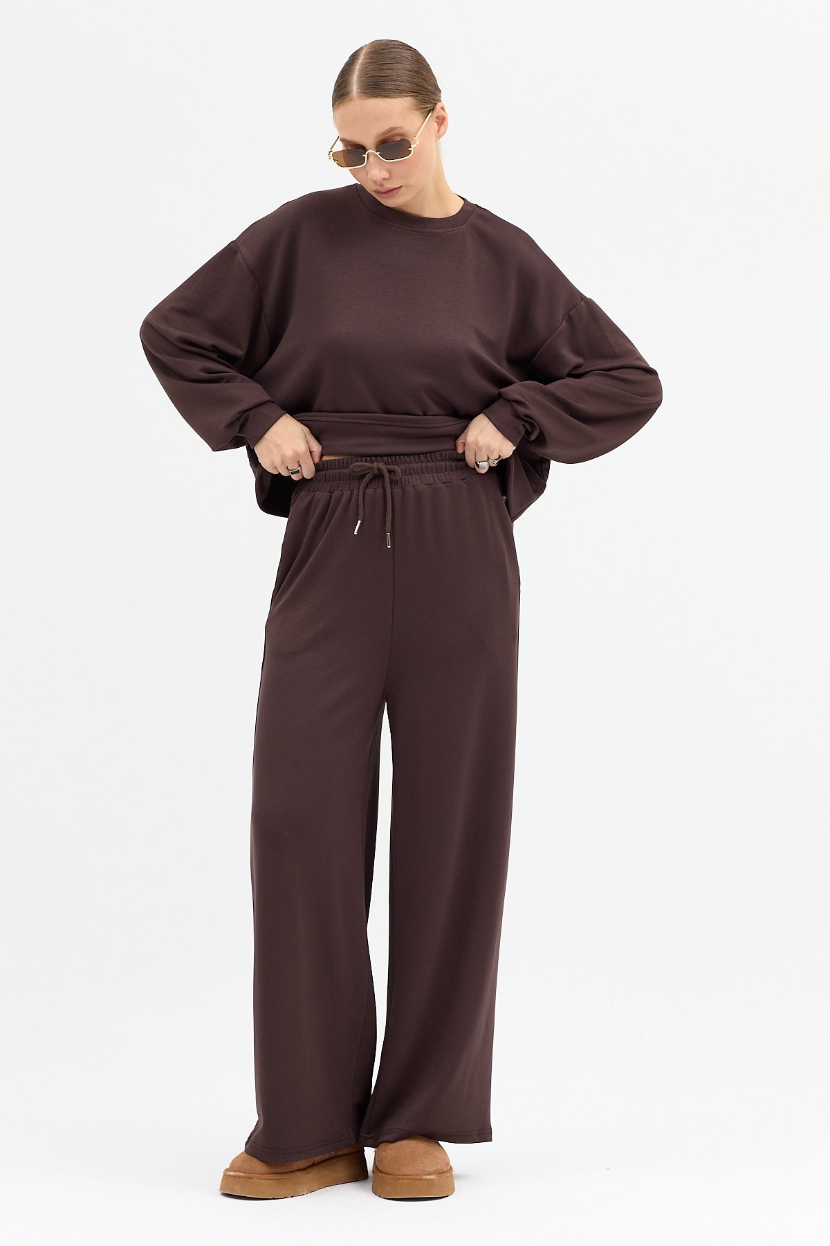 Rahat Esnek Modal Alt-Üst Kahverengi Takım