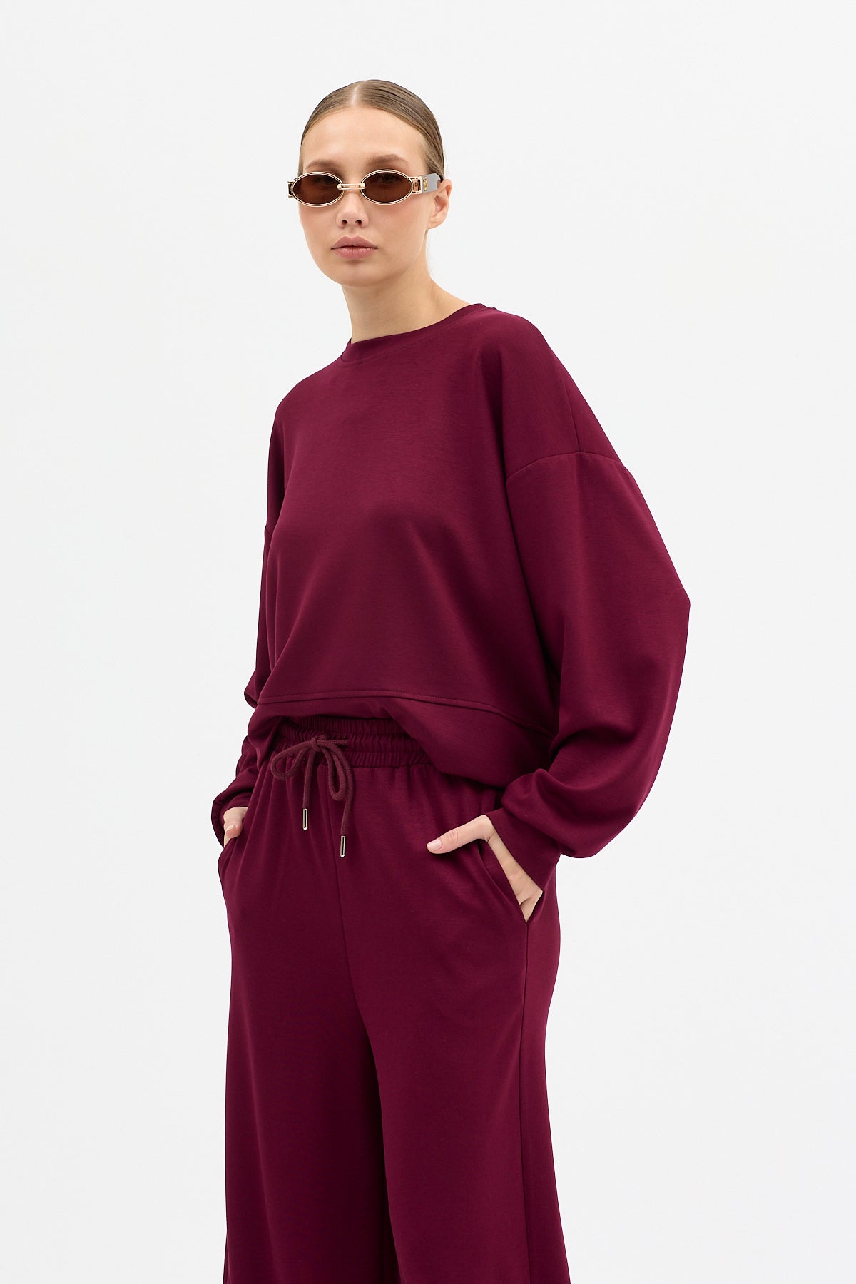 Oversize sweatshirt + düz kesim eşofman altı kombinasyonu