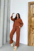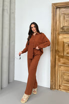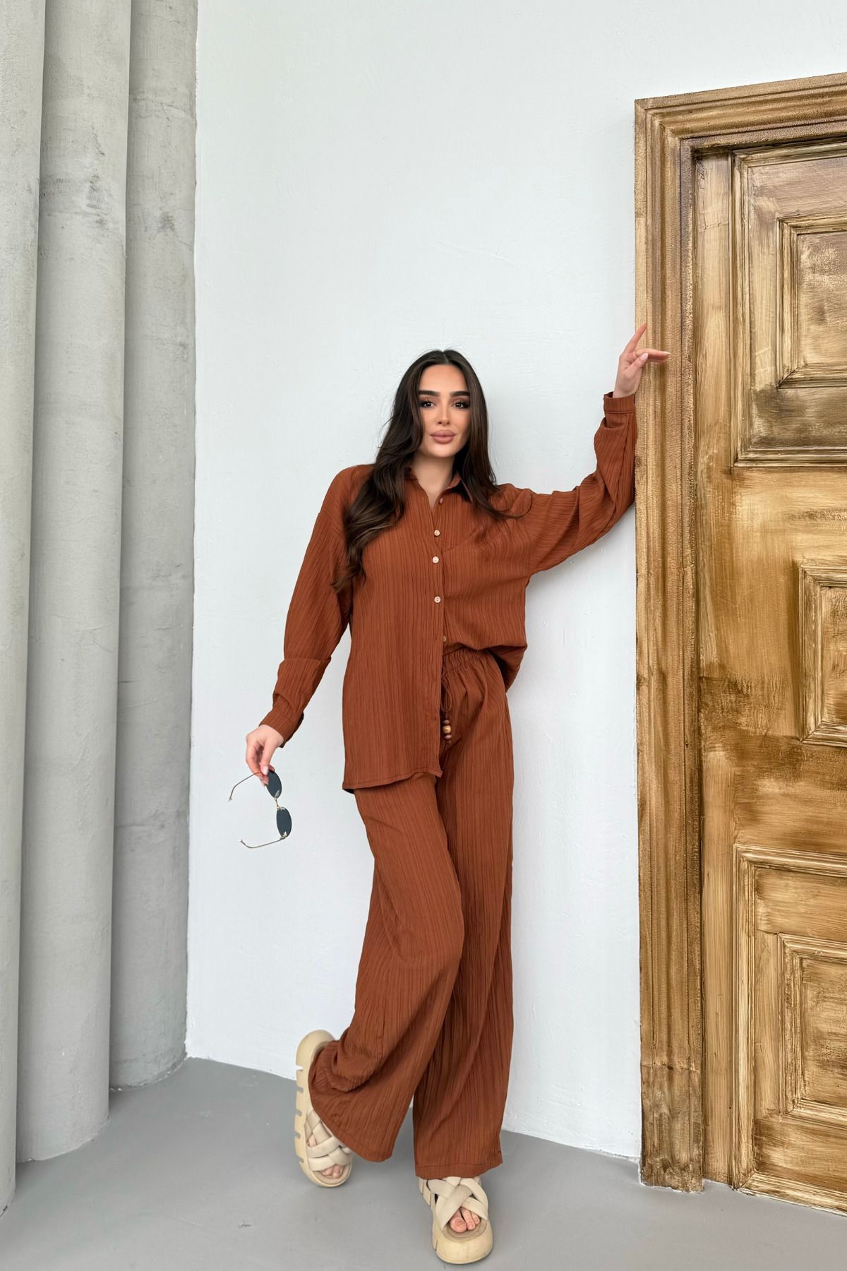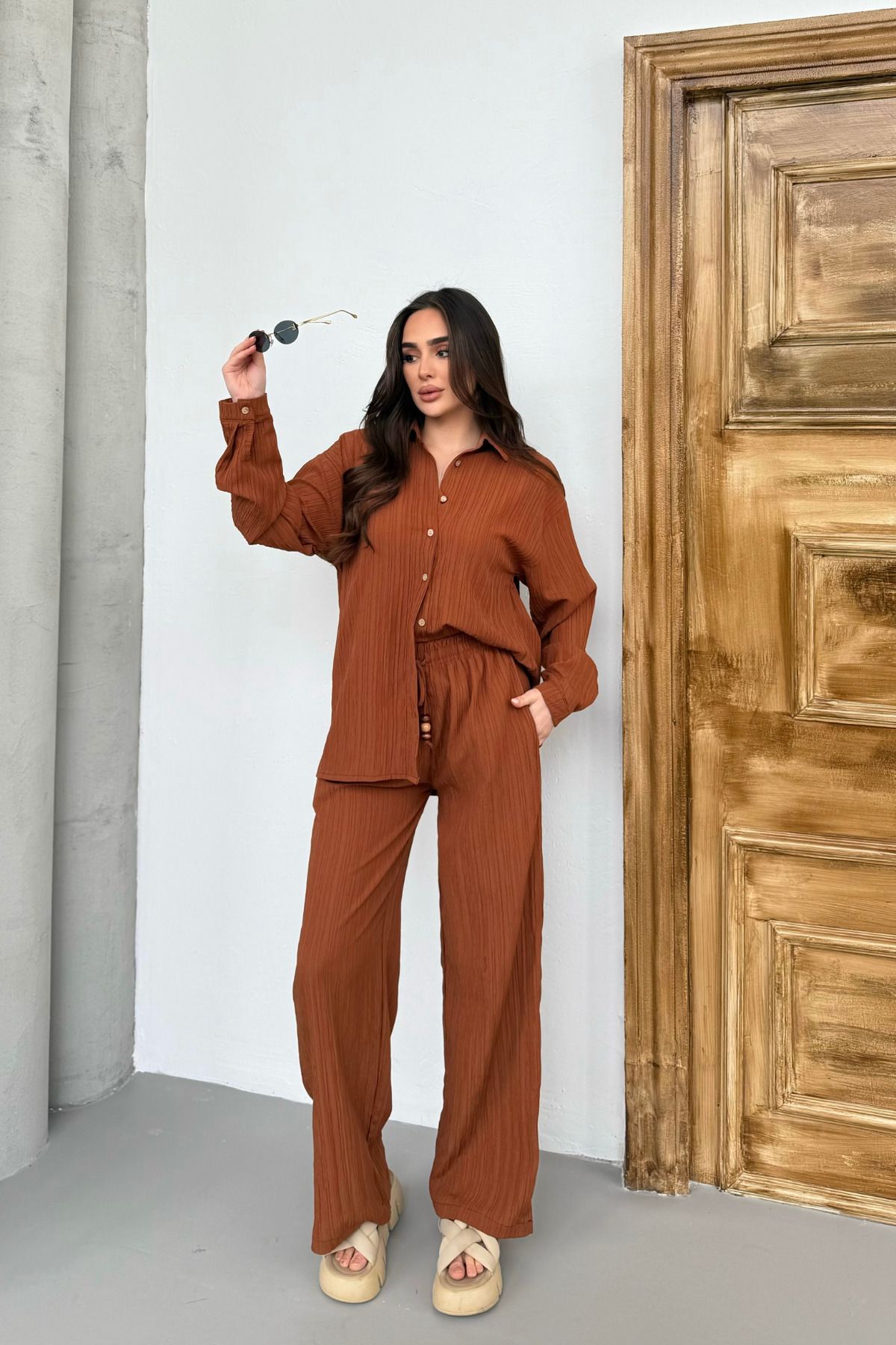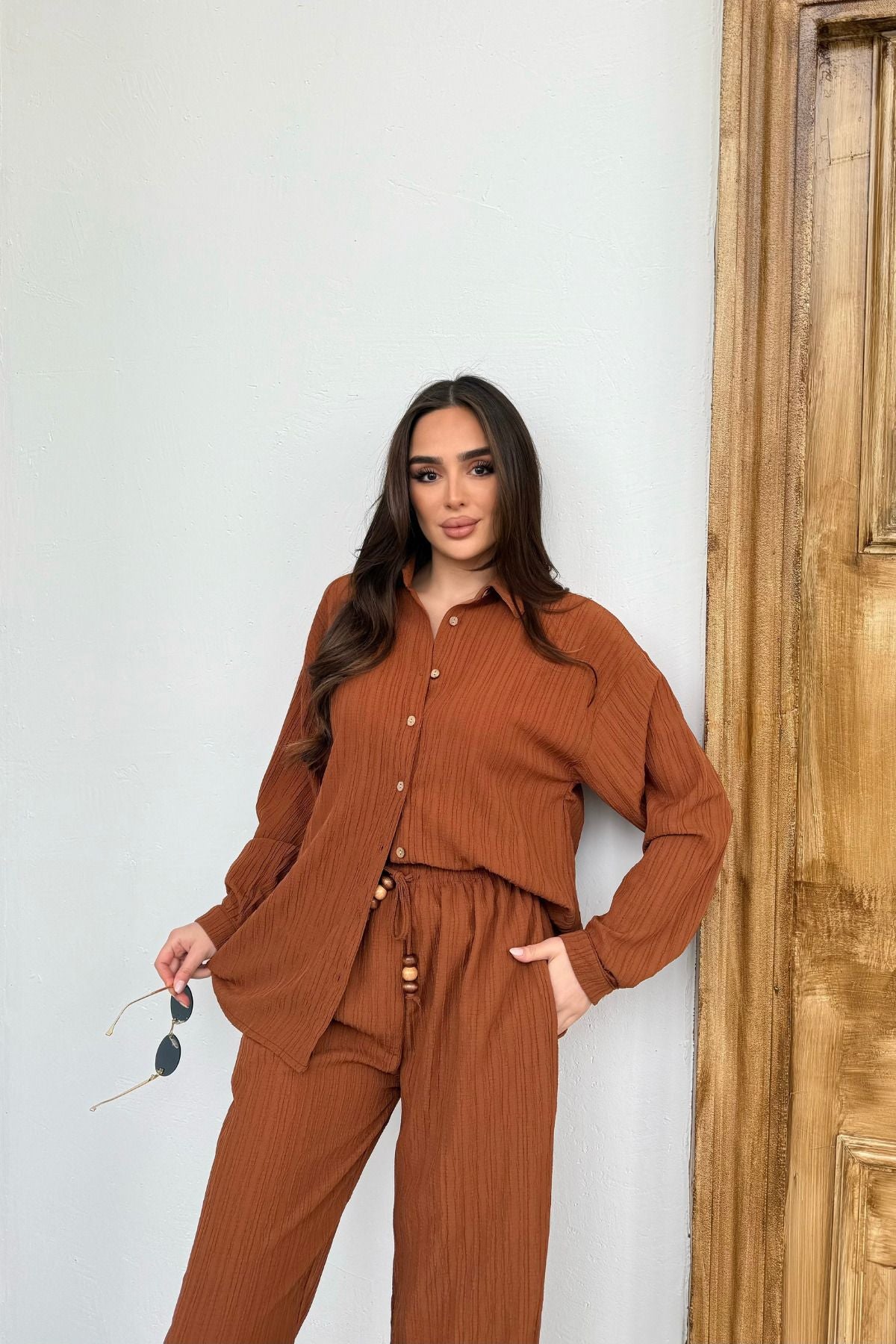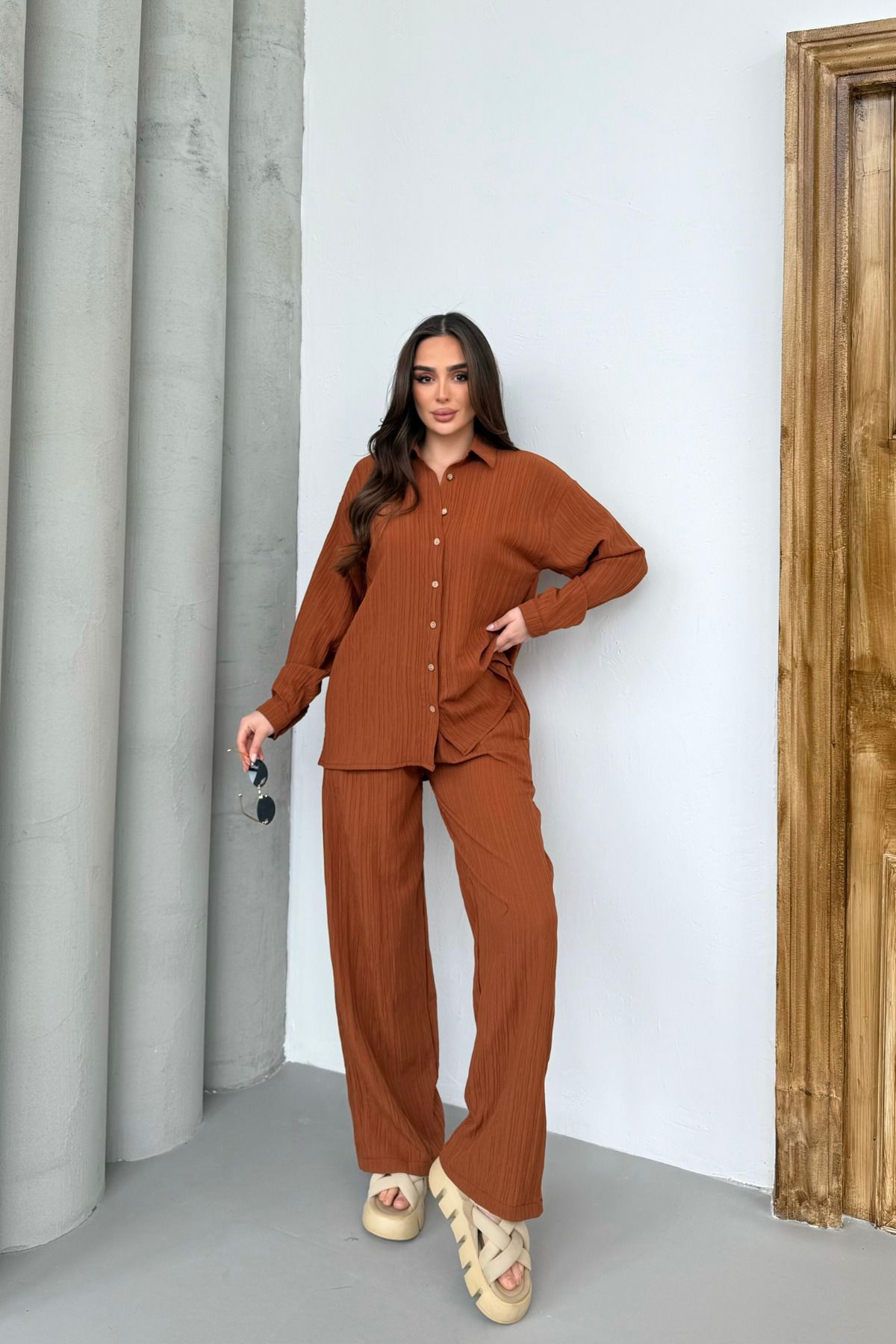 Kiremit Gofre Dokuma Kumaş Gömlek Alt-üst Takım