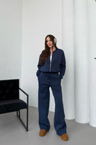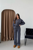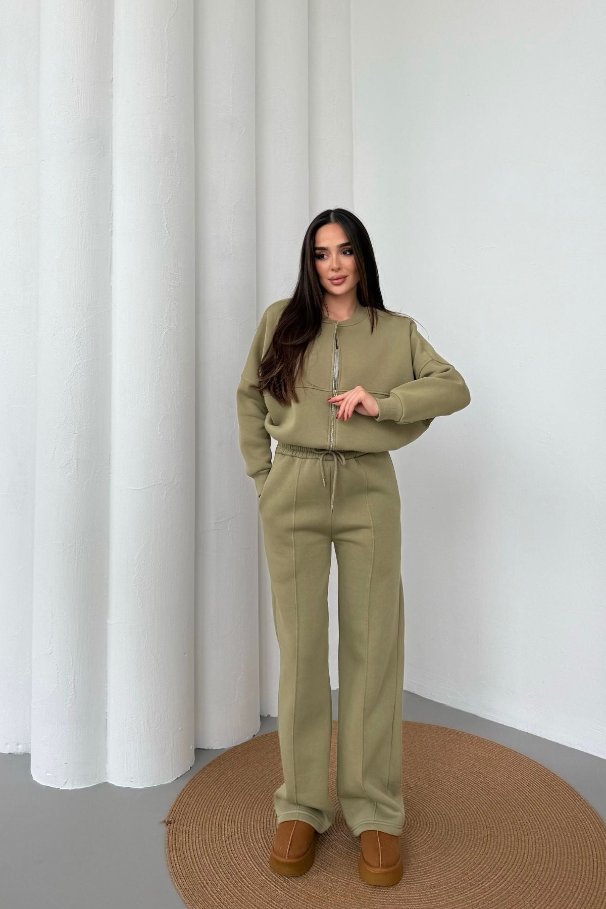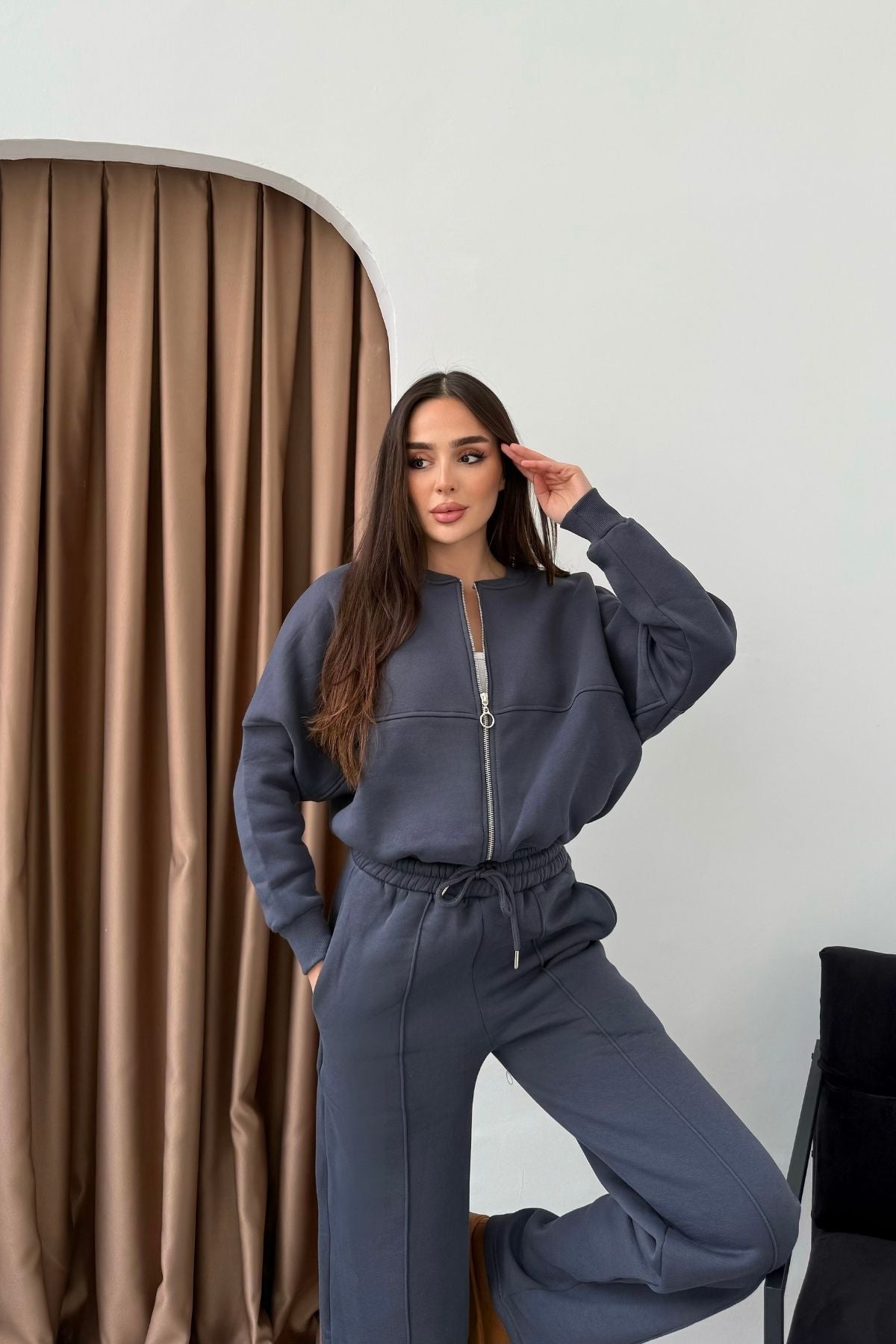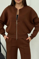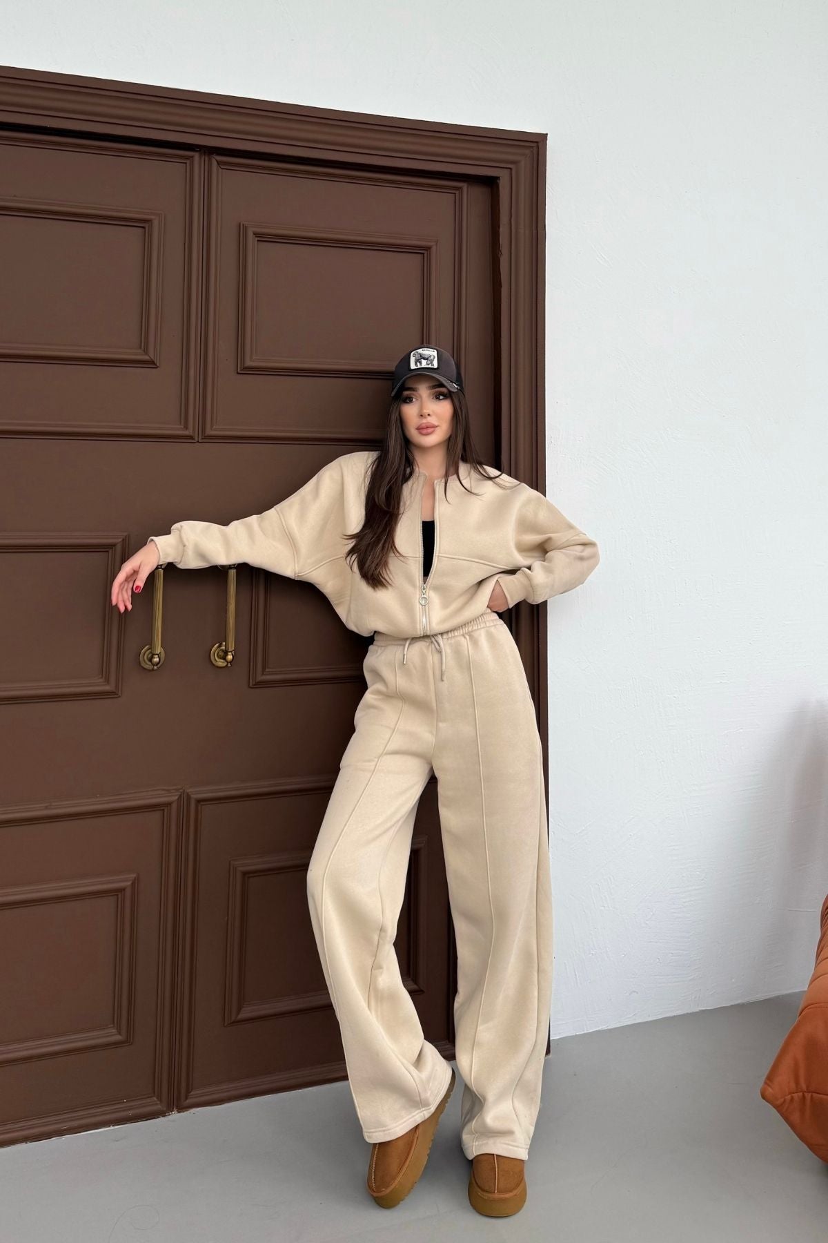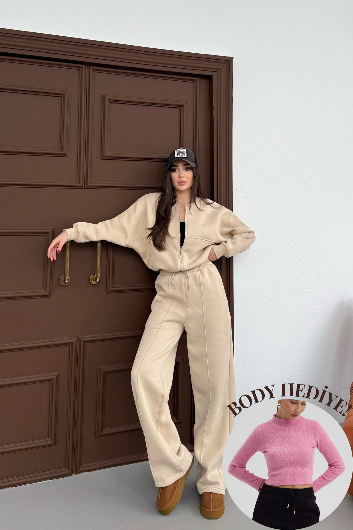 Kadın Şardonlu Fermuar Detaylı Üç Iplik Kışlık Eşofman Takımı