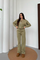 Tam kalıptır. (Kendi bedeninizi tercih edebilirsiniz.) Günlük kullanımda ve spor kombinlerinizde şıklık ve rahatlığı bir arada sunar. Fermuarlı oversize üst ve likralı eşofman altından oluşan bu ikili takım, iki iplik compact penye lüks kumaştan üretilmiştir. Yumuşak dokusu, esnek yapısı ve terletmeyen kumaşı ile gün boyu konfor sağlar.Kışlık şardonlu kumaştır.