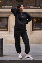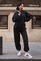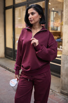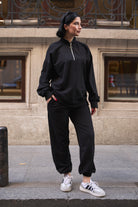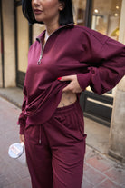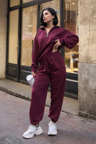 Kadın Yarım Fermuarlı Sweatshırt Ve Paçası Lastikli Kahverengi Eşofman Takımı