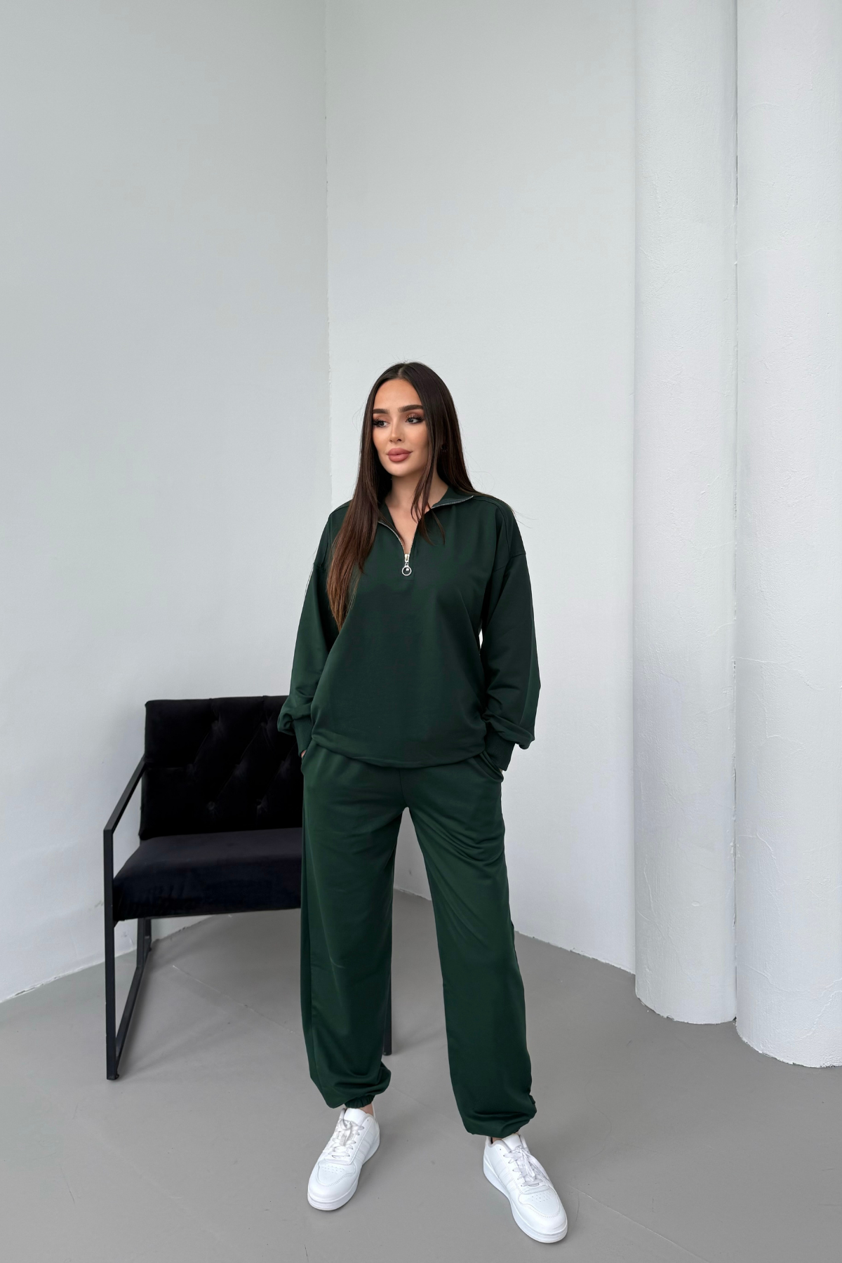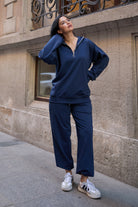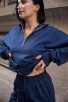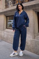 Tam kalıptır. (Kendi bedeninizi tercih edebilirsiniz.) Yarım fermuarlı yaka detayıyla spor ve şıklığı bir arada sunan kadın ikili eşofman takımı, iki iplik compact penye likralı kumaştan üretilmiştir. Yumuşak dokusu, esnek yapısı ve nefes alabilen kumaşı sayesinde gün boyu rahatlık sağlar.